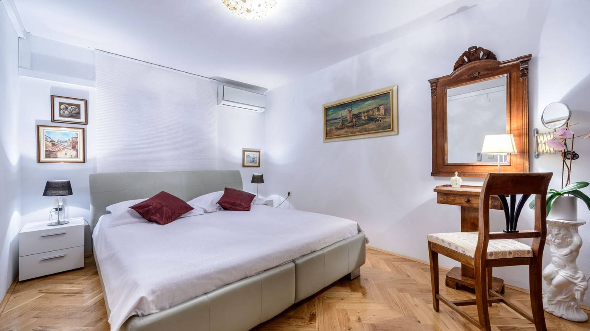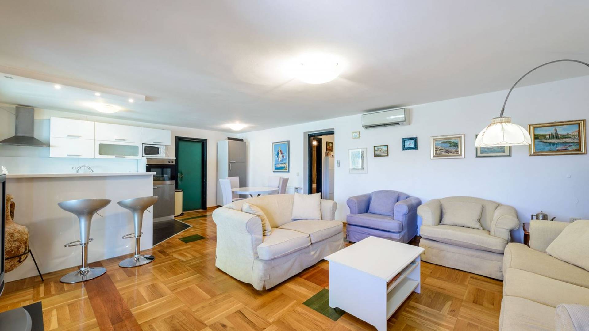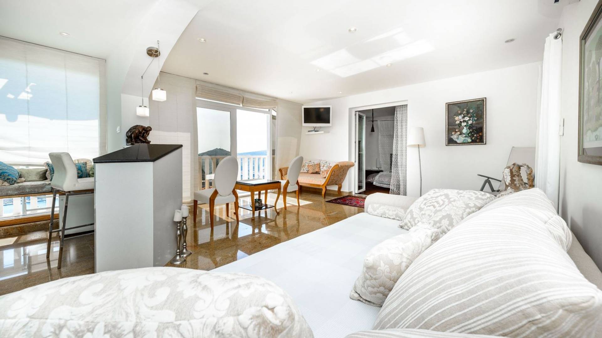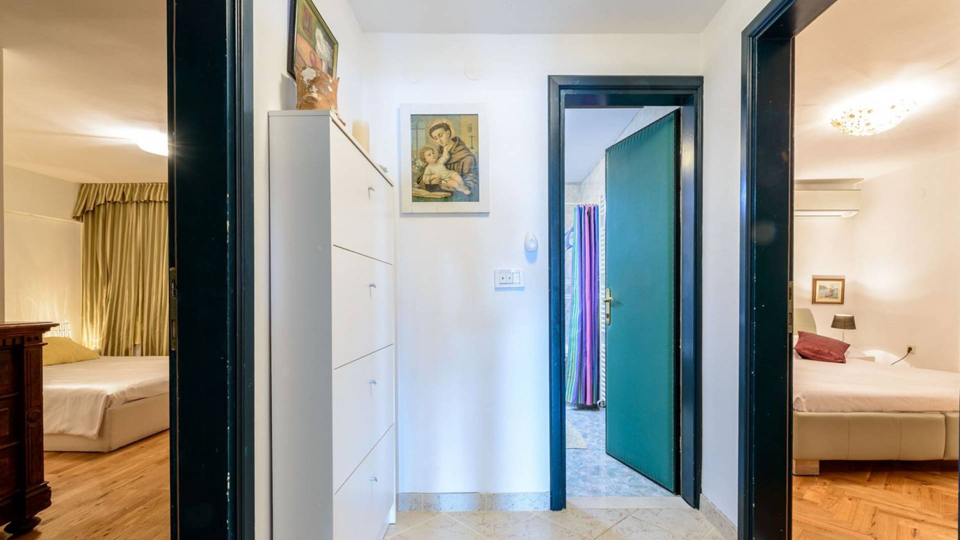 En el segundo piso de Villa Dubrovnik Residence hay habitaciones lujosamente decoradas con camas dobles, cada una con su propio baño. Cada habitación tiene televisión por satélite y aire acondicionado. El dormitorio principal tiene 1 cama doble, vestidor y baño grande con jacuzzi y ducha separada. El segundo dormitorio tiene 1 cama doble. El tercer dormitorio tiene 1 cama doble y 1 sofá cama. En la misma planta también encontrarás un salón único con sofá cama, TV y acceso a la terraza, desde donde podrás disfrutar de la vista romántica de toda la bahía y el mar infinito. Debajo de la piscina hay un apartamento separado con estacionamiento independiente y entrada donde viven los propietarios, los propietarios entran en la villa solo a pedido de los huéspedes o para mantener la piscina y el jardín de acuerdo con los huéspedes.