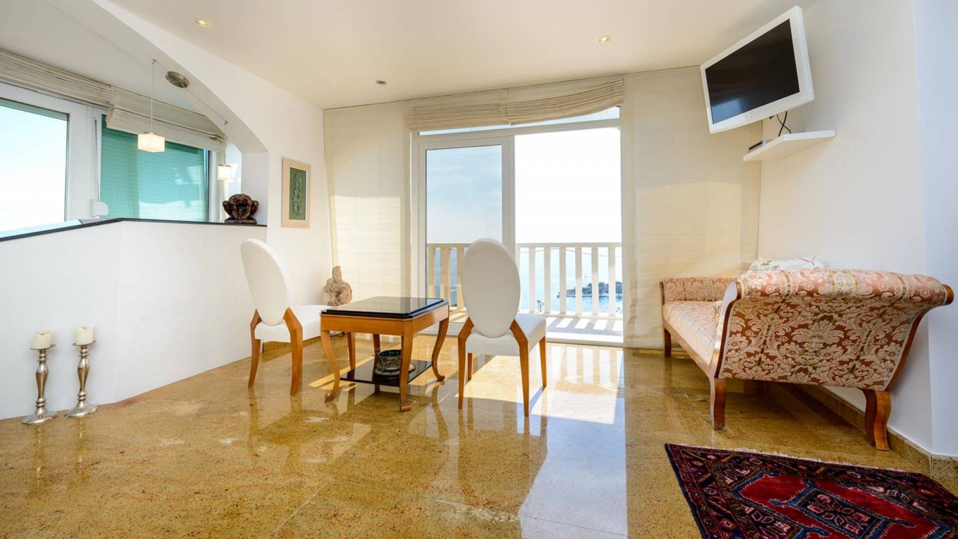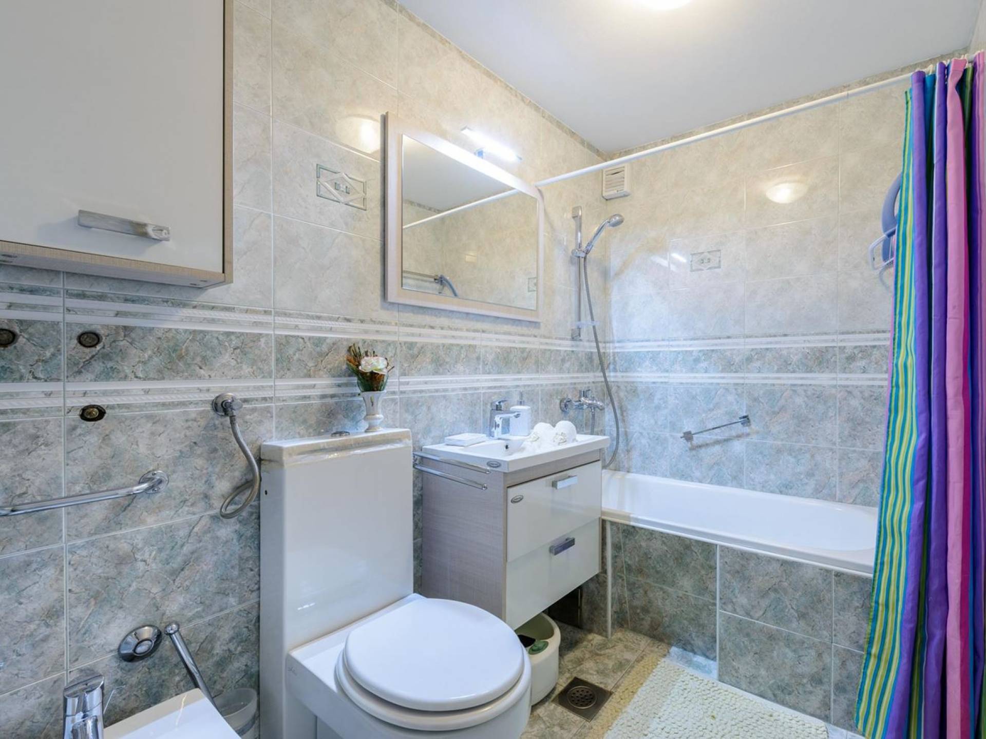 En la planta baja también hay 2 dormitorios (con cama doble cada uno, sin vista), sala y comedor, cocina equipada y baño. En la planta baja también hay una lujosa piscina cubierta (las puertas de vidrio se pueden abrir por todas partes). La piscina está equipada con jacuzzi, dos cascadas y tiene acceso a una gran terraza para tomar el sol. Afuera, en el jardín hay una pequeña piscina para niños.
