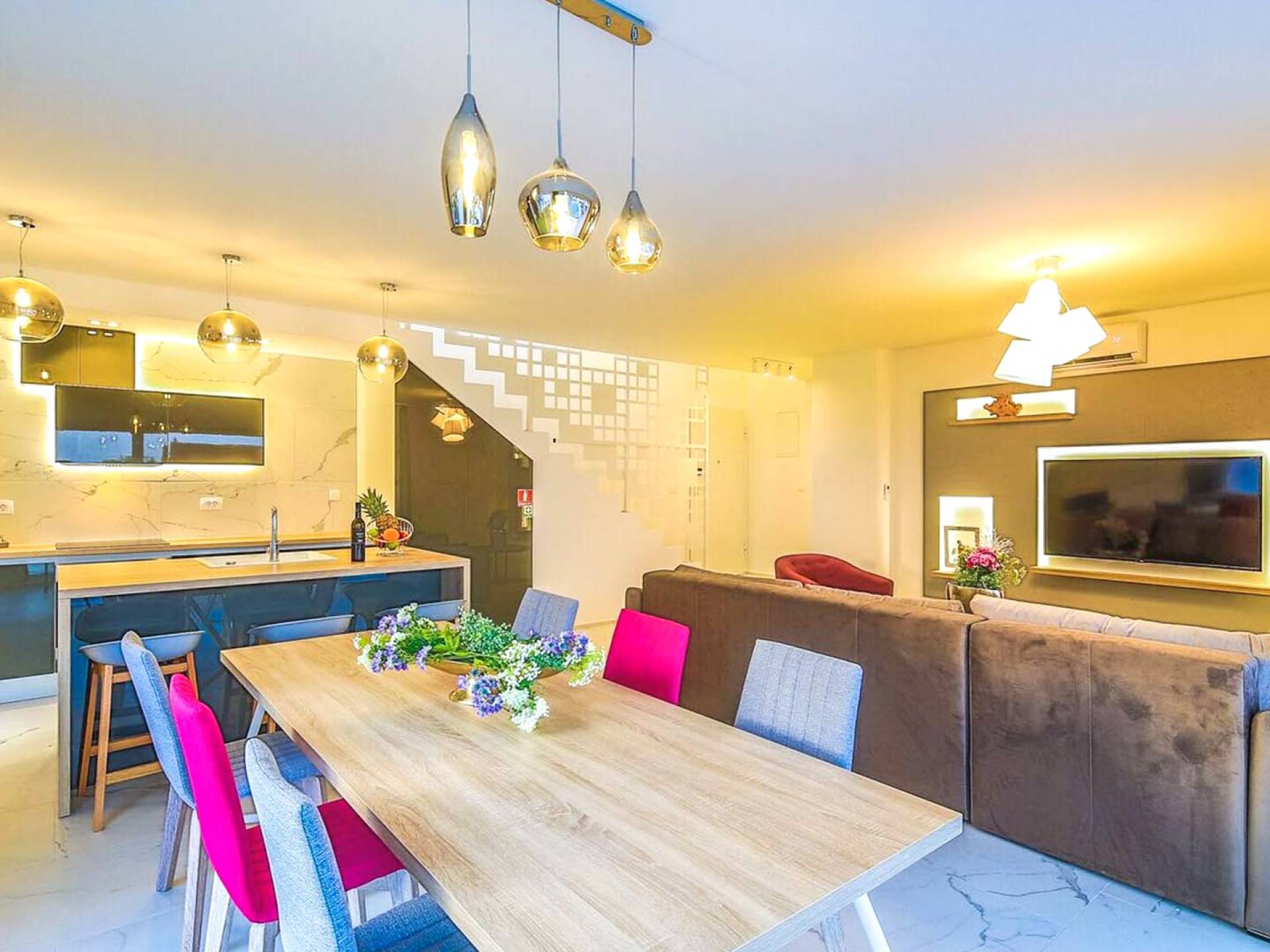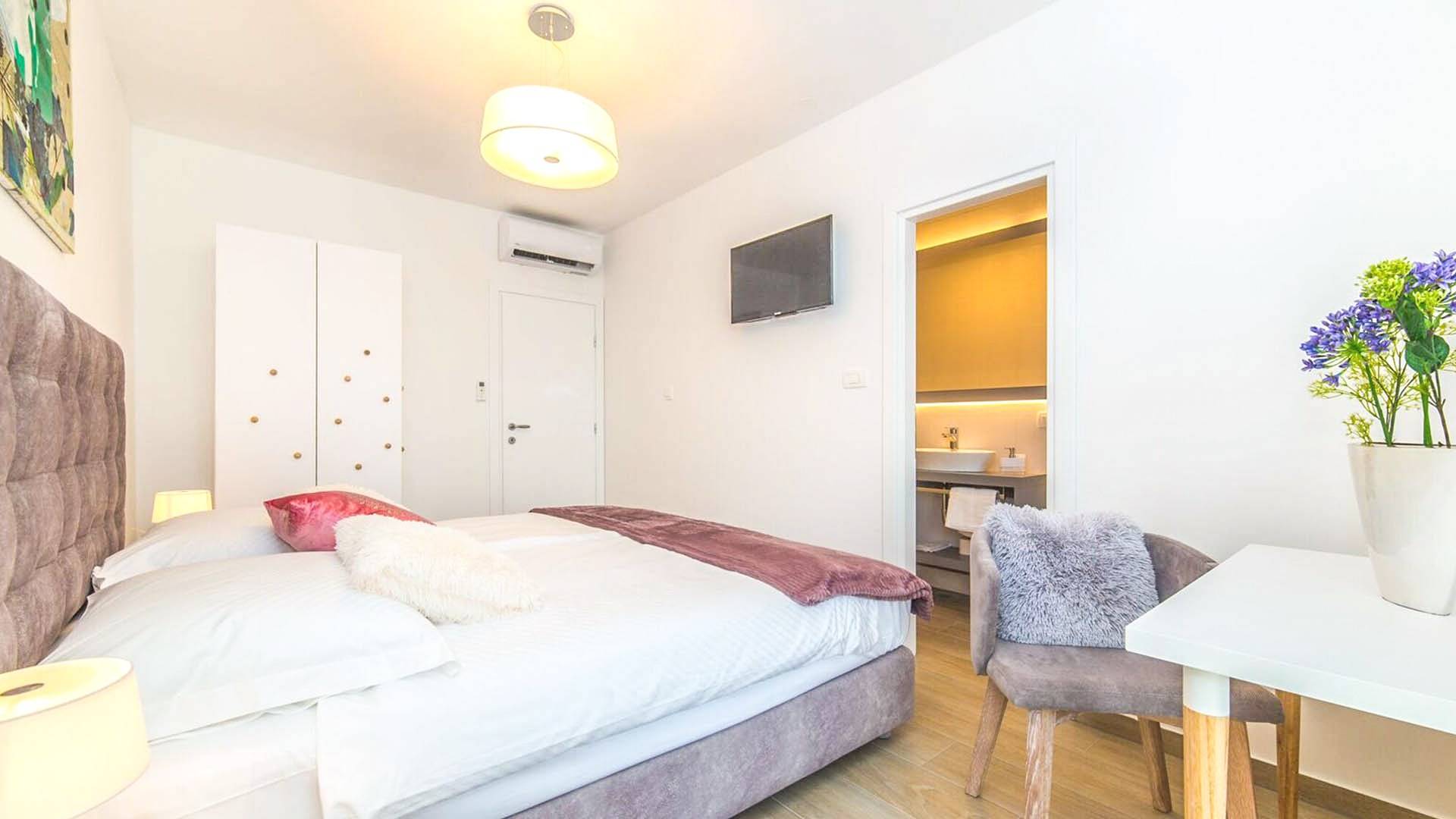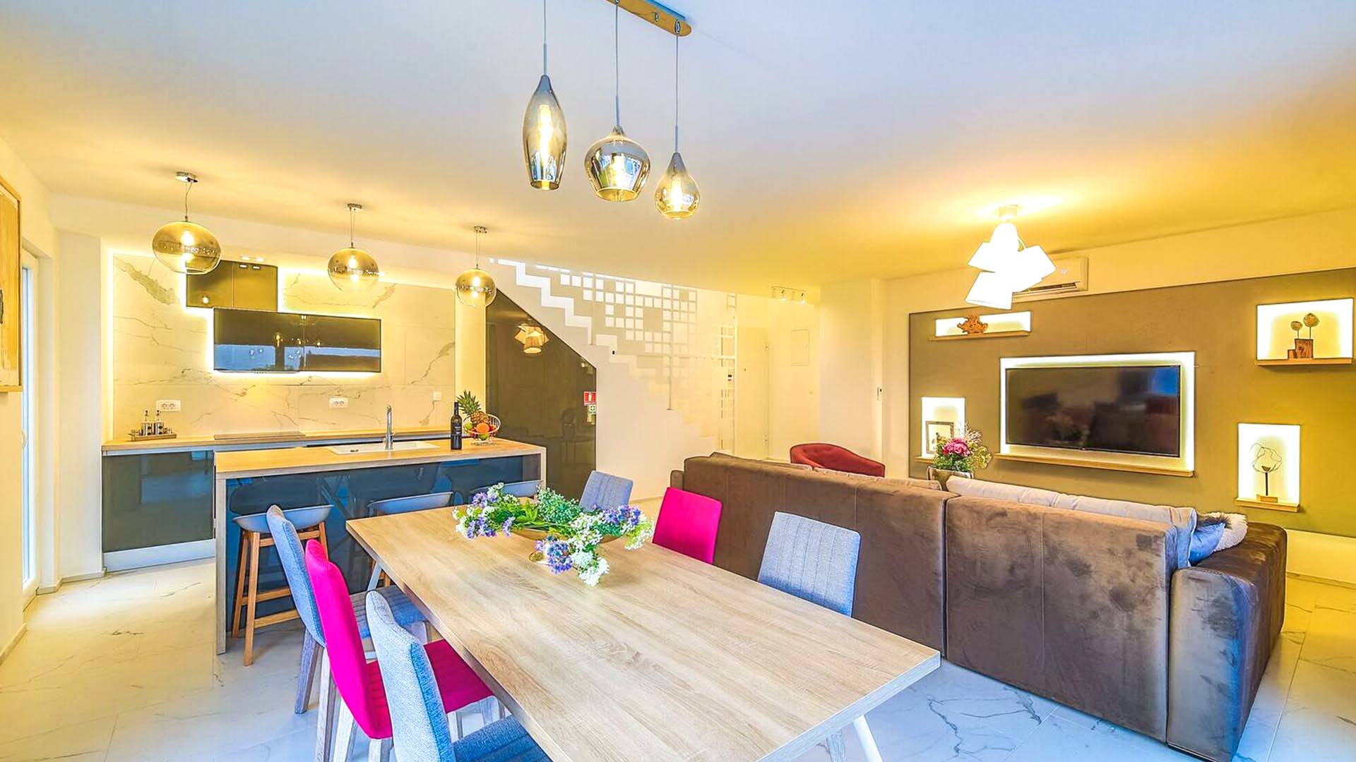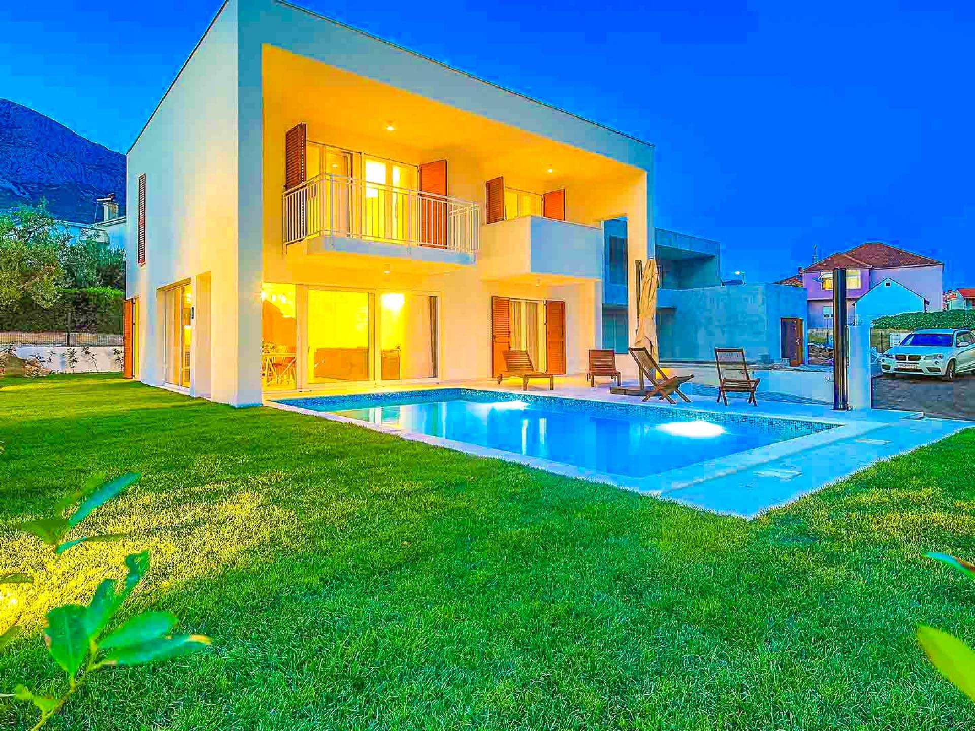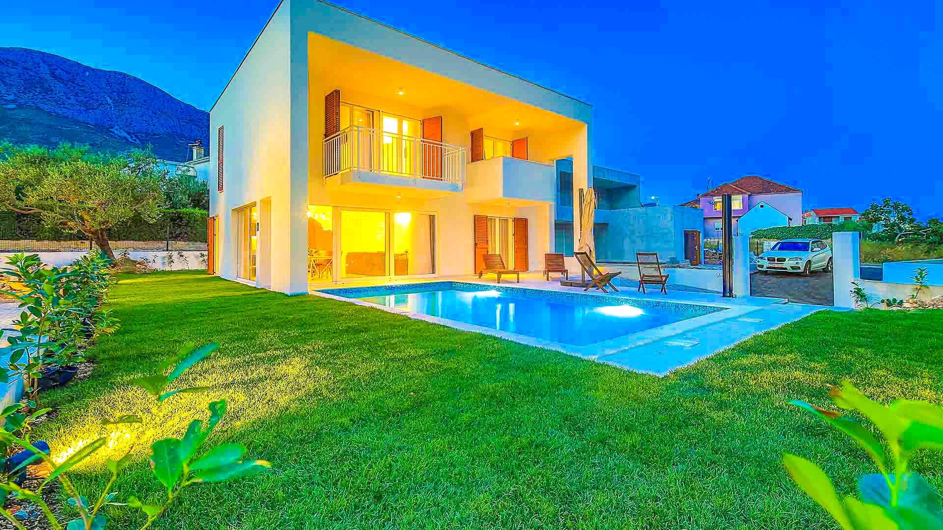 Villa Grace Split cubre el área de 142 m2 divididos en planta baja y primer piso y consta de 4 habitaciones contemporáneas que pueden alojar cómodamente hasta 10 personas, ideal para grupos de amigos o familias numerosas. La planta baja está diseñada como una sala de estar amplia y luminosa que consta de una cocina moderna totalmente equipada, una sala de estar contemporánea con comedor, 1 dormitorio con una cama doble que se puede separar en 2 camas individuales y 1 baño con ducha. El salón tiene acceso a la zona de jardín y piscina a través de una gran puerta corredera de cristal que permite que toda la zona se convierta en un concepto abierto.