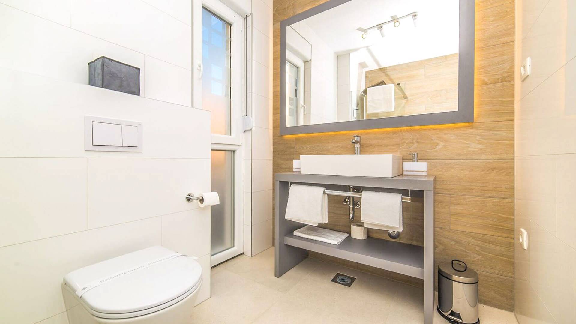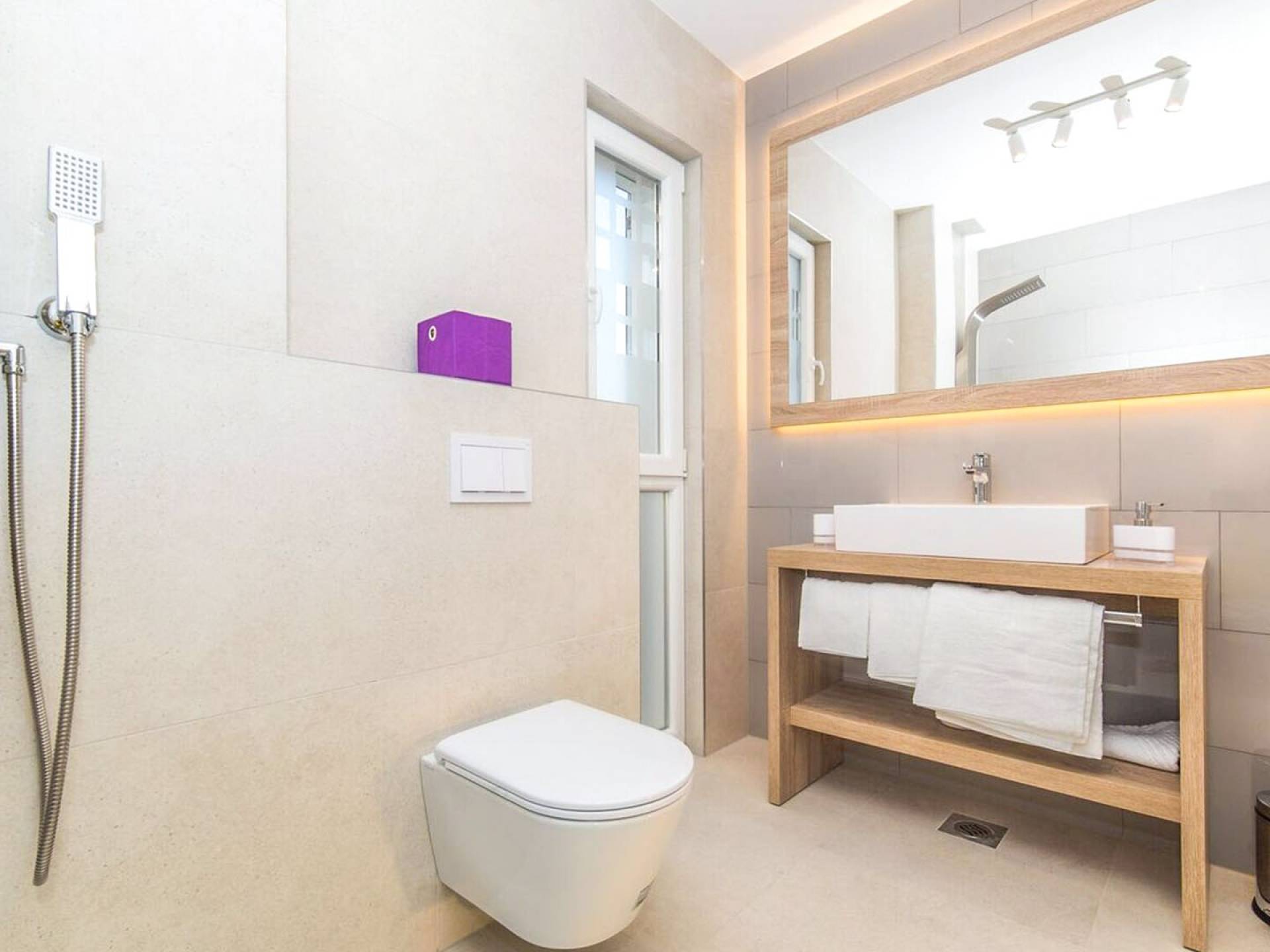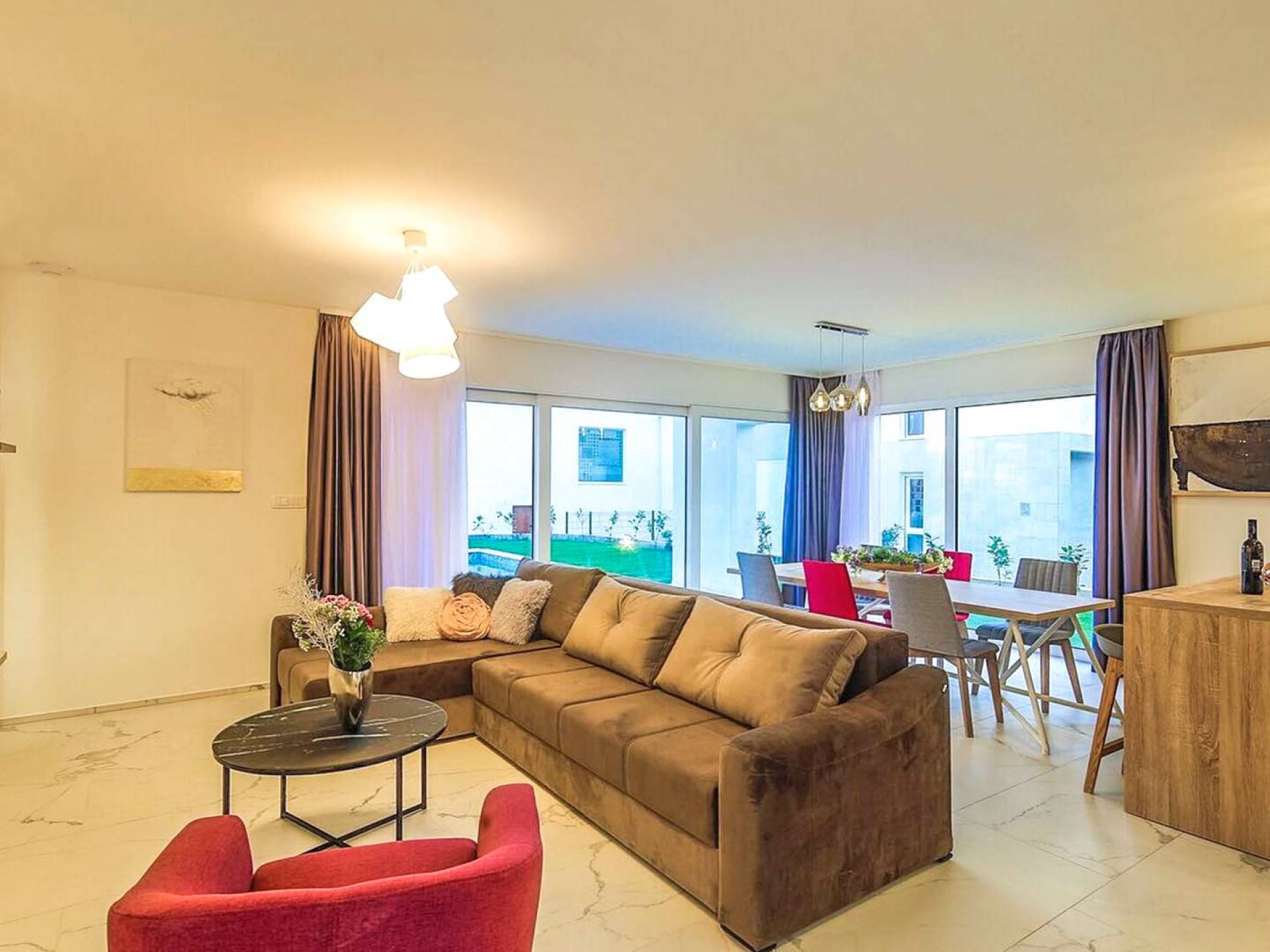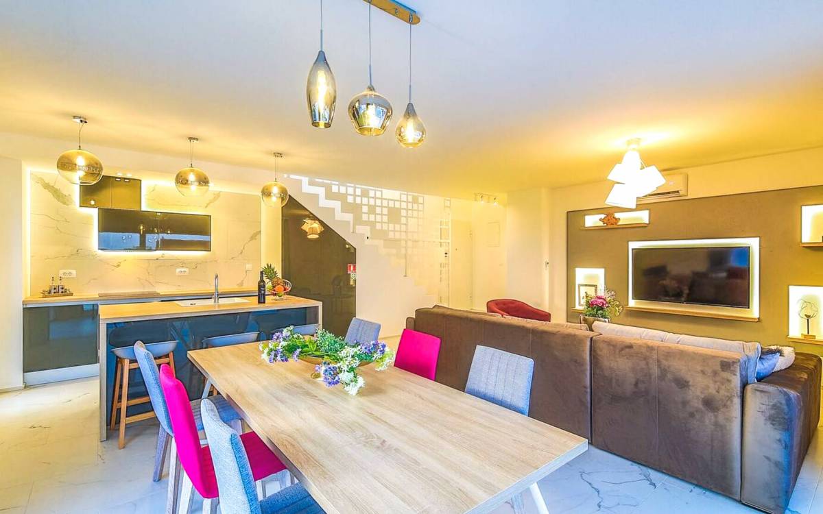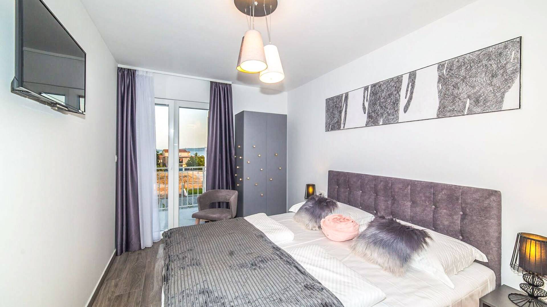 Villa Grace Split cubre el área de 142 m2 divididos en planta baja y primer piso y consta de 4 habitaciones contemporáneas que pueden alojar cómodamente hasta 10 personas, ideal para grupos de amigos o familias numerosas. La planta baja está diseñada como una sala de estar amplia y luminosa que consta de una cocina moderna totalmente equipada, una sala de estar contemporánea con comedor, 1 dormitorio con una cama doble que se puede separar en 2 camas individuales y 1 baño con ducha. El salón tiene acceso a la zona de jardín y piscina a través de una gran puerta corredera de cristal que permite que toda la zona se convierta en un concepto abierto.