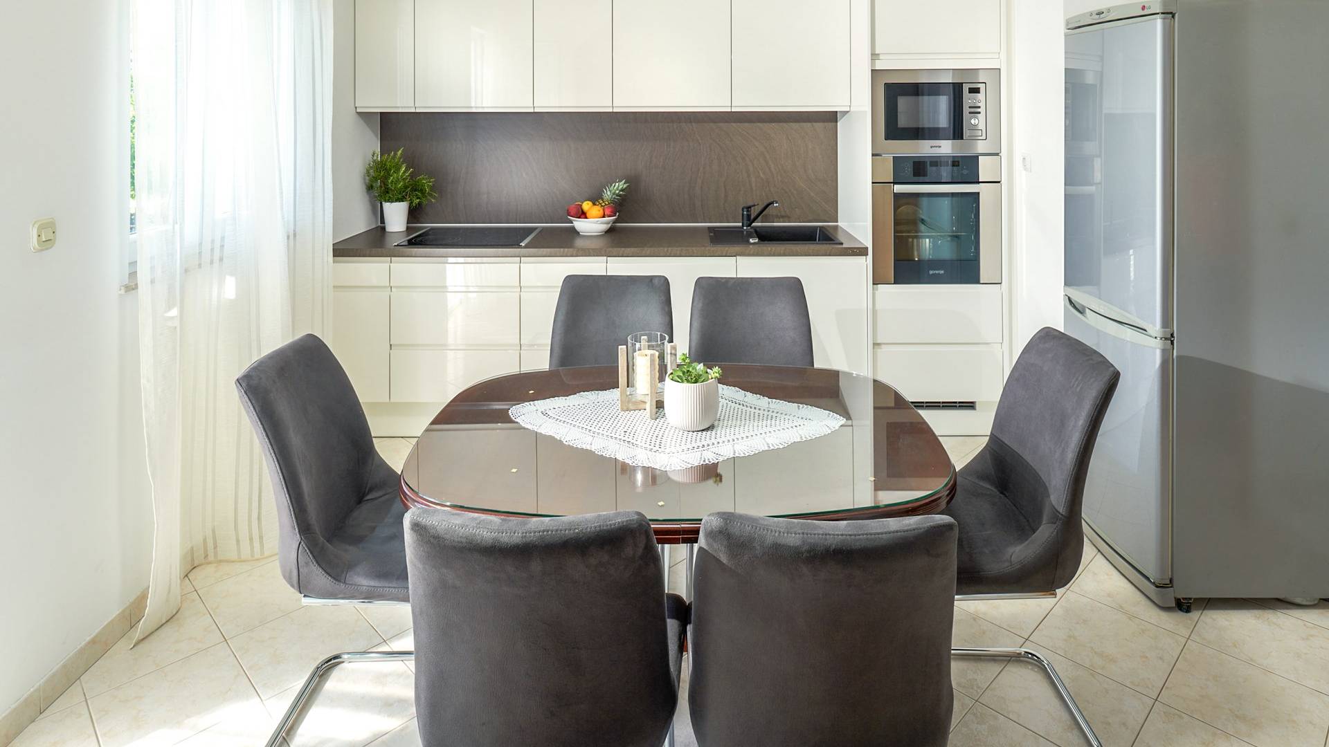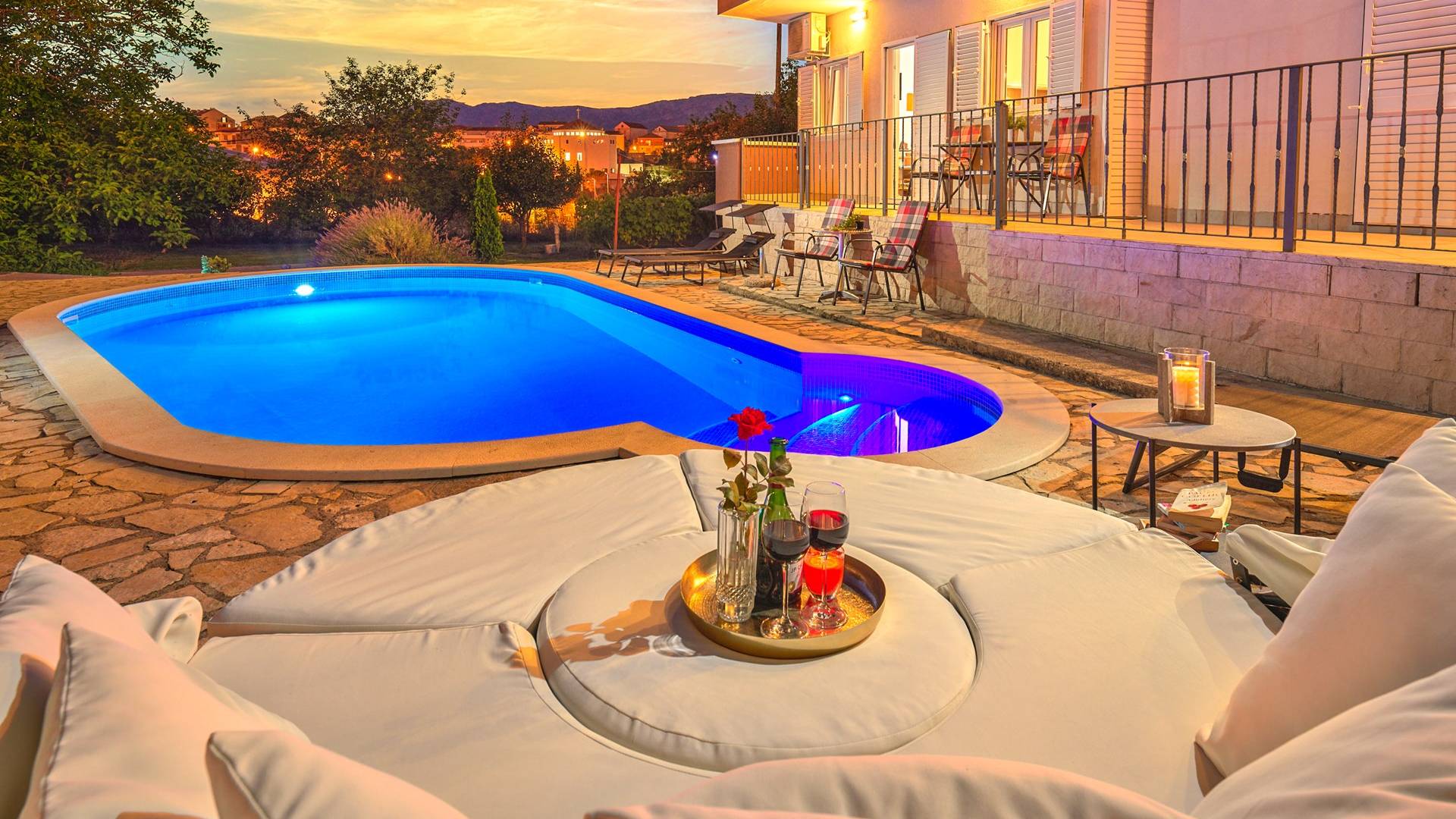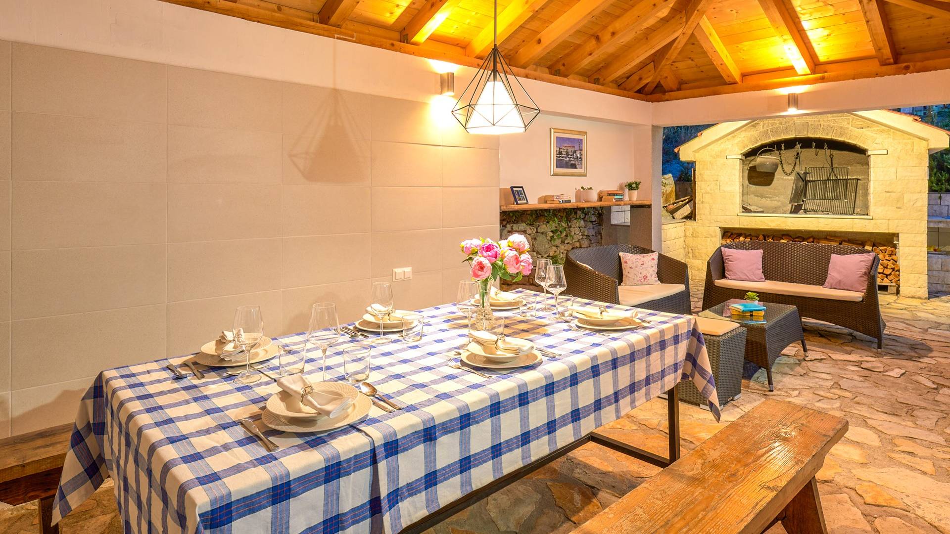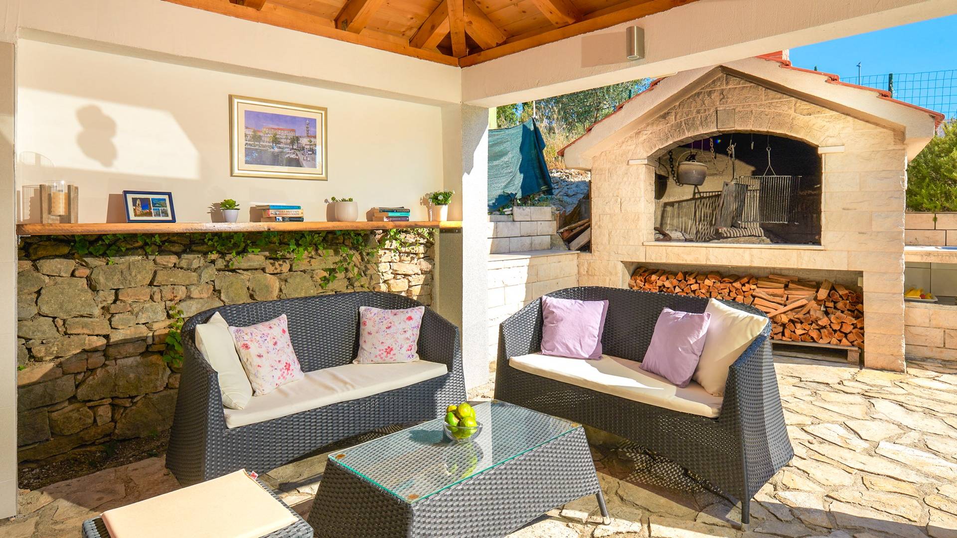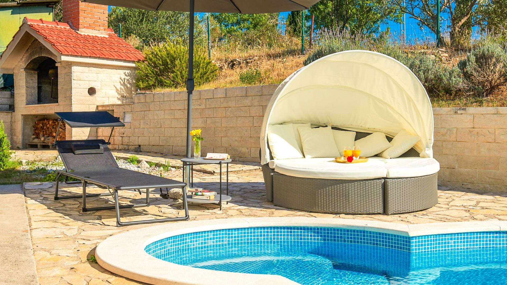 La zona exterior consta de un gran jardín con frutas y verduras de temporada (a disposición de los huéspedes), una piscina privada con ducha exterior, un aseo, una zona de descanso y un comedor con chimenea de piedra. El centro de la ciudad está a cuatro kilómetros de distancia, mientras que la hermosa playa de Žnjan está a cinco minutos en coche.