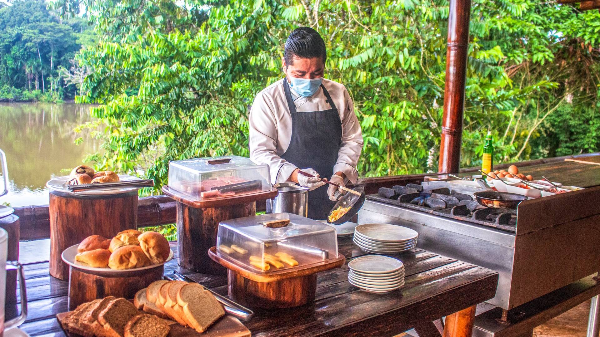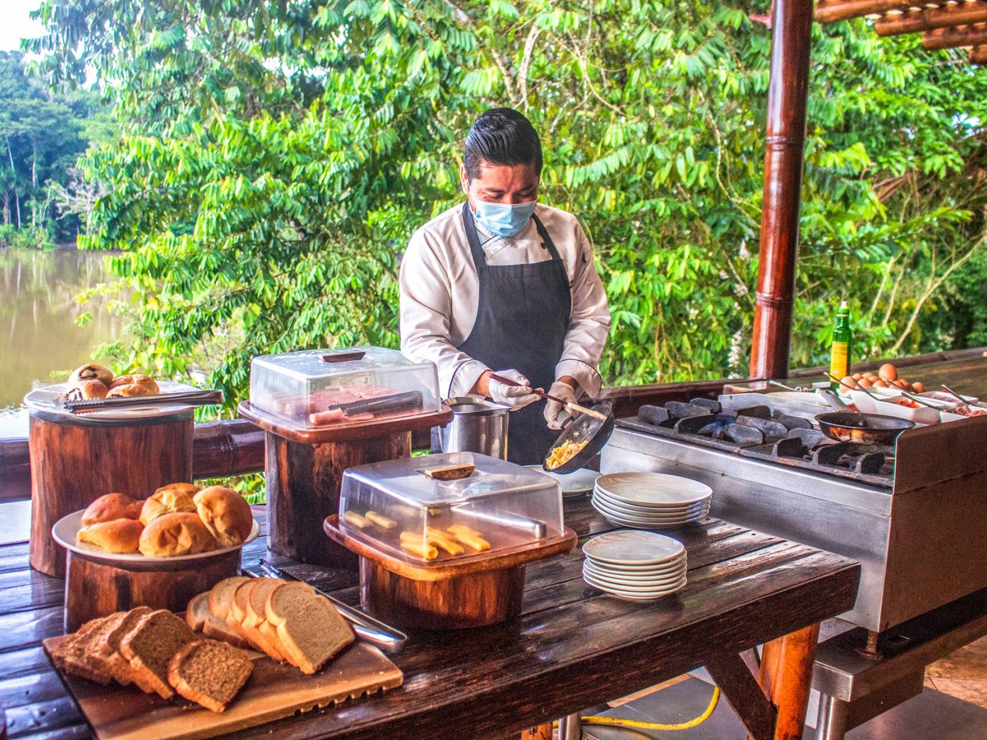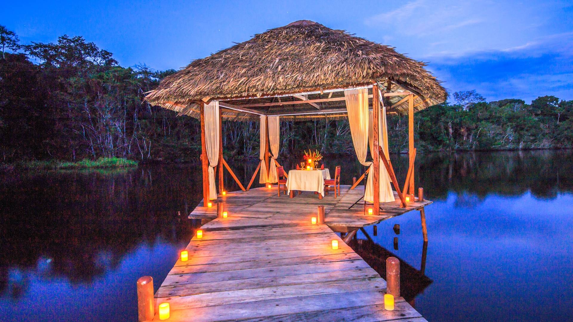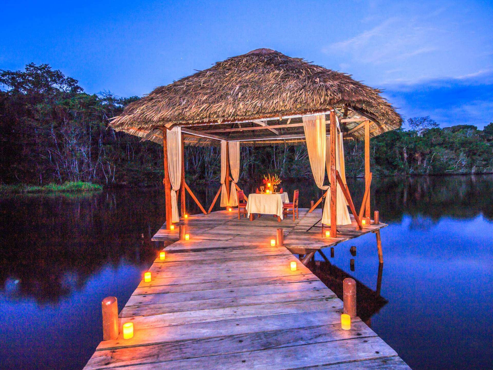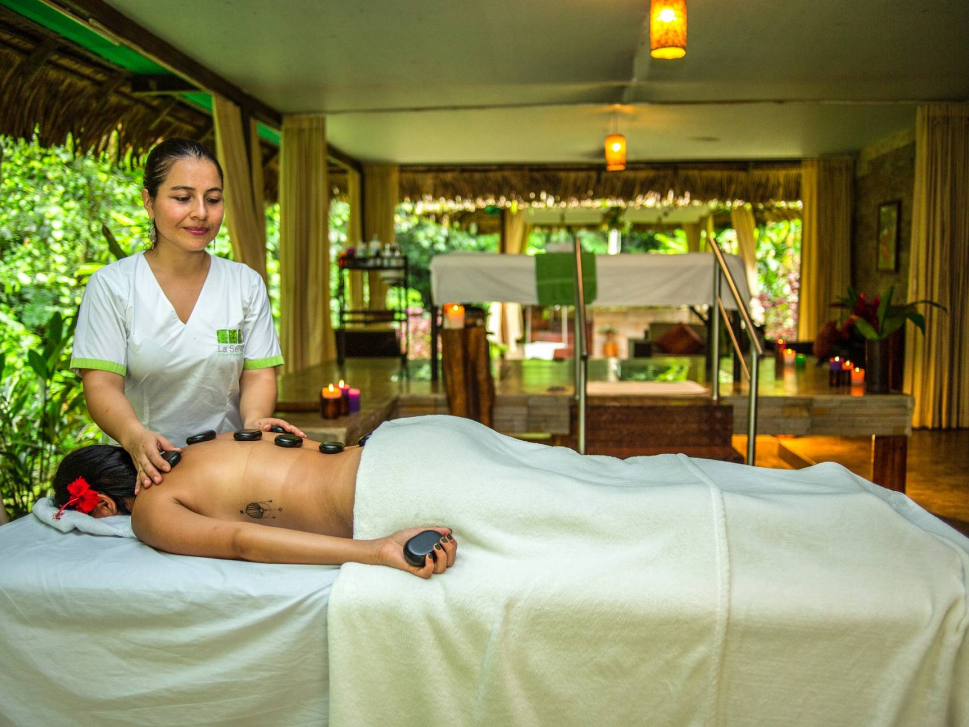 A lo largo de su tiempo con nosotros, lo acompañará un guía naturalista experto y un guía nativo. Ambos son intérpretes experimentados, amables y atractivos del fascinante ecosistema que conocen tan bien. Desde el amanecer hasta el anochecer, siempre puede contar con un miembro del personal para ayudarlo con lo que necesite en términos de alimentos y bebidas. Nuestro bar está completamente equipado con cervezas, licores y ginebras locales e internacionales. No dude en iniciar una cuenta y pagar la noche anterior a su partida. La Selva cuenta con un spa único, donde los tratamientos especializados crean una mayor sensación de relajación y conexión con las asombrosas maravillas del bosque. También ofrecemos sesiones y clases de yoga íntimas en el embarcadero con vista a las aguas del lago ... ¿Listo para encontrar la paz en medio del corazón respirable del bosque ...?