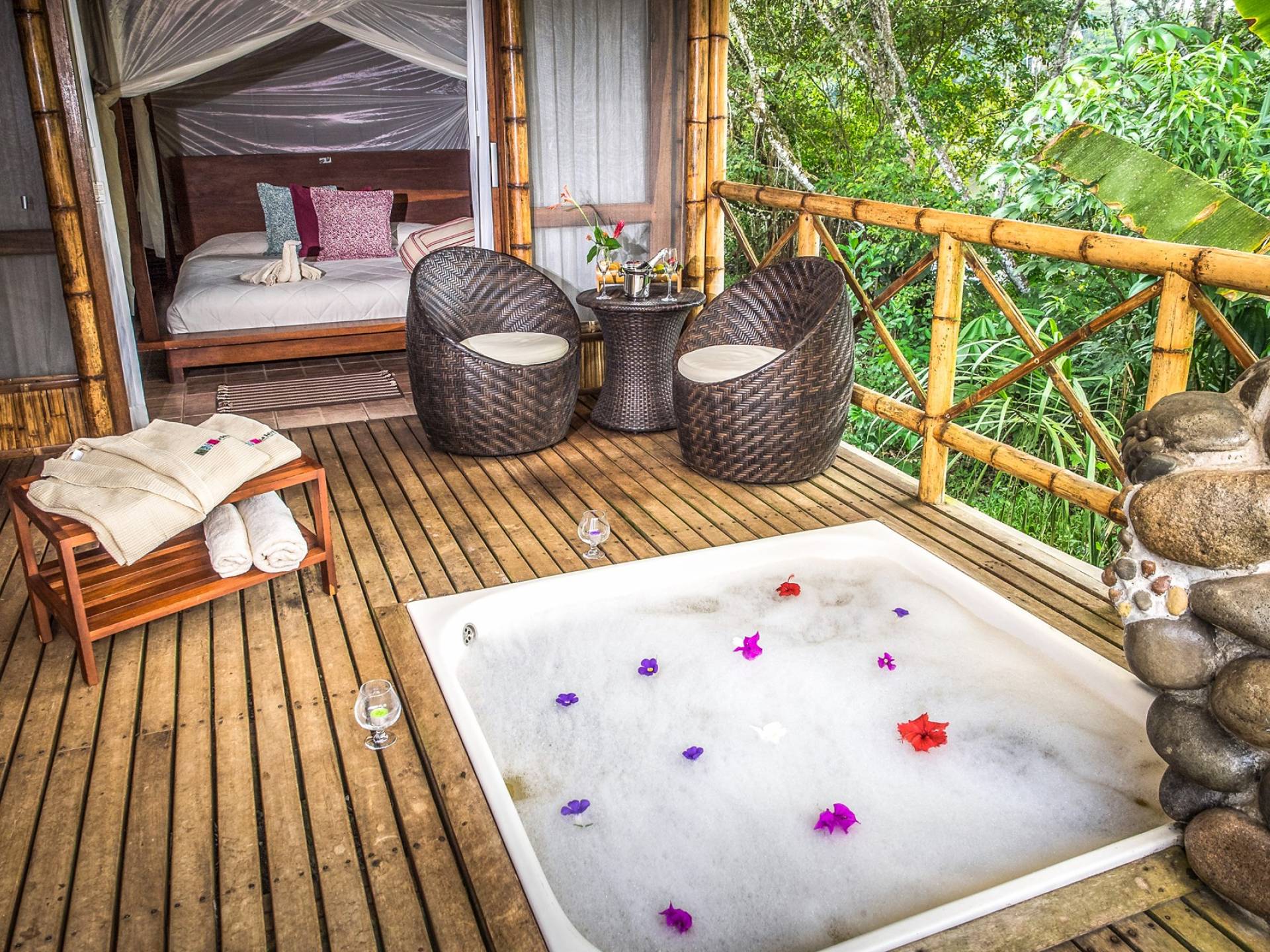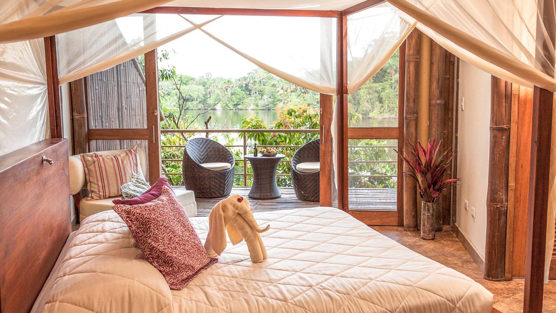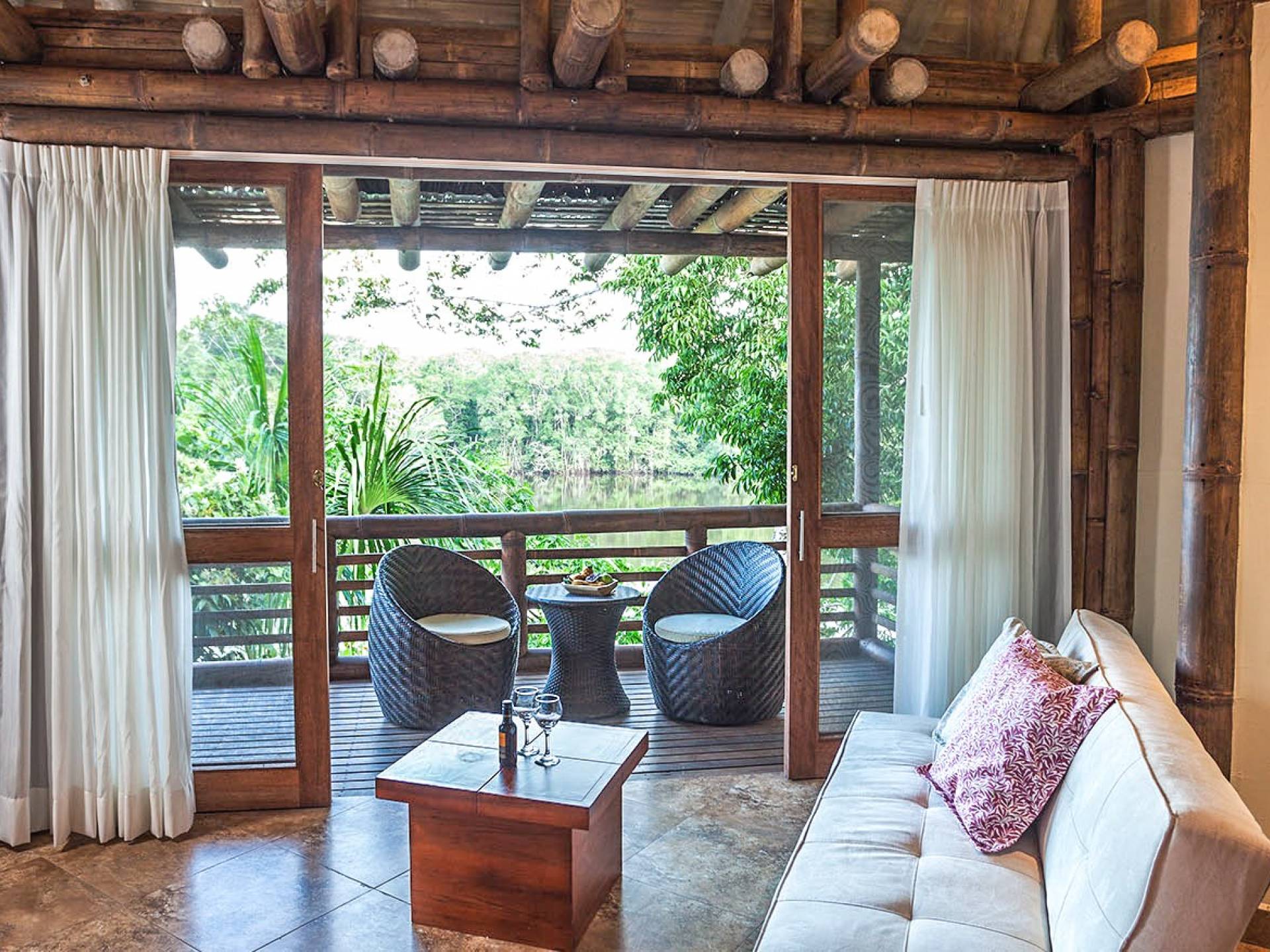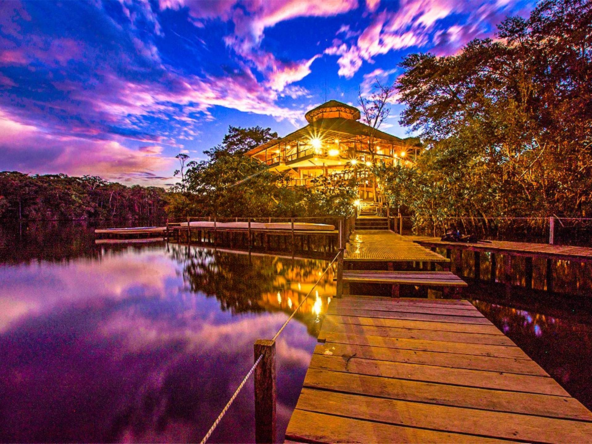 La Selva Amazon Lodge está ubicado en la orilla norte del río Napo, que eventualmente fluye hacia el este y se une al poderoso Amazonas en su camino hacia el Océano Atlántico. Se tarda unas cinco horas en viajar desde su hotel en Quito a su suite en la jungla, en avión, canoa motorizada, a pie y llegando en una silenciosa canoa de remo. El albergue cuenta con 19 amplias suites, incluidas tres suites escénicas con vista al lago Garzacocha y cuatro amplias suites familiares.