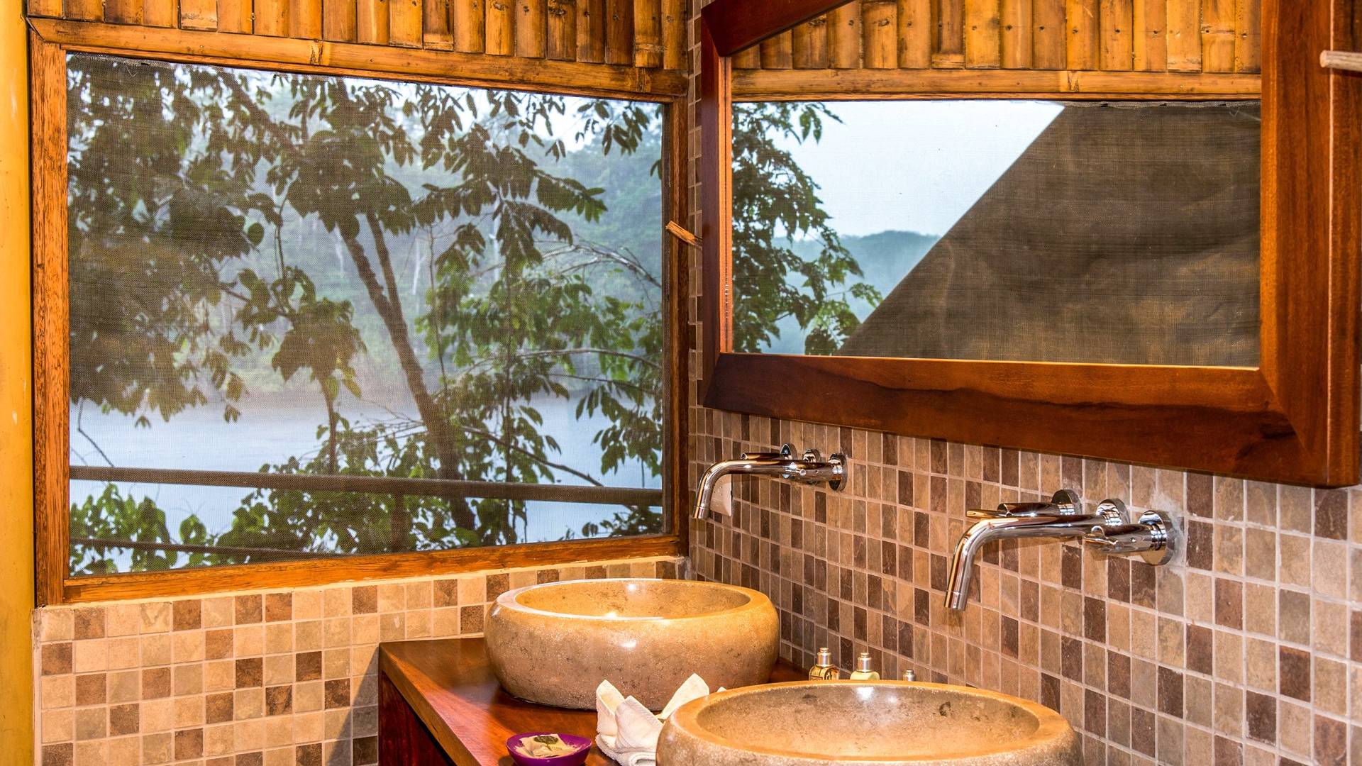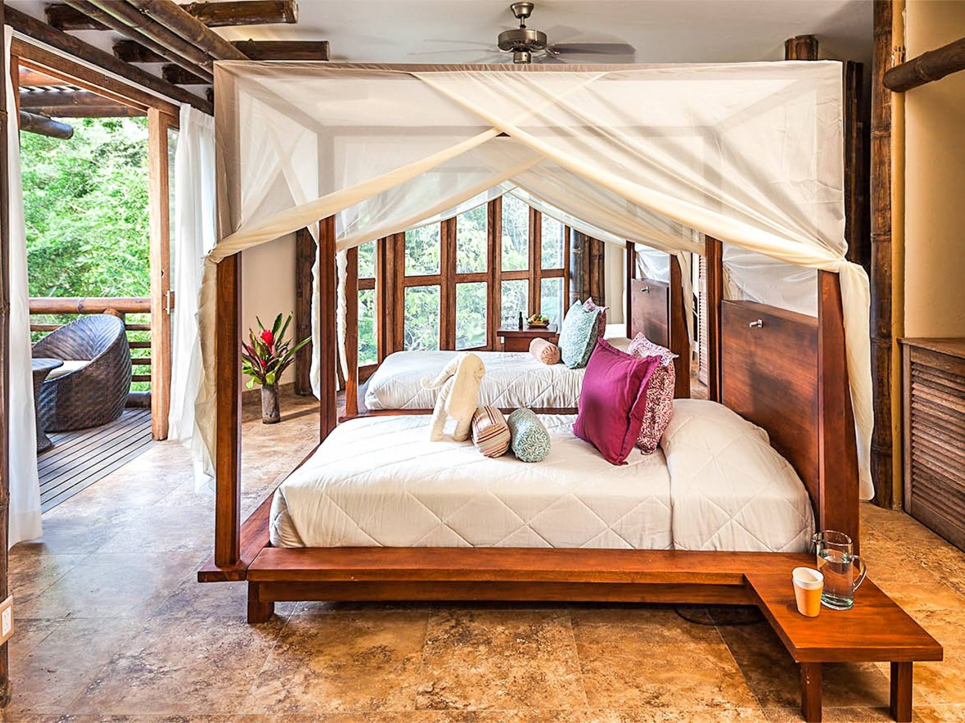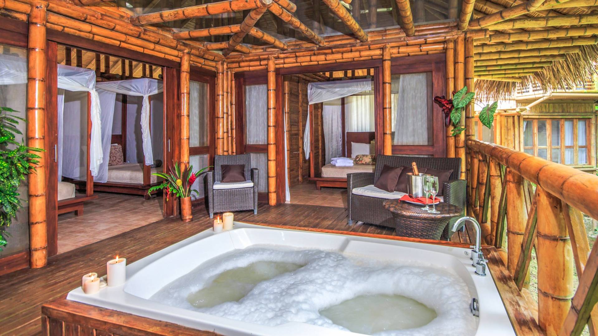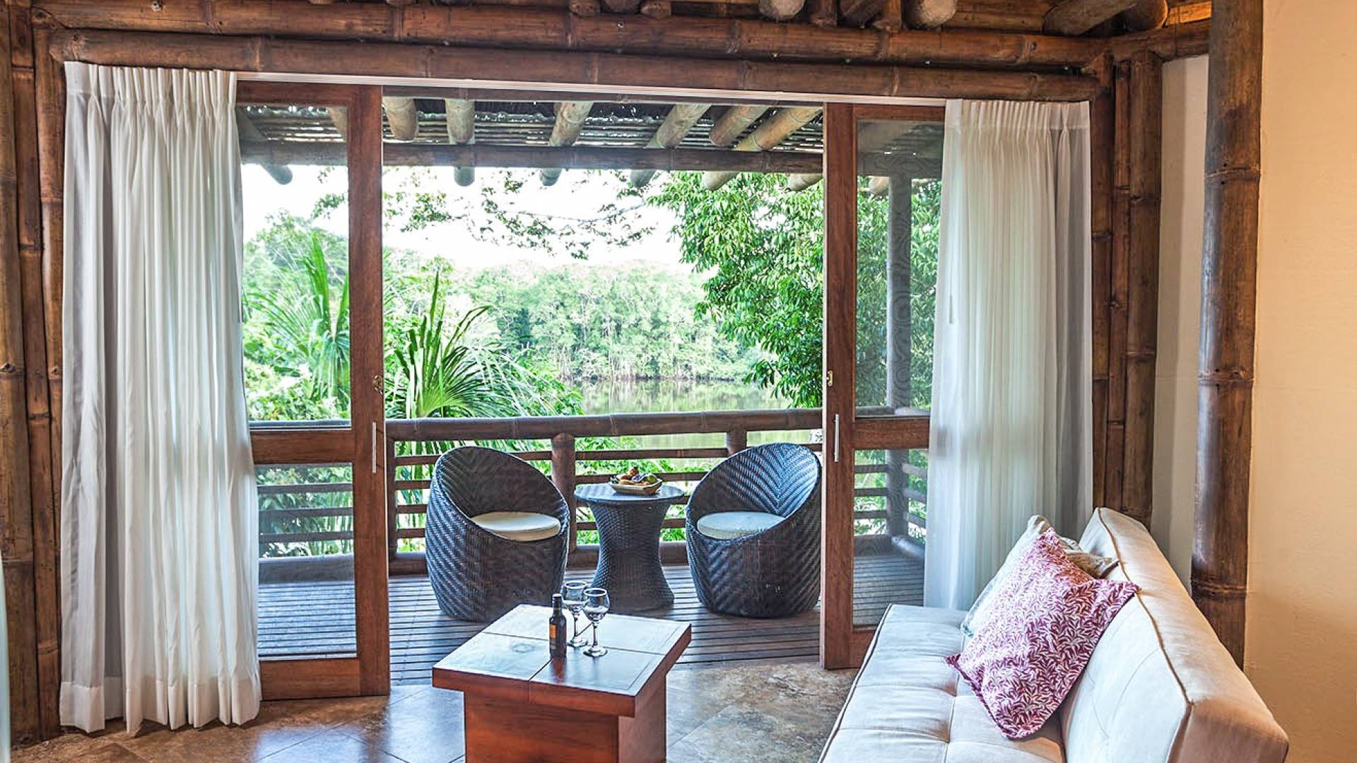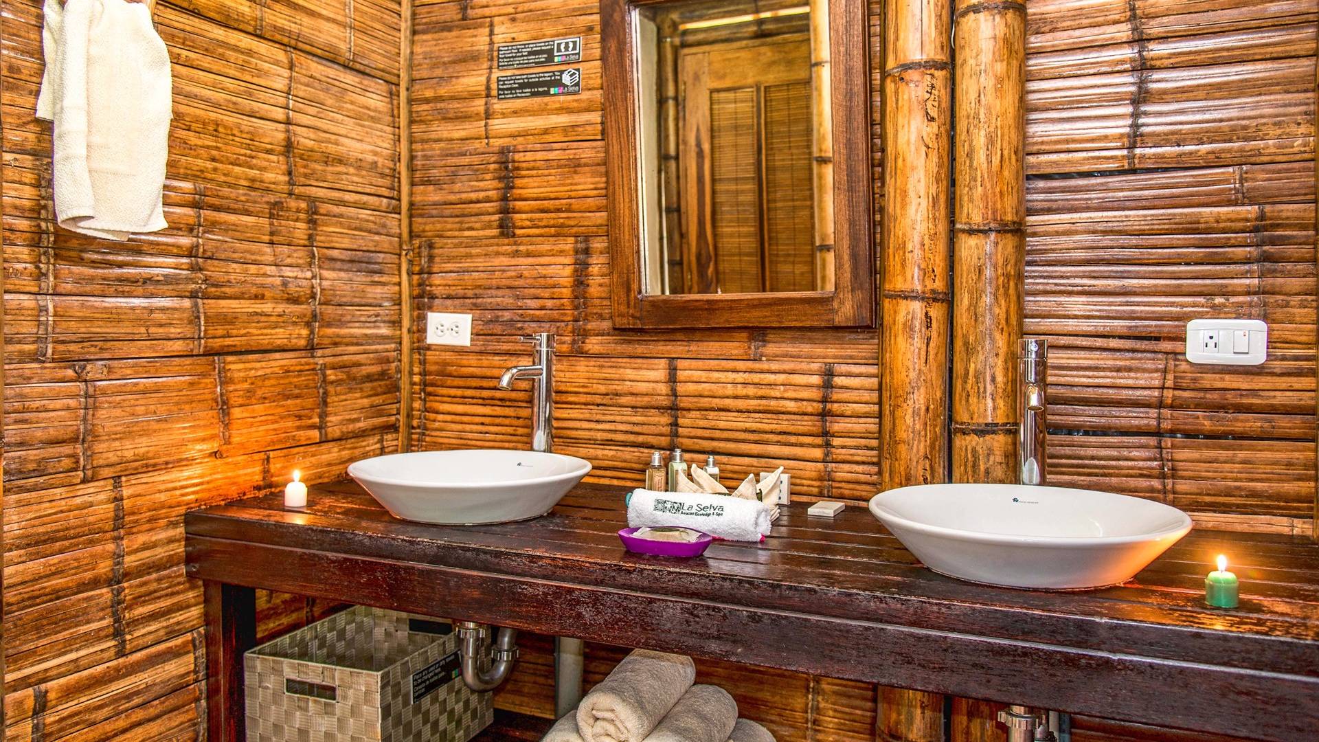 Las suites Scenic y Superior incluyen exclusivas duchas con efecto de lluvia tropical, balcones privados y vistas panorámicas, mientras que las suites familiares incluyen baños muy espaciosos, hamacas y una bañera de hidromasaje en un porche privado. El diseño de las habitaciones de La Selva está inspirado en la arquitectura de las casas de los nativos. El diseño aireado y sombreado mantiene las cosas frescas incluso en las horas más calurosas del día.