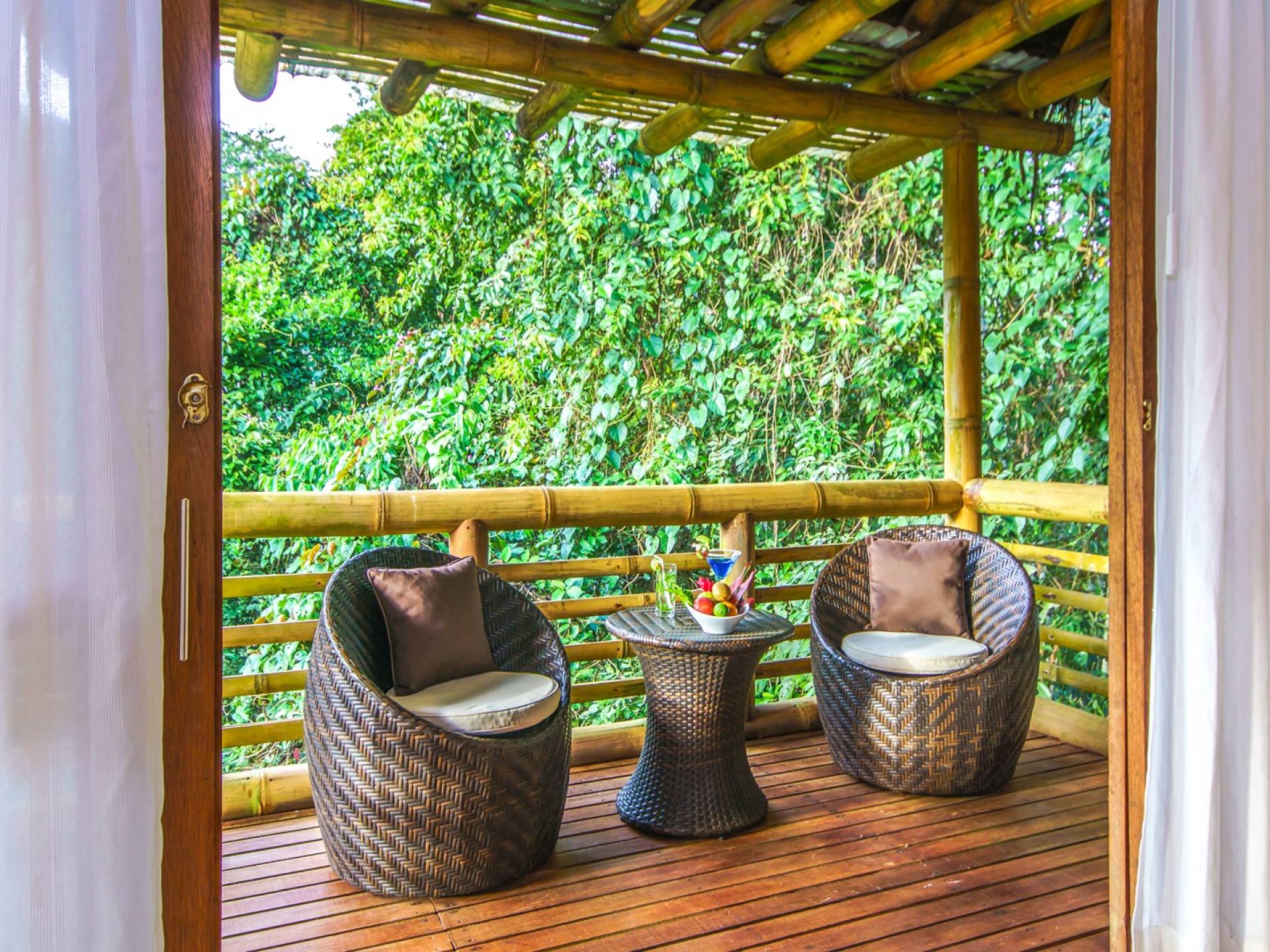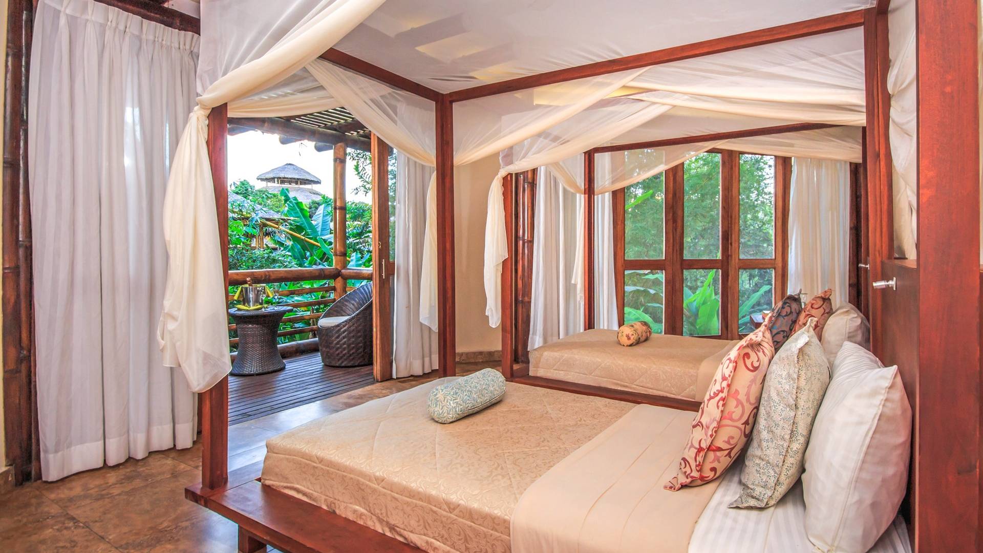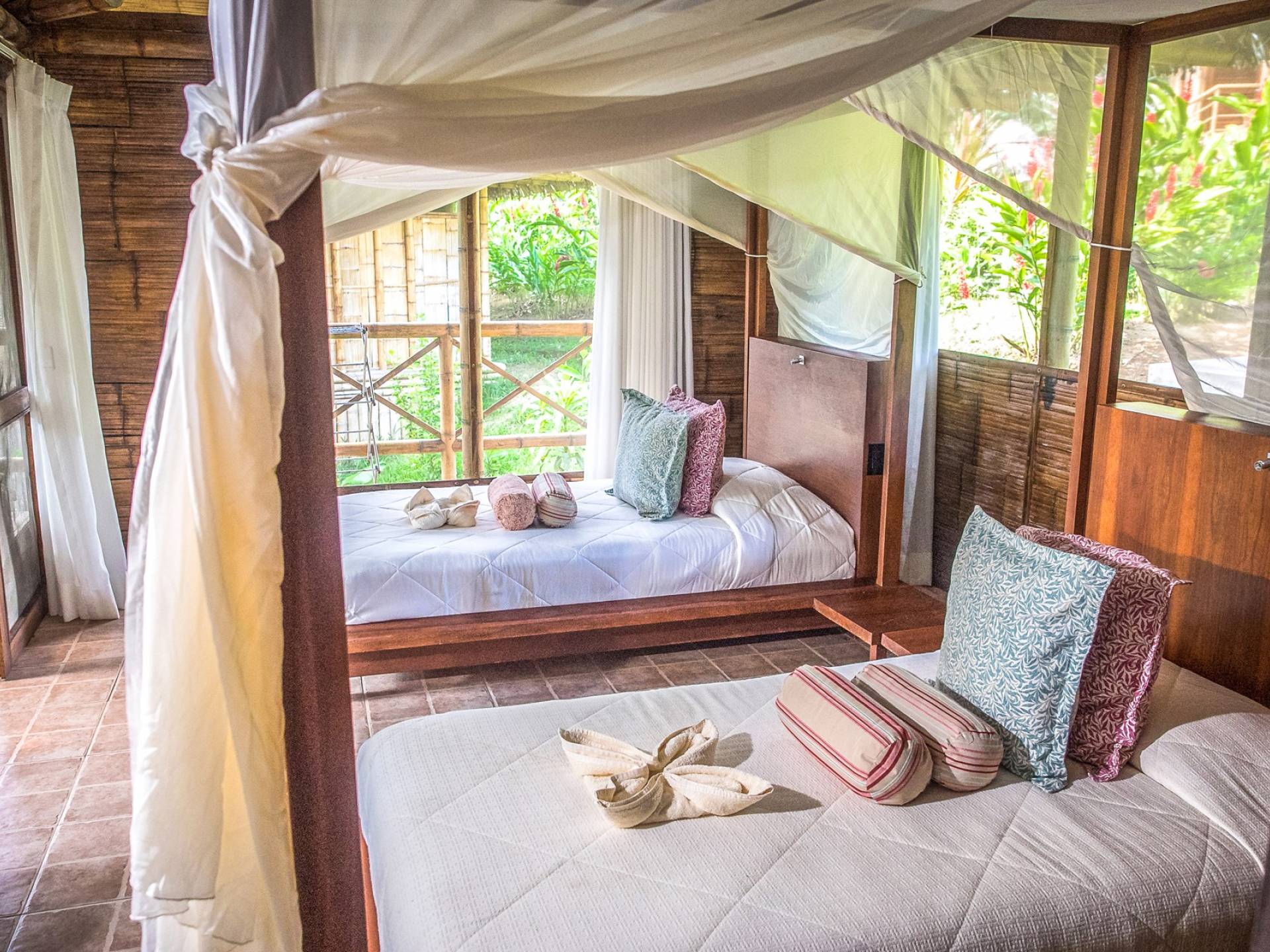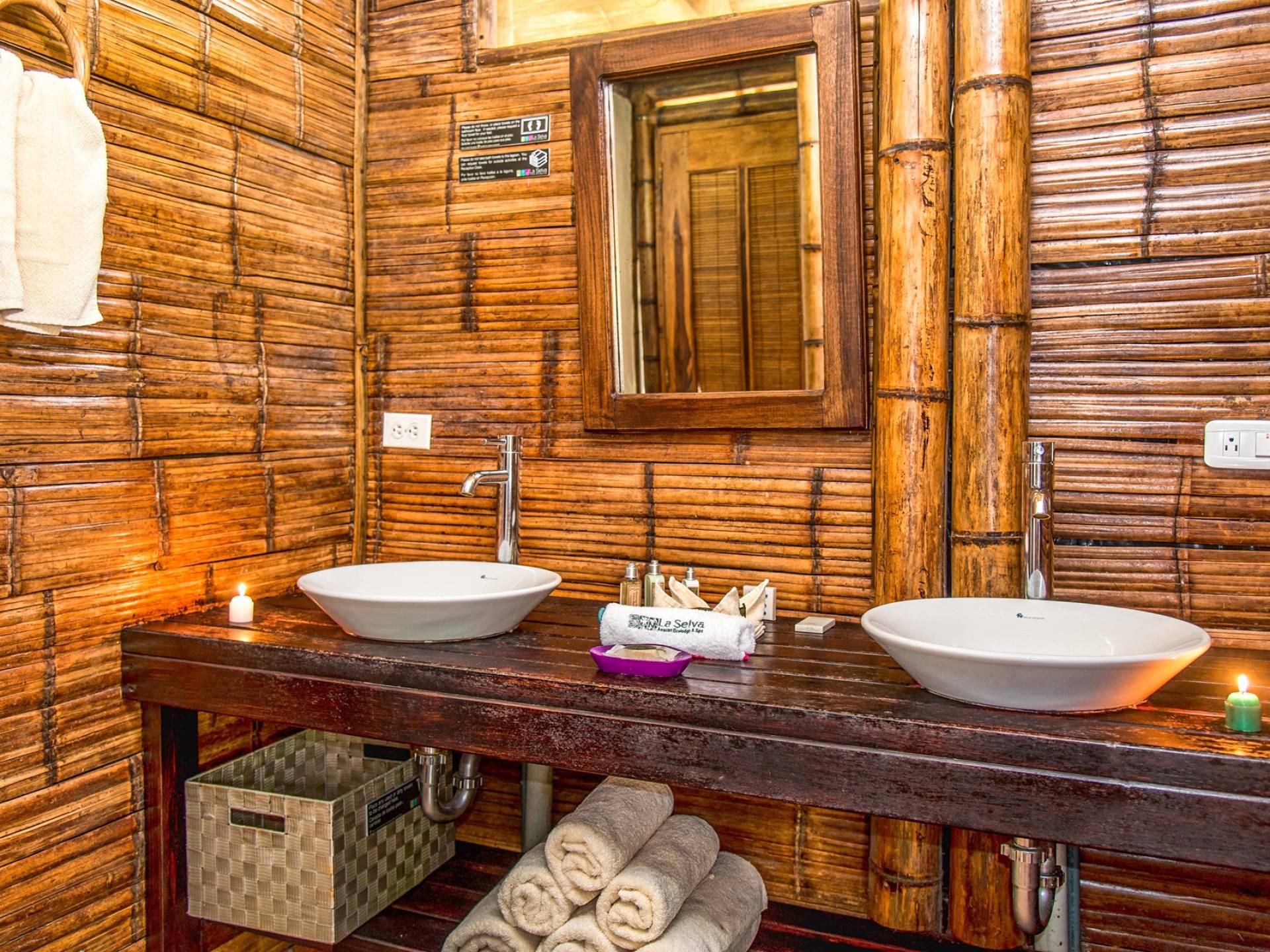 Las suites Scenic y Superior incluyen exclusivas duchas con efecto de lluvia tropical, balcones privados y vistas panorámicas, mientras que las suites familiares incluyen baños muy espaciosos, hamacas y una bañera de hidromasaje en un porche privado. El diseño de las habitaciones de La Selva está inspirado en la arquitectura de las casas de los nativos. El diseño aireado y sombreado mantiene las cosas frescas incluso en las horas más calurosas del día.