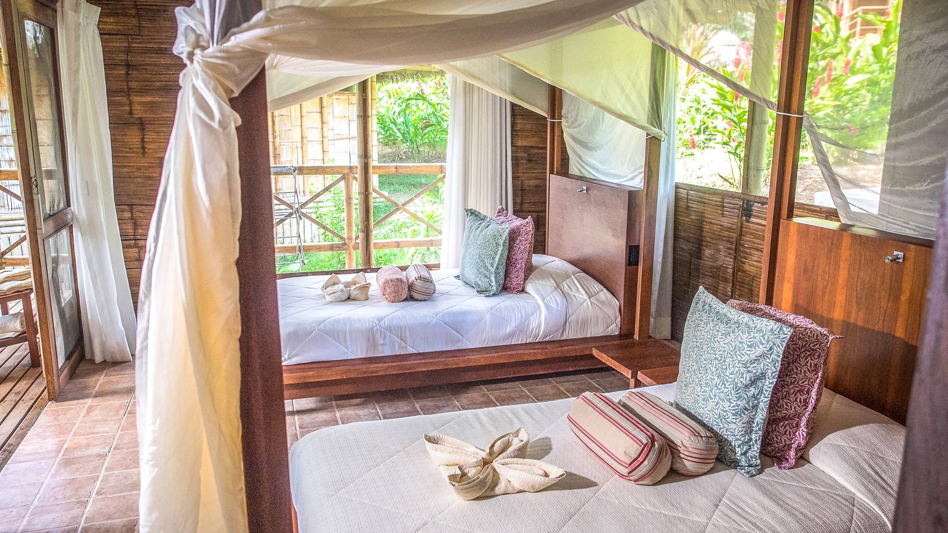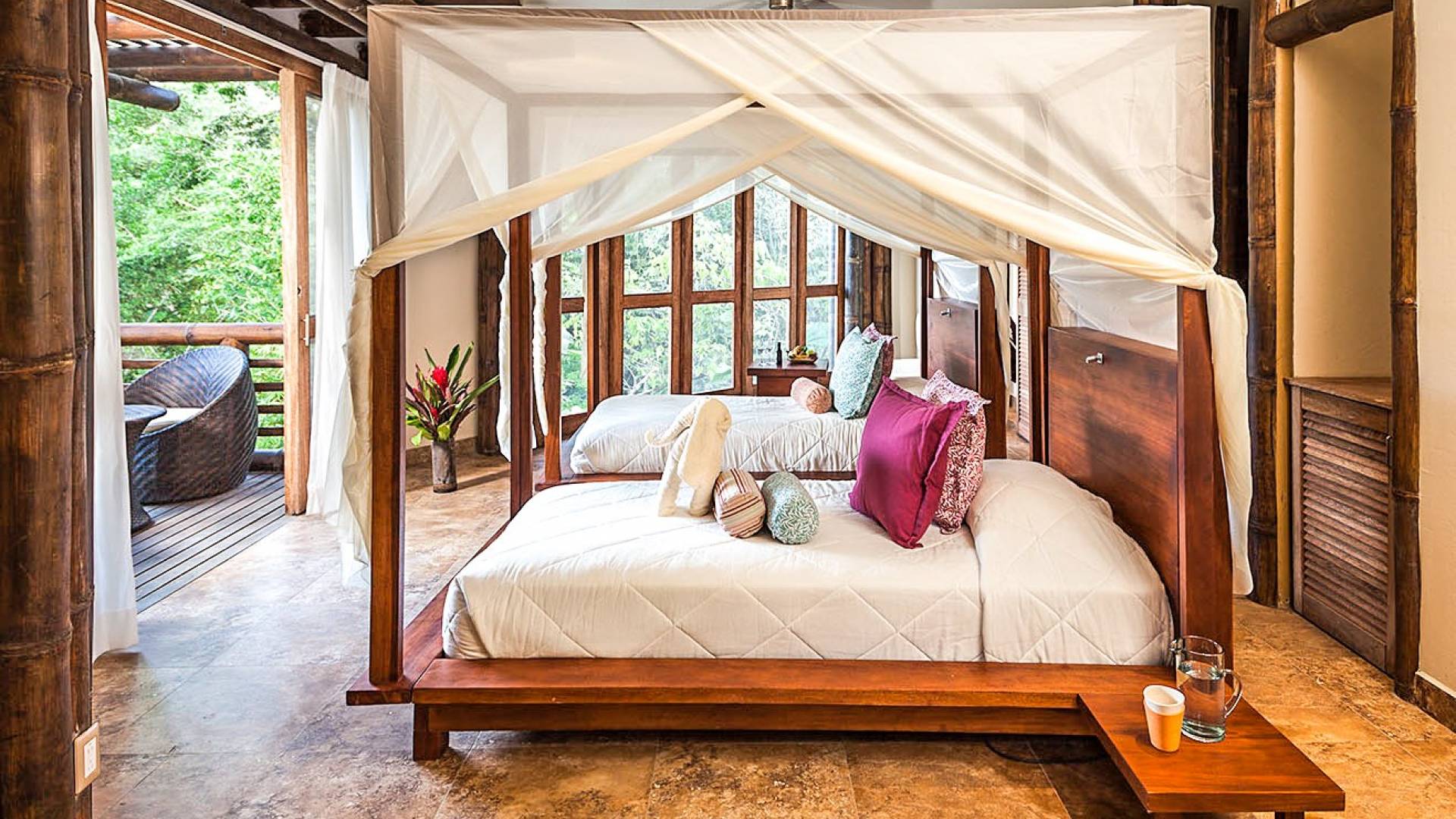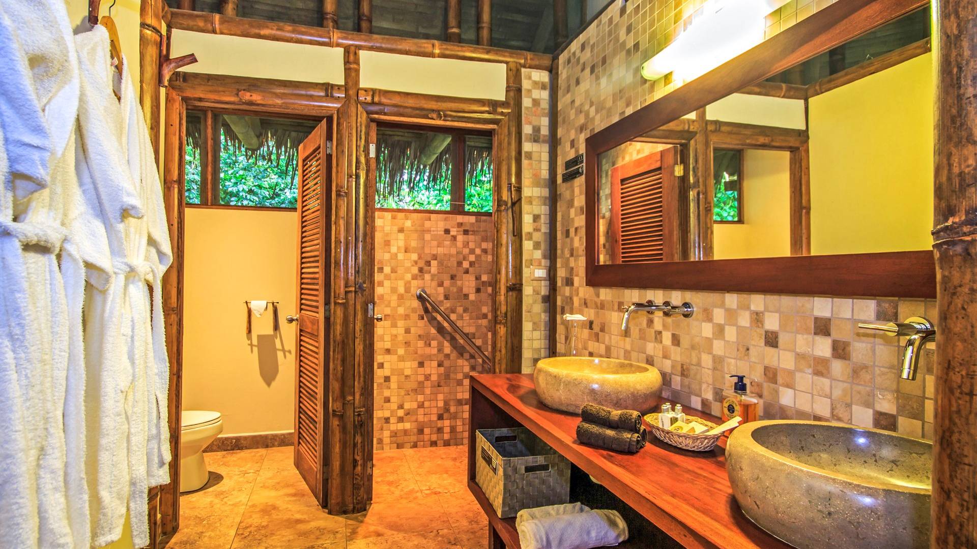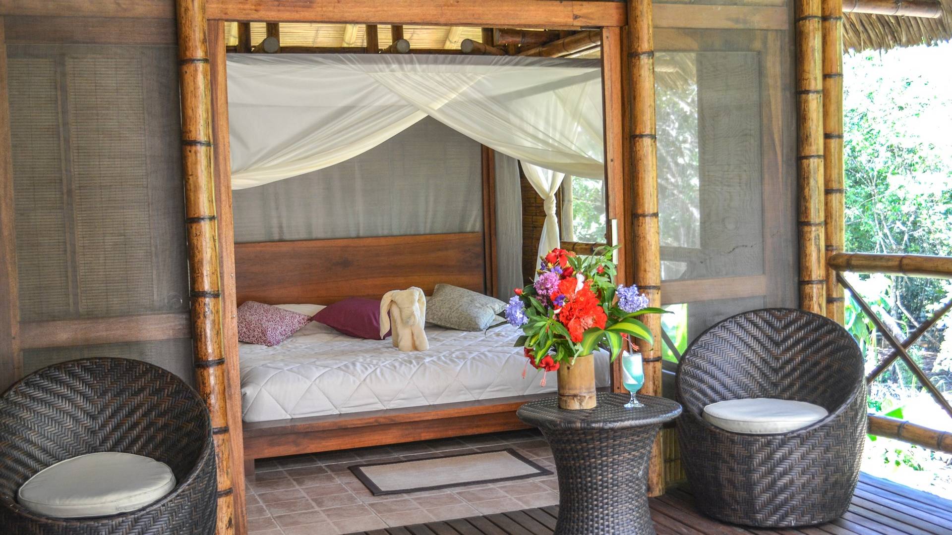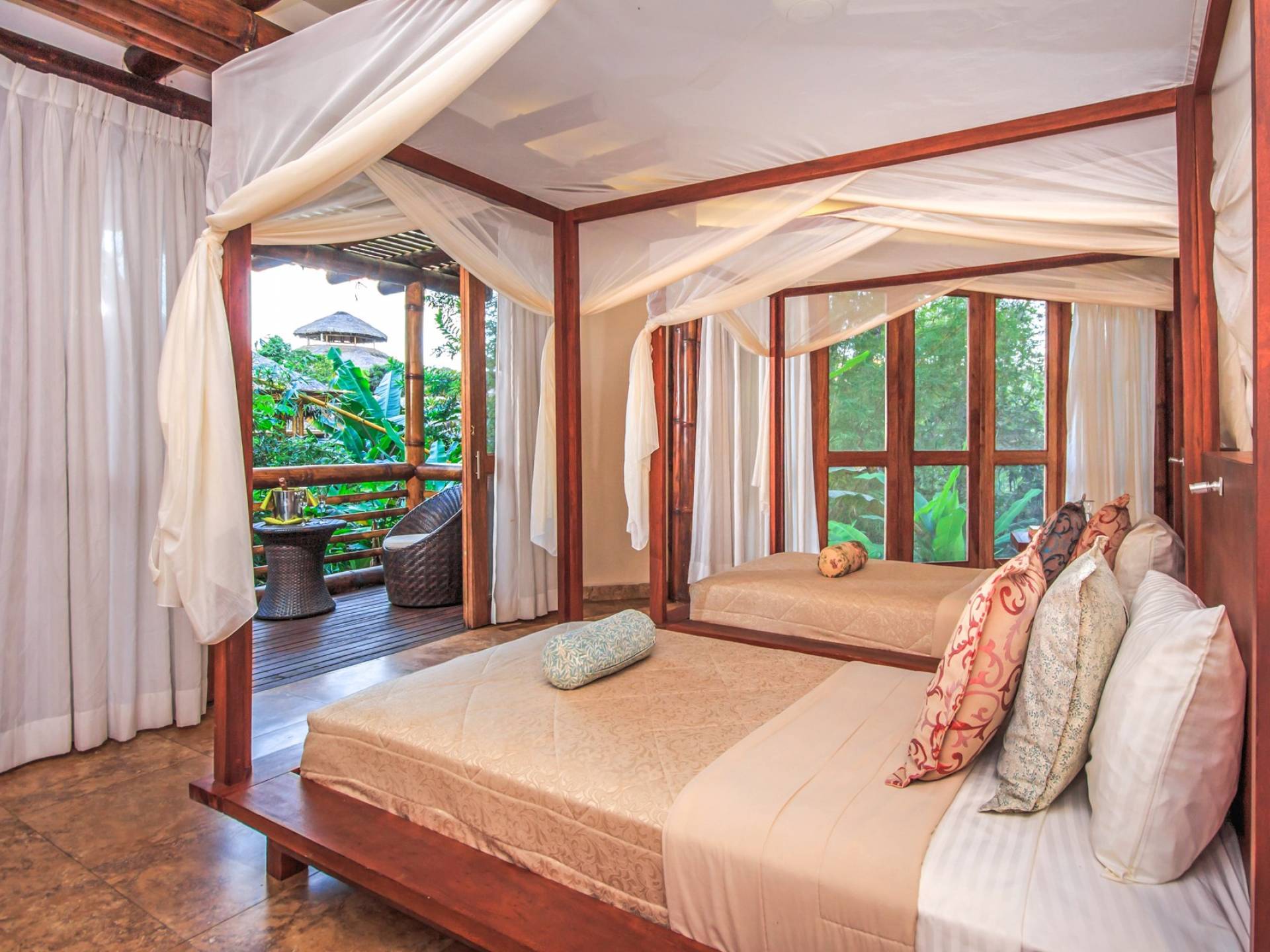 Las suites Scenic y Superior incluyen exclusivas duchas con efecto de lluvia tropical, balcones privados y vistas panorámicas, mientras que las suites familiares incluyen baños muy espaciosos, hamacas y una bañera de hidromasaje en un porche privado. El diseño de las habitaciones de La Selva está inspirado en la arquitectura de las casas de los nativos. El diseño aireado y sombreado mantiene las cosas frescas incluso en las horas más calurosas del día.