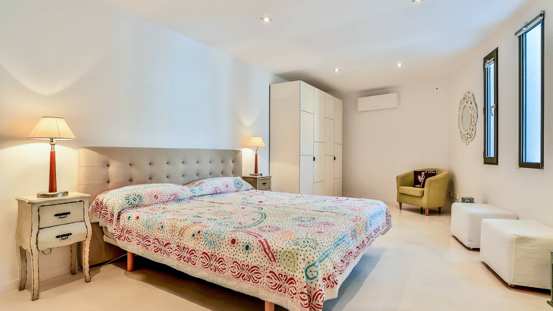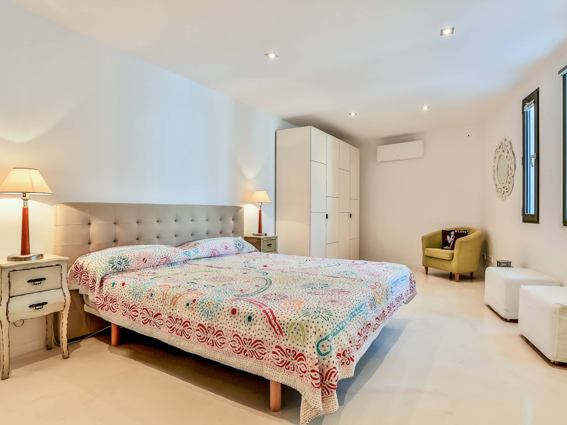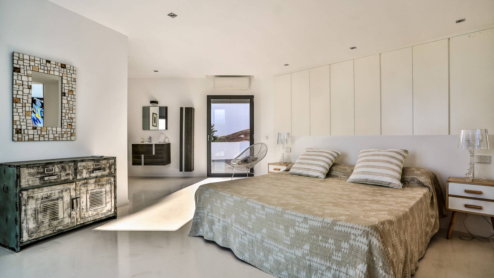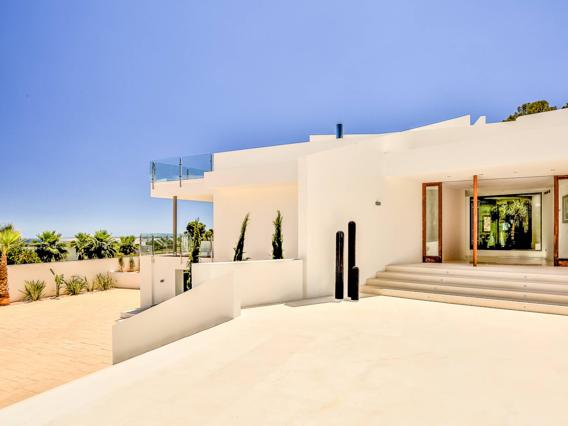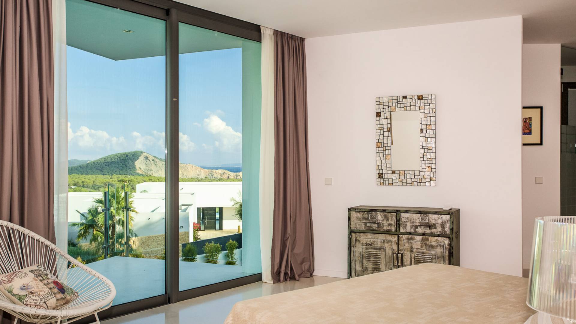 Alegre Belle Villa Ibiza es una obra maestra moderna con amplias terrazas y acabados de diseño. Esta increíble villa de diseño con orientación sur está situada en la costa sur de Ibiza en una de las zonas más cotizadas y tiene unas vistas panorámicas espectaculares de las cristalinas aguas del Mediterráneo y la isla de Formentera.