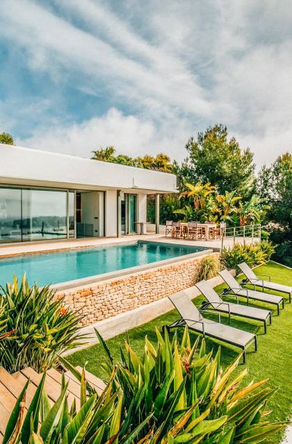 La exclusiva Casa Mirador Ibiza se encuentra en Vista Alegre, una de las urbanizaciones más cotizadas de la isla de Ibiza que está perfectamente posicionada, cerca de las playas de Es Torrent y Es Cubells. Situada en una ubicación privilegiada, Casa Mirador Ibiza frente al mar con seguridad y servicio de conserjería, esta casa está orientada al sur y cuenta con impresionantes vistas al mar hacia Porroig y Formentera y está rodeada de un jardín con zona de césped, aparcamiento, tiene una fantástica piscina infinita y un área de descanso en la glorieta.