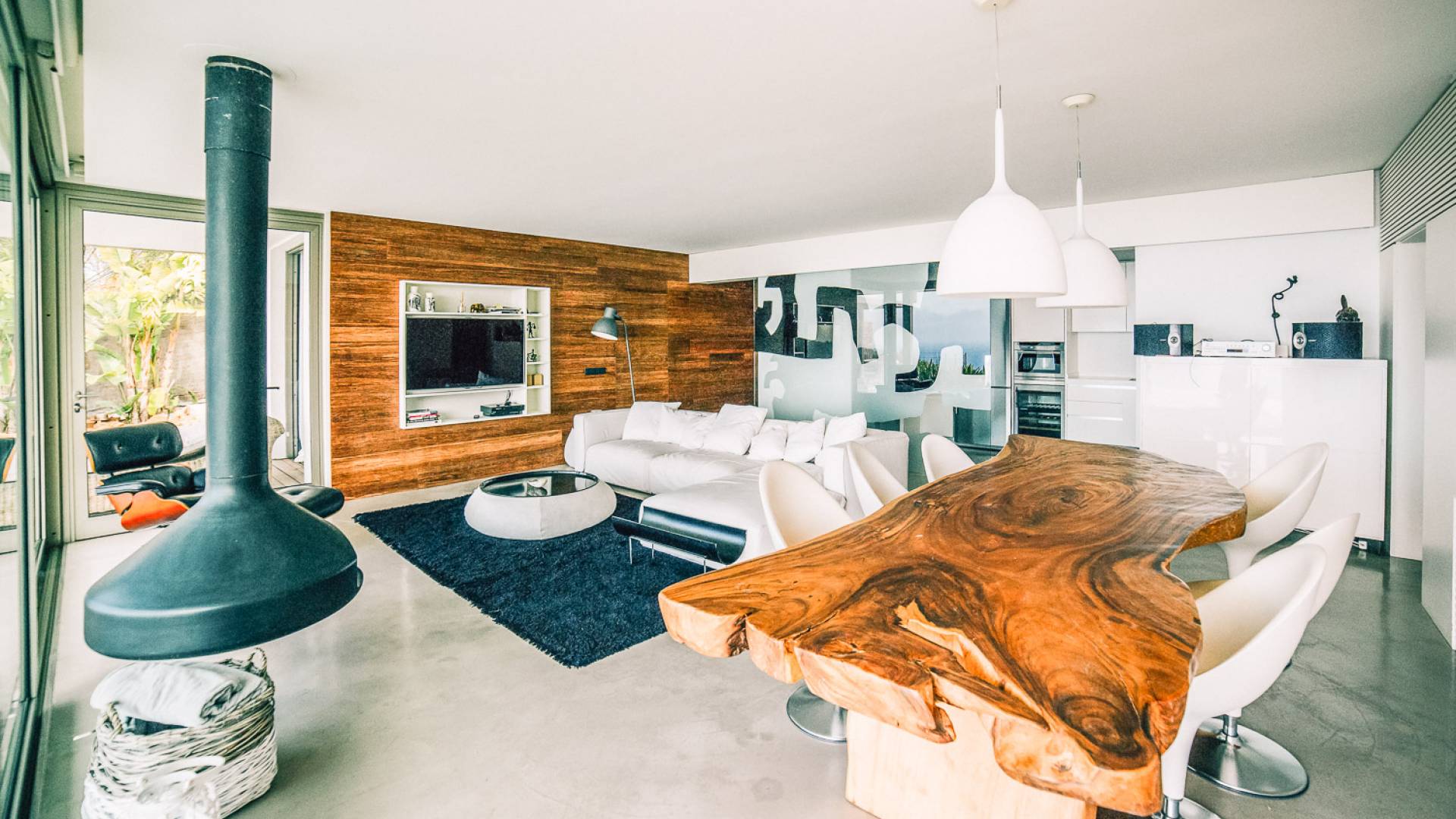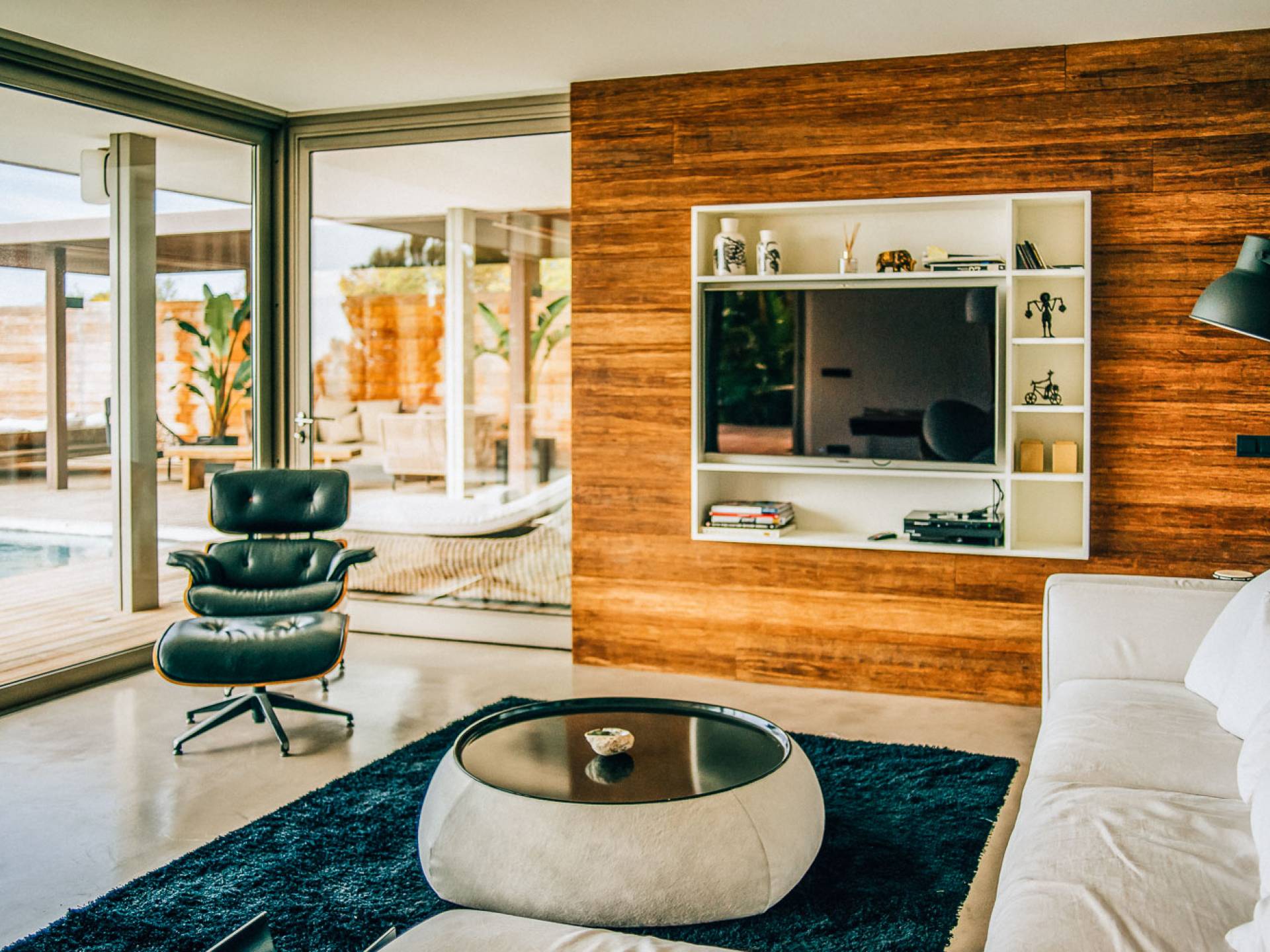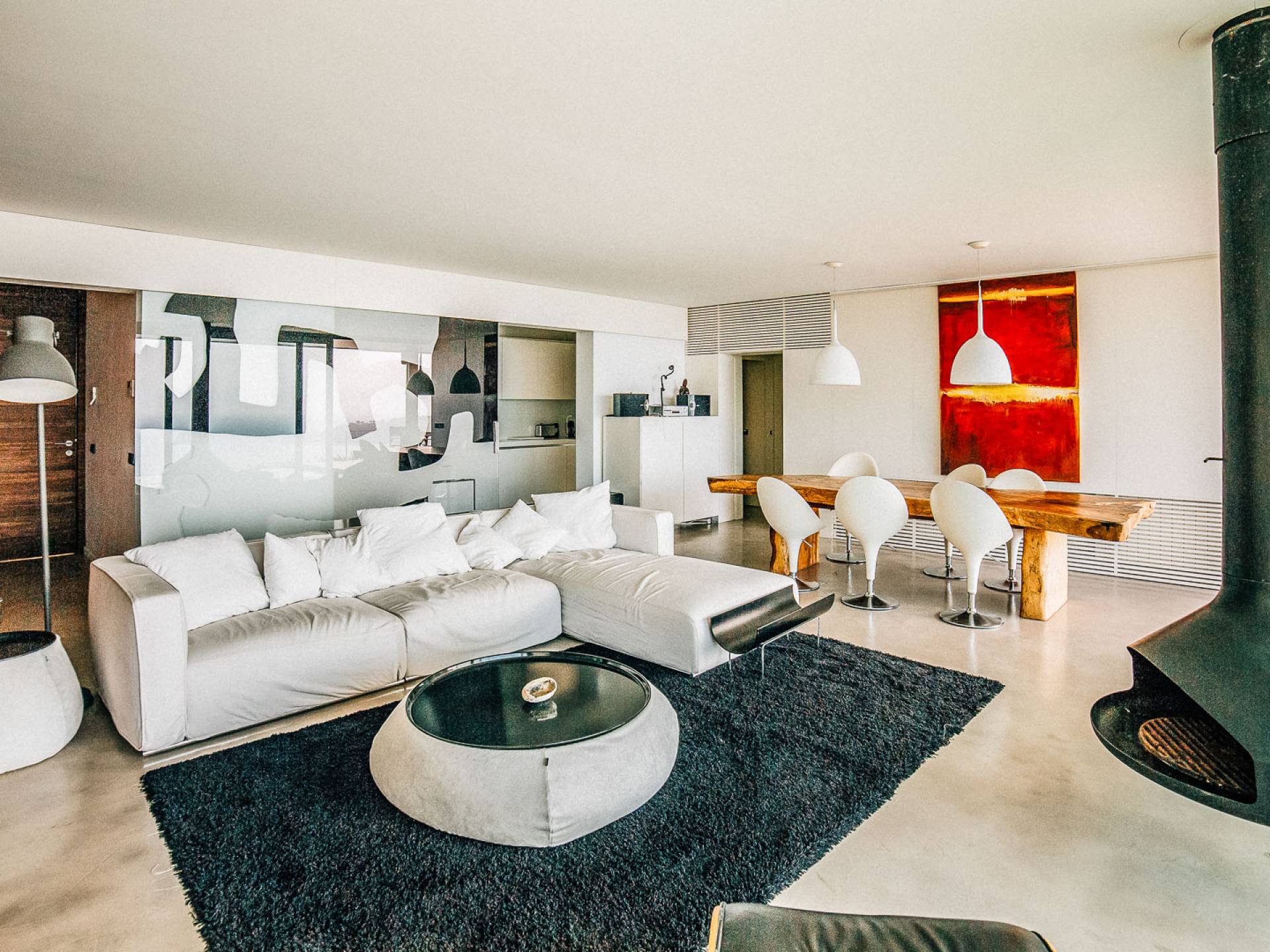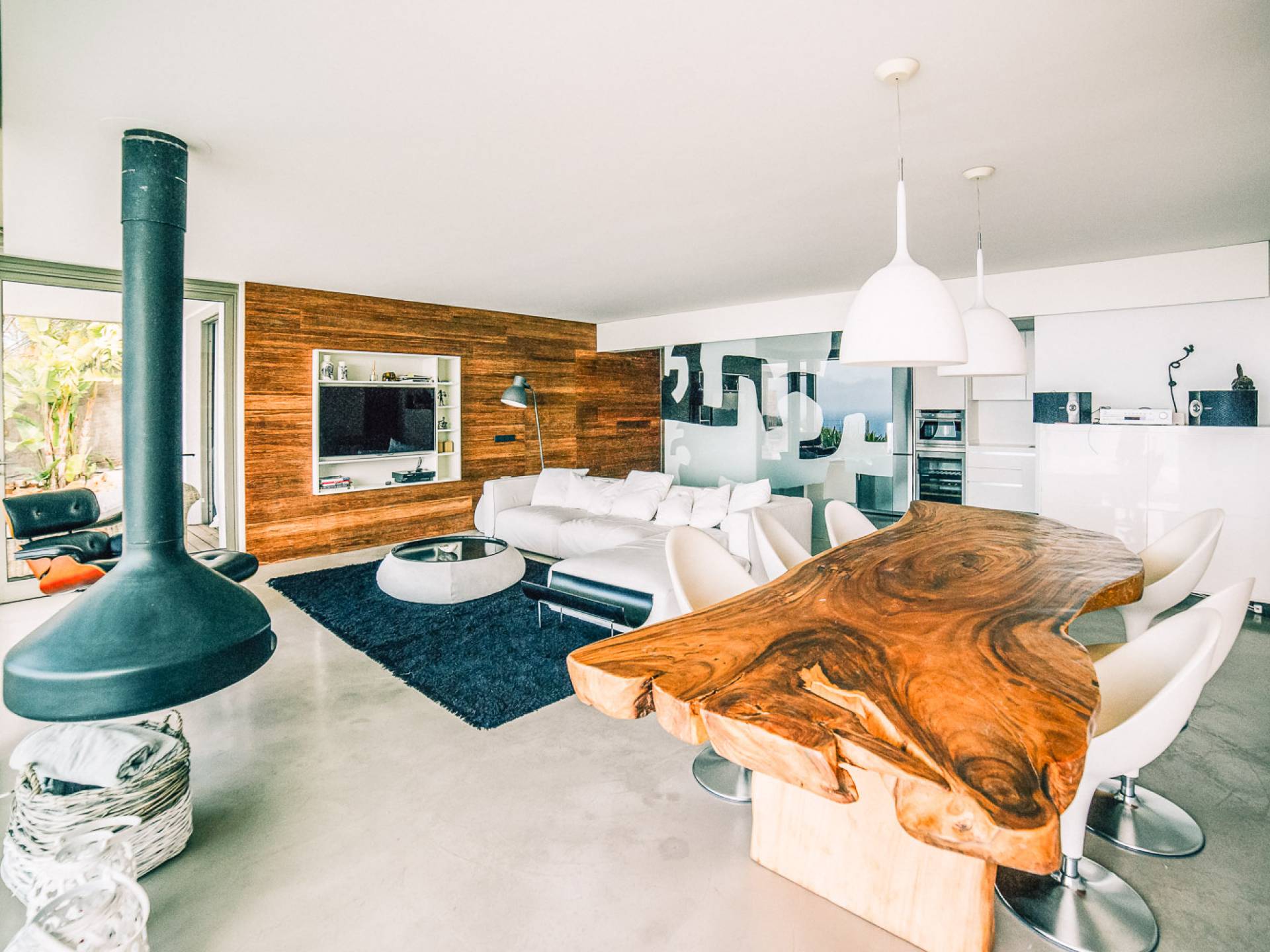 El interior está abierto al ambiente, y con una decoración ligera y muebles en madera natural, las áreas de estar son amplias y luminosas. El salón y el comedor de planta abierta ofrecen vistas espectaculares y han sido diseñados con el más alto nivel con total atención a los detalles, incluida una chimenea. Hay una cocina moderna totalmente equipada con todos los electrodomésticos modernos, aire acondicionado en todas partes, acceso a WiFi y sistema de sonido en toda la casa.