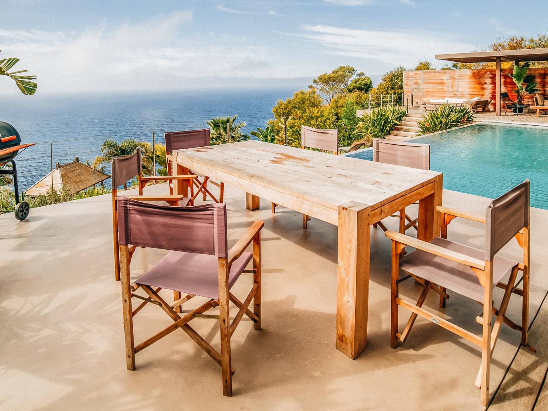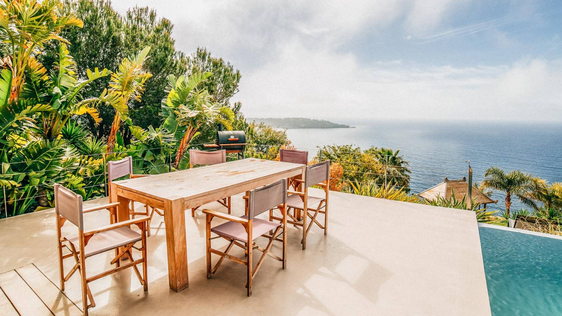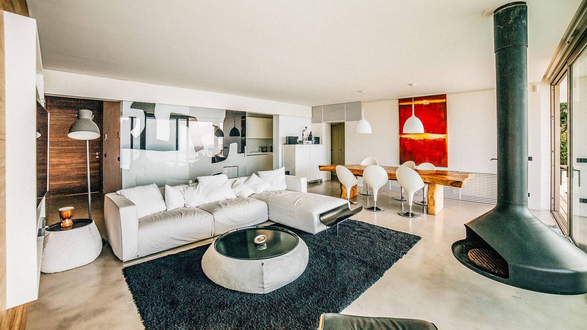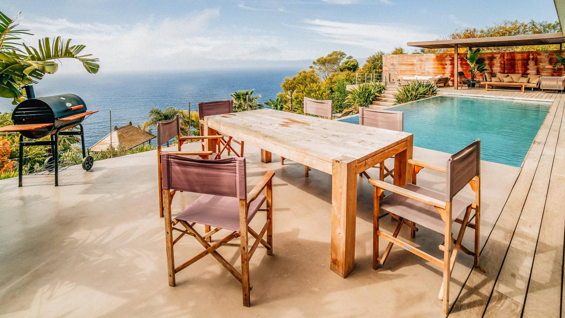 El interior está abierto al ambiente, y con una decoración ligera y muebles en madera natural, las áreas de estar son amplias y luminosas. El salón y el comedor de planta abierta ofrecen vistas espectaculares y han sido diseñados con el más alto nivel con total atención a los detalles, incluida una chimenea. Hay una cocina moderna totalmente equipada con todos los electrodomésticos modernos, aire acondicionado en todas partes, acceso a WiFi y sistema de sonido en toda la casa.