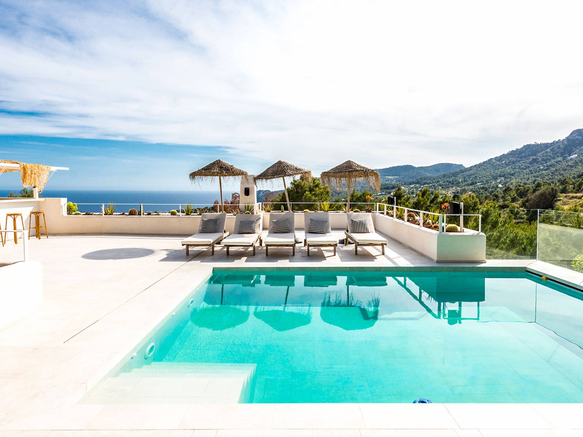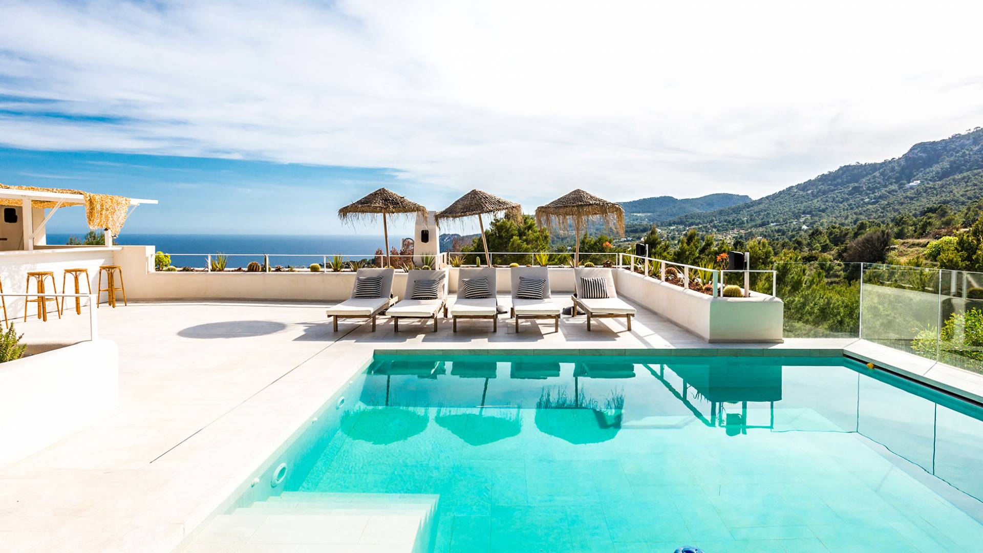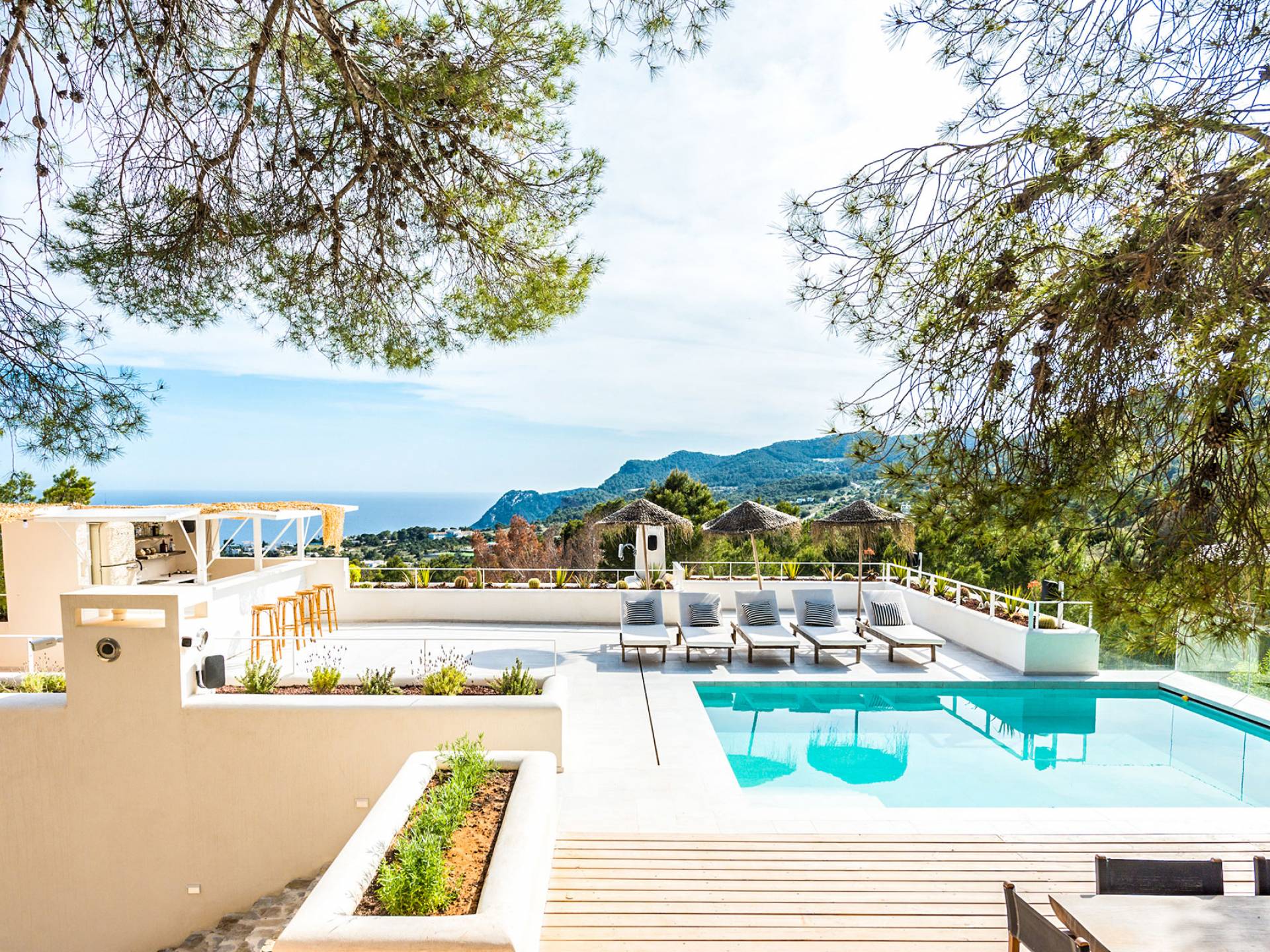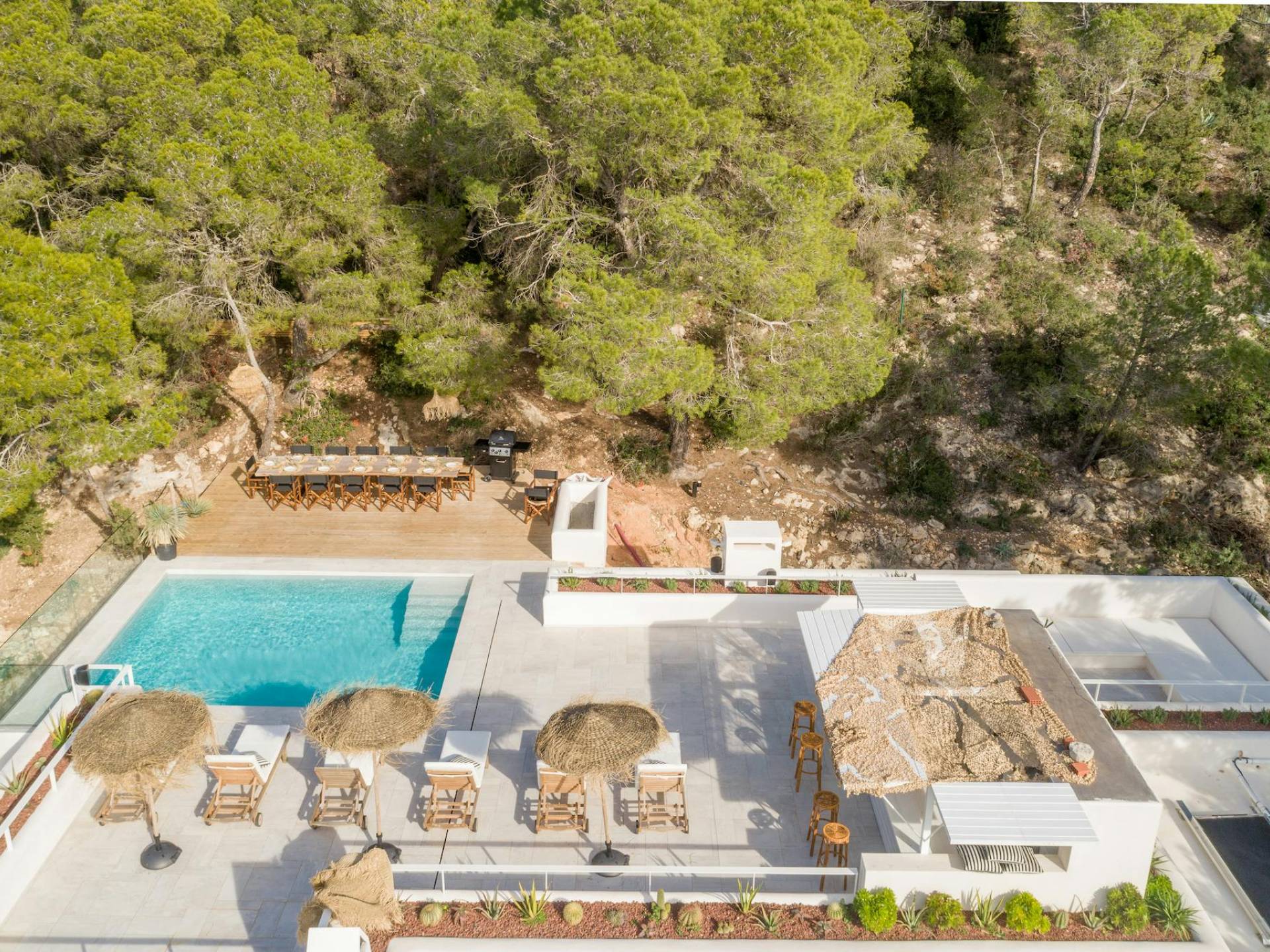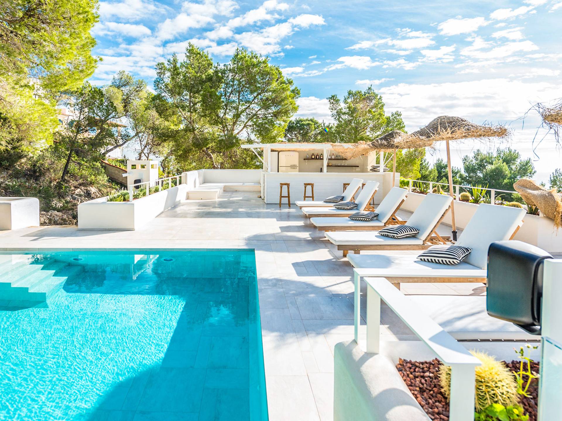 Villa Benito Ibiza es una villa de lujo en alquiler con 5 habitaciones y piscina privada. Propiedad única en la ladera construida en 4 niveles con vistas a la codiciada zona de Es Cubells, con increíbles vistas al mar y su propio Chiringuito, bar de piscina y cocina en la azotea...