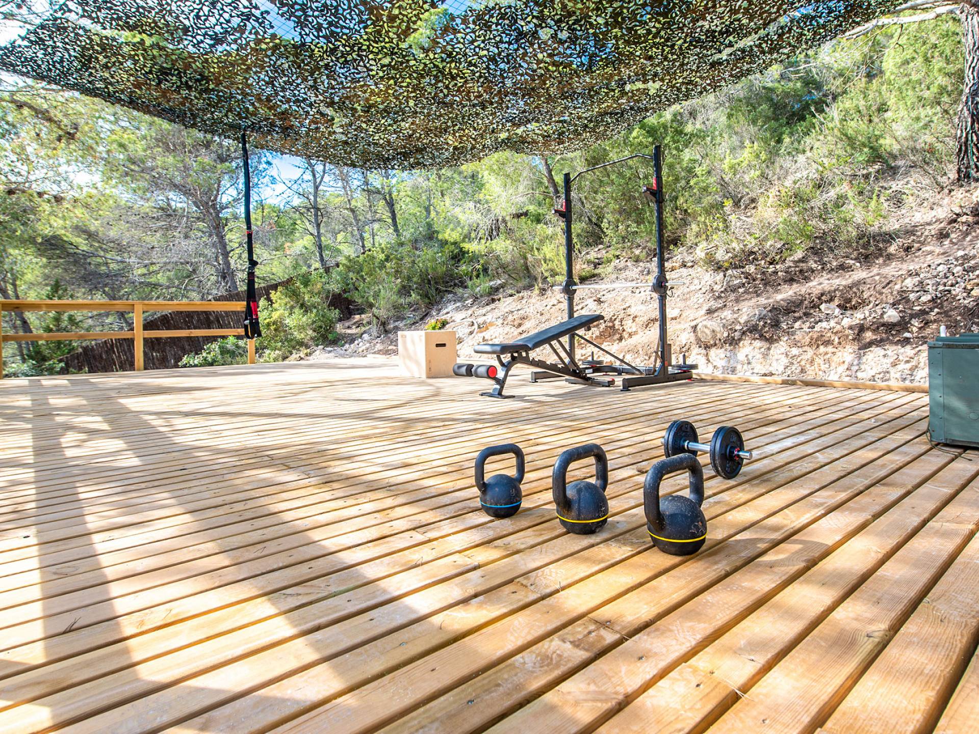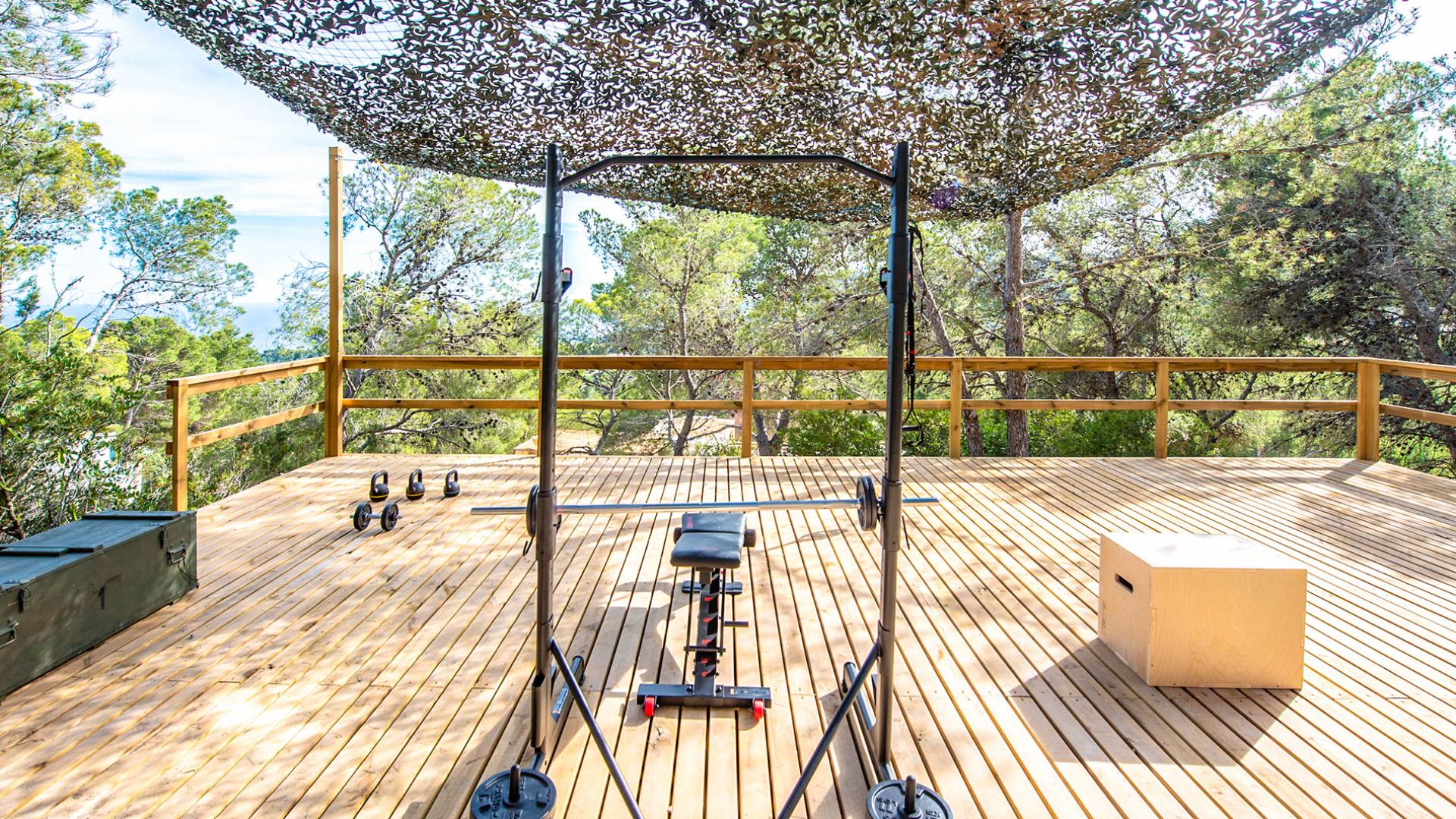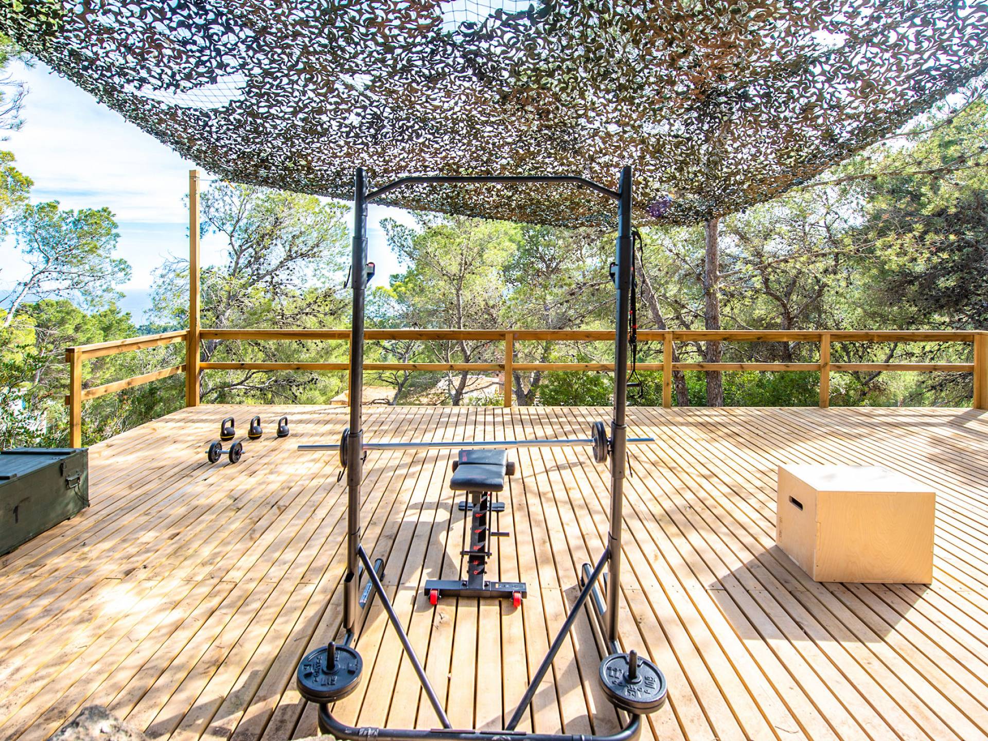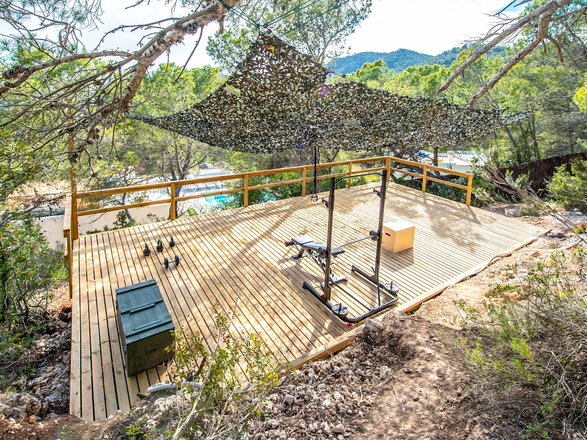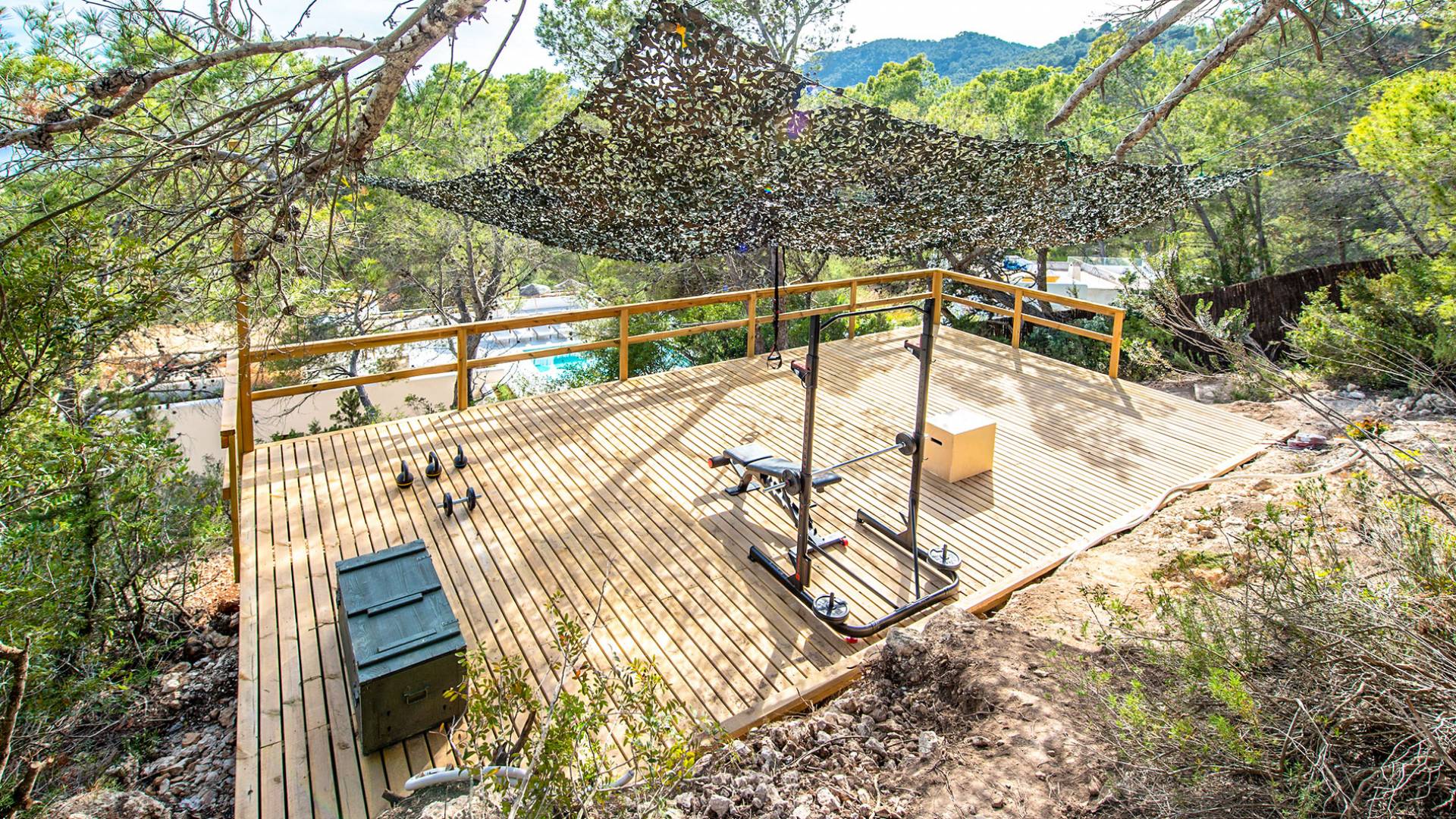 Varias plataformas de entretenimiento y deportes te esperan más arriba en la ladera, como grandes áreas chill-out, un área de fitness y entrenamiento al aire libre de 50 m² y una enorme plataforma de yoga de 160 m² con sensacionales vistas a la isla de Formentera.