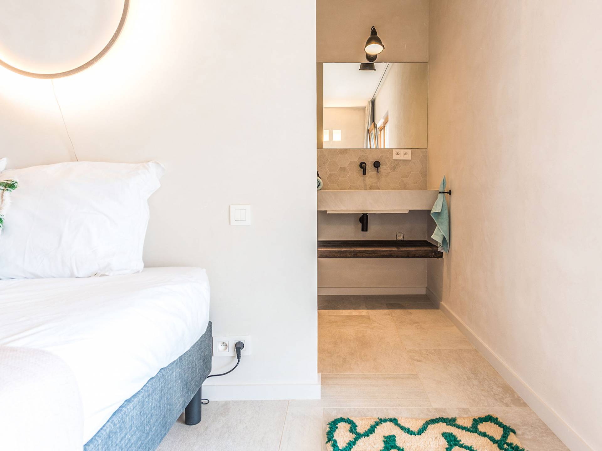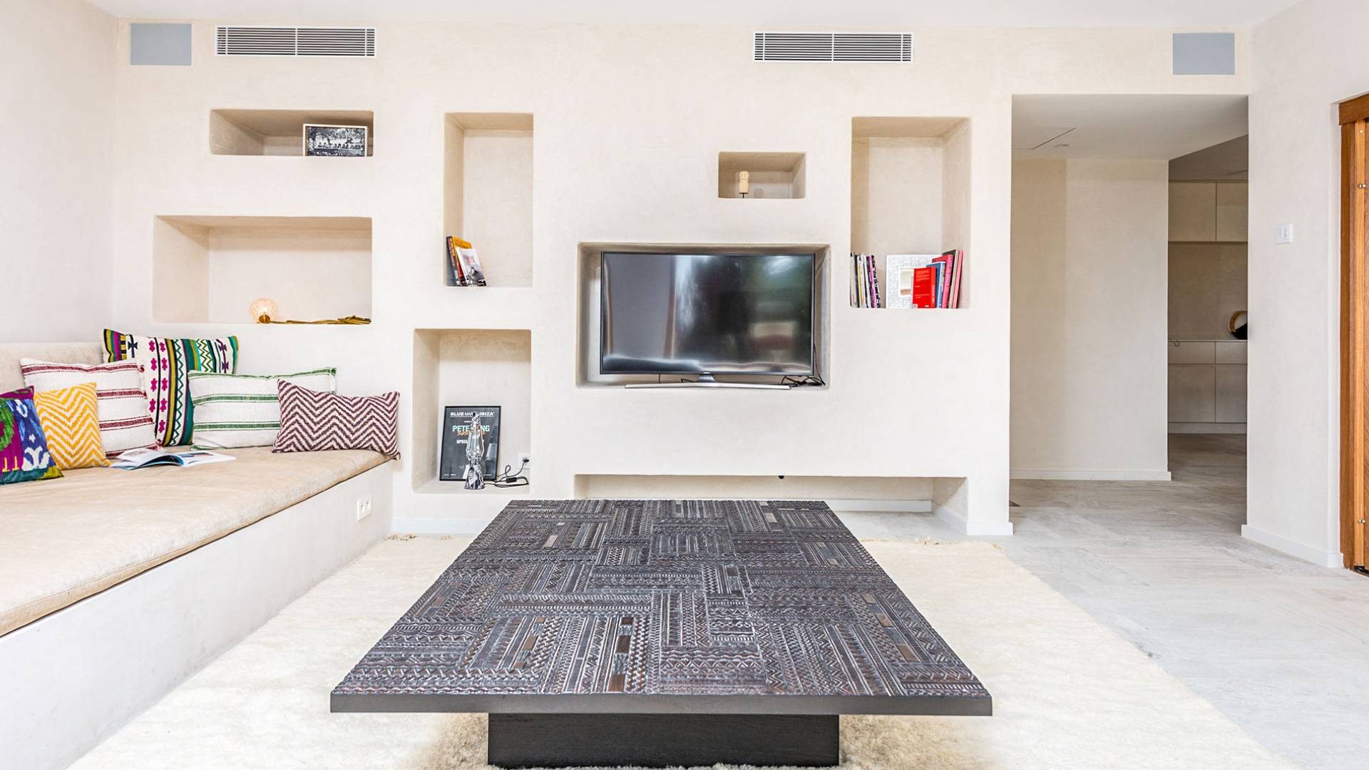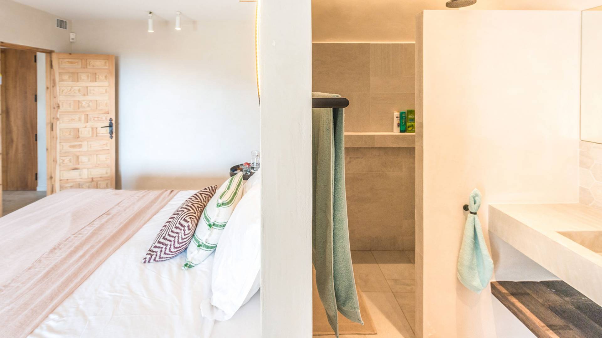 Las escaleras exteriores ubicadas en la parte trasera del edificio lo guían al 4to nivel donde encontrará el bar en la azotea estilo Chiringuito que crea esa sensación inigualable de club de playa de Ibiza. Es el lugar ideal para relajarse con amigos y familiares junto a la piscina, preparar deliciosas comidas en la cocina al aire libre y barbacoa o simplemente relajarse con un libro en el rincón chill-out o en las tumbonas. ¡Este nivel también cuenta con un comedor al aire libre, donde puedes disfrutar de una cena inolvidable frente a un divino atardecer mediterráneo como telón de fondo!