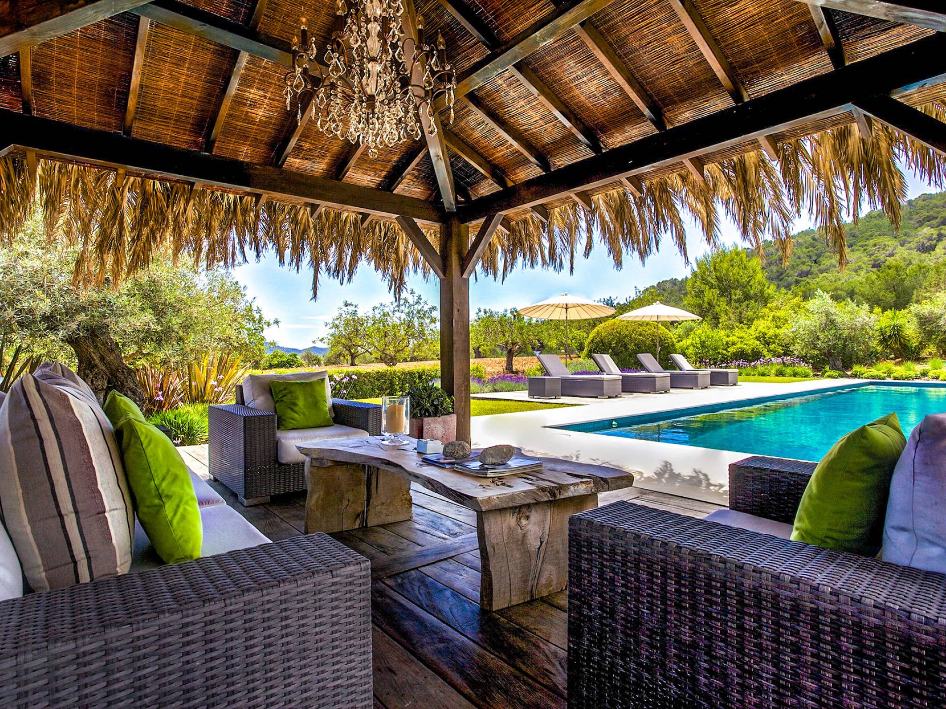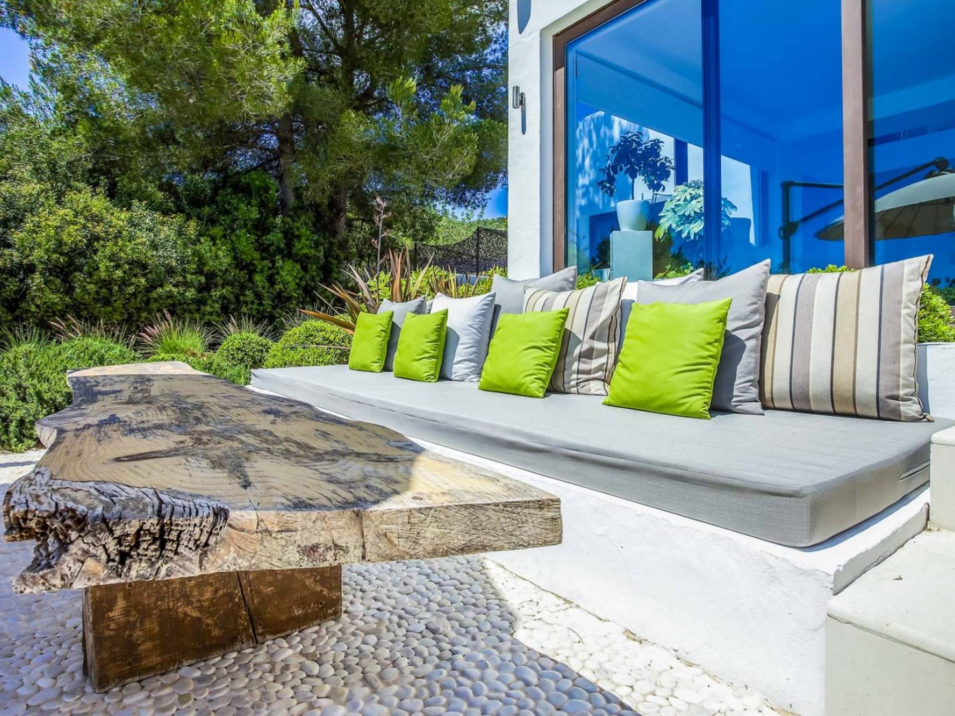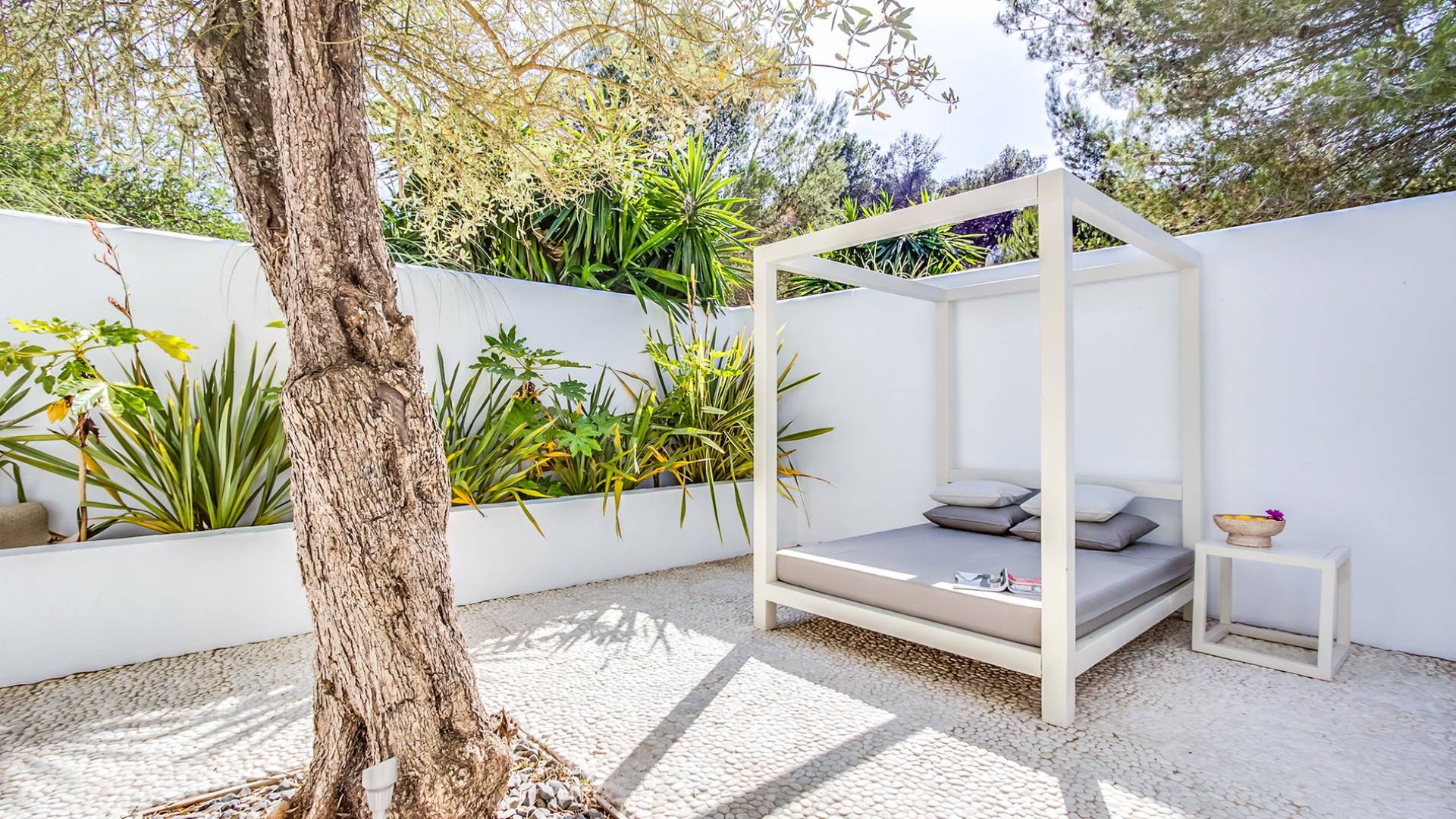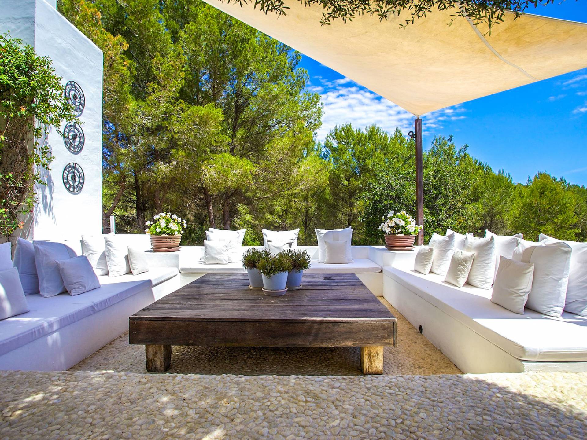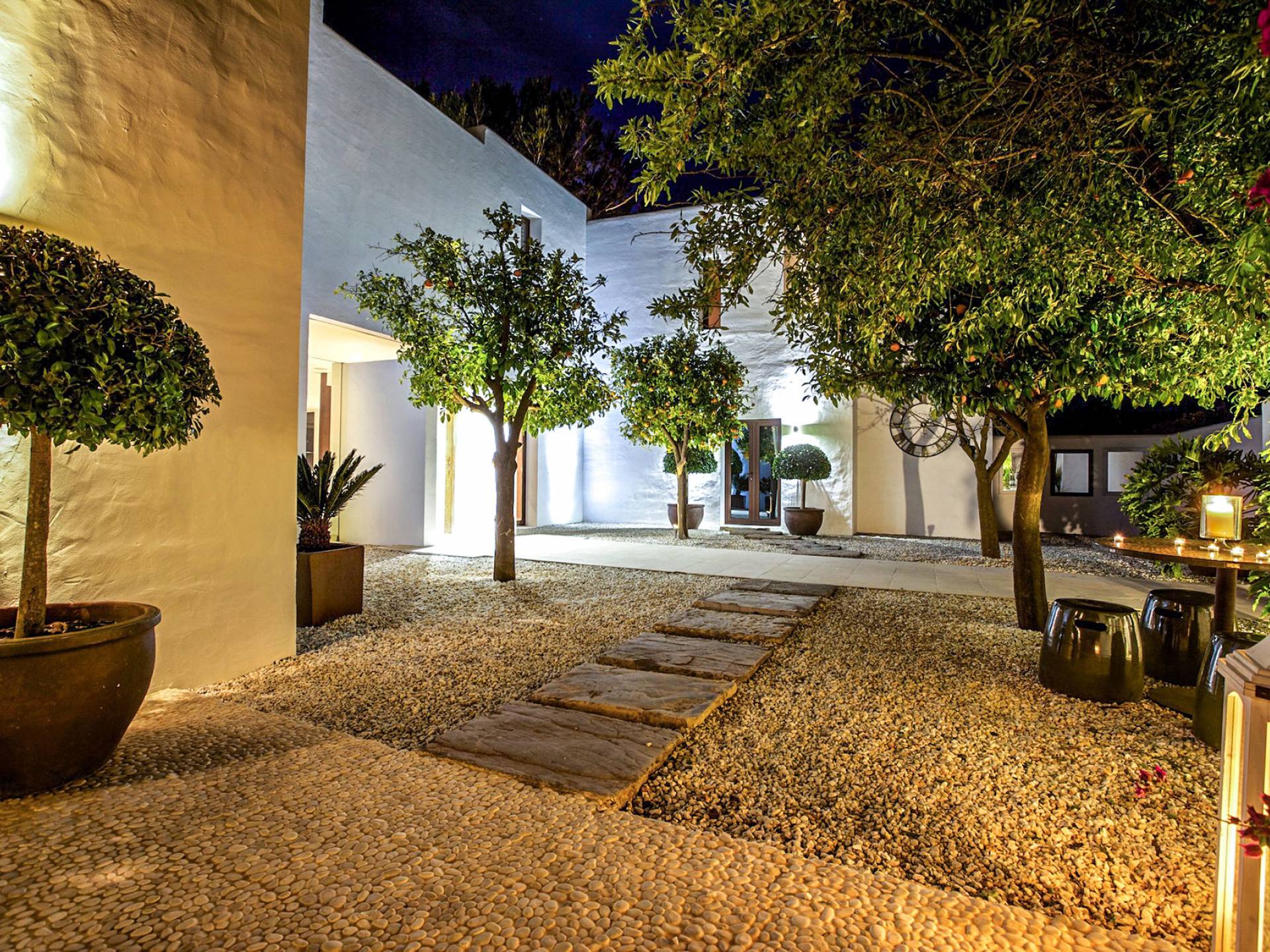 San Lorenzo Deluxe Villa Ibiza no tiene vecinos cercanos y está rodeada de tierras de cultivo. Con énfasis en la relajación y el confort totales, los jardines ofrecen grandes camas de día y tumbonas, un columpio y una gran zona de descanso con una mesa de gran tamaño, ideal para tomar una copa antes de la cena o una comida más informal.