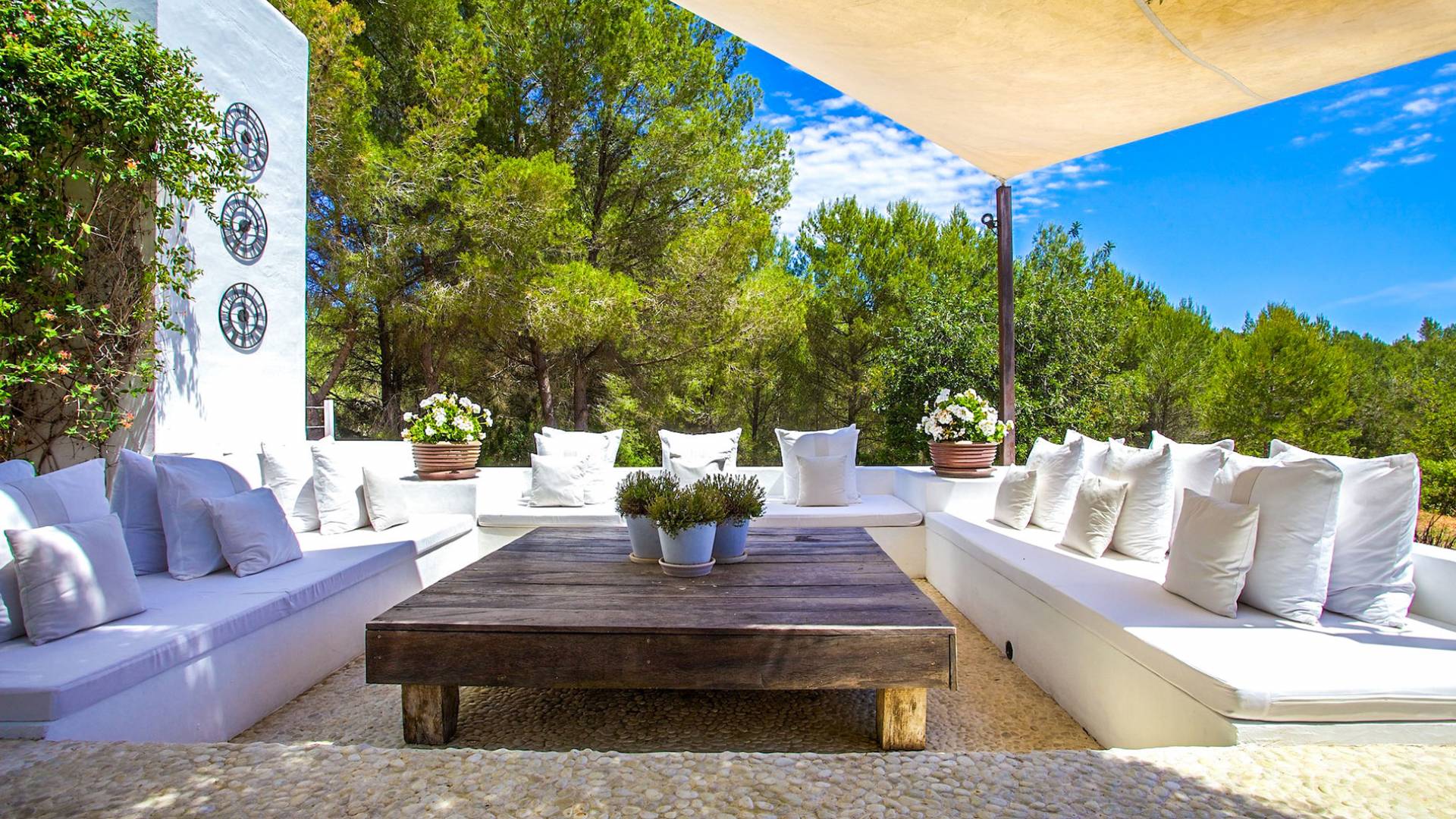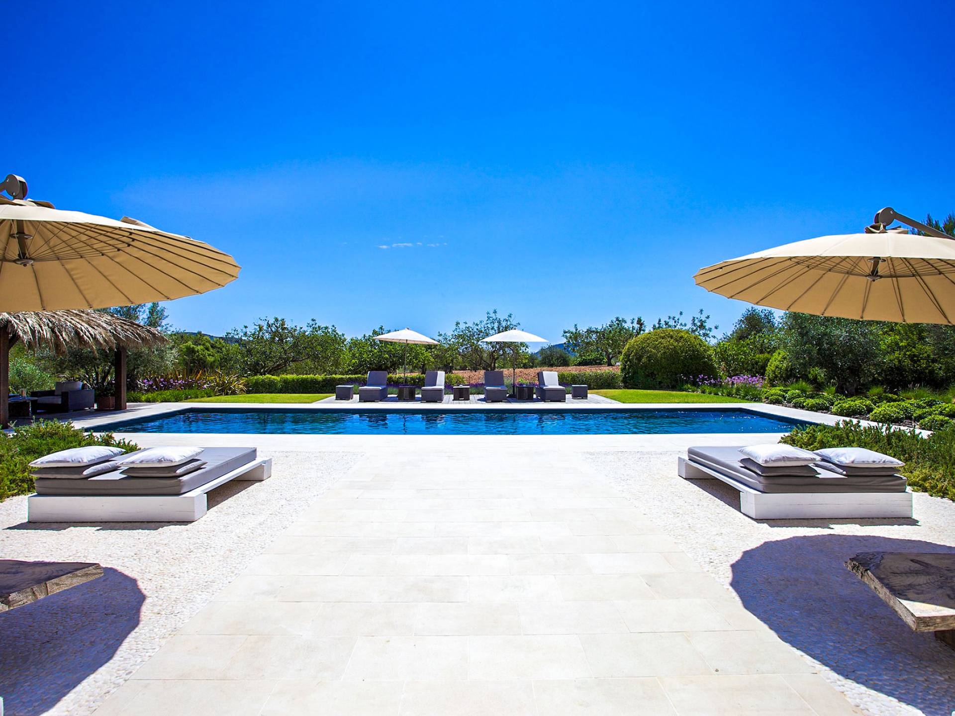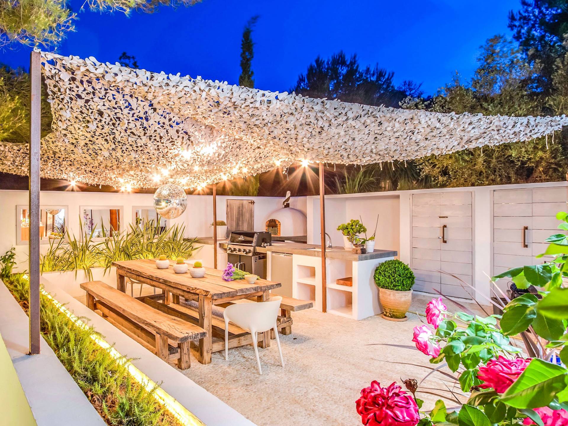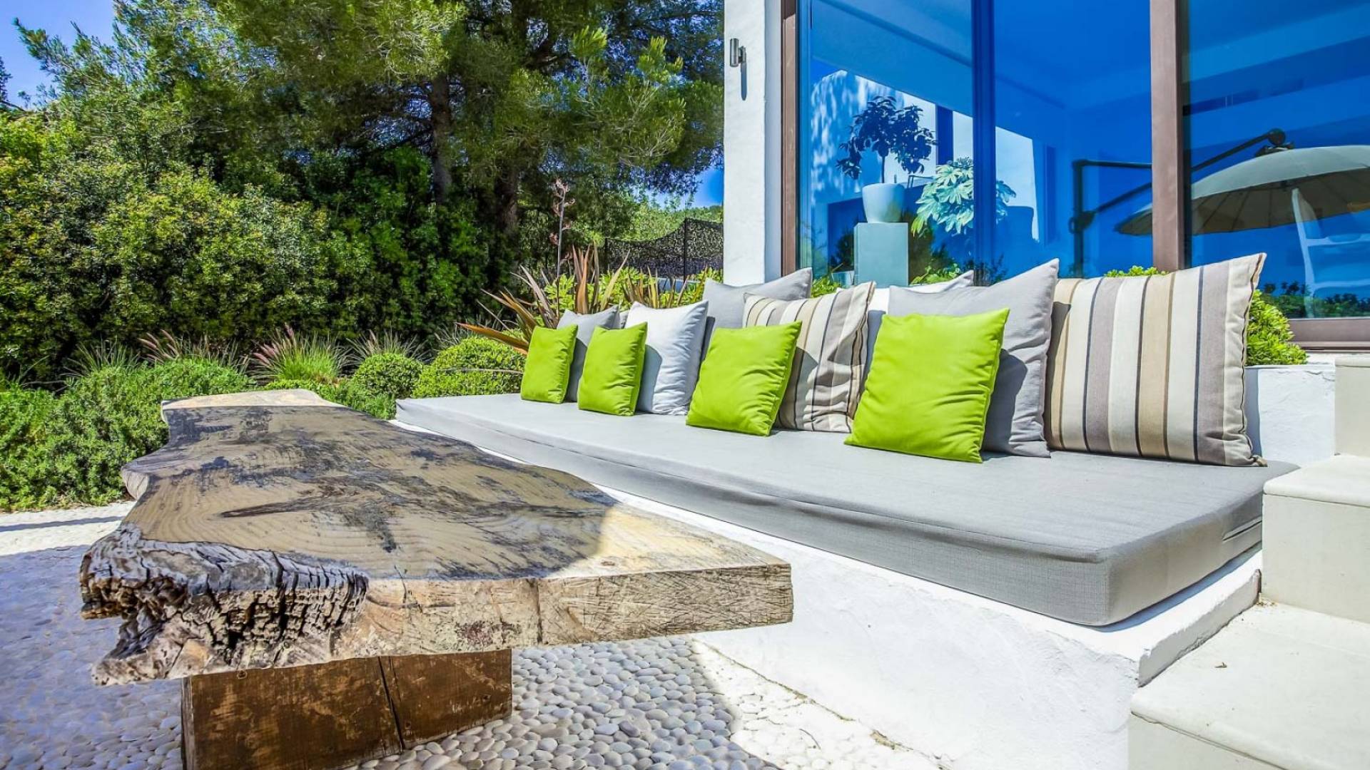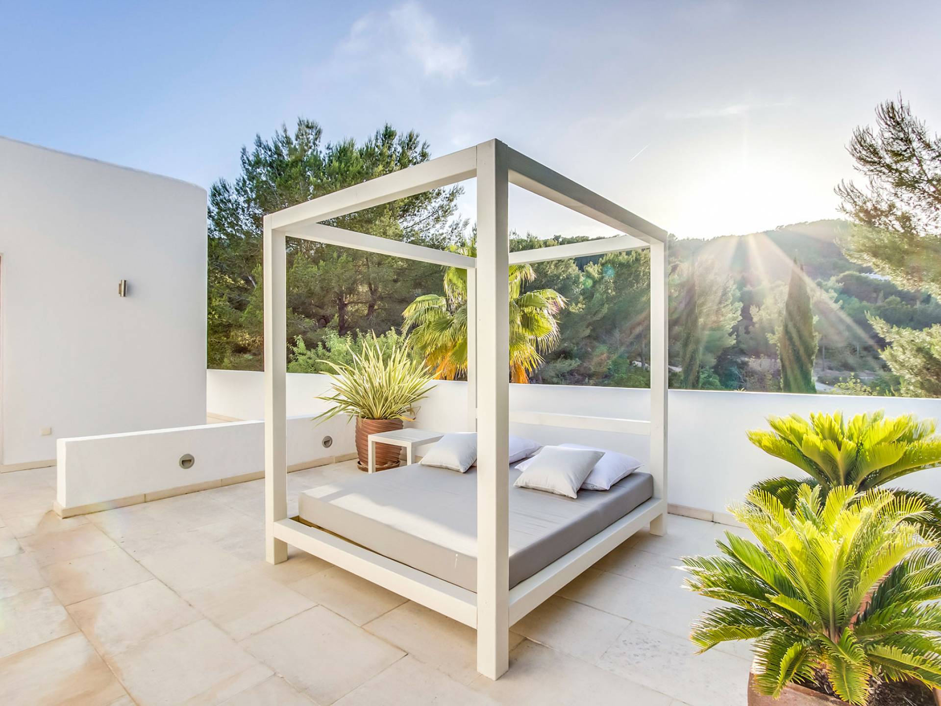 San Lorenzo Deluxe Villa Ibiza no tiene vecinos cercanos y está rodeada de tierras de cultivo. Con énfasis en la relajación y el confort totales, los jardines ofrecen grandes camas de día y tumbonas, un columpio y una gran zona de descanso con una mesa de gran tamaño, ideal para tomar una copa antes de la cena o una comida más informal.