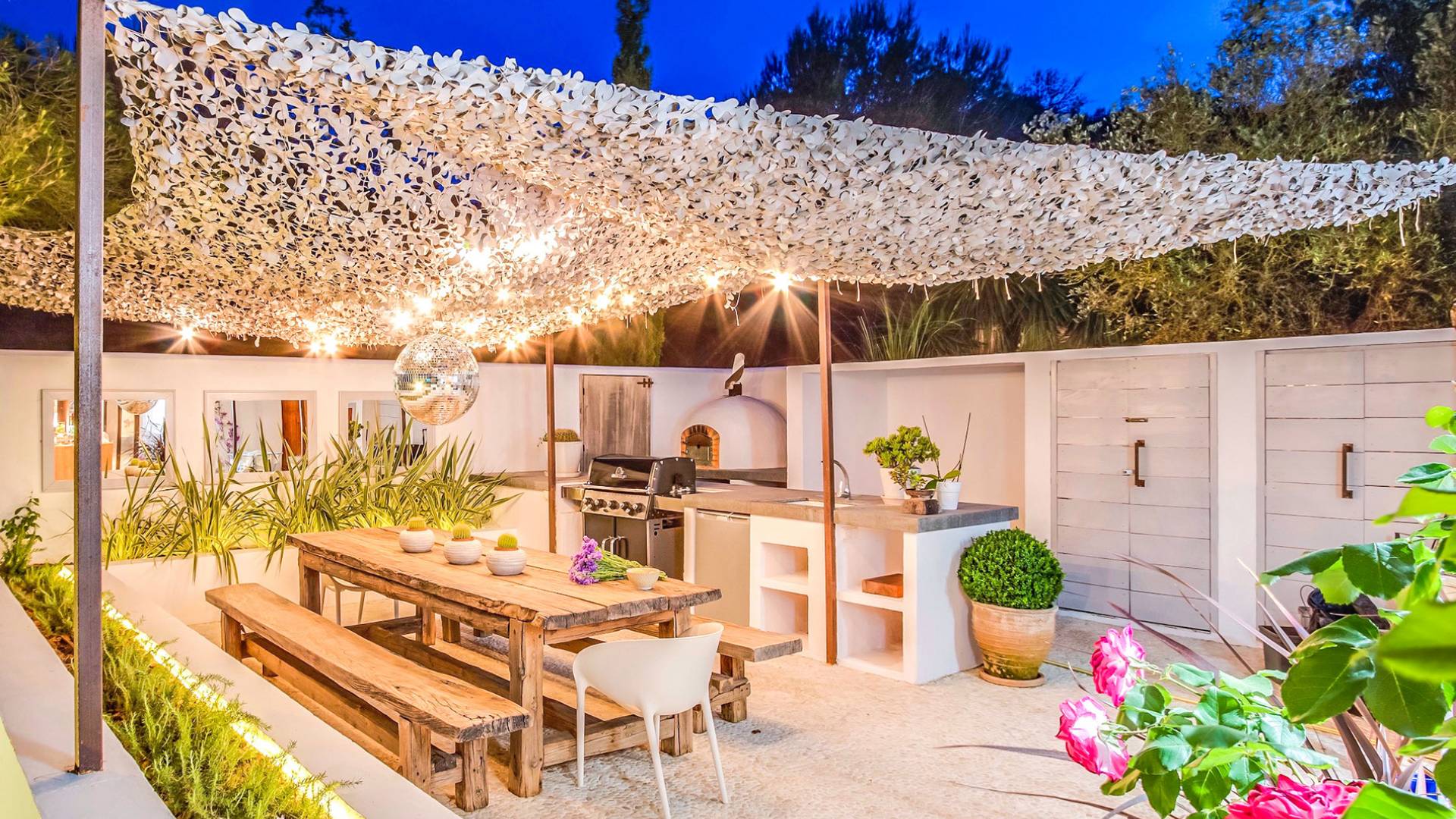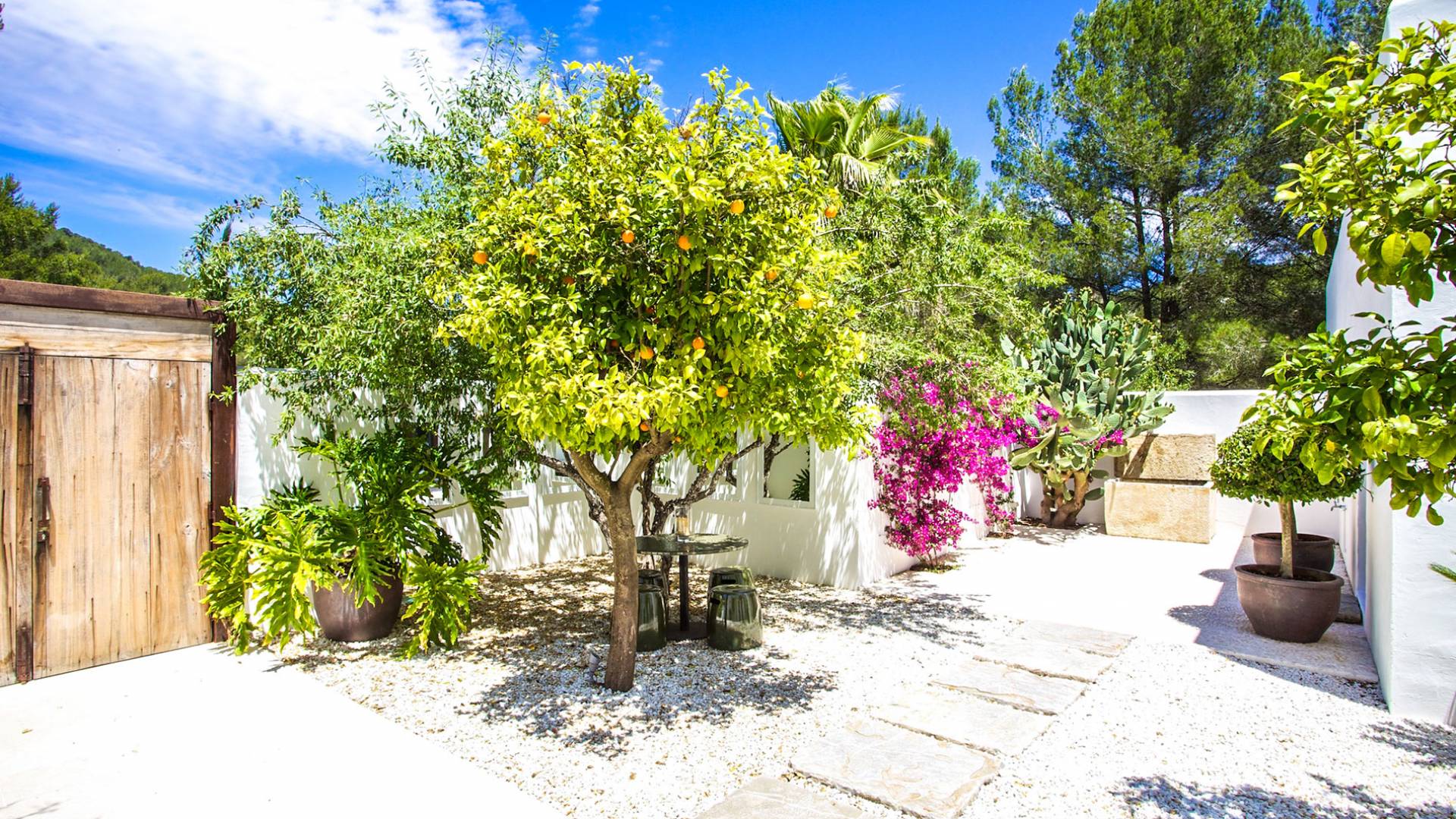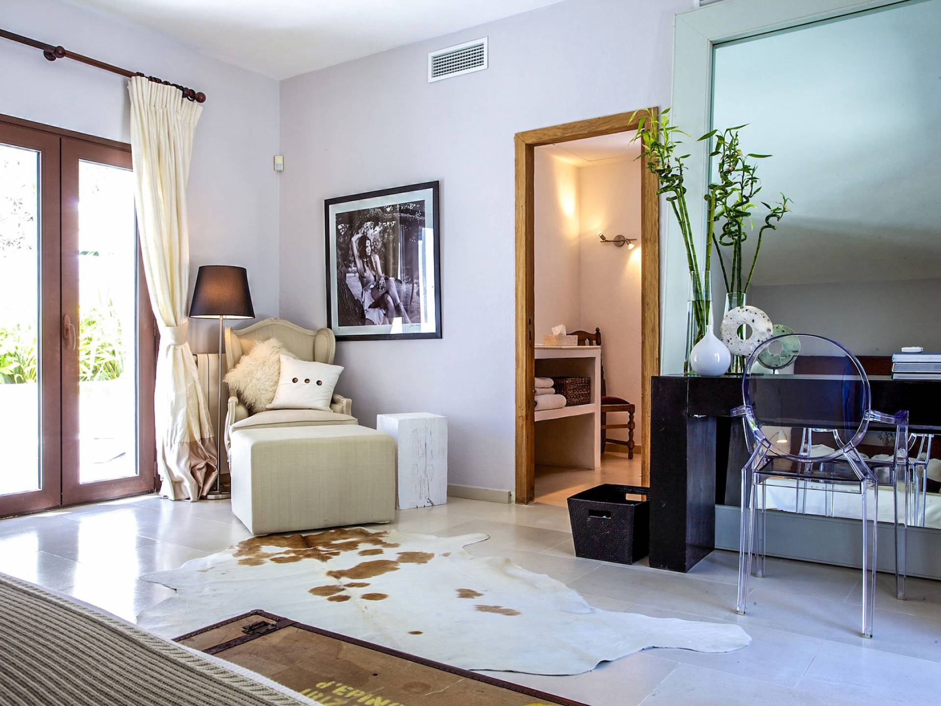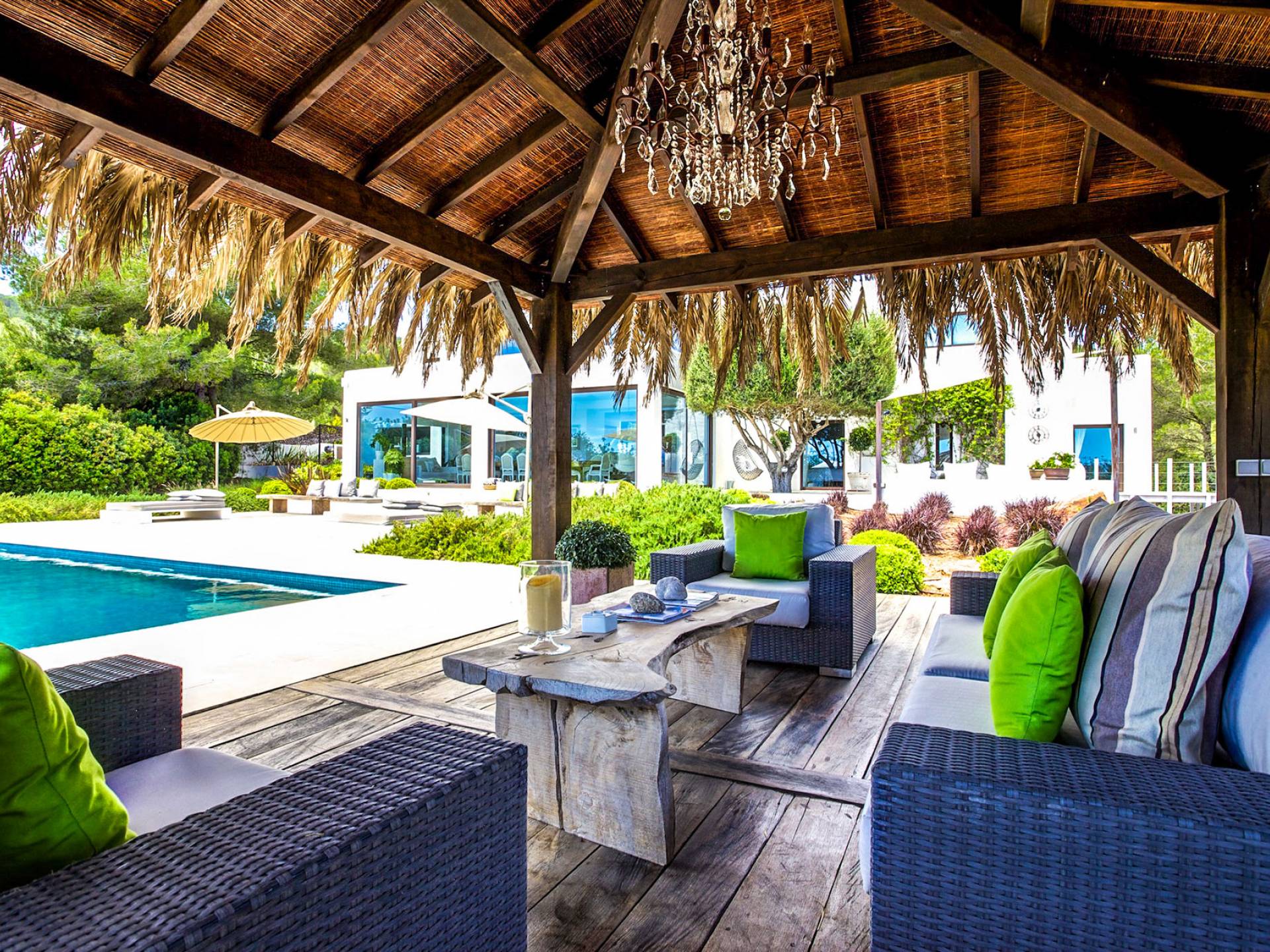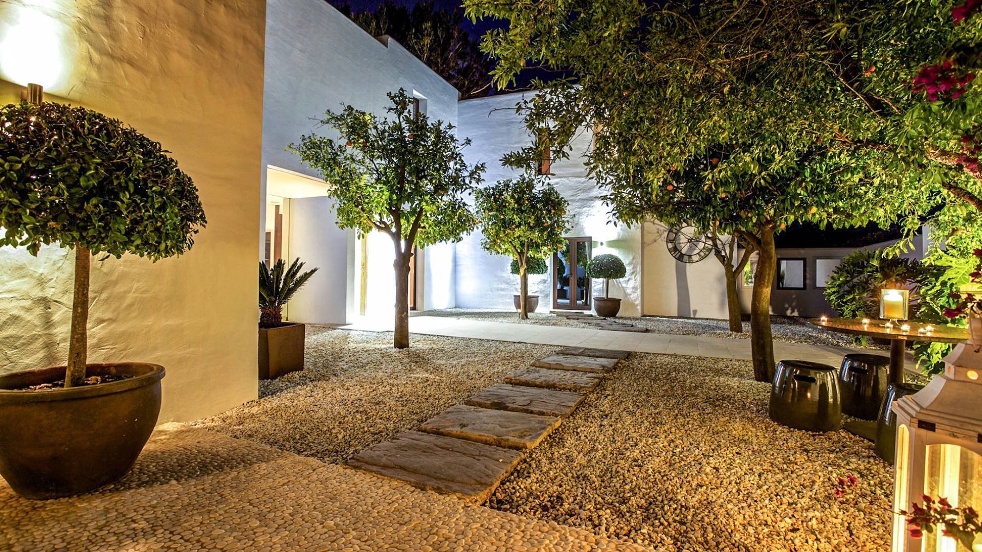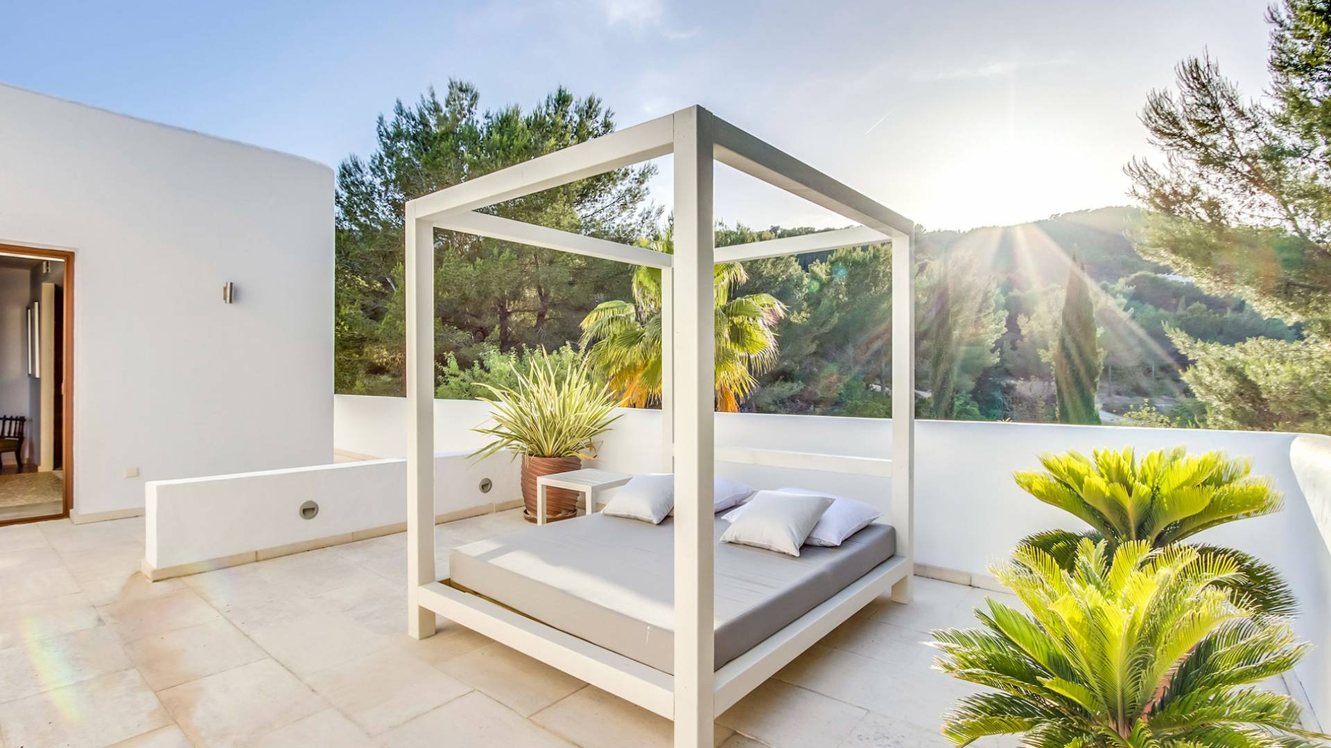 San Lorenzo Deluxe Villa Ibiza no tiene vecinos cercanos y está rodeada de tierras de cultivo. Con énfasis en la relajación y el confort totales, los jardines ofrecen grandes camas de día y tumbonas, un columpio y una gran zona de descanso con una mesa de gran tamaño, ideal para tomar una copa antes de la cena o una comida más informal.