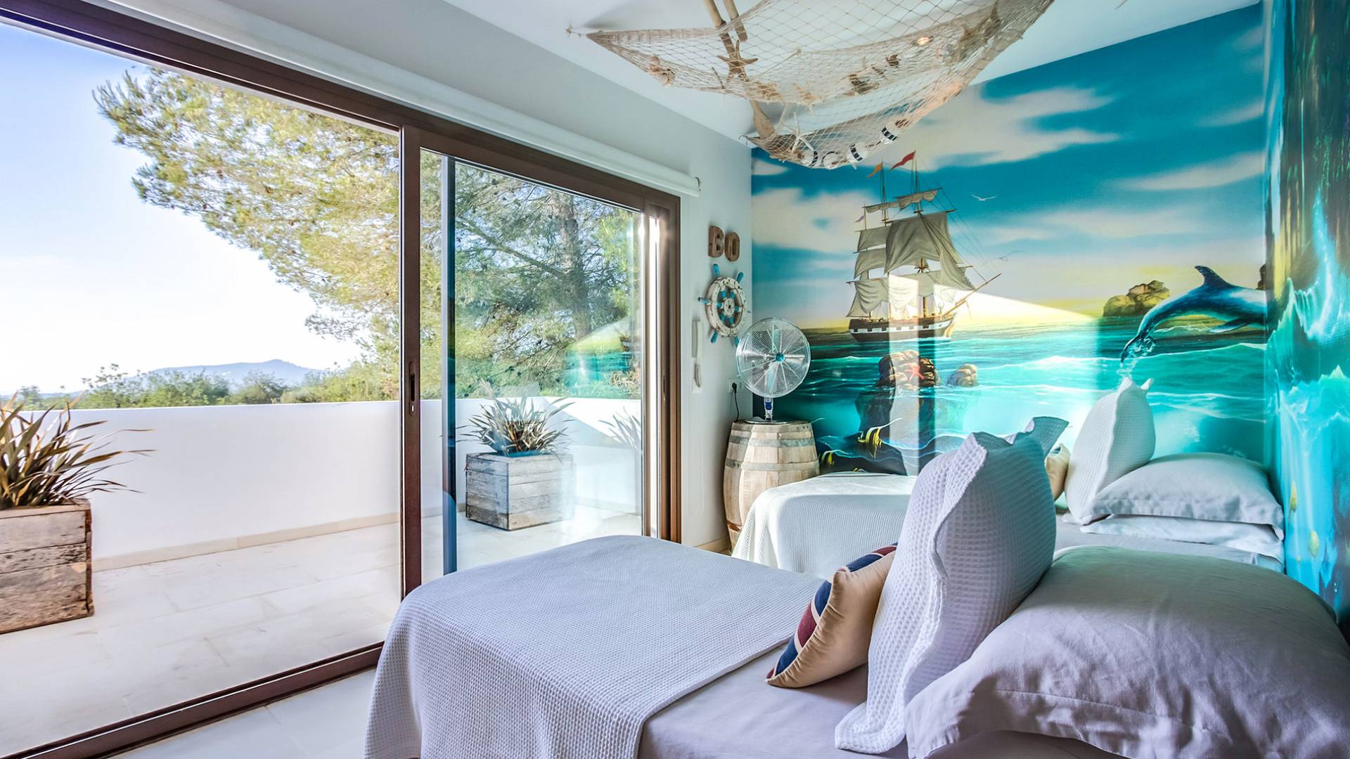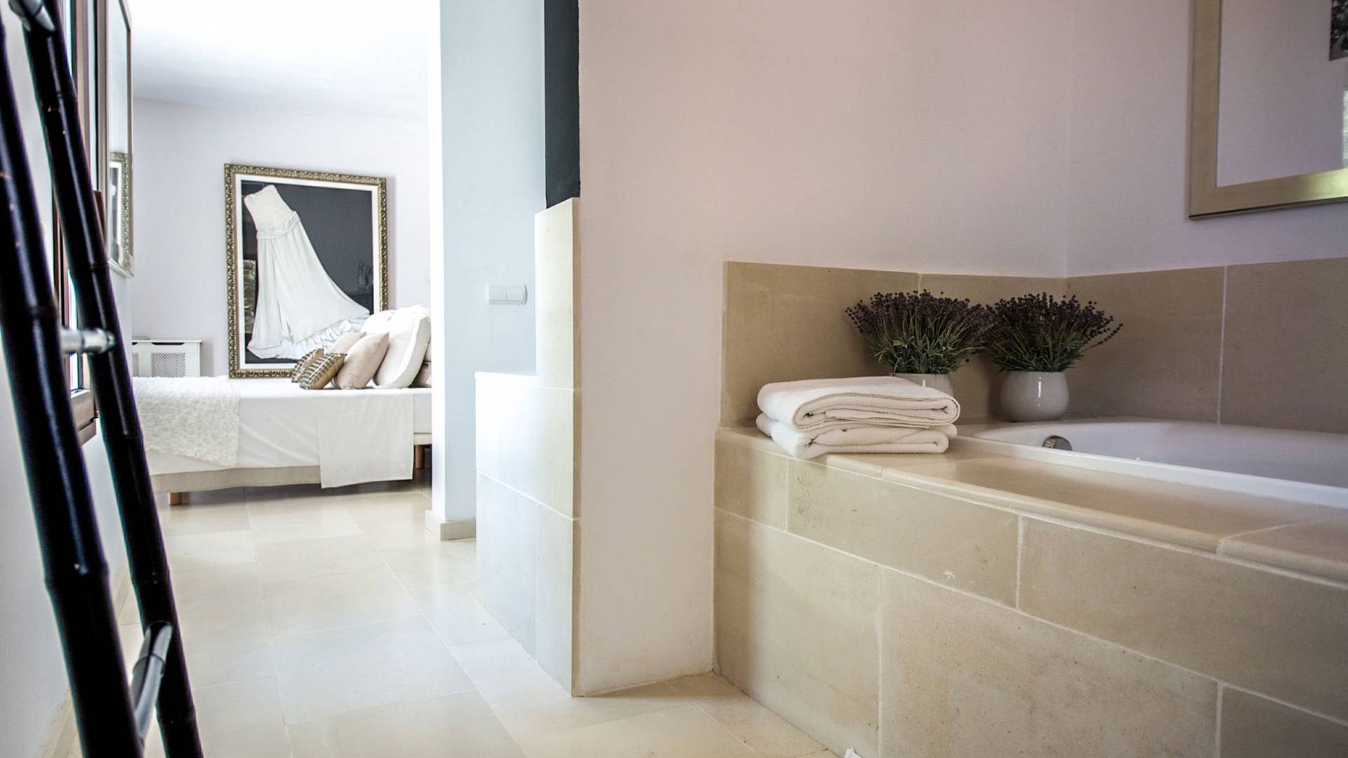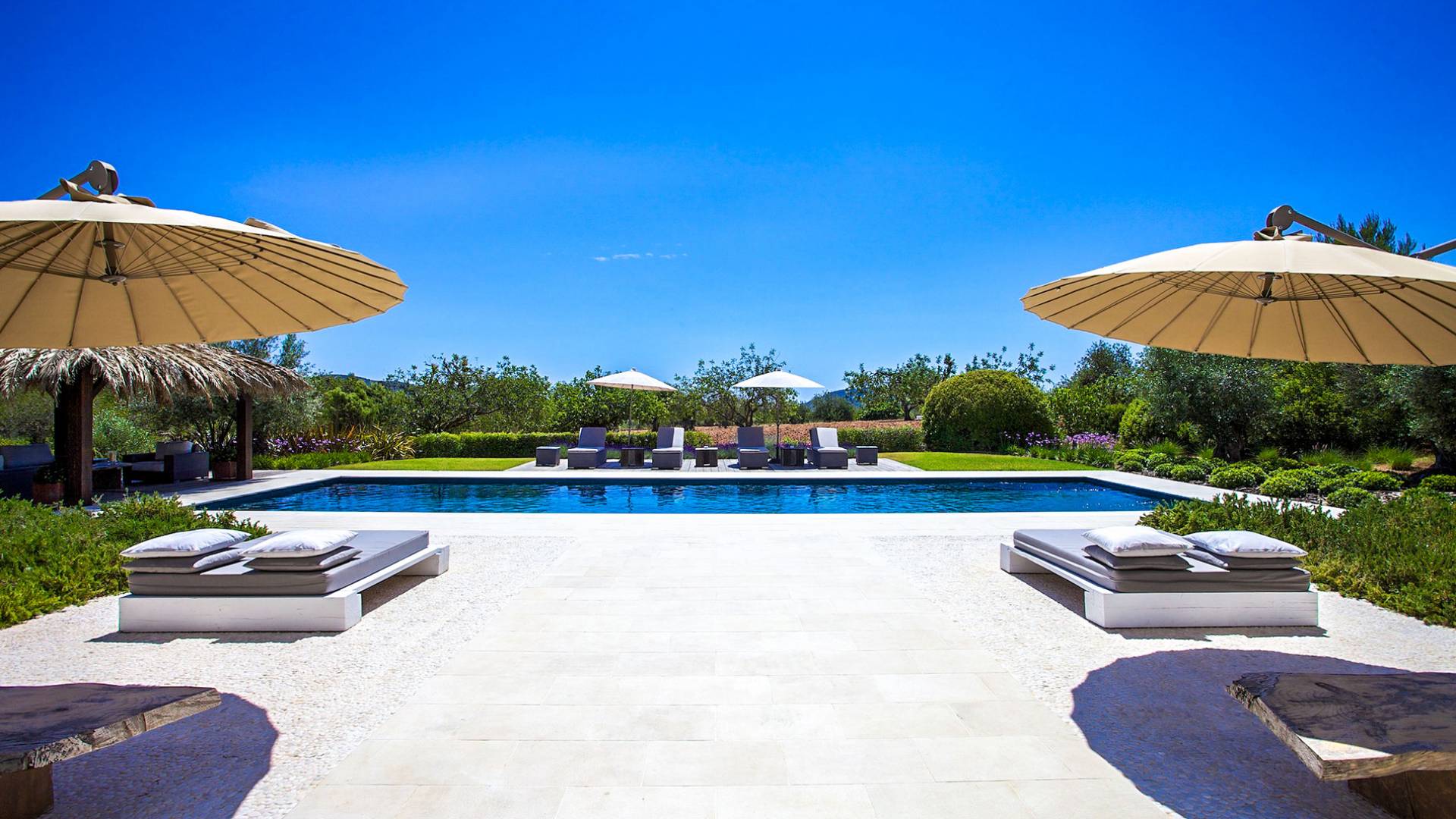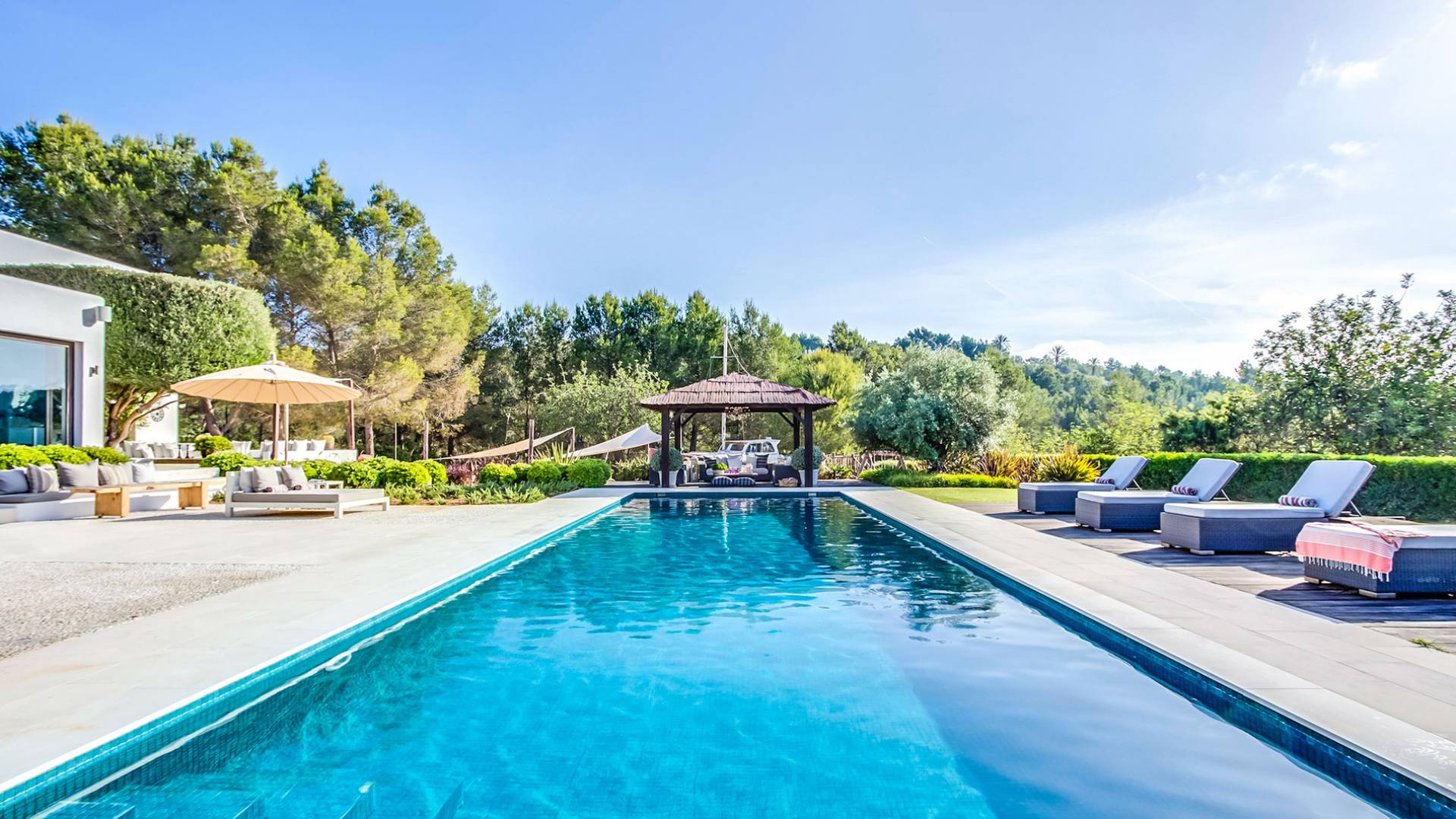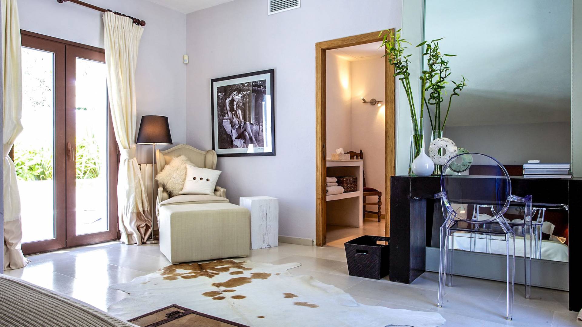 San Lorenzo Deluxe Villa Ibiza no tiene vecinos cercanos y está rodeada de tierras de cultivo. Con énfasis en la relajación y el confort totales, los jardines ofrecen grandes camas de día y tumbonas, un columpio y una gran zona de descanso con una mesa de gran tamaño, ideal para tomar una copa antes de la cena o una comida más informal.
