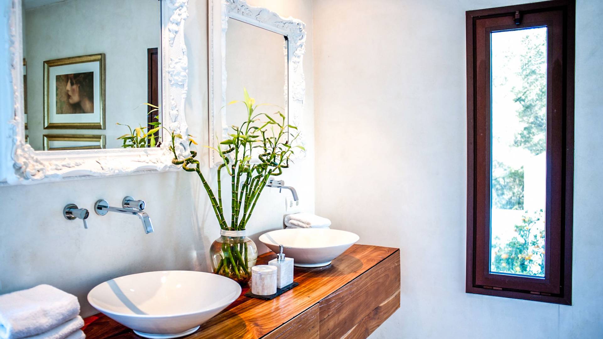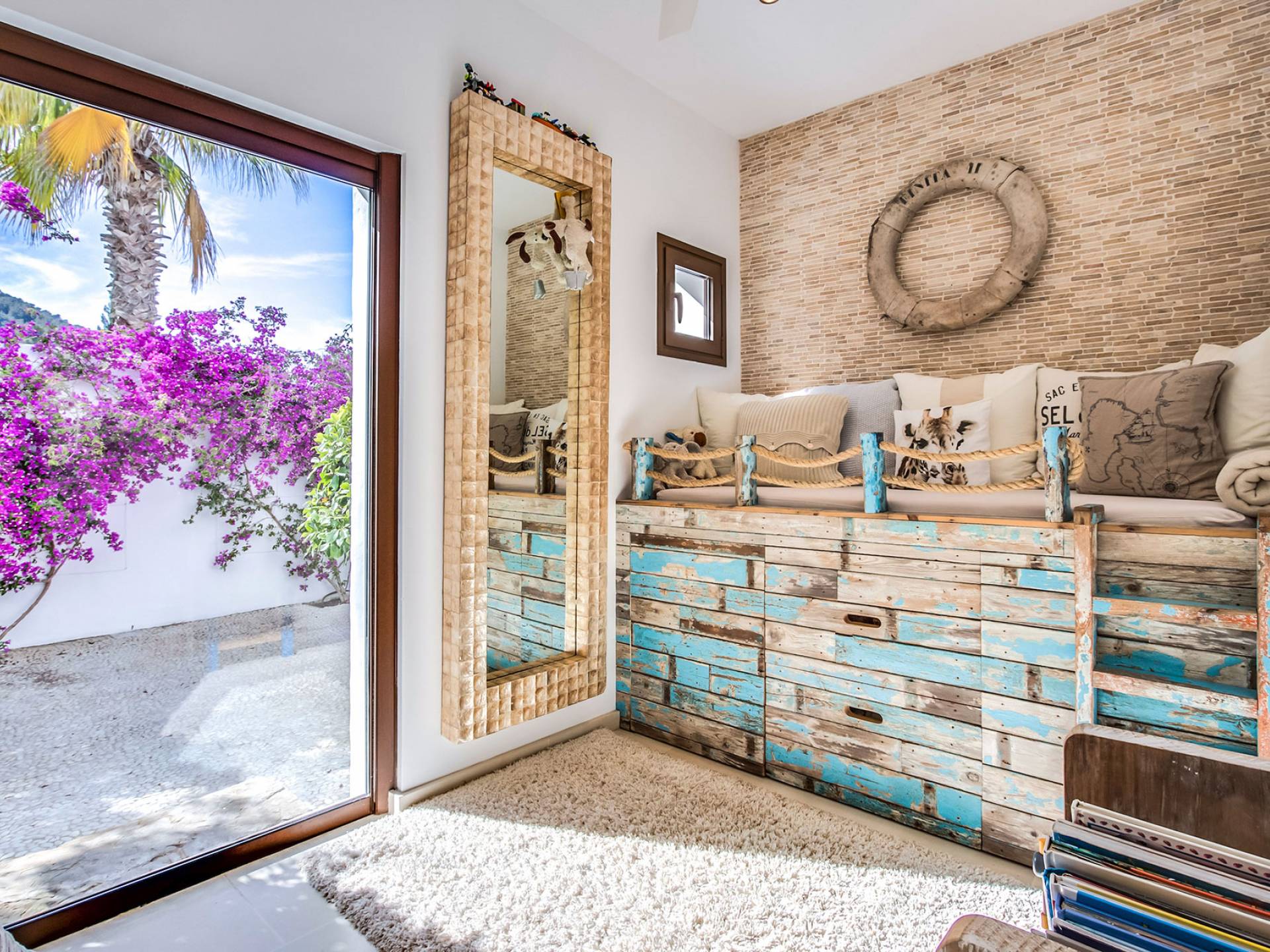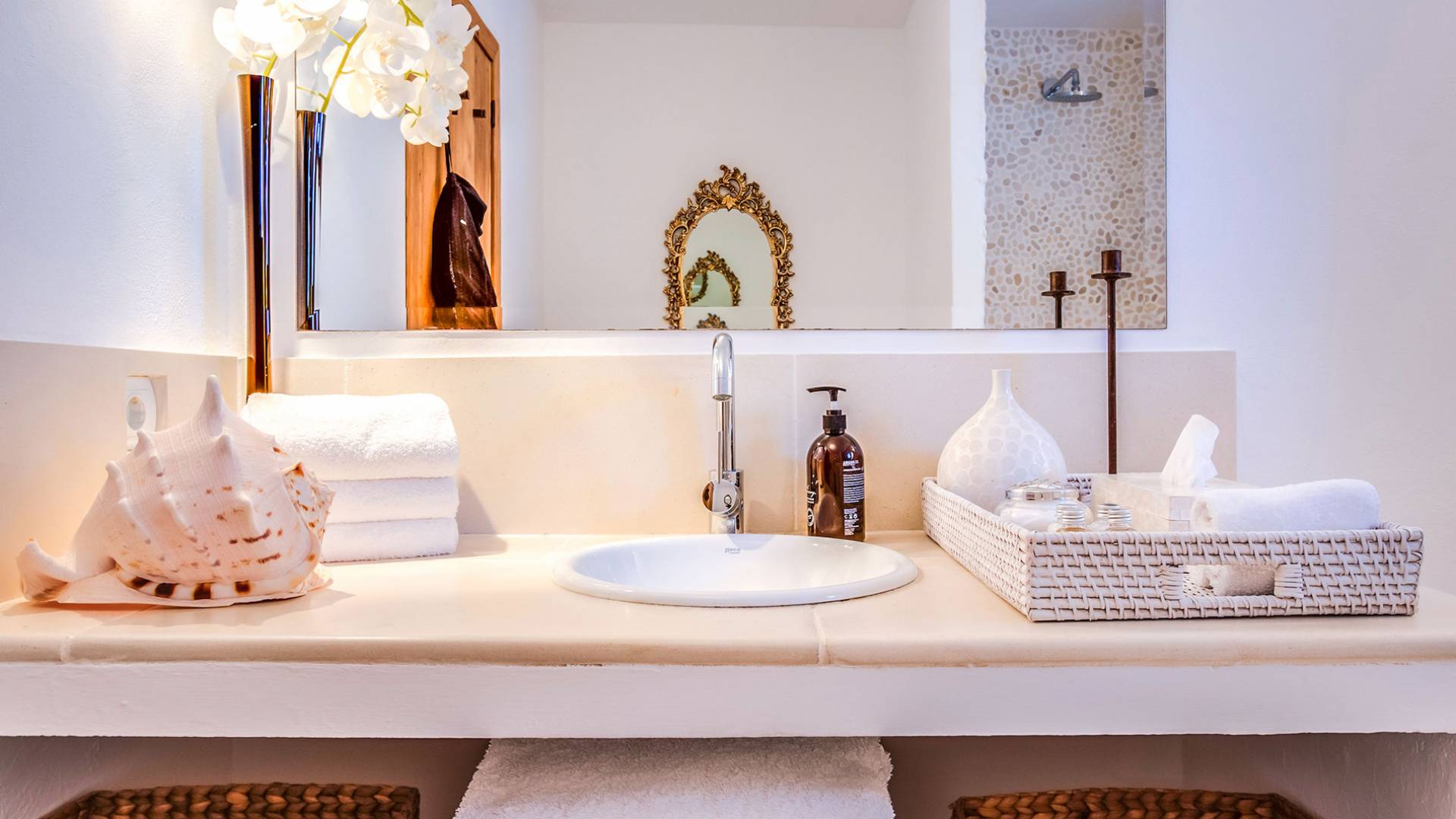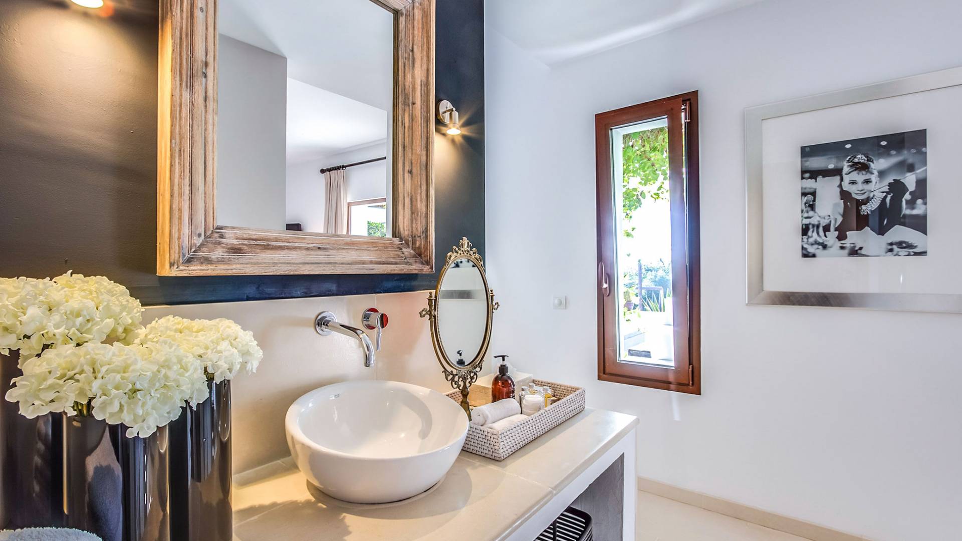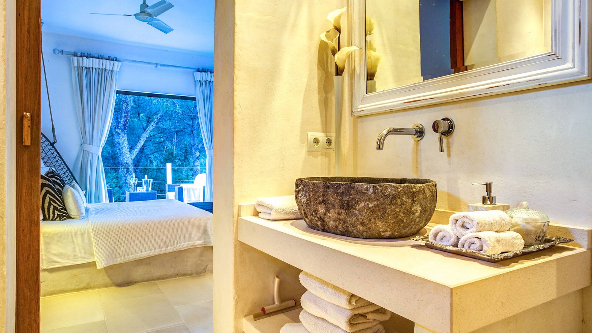 San Lorenzo Deluxe Villa Ibiza no tiene vecinos cercanos y está rodeada de tierras de cultivo. Con énfasis en la relajación y el confort totales, los jardines ofrecen grandes camas de día y tumbonas, un columpio y una gran zona de descanso con una mesa de gran tamaño, ideal para tomar una copa antes de la cena o una comida más informal.