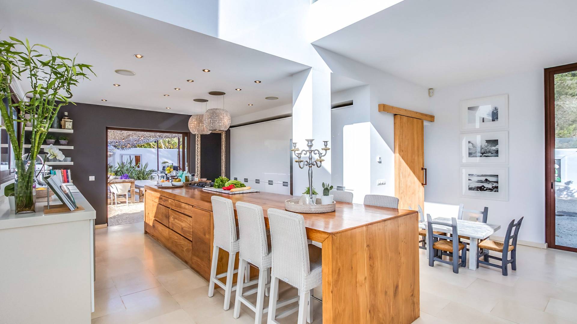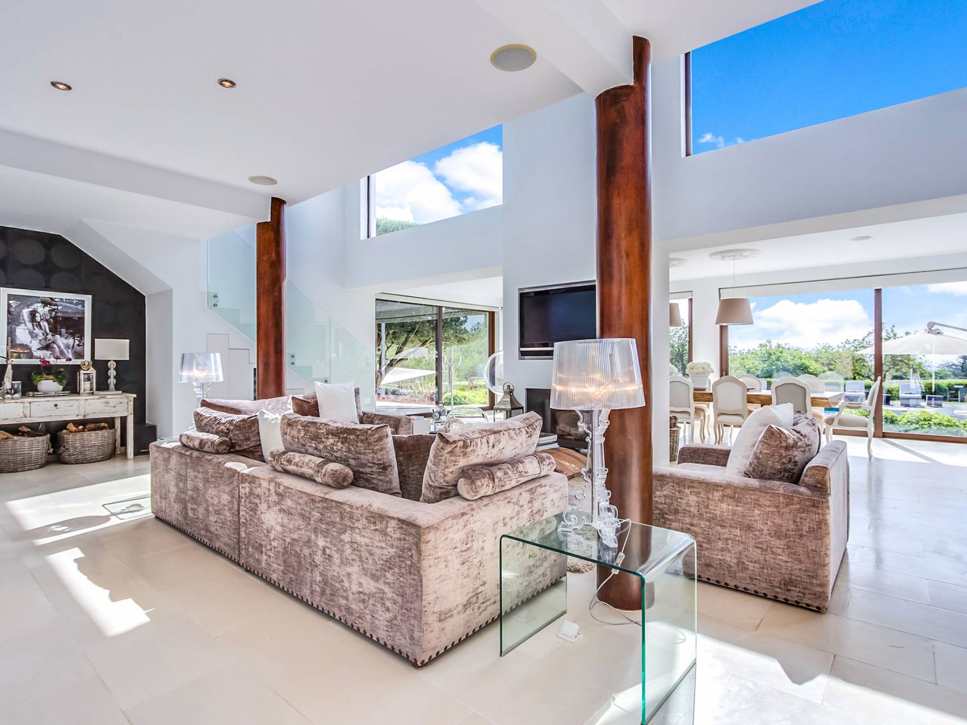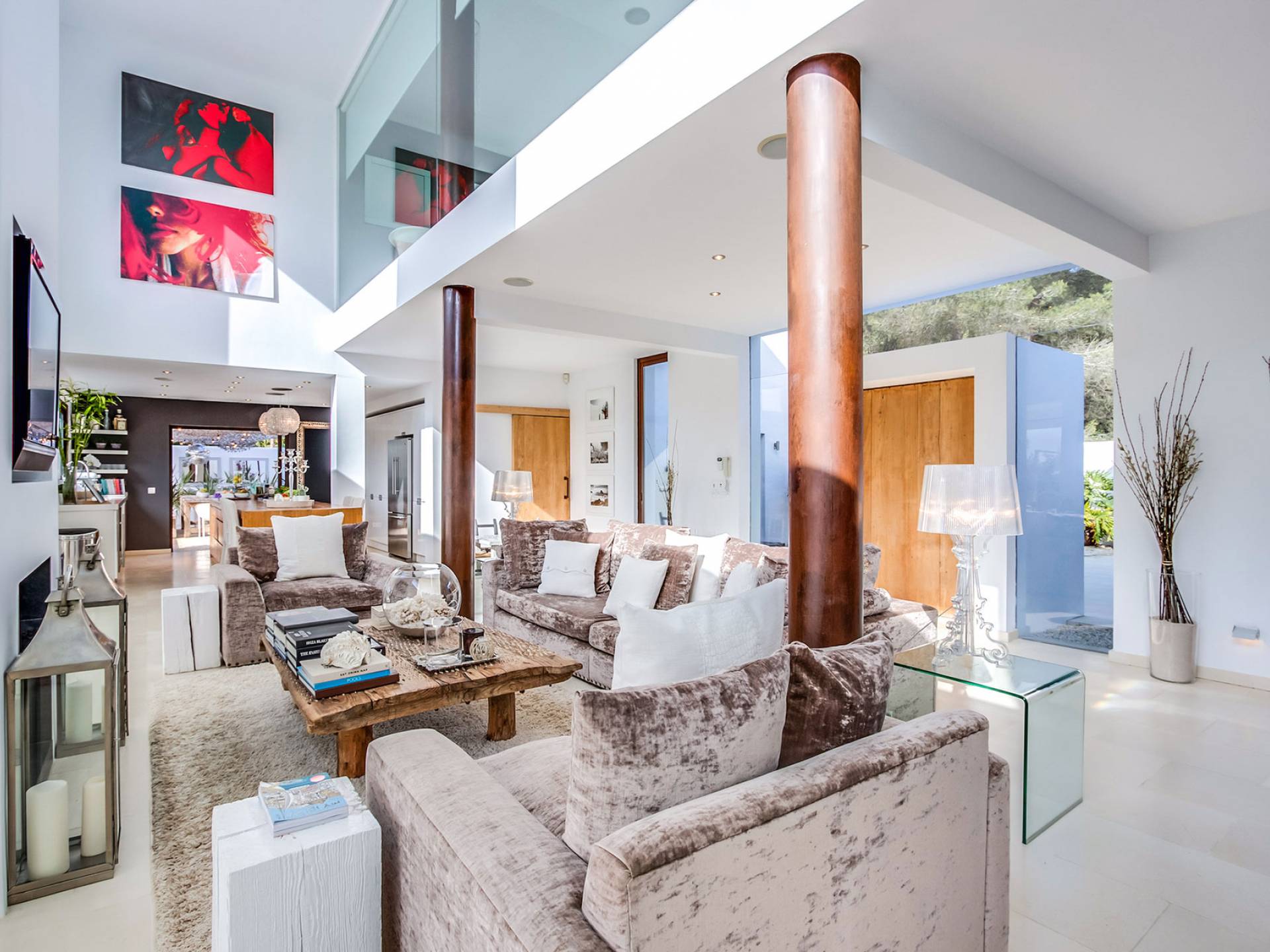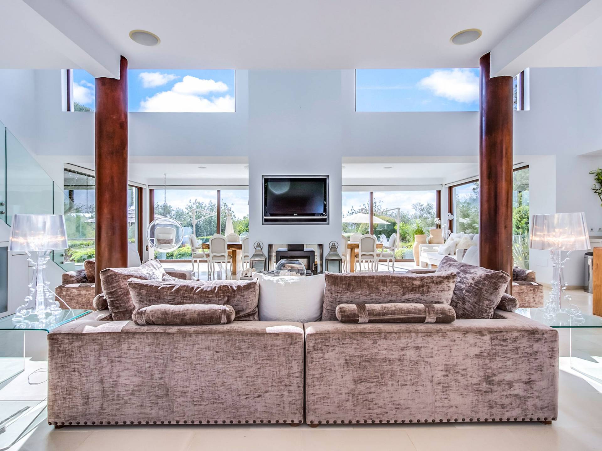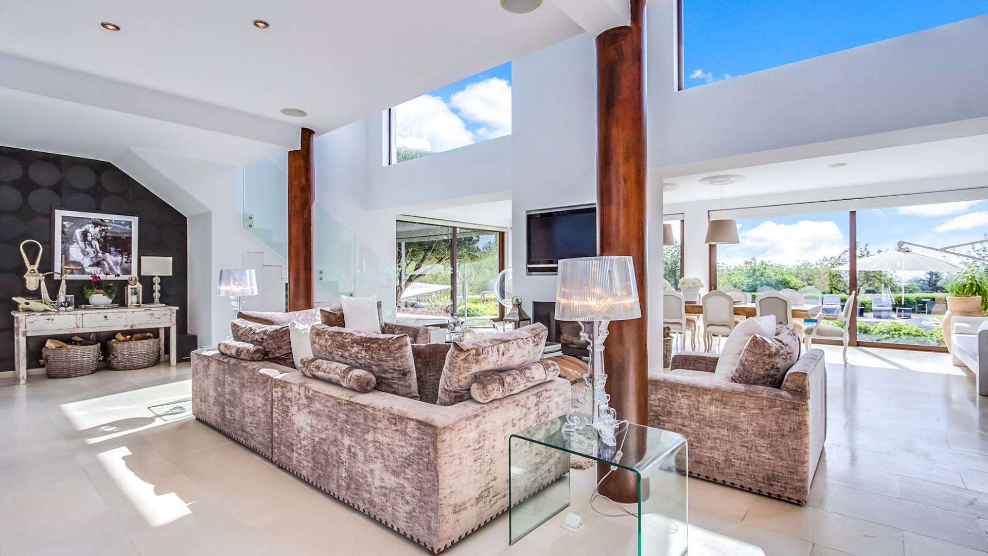 El diseño de planta abierta de San Lorenzo Deluxe Villa Ibiza une a la perfección la sala de estar con la cocina, el comedor y el exterior. Las grandes puertas de vidrio del piso al techo se abren a la piscina y al jardín, hay sofás gigantes estilo salón y una gran mesa de comedor de roble macizo para 14 personas. Las instalaciones incluyen un televisor de plasma de 42 ", sonido envolvente y un reproductor de DVD Blu-ray (una amplia biblioteca de DVD disponible), Sky TV y un sistema de sonido totalmente integrado conectado en toda la casa y en la terraza de la piscina. También hay conexión Wi-Fi en todo la casa.