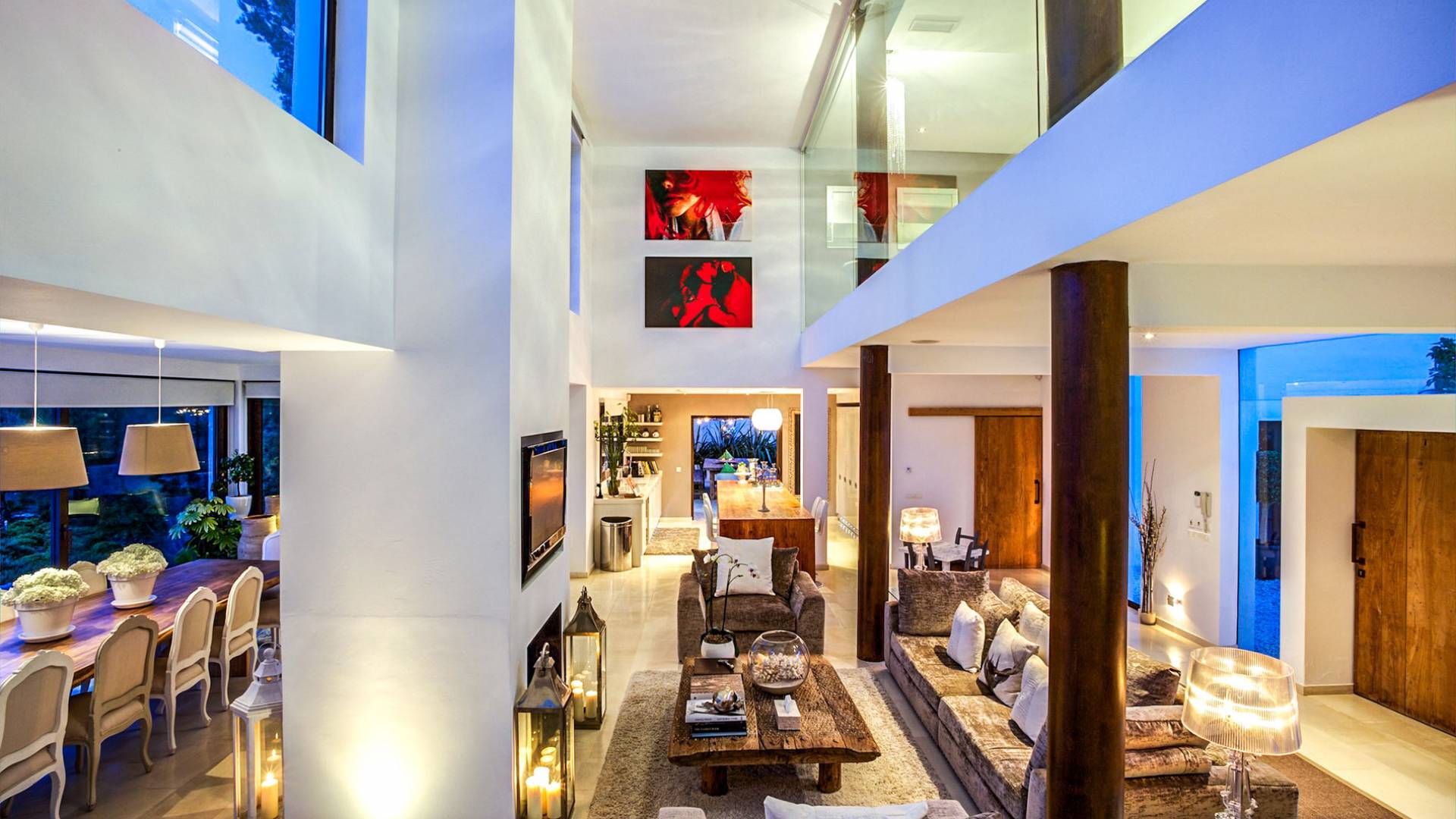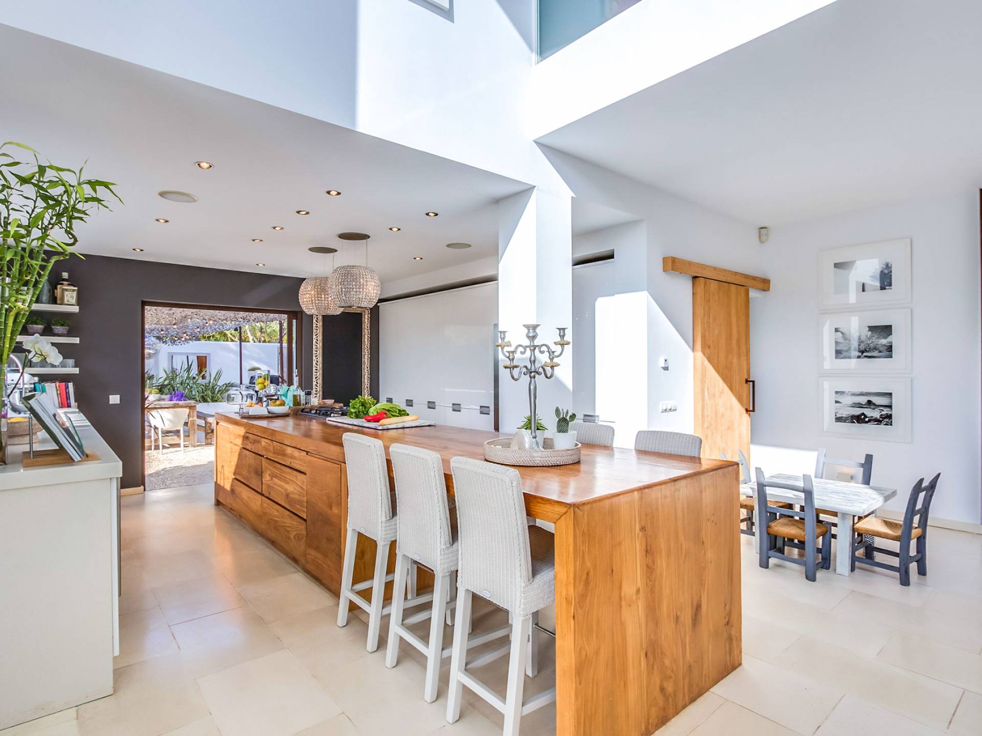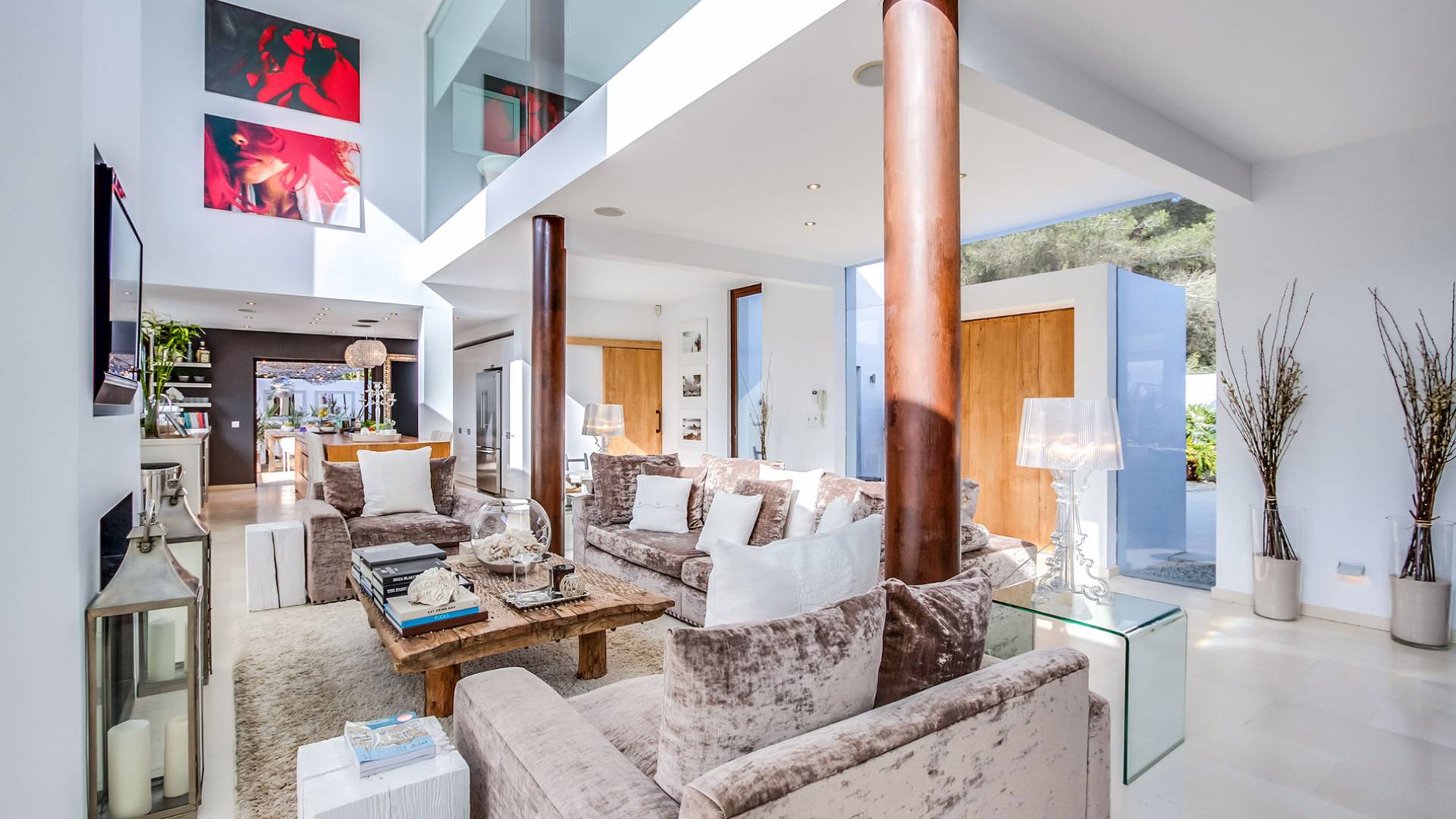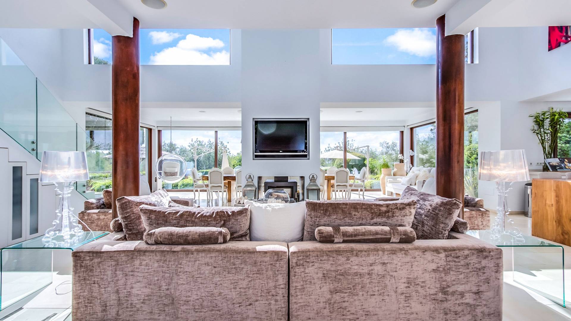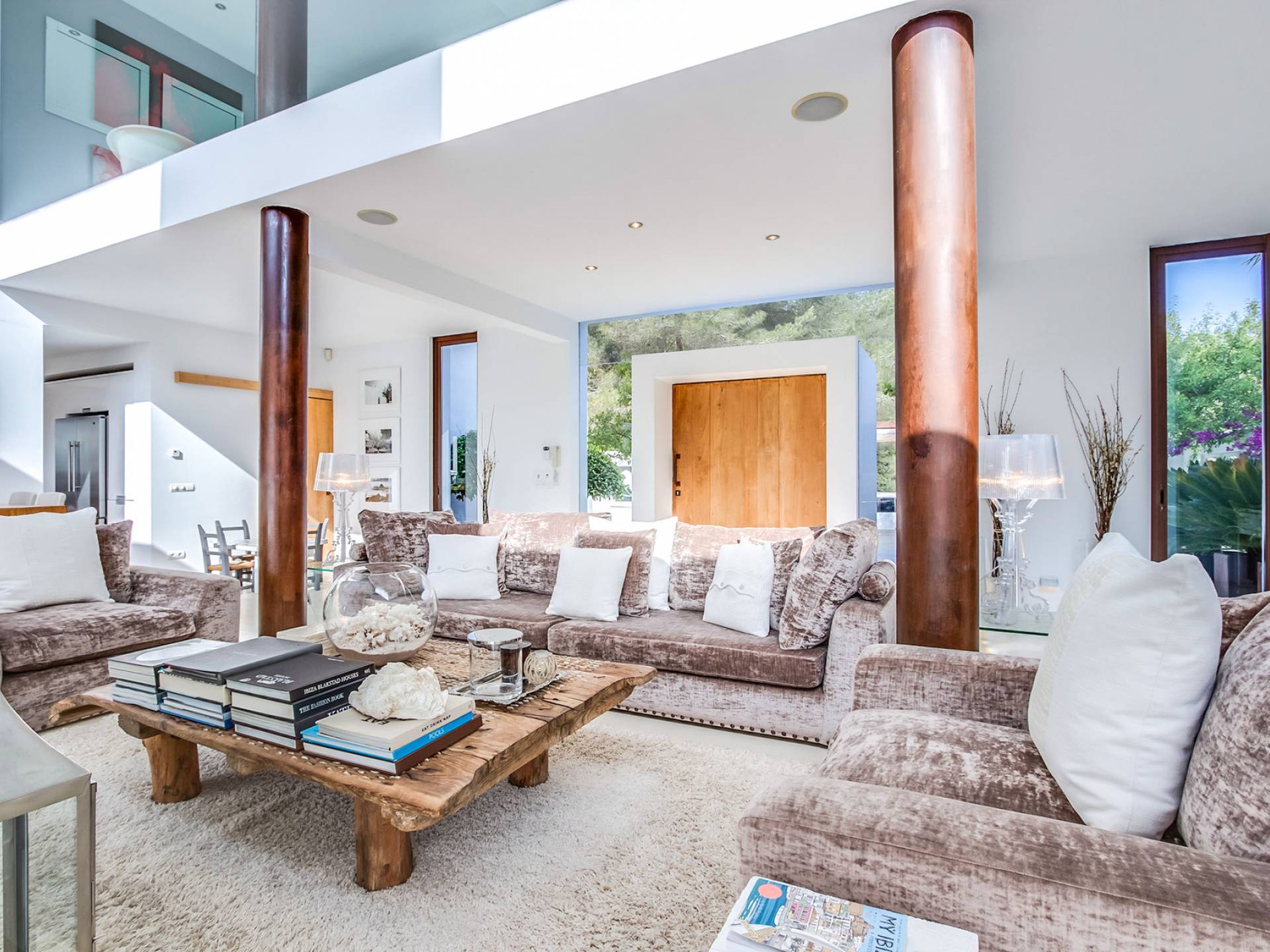 El diseño de planta abierta de San Lorenzo Deluxe Villa Ibiza une a la perfección la sala de estar con la cocina, el comedor y el exterior. Las grandes puertas de vidrio del piso al techo se abren a la piscina y al jardín, hay sofás gigantes estilo salón y una gran mesa de comedor de roble macizo para 14 personas. Las instalaciones incluyen un televisor de plasma de 42 ", sonido envolvente y un reproductor de DVD Blu-ray (una amplia biblioteca de DVD disponible), Sky TV y un sistema de sonido totalmente integrado conectado en toda la casa y en la terraza de la piscina. También hay conexión Wi-Fi en todo la casa.