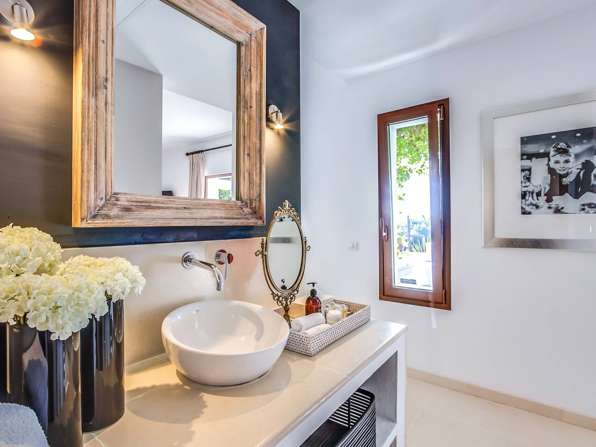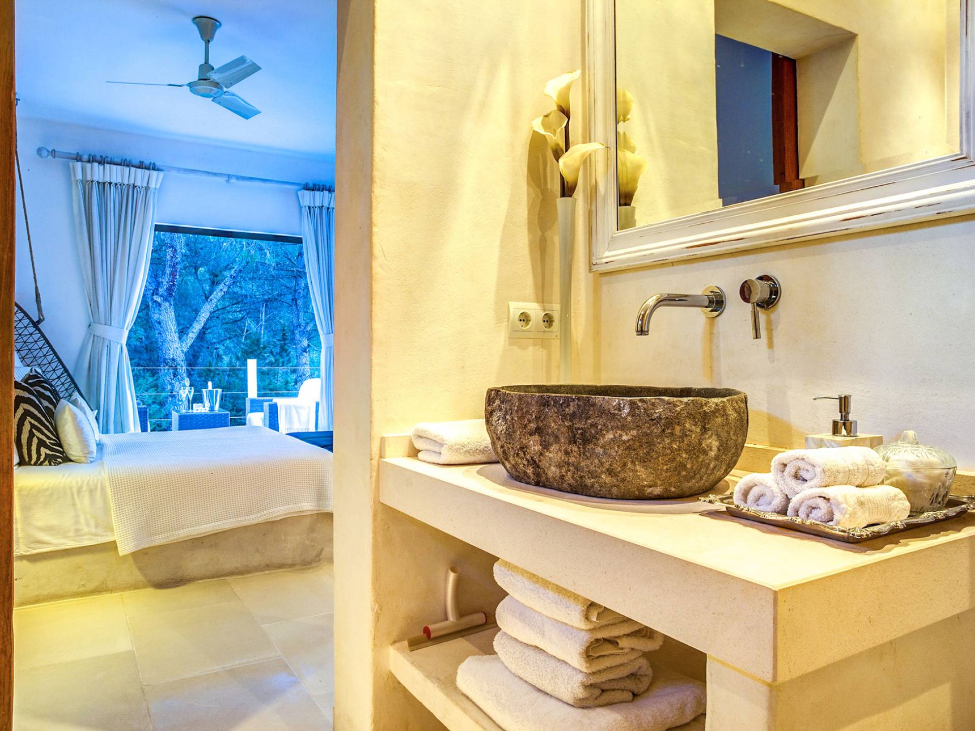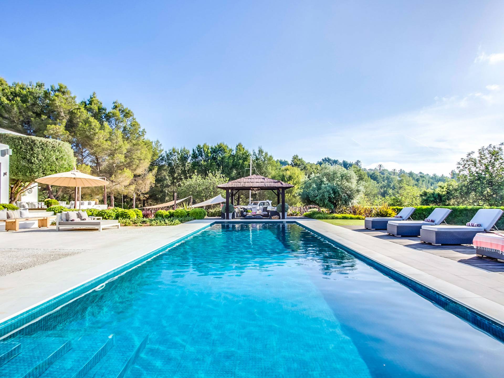 San Lorenzo Deluxe Villa Ibiza es una impresionante villa de planta abierta de 6 dormitorios ubicada en el corazón de la gloriosa campiña de Ibiza ubicada entre Santa Gertrudis y San Lorenzo, a solo 7 minutos de Santa Eulalia, a 10 minutos de la ciudad de Ibiza y a 15 minutos de la aeropuerto. Cómoda, elegante y elegante, la villa ha sido completamente renovada en un estilo que fusiona lo contemporáneo con toques tradicionales del Mediterráneo y Asia. La villa está ubicada en 8100 metros cuadrados (2 acres) de terreno, con hermosas vistas sobre el campo circundante, la Iglesia de Santa Eulalia en la distancia y el Mediterráneo más allá.