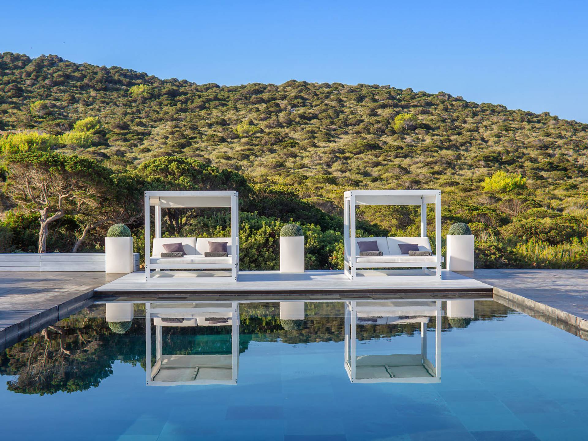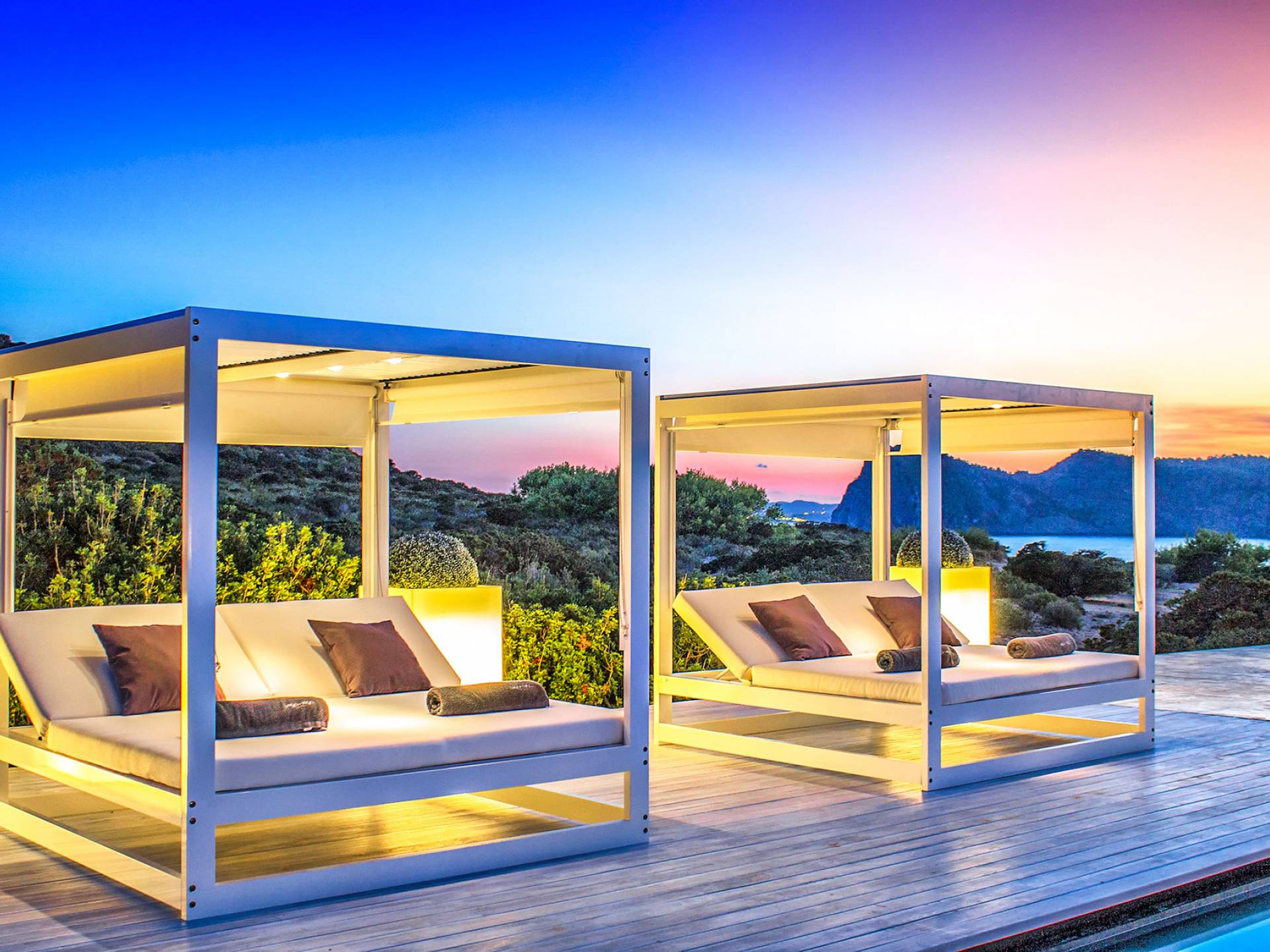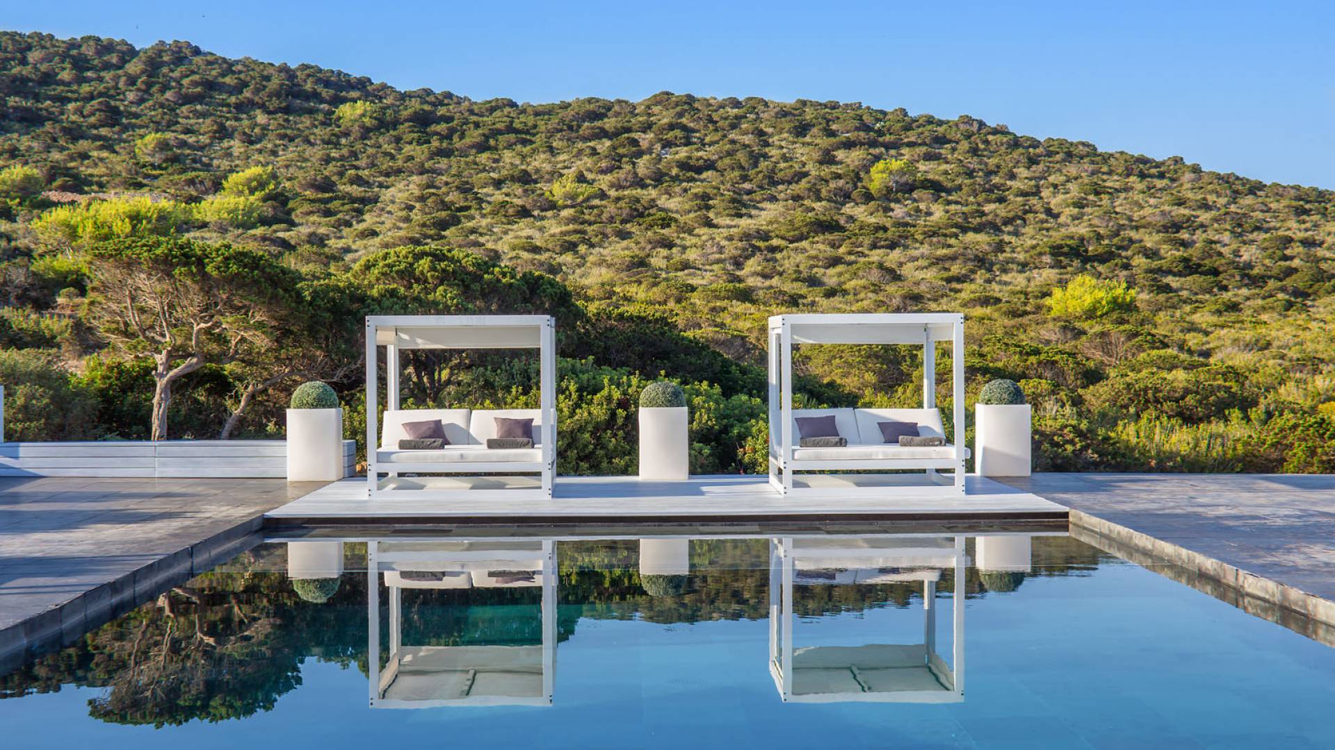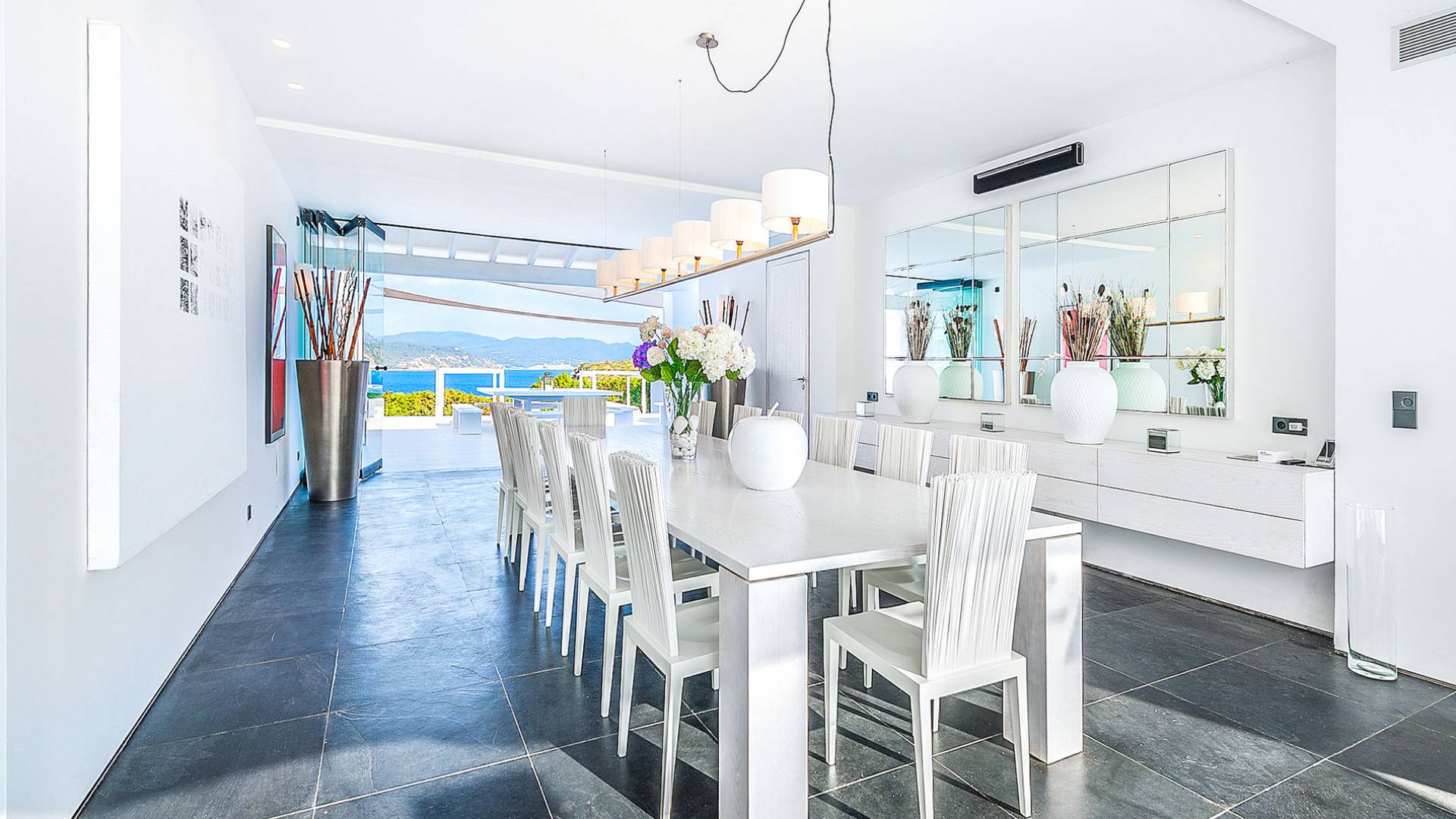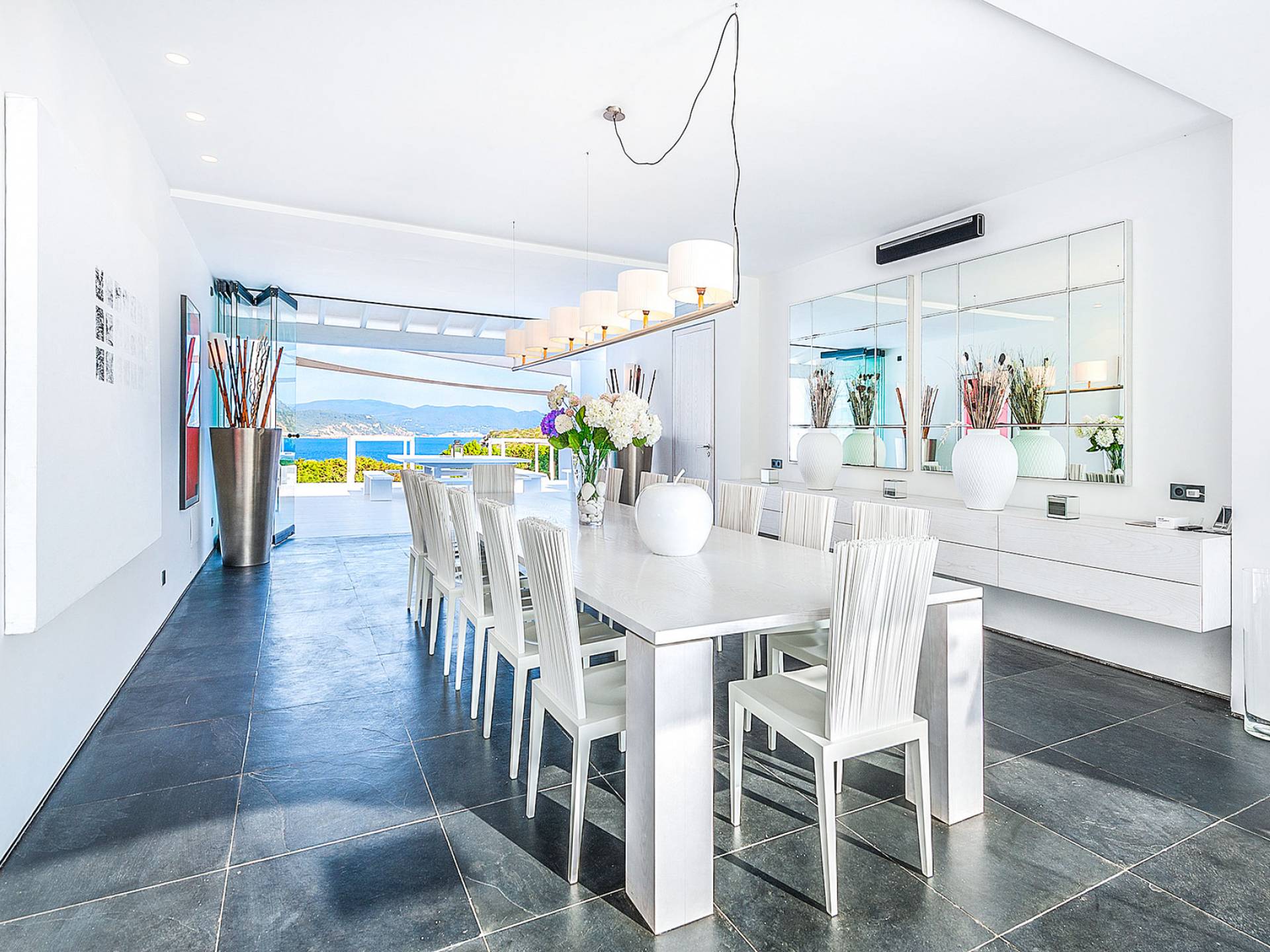 Toda la finca que rodea esta villa de lujo cuenta con impresionantes vistas en todas direcciones, como la isla de Ibiza y el mar Mediterráneo. Hay magníficas y espaciosas terrazas con zonas chill-out al amanecer y al atardecer, así como una piscina de 17 mx 8 m, para una mayor relajación, hay una piscina de hidromasaje al aire libre, un baño de vapor y una sauna. Disfrute del sol desde la mañana hasta la noche en estas amplias terrazas y podrá disfrutar de un comedor al aire libre con vista en el área de comedor al aire libre con barbacoa. Tagomago Private Island tiene seguridad las 24 horas y solo es accesible en la costa oeste, el aterrizaje de helicópteros es una posibilidad y un yate privado está disponible para alquilar (precio en la solicitud).