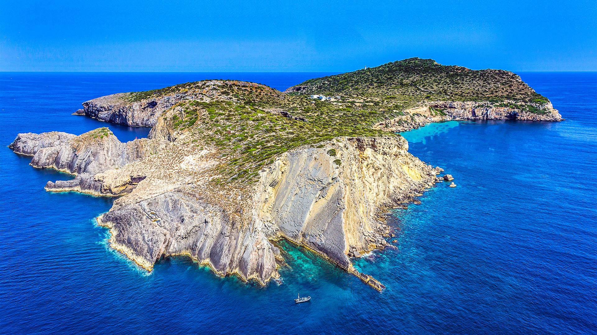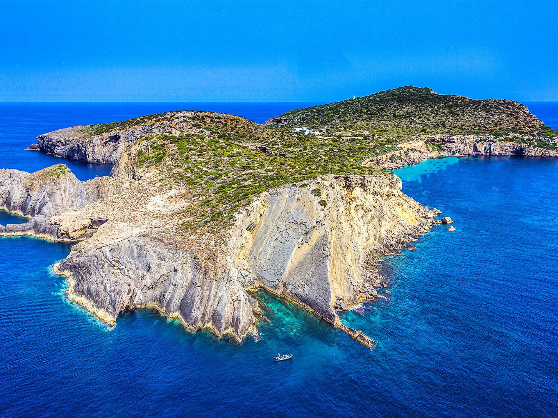 La mansión está situada justo en el centro de la isla y ha sido renovada al más alto nivel con un interior moderno y sofisticado. Siente la magia de esta hermosa isla y disfruta del amanecer y el atardecer estés donde estés. La isla verde de Tagomago, de 600.000 metros cuadrados, es perfecta para un romántico paseo por los senderos del campo y ofrece excelentes posibilidades para observar las variadas especies de aves y visitar el histórico faro que data de 1909.