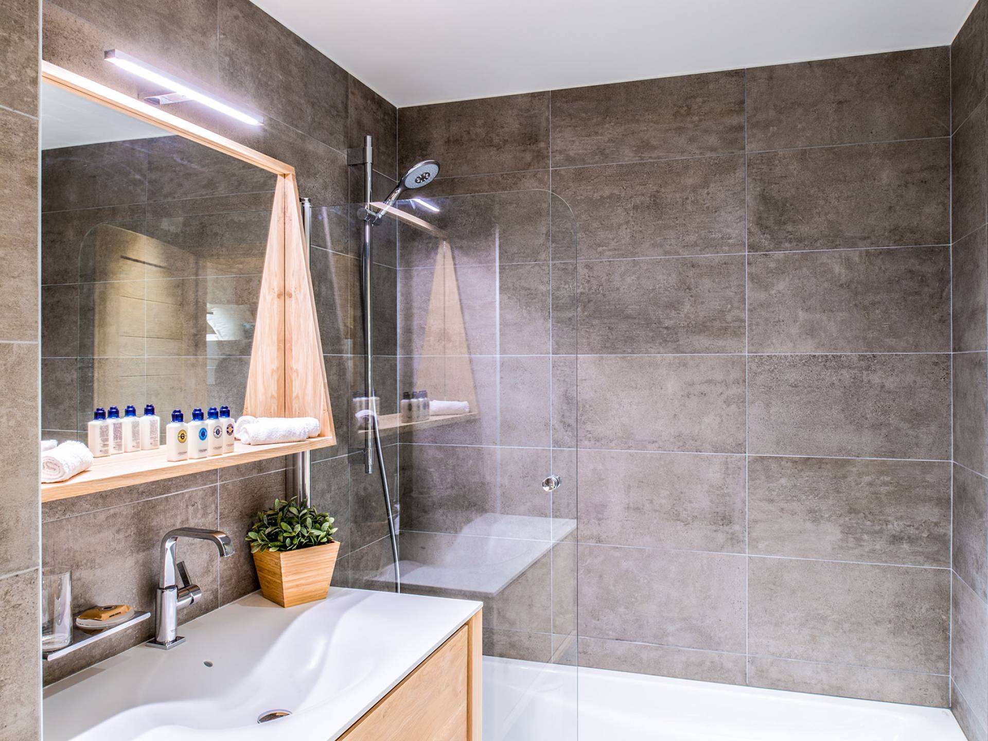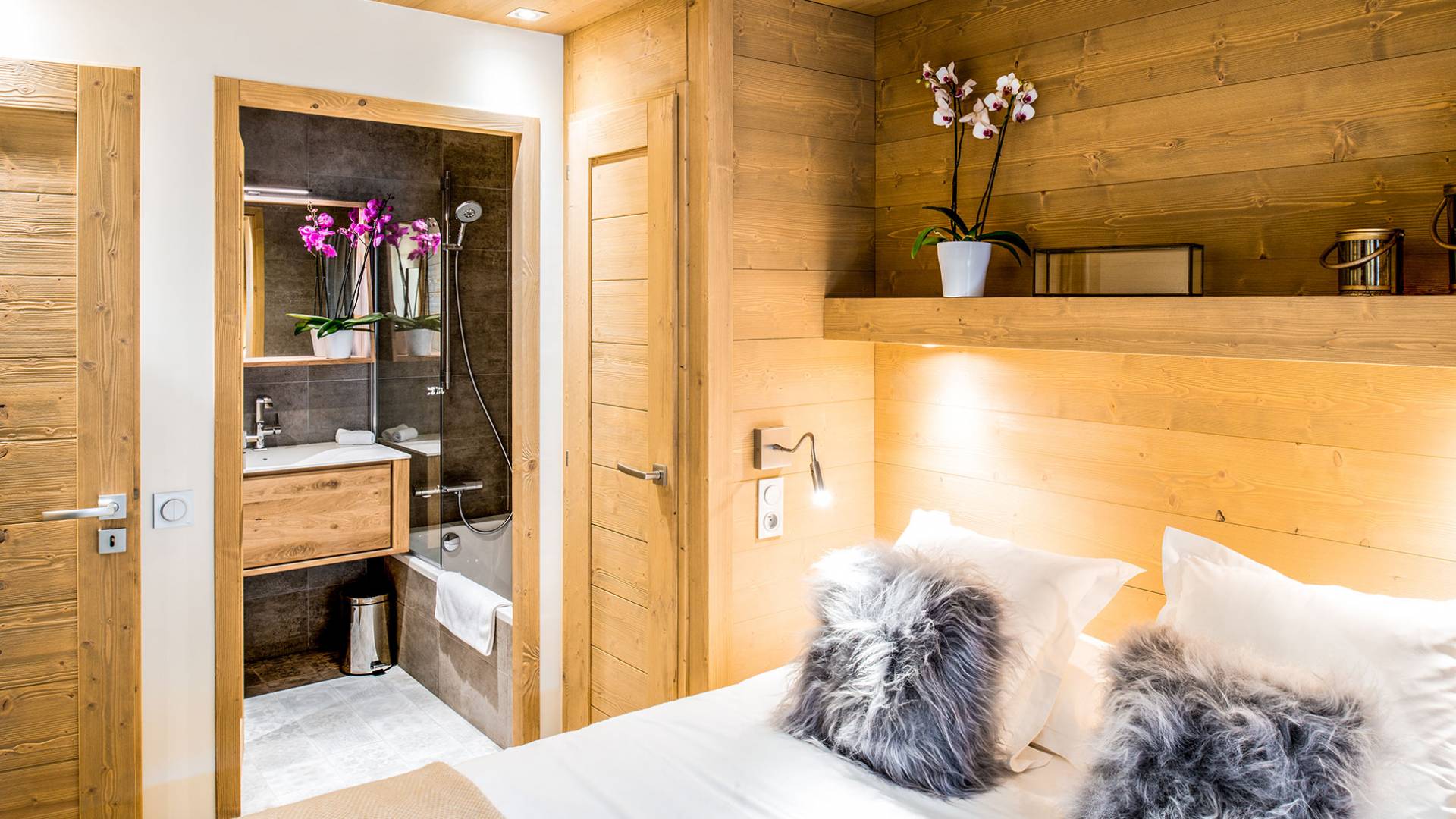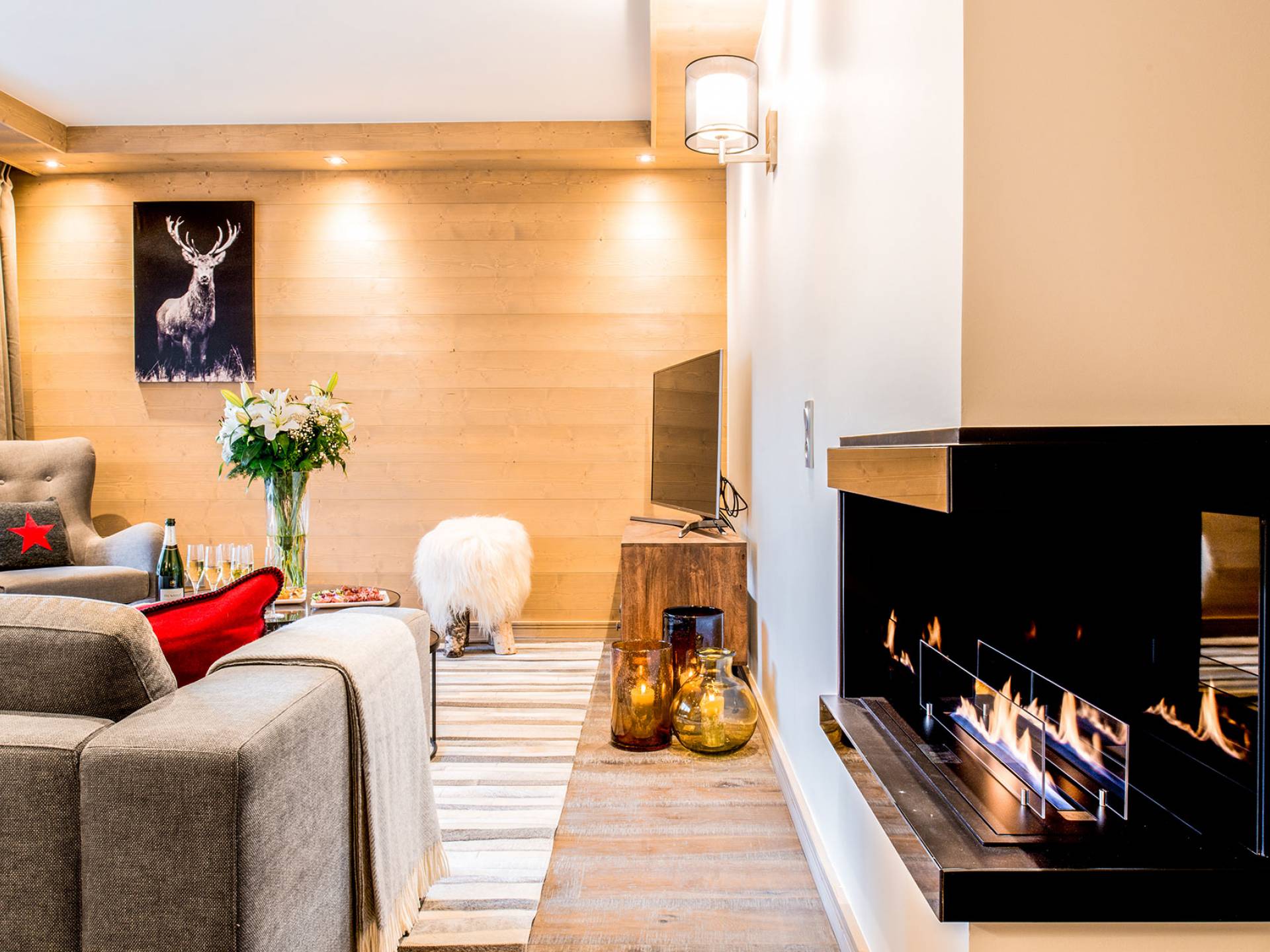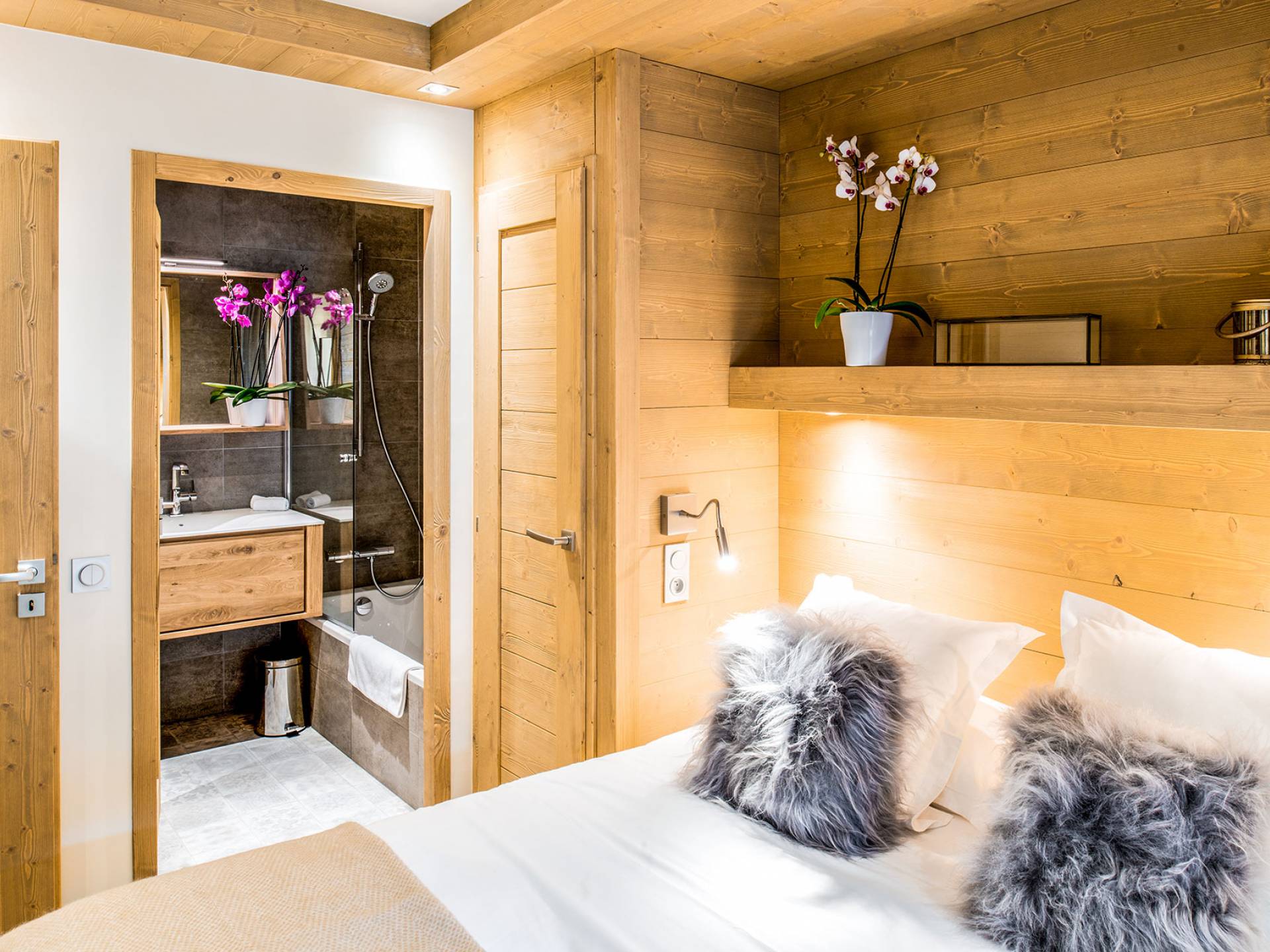 Cada apartamento ofrece espacios amplios, luminosos y acogedores para que se sienta como en casa. Y para no estropear nada, también tiene acceso a los servicios de alta gama que ofrece la residencia vecina "Le C", como el Bistrot Le C, una zona de bienestar privada y una sala de esquí. El apartamento D11, ubicado en el 4 ° piso de la Residence Mammoth Lodge Courchevel 1650, con una superficie de 82 m2, es perfecto para recibir a 8 personas. Este apartamento tiene dos dormitorios con camas dobles, un dormitorio como dormitorio con dos literas y tres baños. La sala de estar con TV y quemador de etanol tiene también una cocina totalmente equipada, un comedor y una terraza con vista al pico Saulire. Durante sus vacaciones, puede beneficiarse de una plaza de aparcamiento en el aparcamiento privado, un guardaesquís y acceso a Wi-Fi.