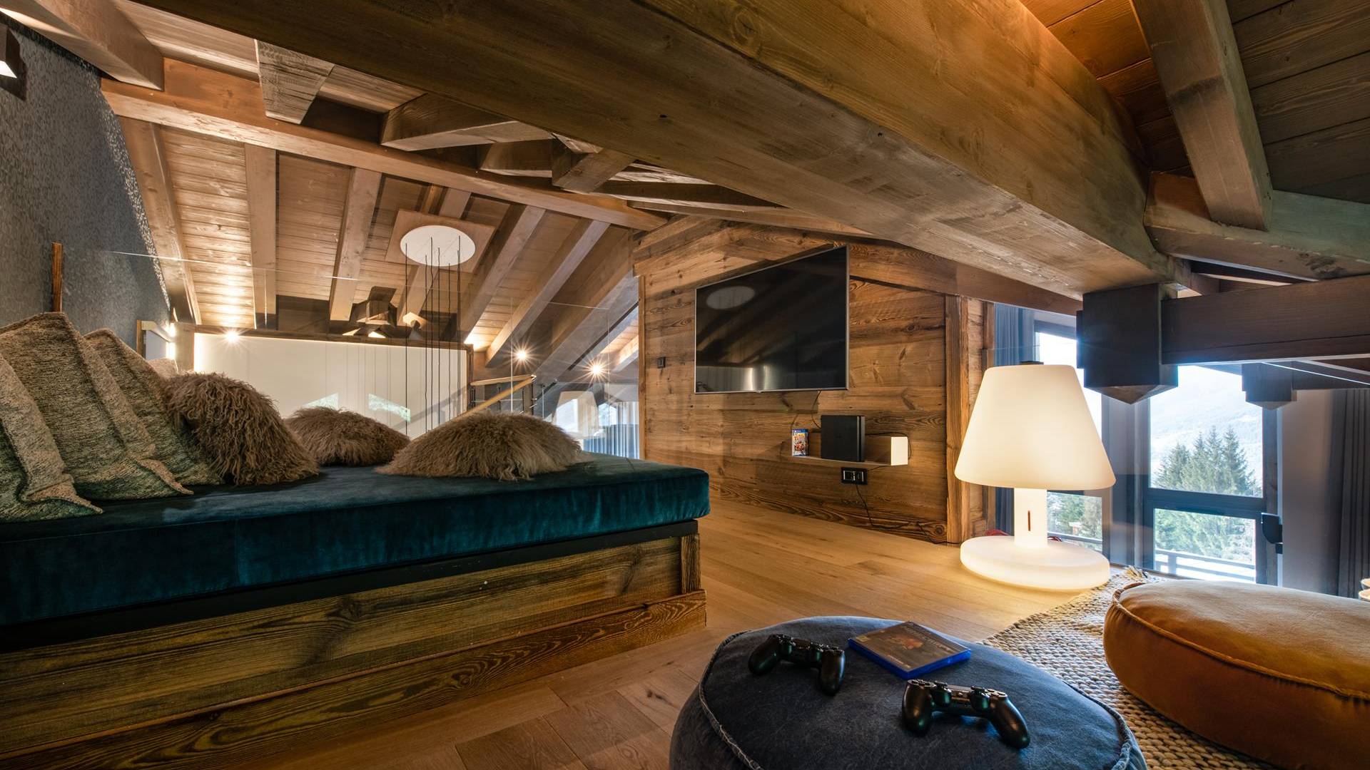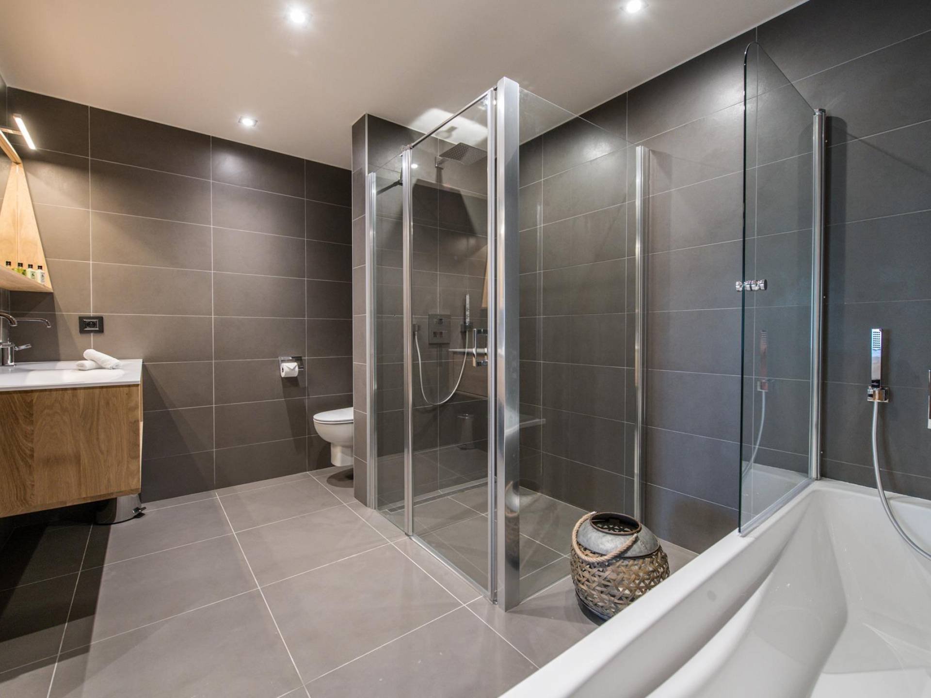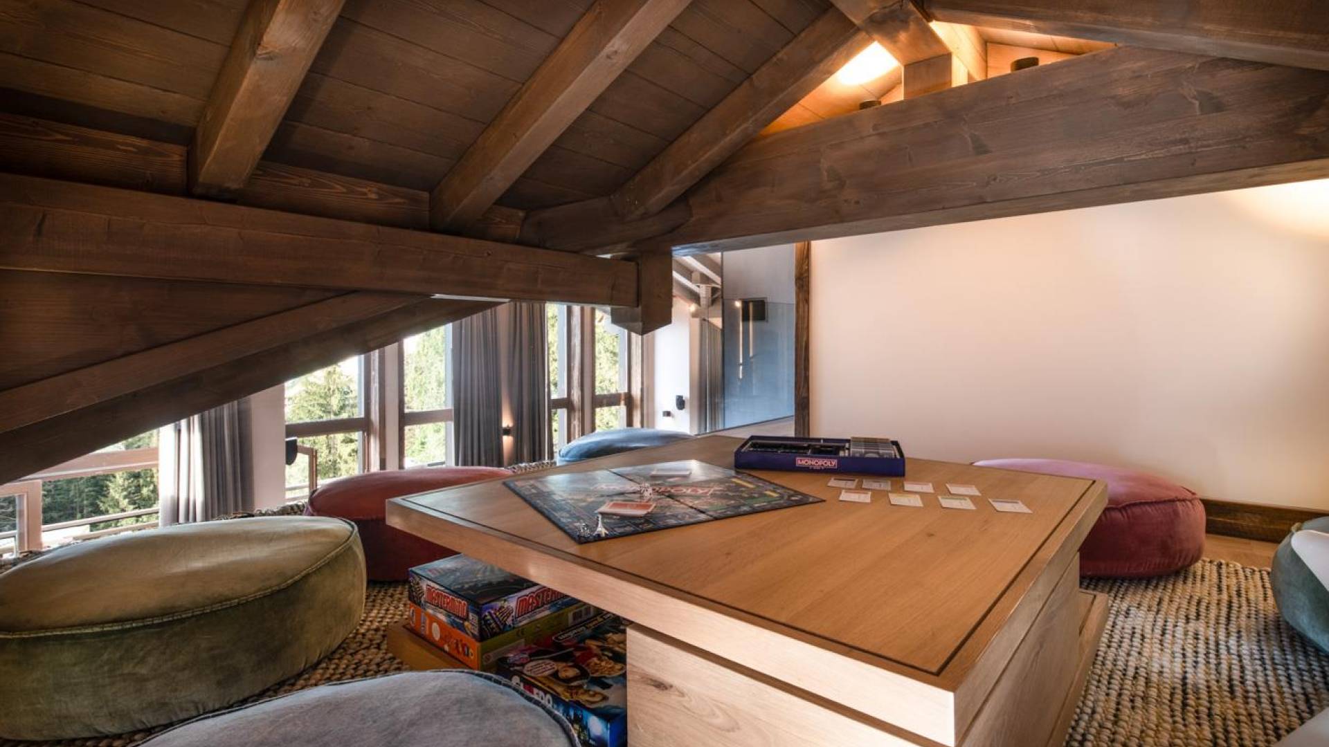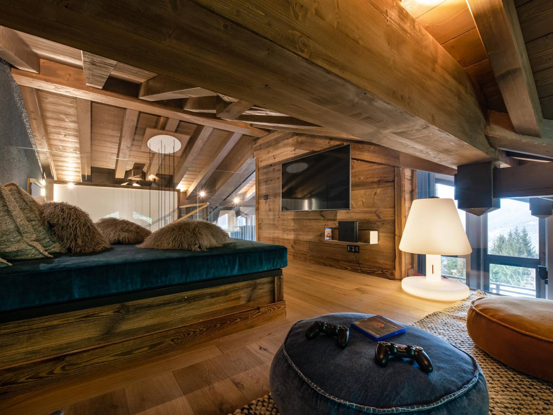 Este chalet de 5 niveles cuenta con seis habitaciones con cama doble (dos con vestidor) y seis baños. La hermosa sala de estar con TV y chimenea también tiene un comedor y una cocina totalmente equipada. Apreciará la gran terraza que ofrece una hermosa vista de las montañas y el balcón con bañera de hidromasaje. Encontrará un entrepiso con un rincón de TV y un rincón de juegos. También disfrutarás del Spa privado con piscina, sauna y hammam.