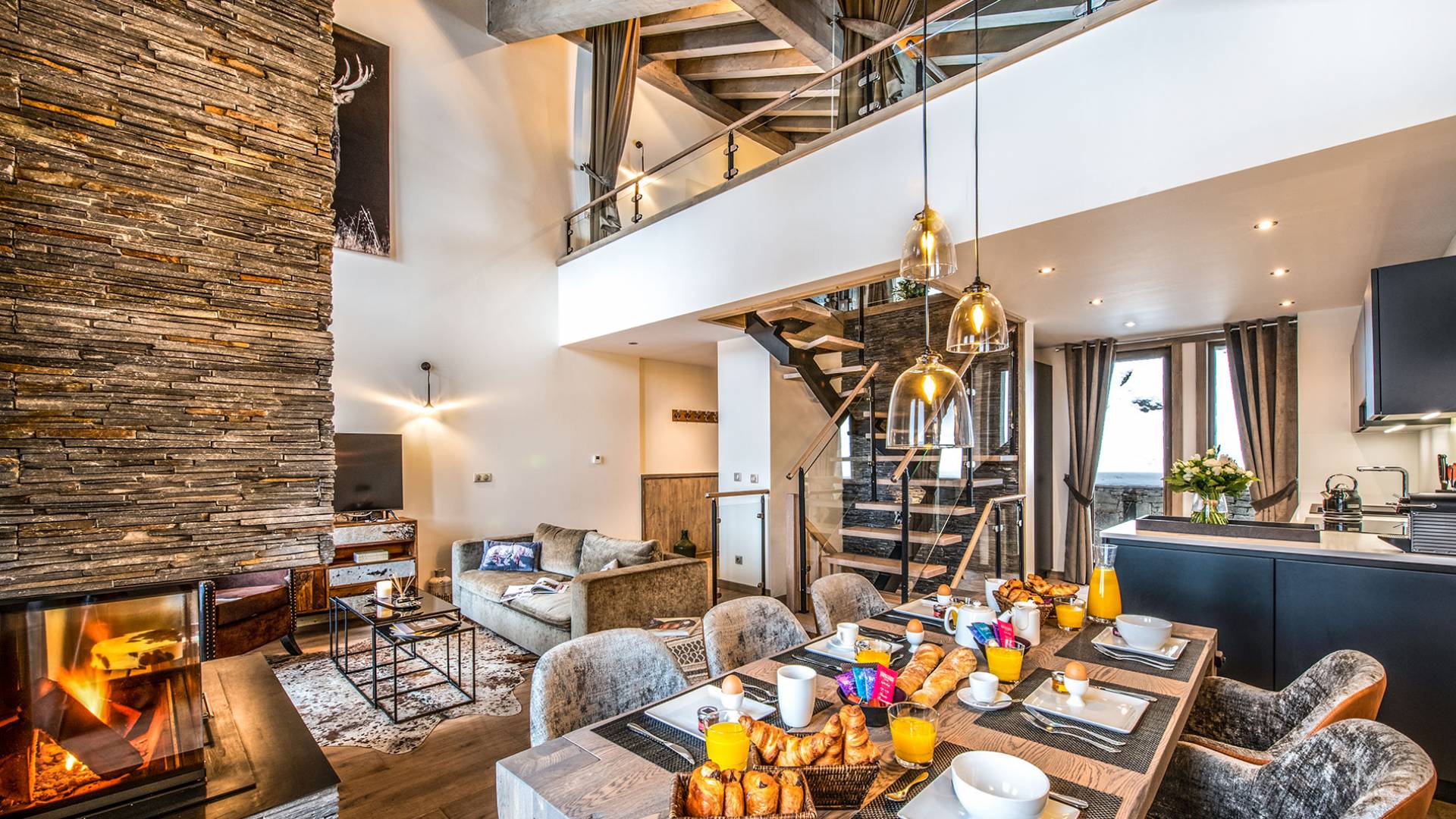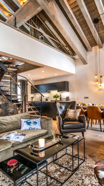 Chalet 2, ubicado en Yellowstone Lodge Residence, con una superficie de 174 m2, es perfecto para recibir a 8 personas. Este chalet tiene cuatro dormitorios con una cama doble y cuatro baños en suite. La acogedora sala de estar con TV y chimenea tiene también un comedor y una cocina totalmente equipada. También apreciará el gran balcón con jacuzzi que ofrece una vista de las montañas. Encontrará un entrepiso con un rincón de oficina y un rincón de lectura. Durante tus vacaciones, podrás beneficiarte de una plaza de aparcamiento en el parking privado, guardaesquís y acceso wifi.