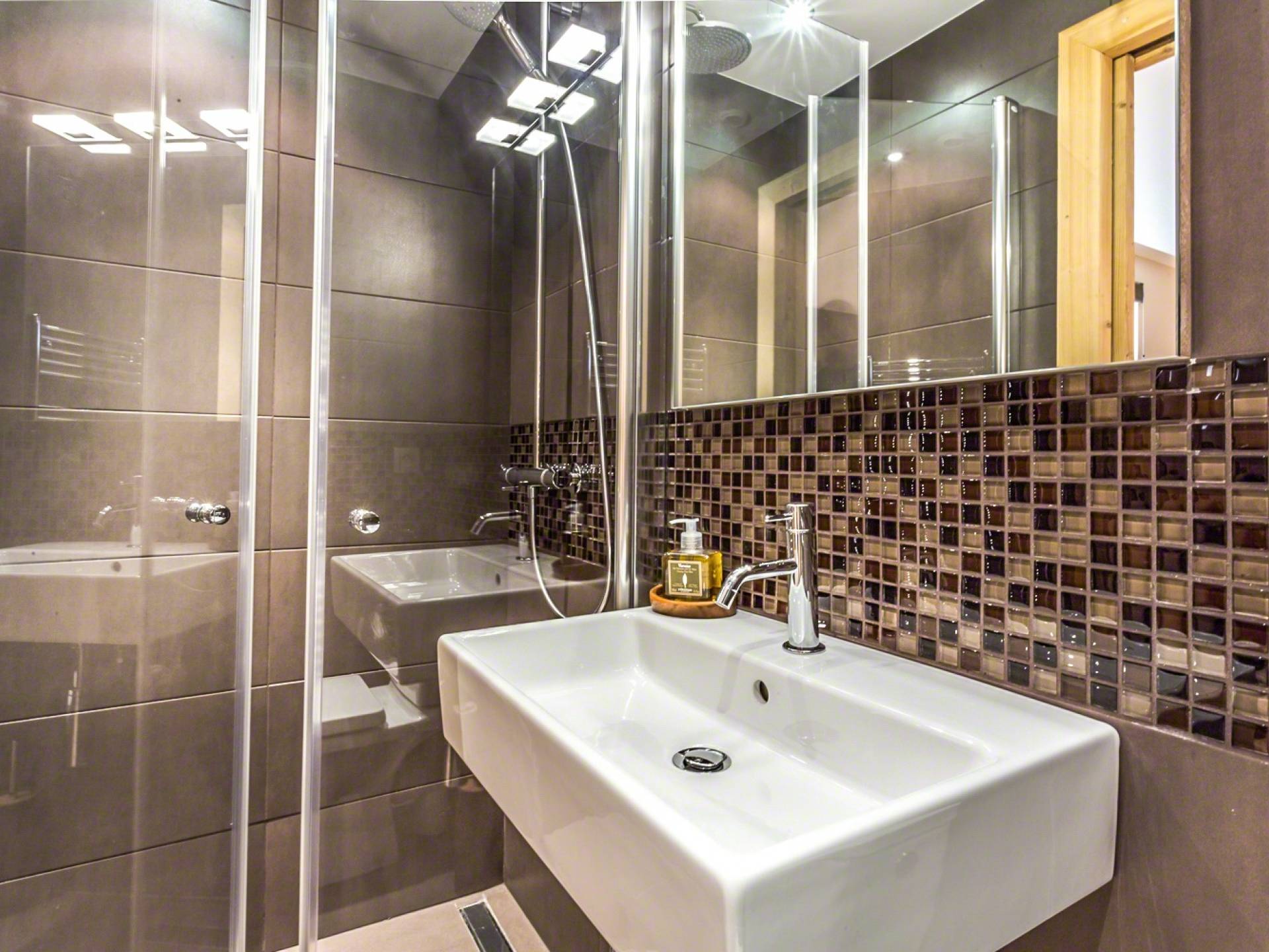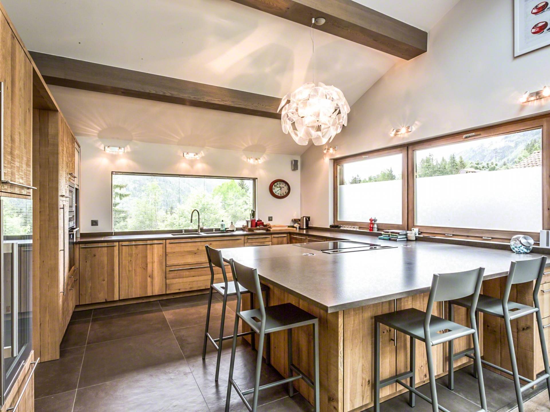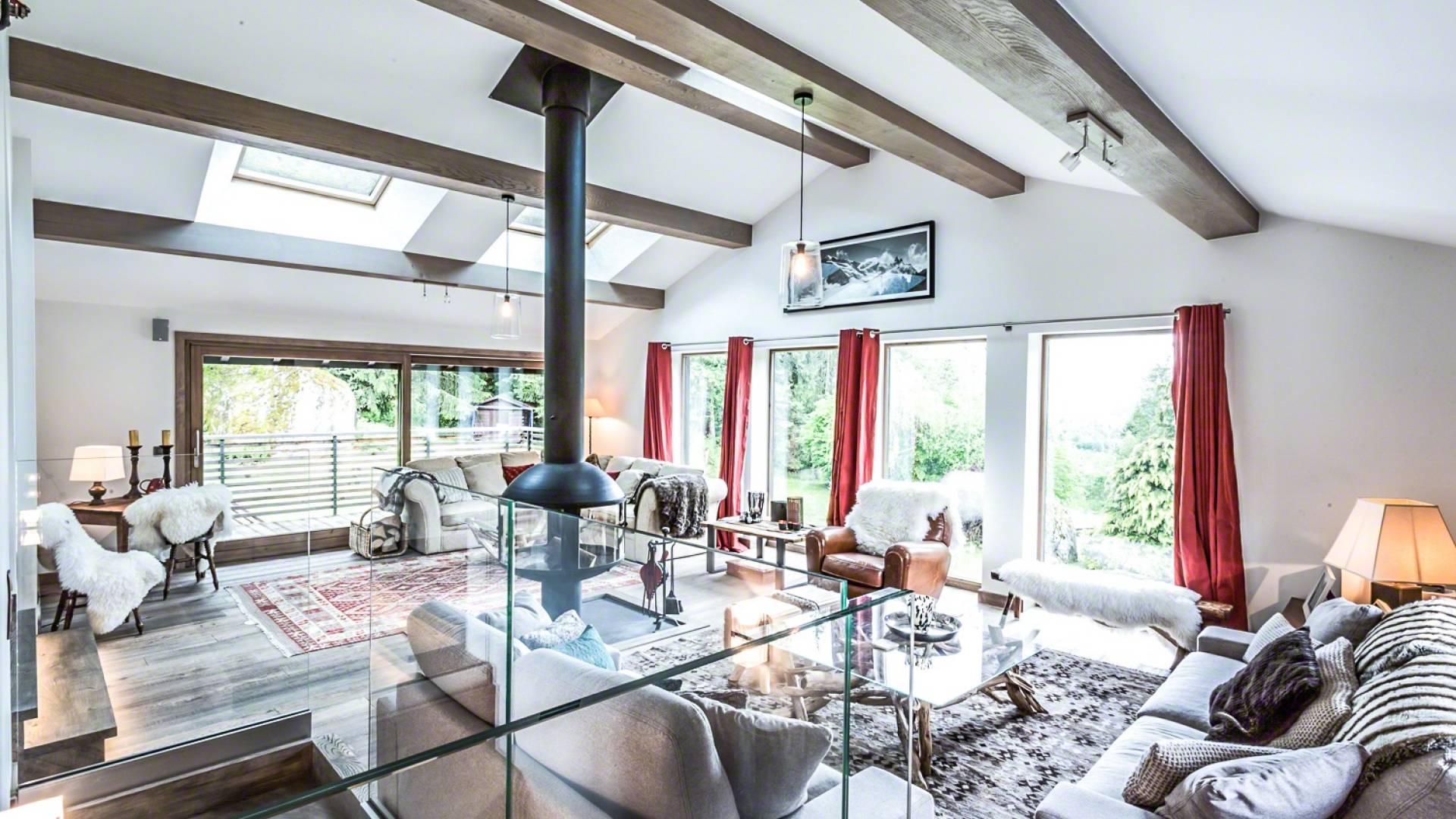La moderna sala de estar del último piso de planta abierta consta de una cocina totalmente equipada con una unidad de isla y barra de desayuno, un comedor separado y dos áreas de estar separadas que rodean la chimenea suspendida. El balcón conduce al jardín y ofrece unas vistas impresionantes Las habitaciones son amplias, cómodas y luminosas, con baños en suite, las dos habitaciones individuales son acogedoras y divertidas y perfectas para los niños, además, hay una sala de televisión separada sauna y un jacuzzi al aire libre hundido en la terraza.
