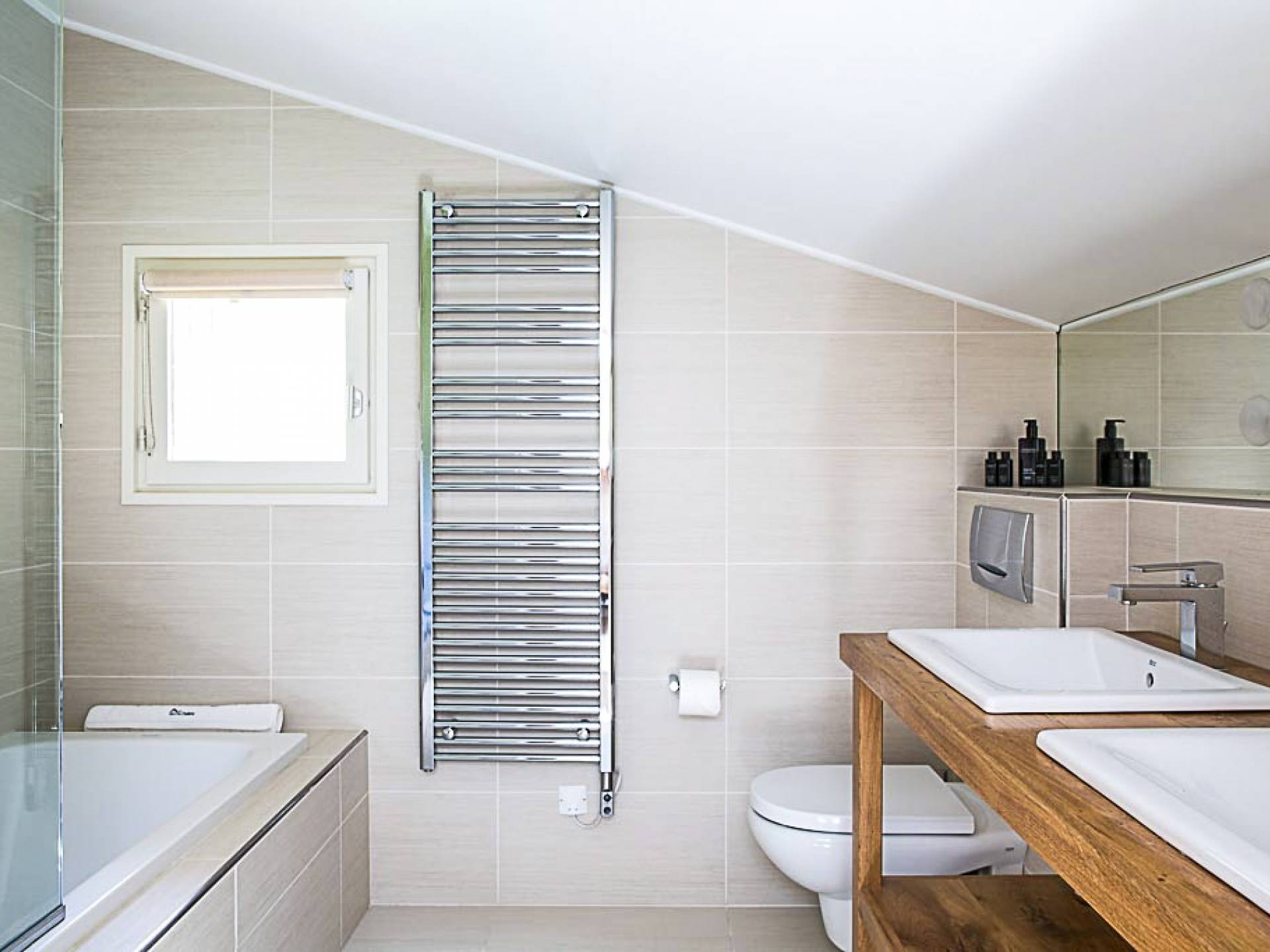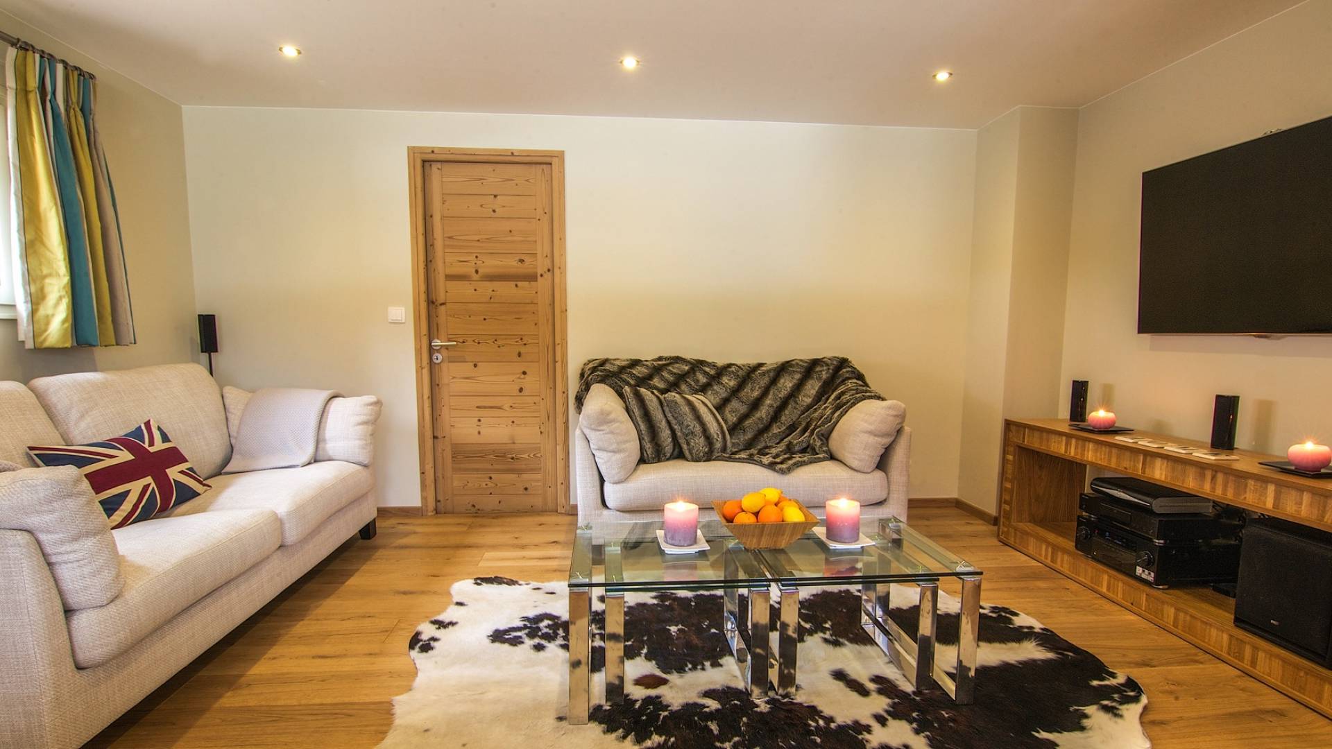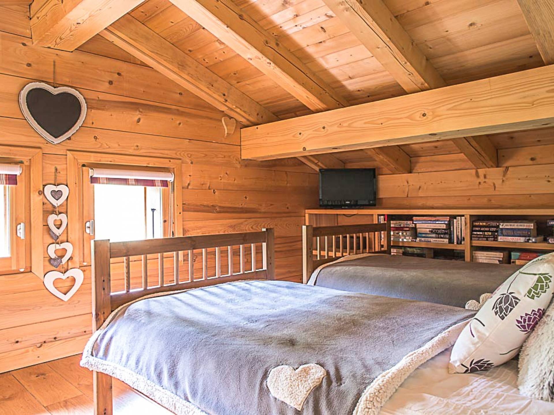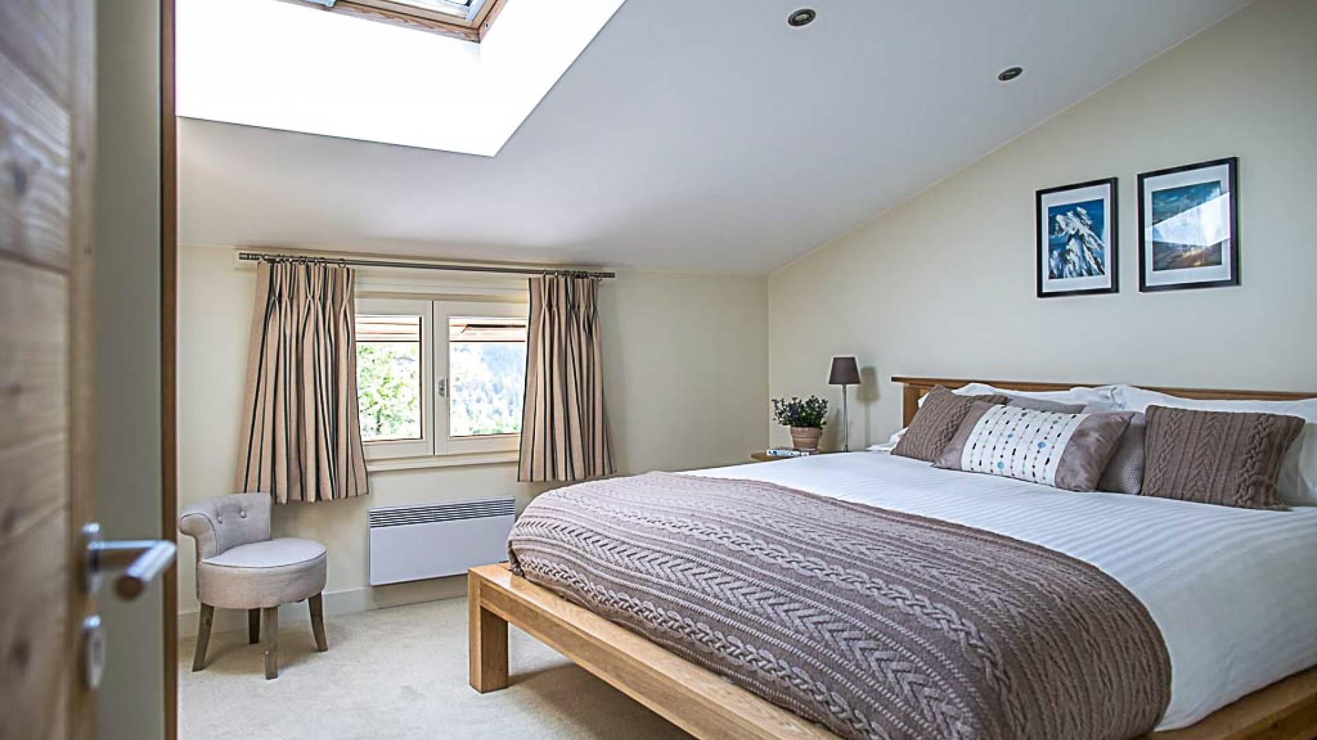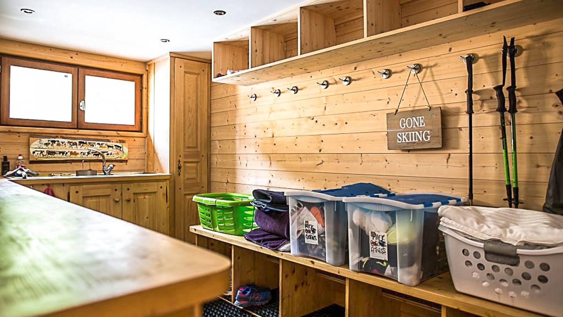 En la planta baja, hay un dormitorio, con baño y ducha, una sala de cine bien equipada, la sala de esquí y botas, y lavandería. El primer piso tiene un gran dormitorio con literas en suite, con un entrepiso que tiene dos camas individuales. Esto se encuentra detrás del área de TV de planta abierta, salón con chimenea, gran comedor con cocina de planta abierta con isla central y despensa separada, todos abiertos a una gran terraza y áreas exteriores. El piso superior contiene: la suite principal con vestidor y un entrepiso adicional que ofrece espacio adicional para dormir para 3 personas "debajo de los aleros", por lo que se puede usar como una suite familiar con algo de privacidad. Otro dormitorio doble que también tiene baño y otro dormitorio que se puede utilizar como doble o individual, también en suite.