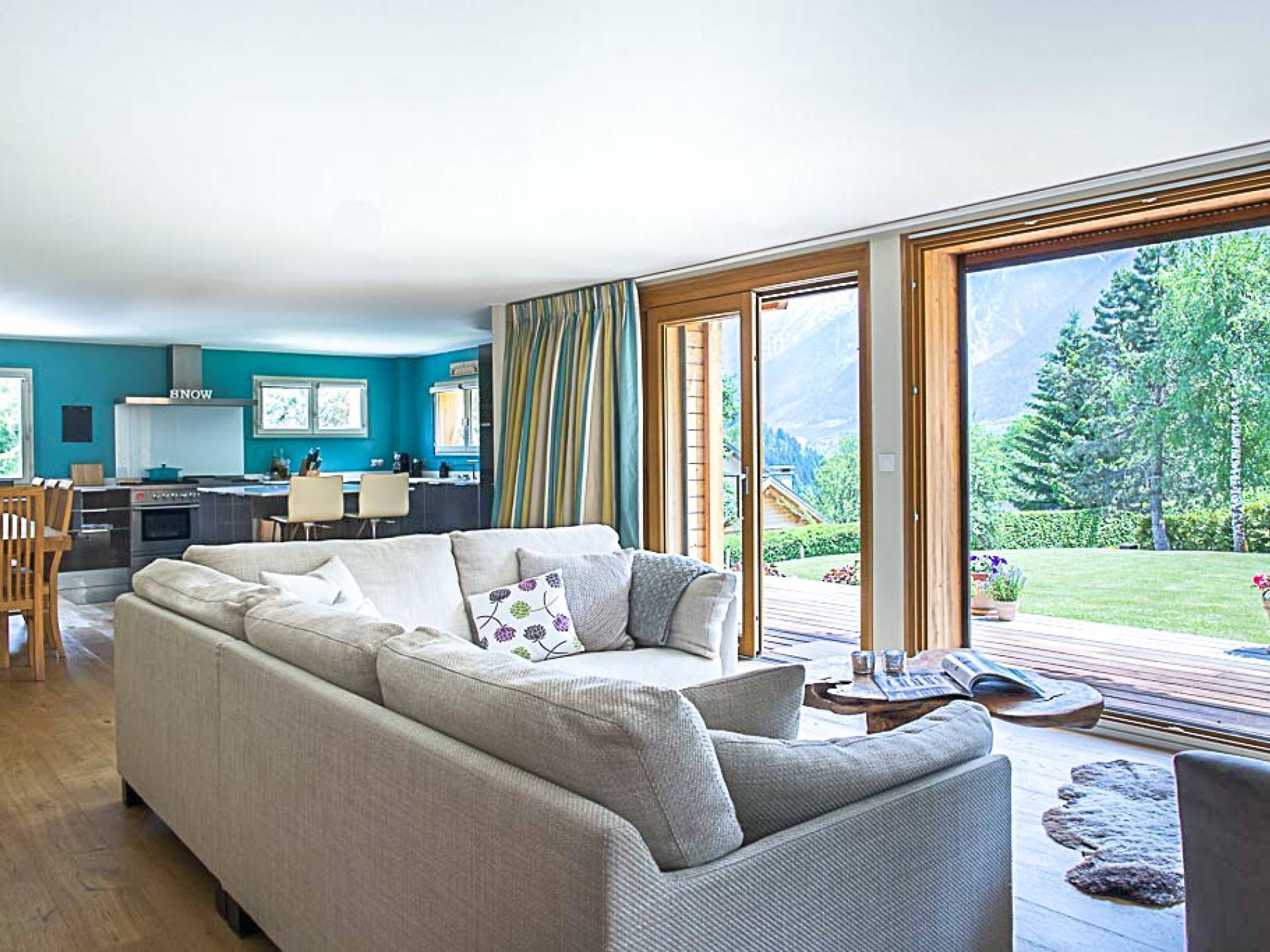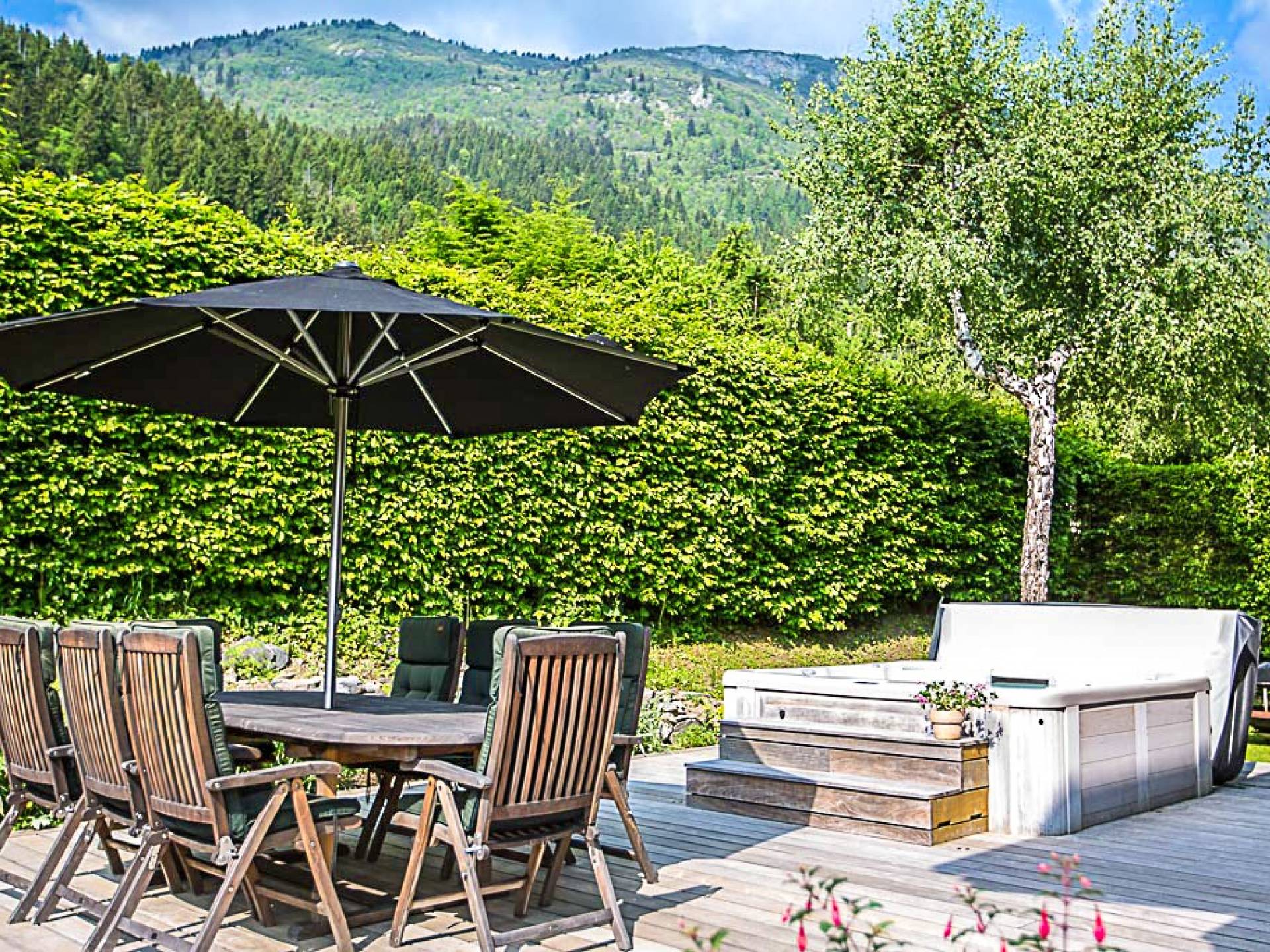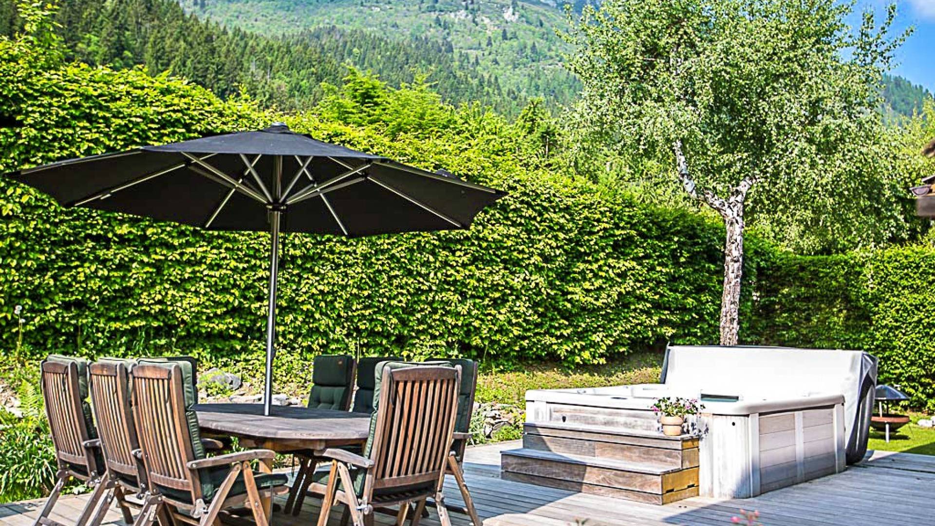 El chalet en su conjunto es muy espacioso, moderno y aireado, con una agradable sensación de bienvenida. Esta propiedad es muy privada, ya que está situada en un gran jardín con entrada privada y aparcamiento para muchos coches. Situado en una tranquila calle sin salida a 2 minutos de las pistas de Les Houches, ofrece hermosas vistas del Mont Blanc y todo el valle.