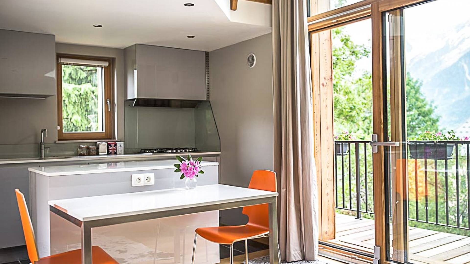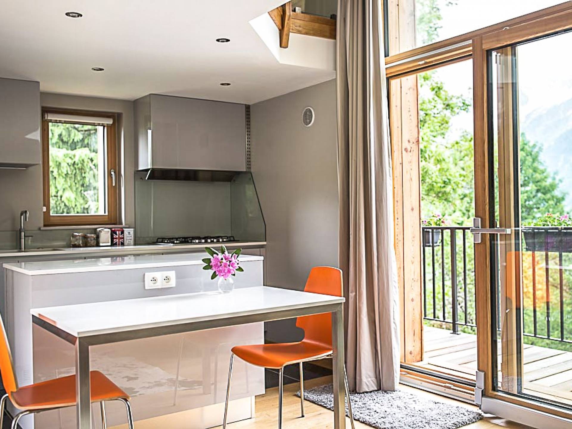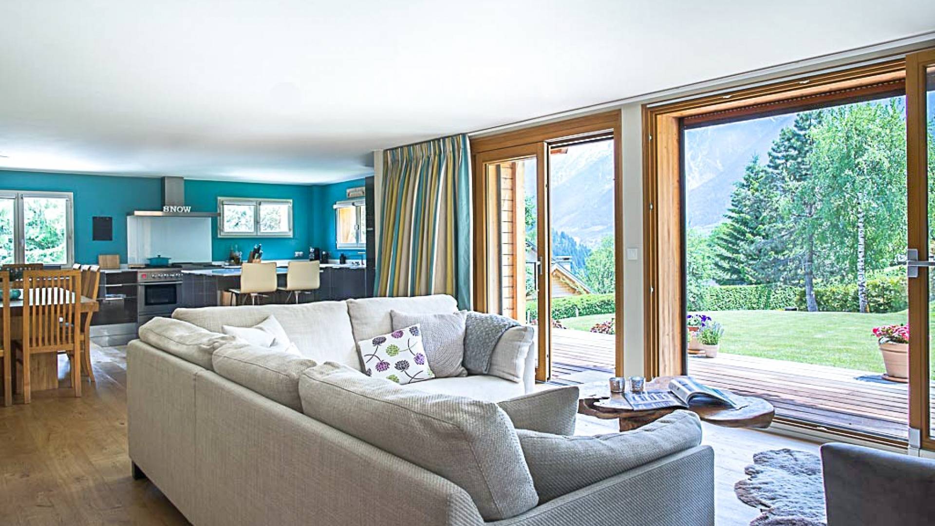 El chalet en su conjunto es muy espacioso, moderno y aireado, con una agradable sensación de bienvenida. Esta propiedad es muy privada, ya que está situada en un gran jardín con entrada privada y aparcamiento para muchos coches. Situado en una tranquila calle sin salida a 2 minutos de las pistas de Les Houches, ofrece hermosas vistas del Mont Blanc y todo el valle.