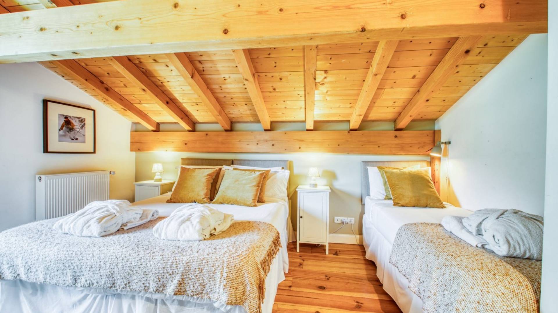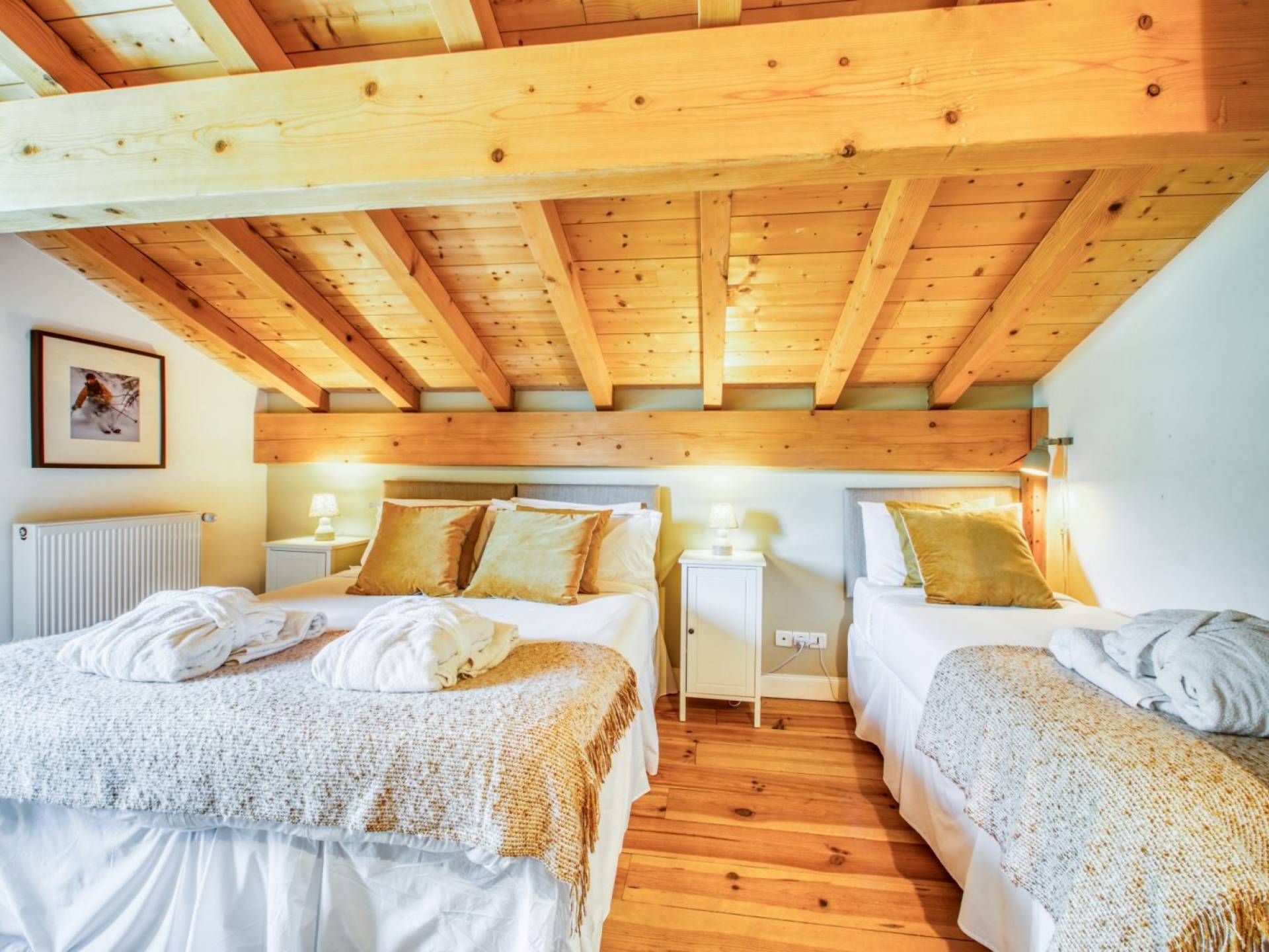5 dormitorios, todos con baños en suite diseñados individualmente. 2 dormitorios del último piso tienen acceso al balcón. Ropa de cama de algodón egipcio, toallas de baño / de mano, albornoces, zapatillas y artículos de aseo gratuitos. Amplio salón contemporáneo con chimenea de leña, Smart TV UHD de 55 "montado en la pared con satélite del Reino Unido y Francia, canales deportivos, Netflix y reproductor BlueRay con una gran selección de películas. Suntuosos sofás de cuero con asientos para que todos puedan relajarse y descansar. Wi-Fi gratuito e ilimitado -Fi en todo el chalet y un potente sistema de sonido para los amantes de la música. Sala de cine / juegos adicional con Smart TV UHD de 75 ", PlayStation 4, películas para niños, Nintendo Wii y juguetes para todas las edades, sofá cama, pufs con baño privado (disponible bajo pedido).