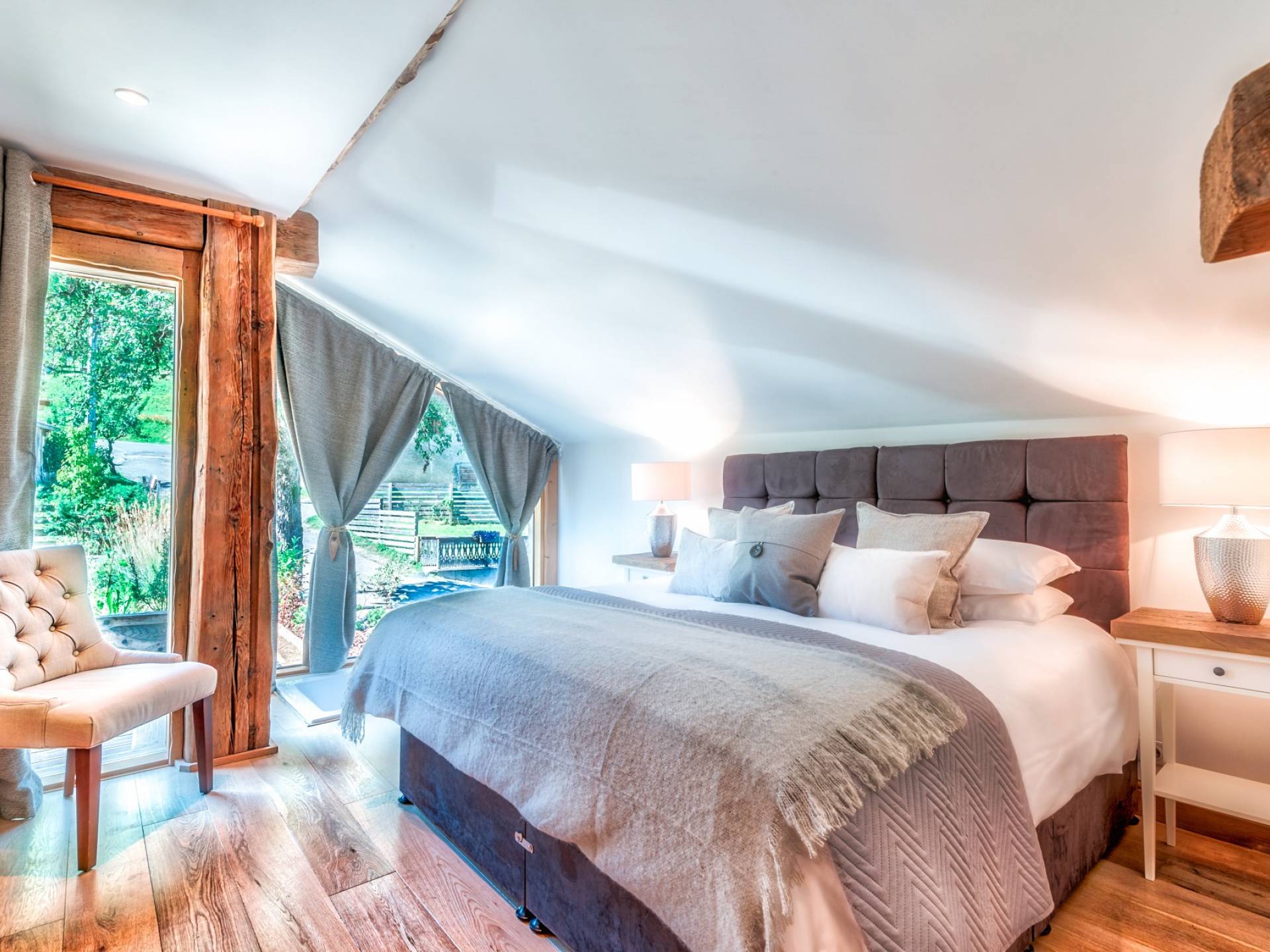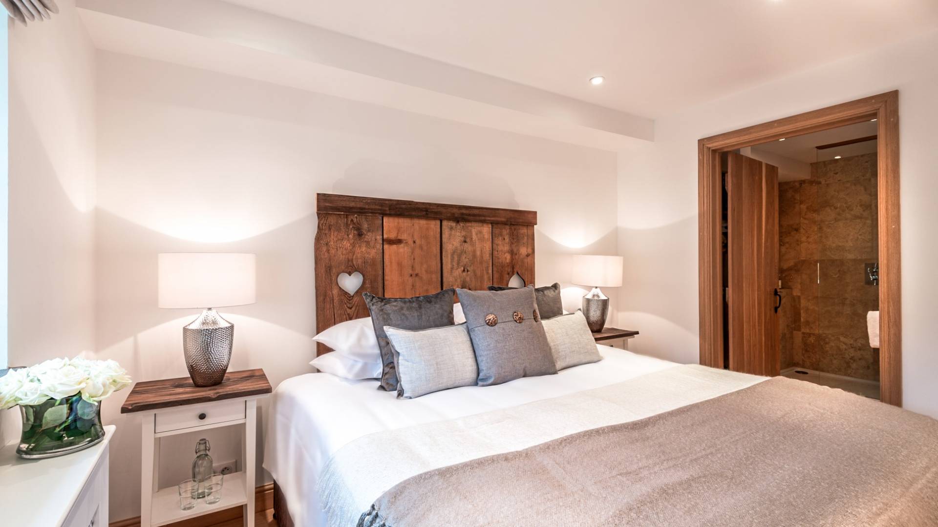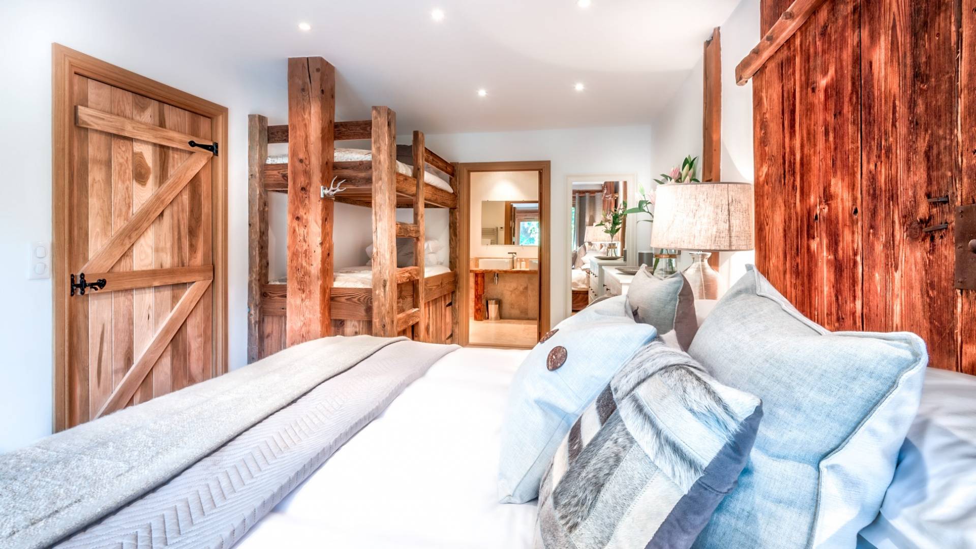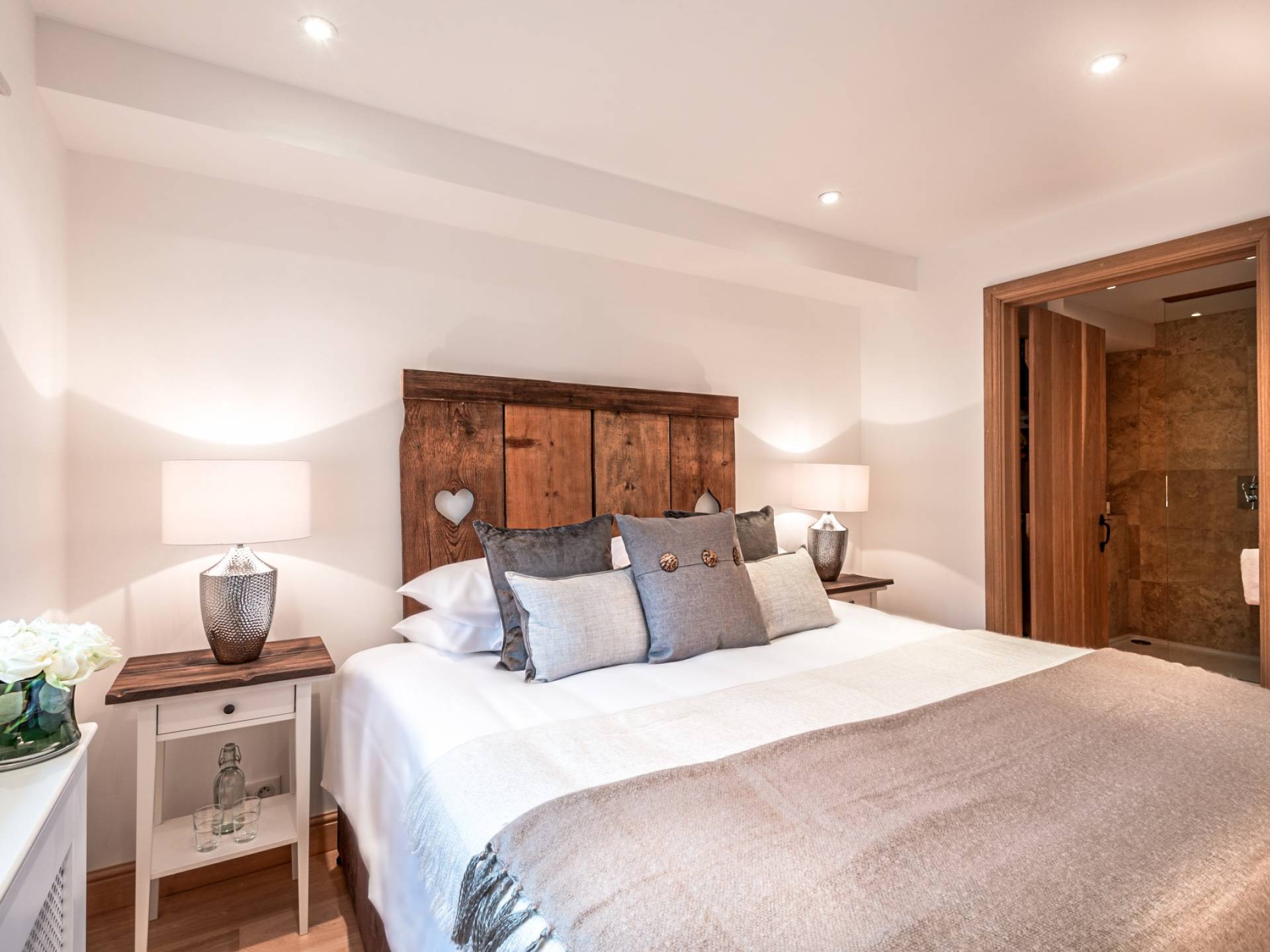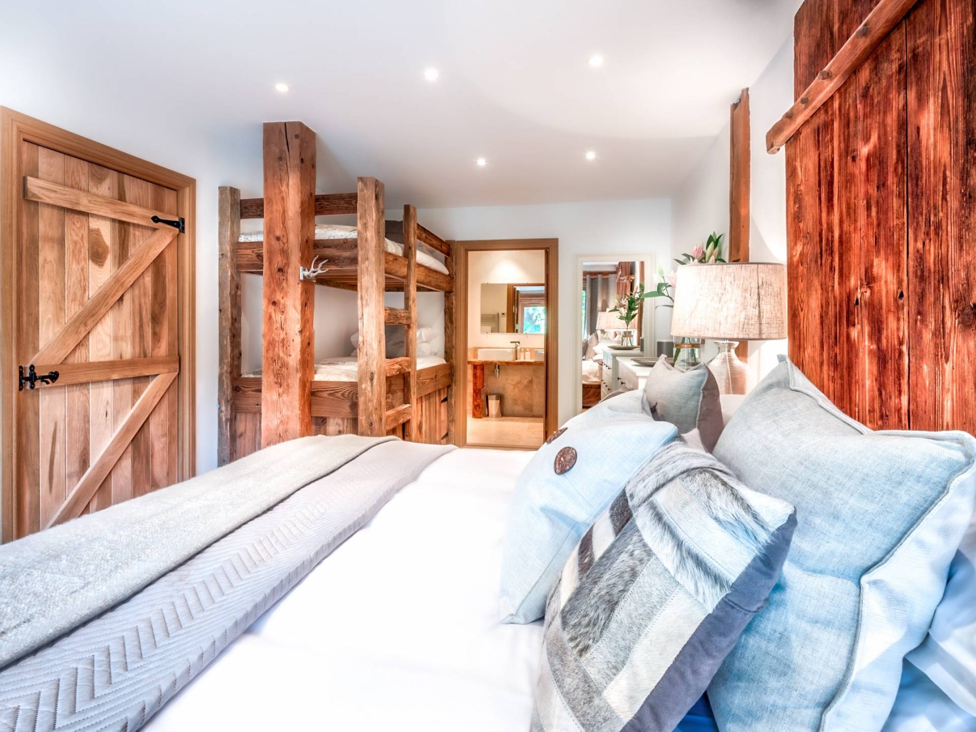 El nivel medio consta de cinco amplias habitaciones con baño que ofrecen el máximo confort con lujosos colchones y sábanas de algodón egipcio. En cada baño, encontrará artículos de tocador de lujo The White Company©, secadores de pelo profesionales y planchas para el cabello. También se proporcionan batas suaves, pantuflas y toallas mullidas. Este nivel tiene una zona de descanso adicional, que da acceso directo al jardín orientado al sur y a la gran terraza. La cubierta ha sido diseñada con la última experiencia de entretenimiento en mente y es una característica verdaderamente única en Morzine. Los huéspedes pueden disfrutar del aspecto soleado durante todo el día y la noche desde la gran bañera de hidromasaje, con una bebida fría en la mano del bar al aire libre. Las tumbonas brindan la experiencia de descanso perfecta, mientras que la hoguera hecha a medida y los sofás circundantes le permiten disfrutar de las estrellas de la montaña y las noches frescas hasta bien entrada la noche. Se puede disfrutar de una cena en el jardín en invierno y verano con la opción de una barbacoa o una pizza al horno de piedra del horno de pizza servida por su chef en la gran mesa de comedor.