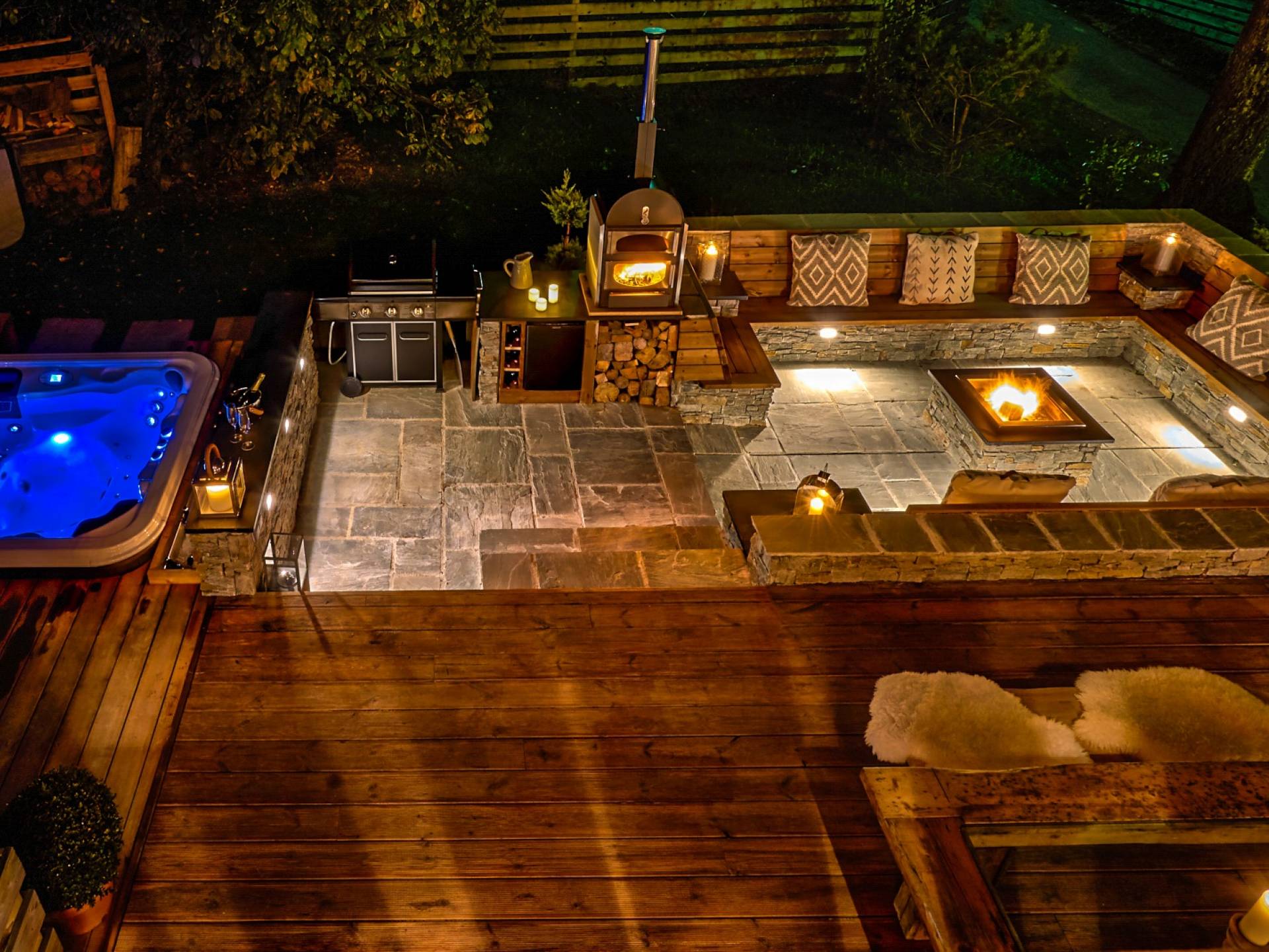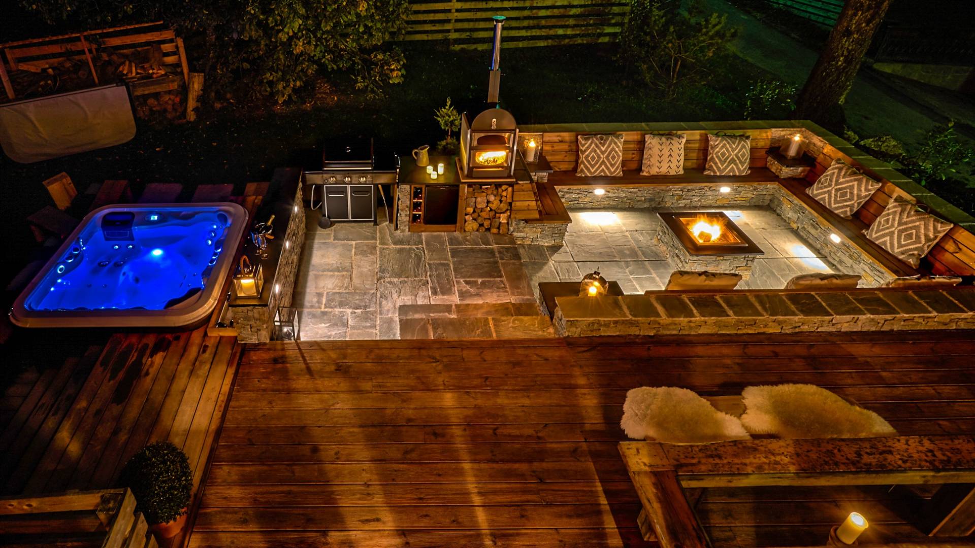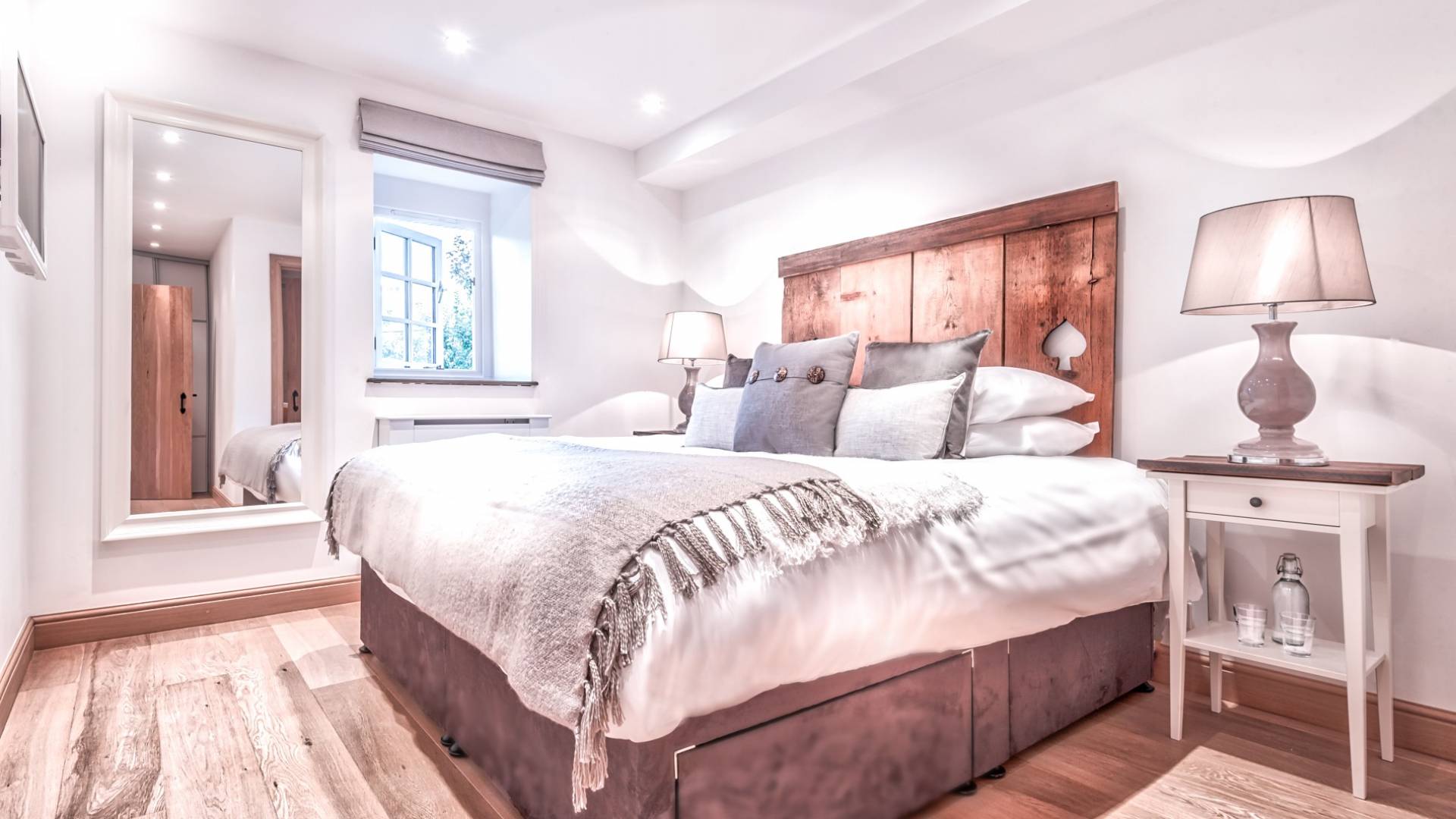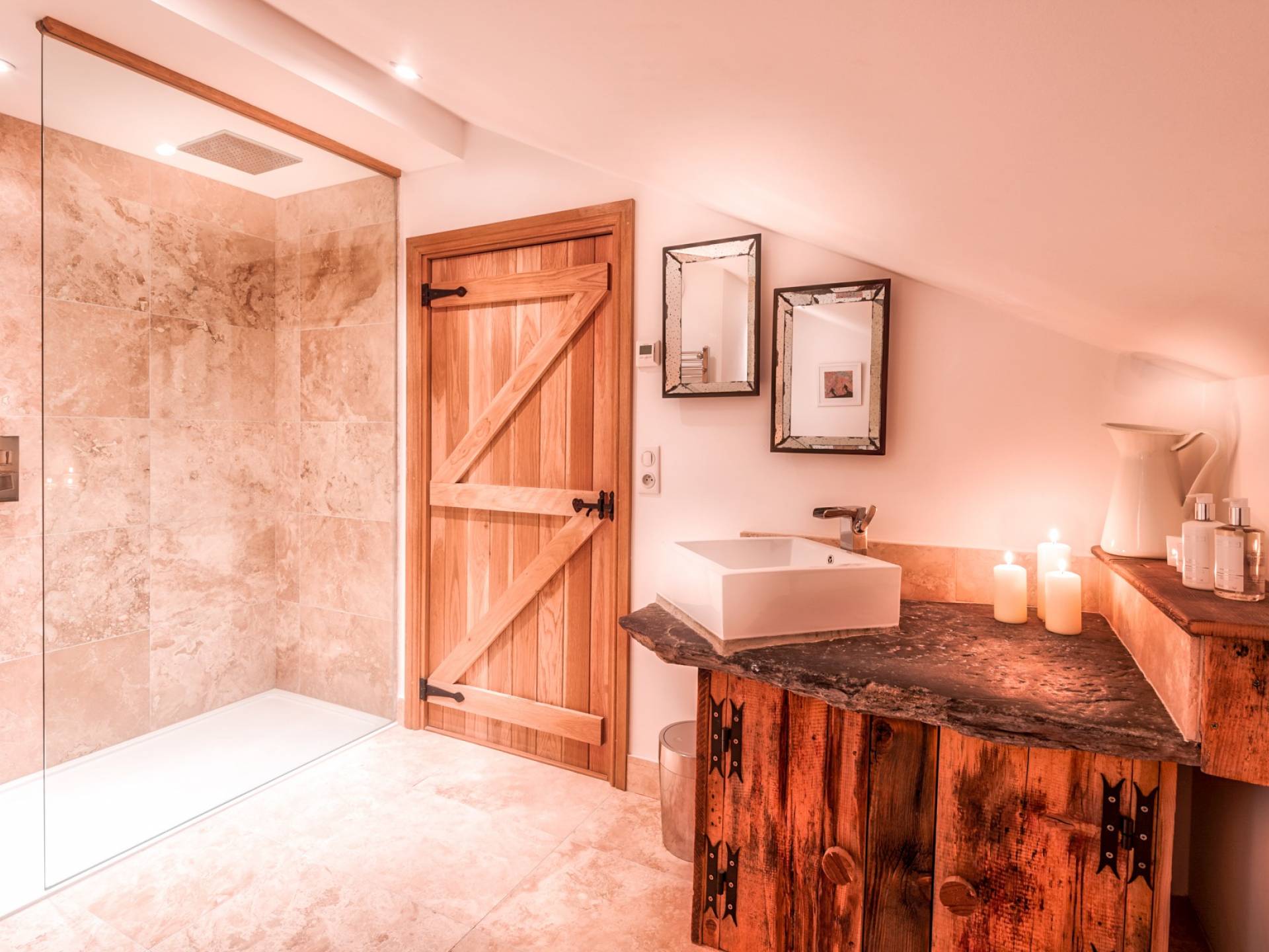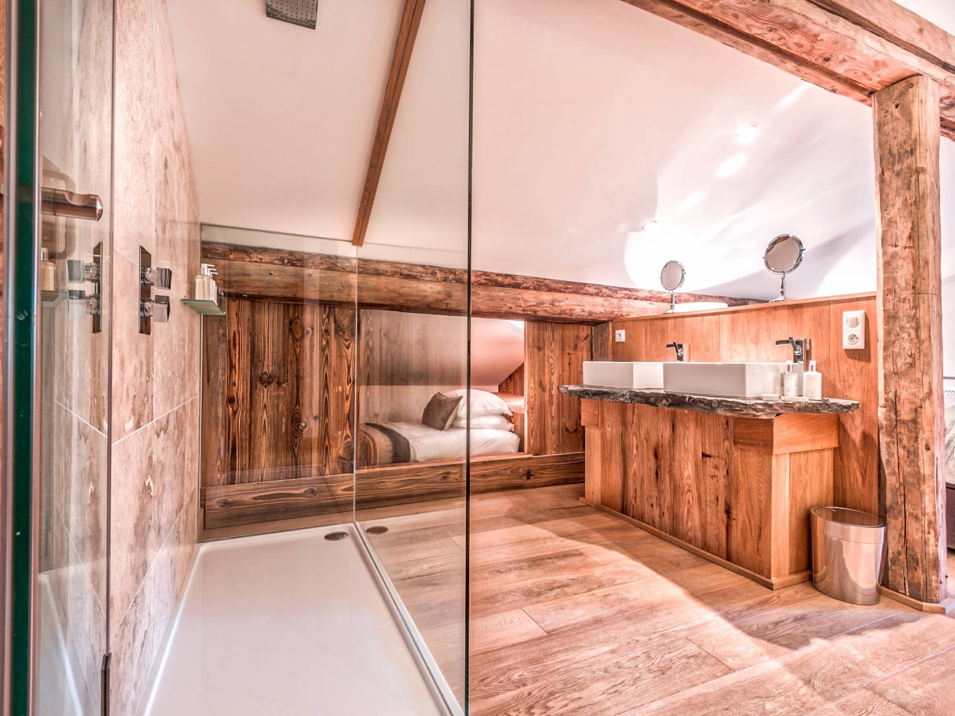 El nivel medio consta de cinco amplias habitaciones con baño que ofrecen el máximo confort con lujosos colchones y sábanas de algodón egipcio. En cada baño, encontrará artículos de tocador de lujo The White Company©, secadores de pelo profesionales y planchas para el cabello. También se proporcionan batas suaves, pantuflas y toallas mullidas. Este nivel tiene una zona de descanso adicional, que da acceso directo al jardín orientado al sur y a la gran terraza. La cubierta ha sido diseñada con la última experiencia de entretenimiento en mente y es una característica verdaderamente única en Morzine. Los huéspedes pueden disfrutar del aspecto soleado durante todo el día y la noche desde la gran bañera de hidromasaje, con una bebida fría en la mano del bar al aire libre. Las tumbonas brindan la experiencia de descanso perfecta, mientras que la hoguera hecha a medida y los sofás circundantes le permiten disfrutar de las estrellas de la montaña y las noches frescas hasta bien entrada la noche. Se puede disfrutar de una cena en el jardín en invierno y verano con la opción de una barbacoa o una pizza al horno de piedra del horno de pizza servida por su chef en la gran mesa de comedor.