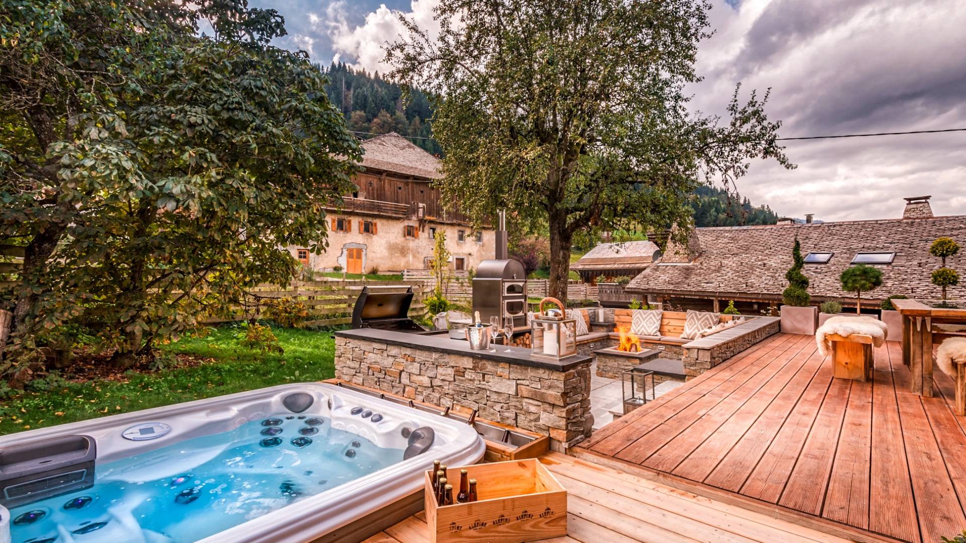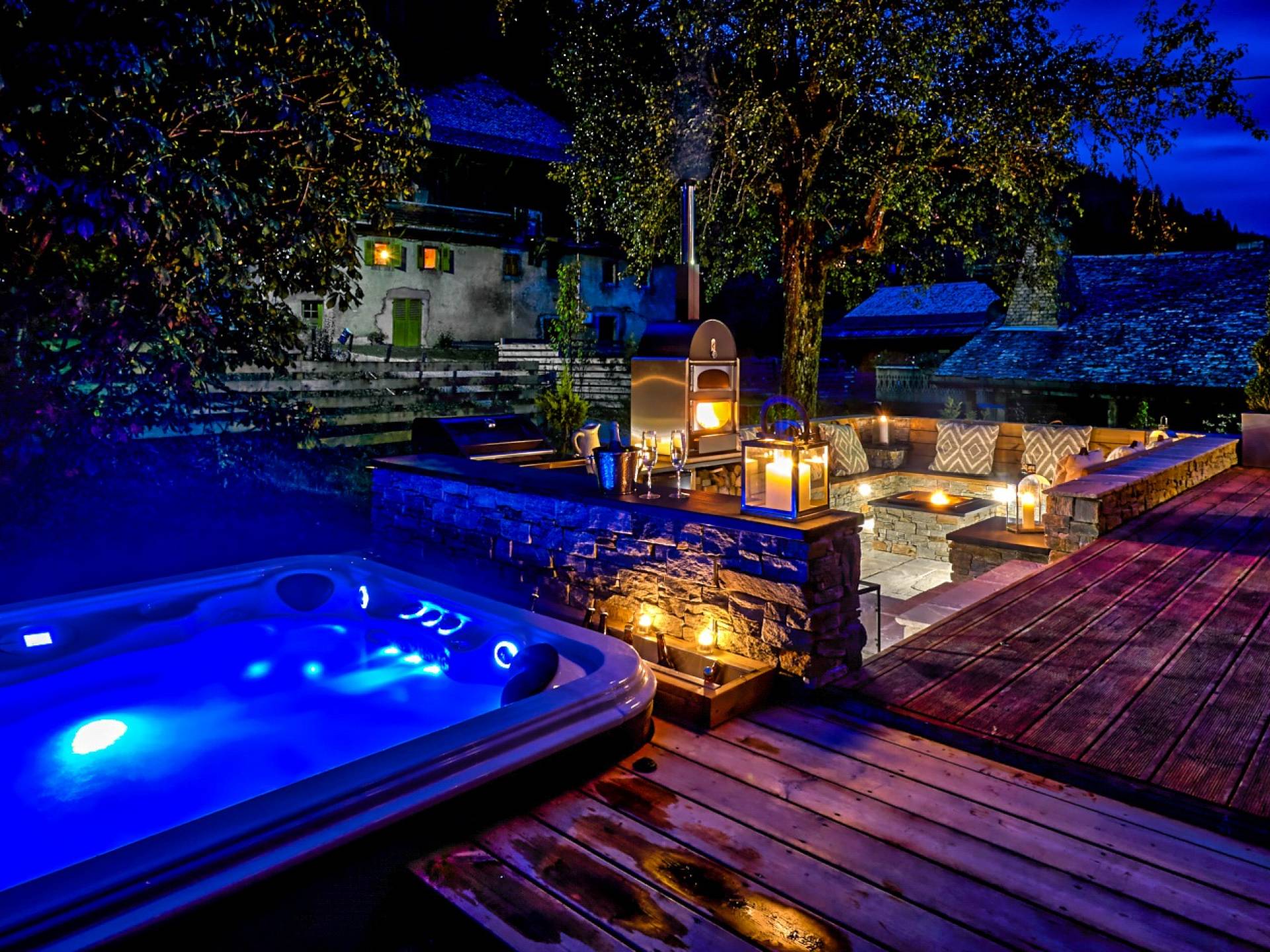 Chalet 46 Morzine ha sido meticulosamente convertido de una casa de campo tradicional francesa en un impresionante chalet de lujo. En el interior, encontrará una sala de tratamientos de spa, un baño hundido y una sala de cine; y el exterior es perfecto para el entretenimiento, con un jacuzzi, un horno de pizza, un brasero y un bar.