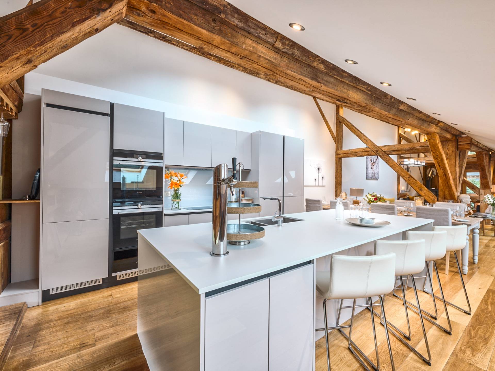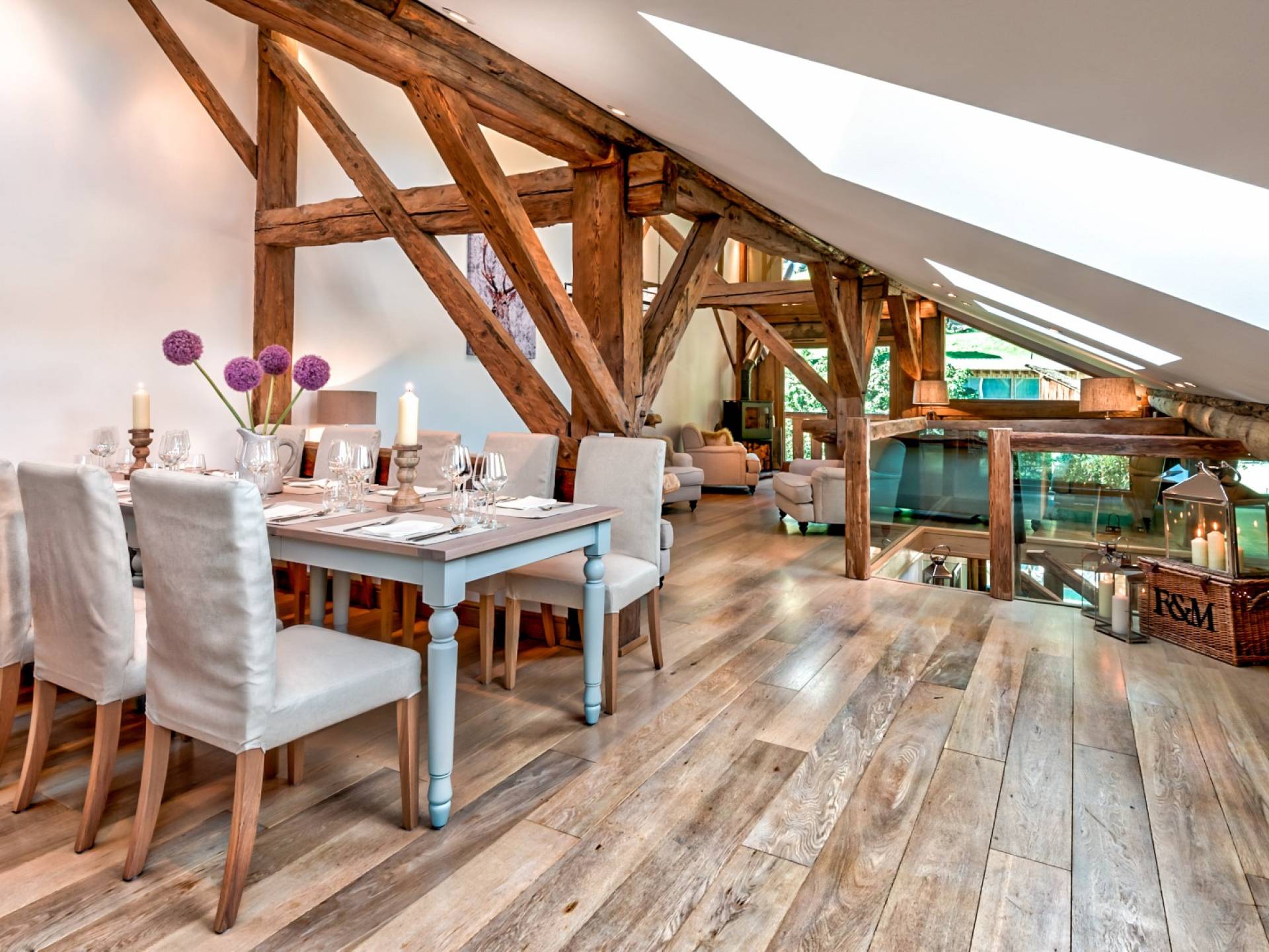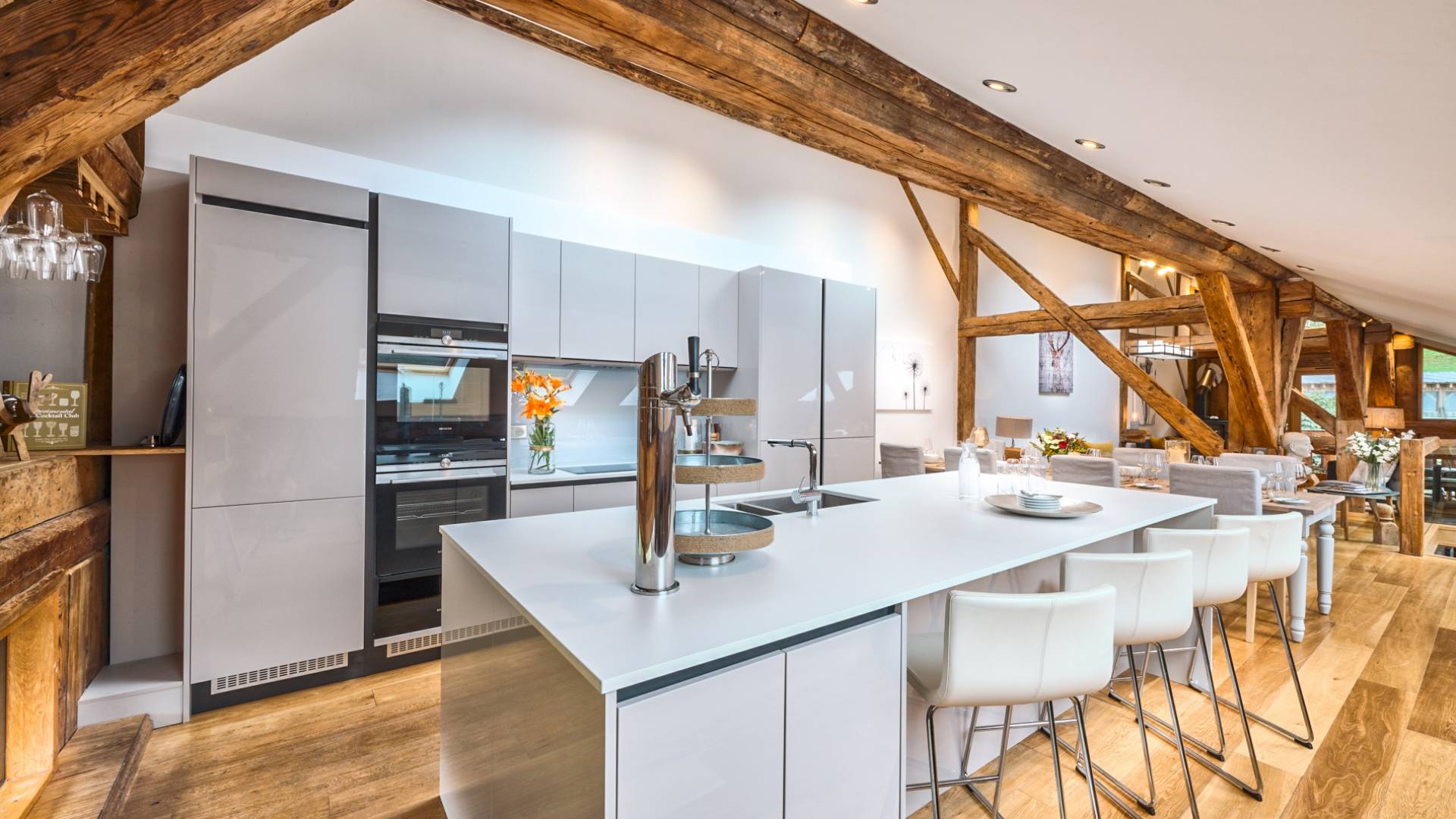 Chalet 46 Morzine se distribuye en tres niveles, y el último piso ofrece un gran salón de planta abierta con comedor y cocina. Desde la gran zona de estar con estufa de leña, puede disfrutar de vistas ininterrumpidas de Pointe de Nyon y las pistas de Pleney. Este piso ofrece un impresionante área de entretenimiento y comedor donde sus anfitriones y el chef lo atenderán o puede servirse una cerveza del grifo de cerveza integrado en el área del bar. Debido a su posición elevada, los huéspedes pueden apreciar impresionantes vistas de las pistas de Pleney y Nyon desde la sala de estar y el balcón.