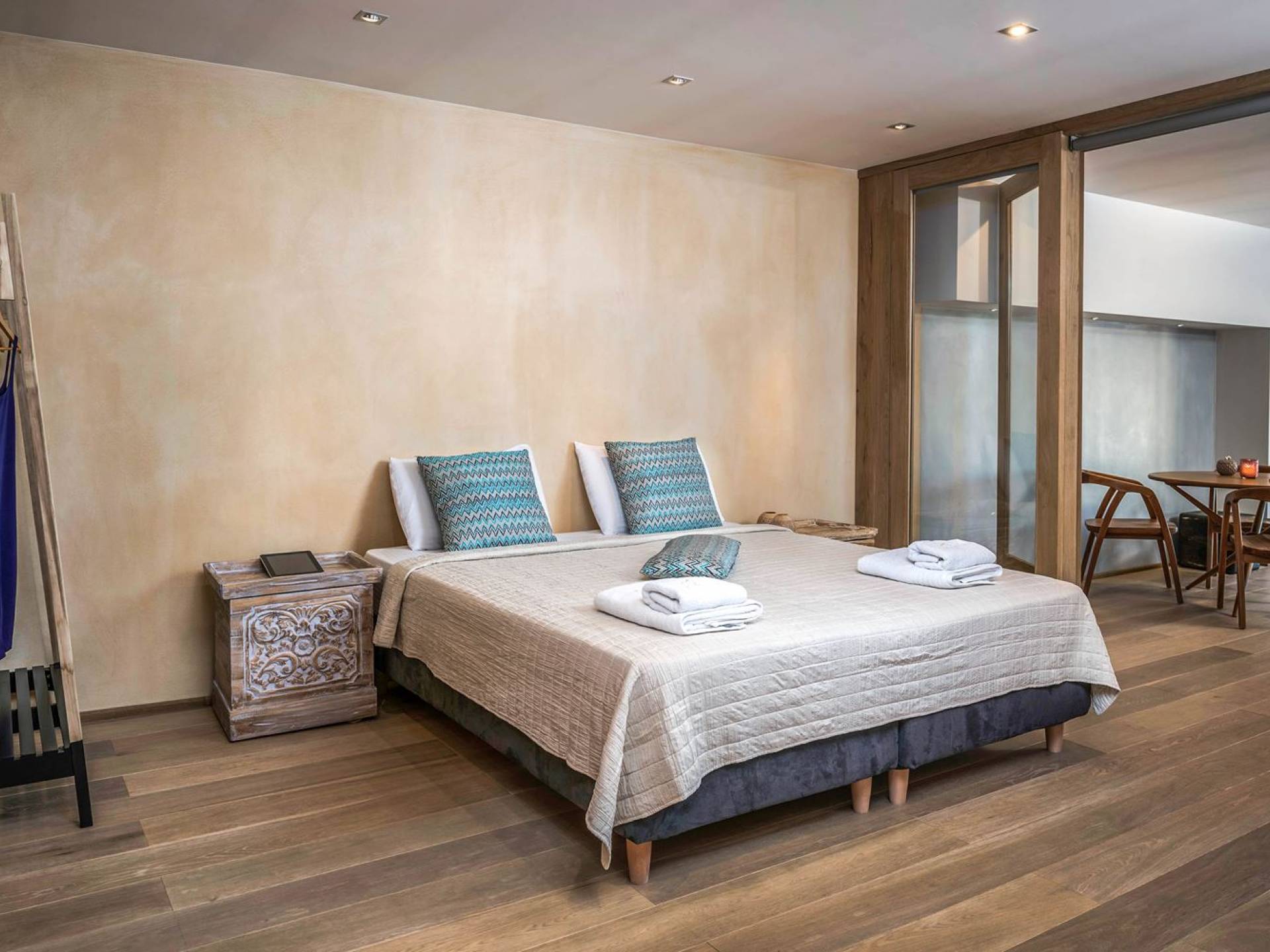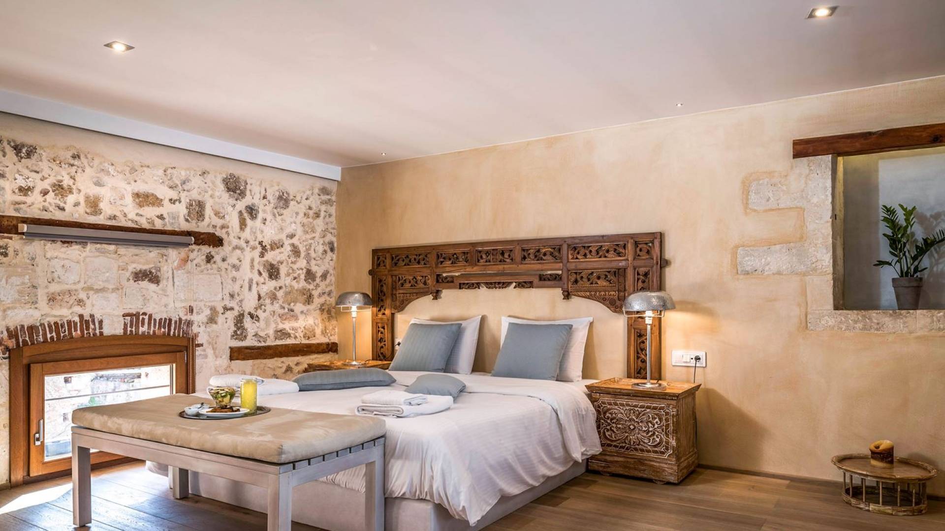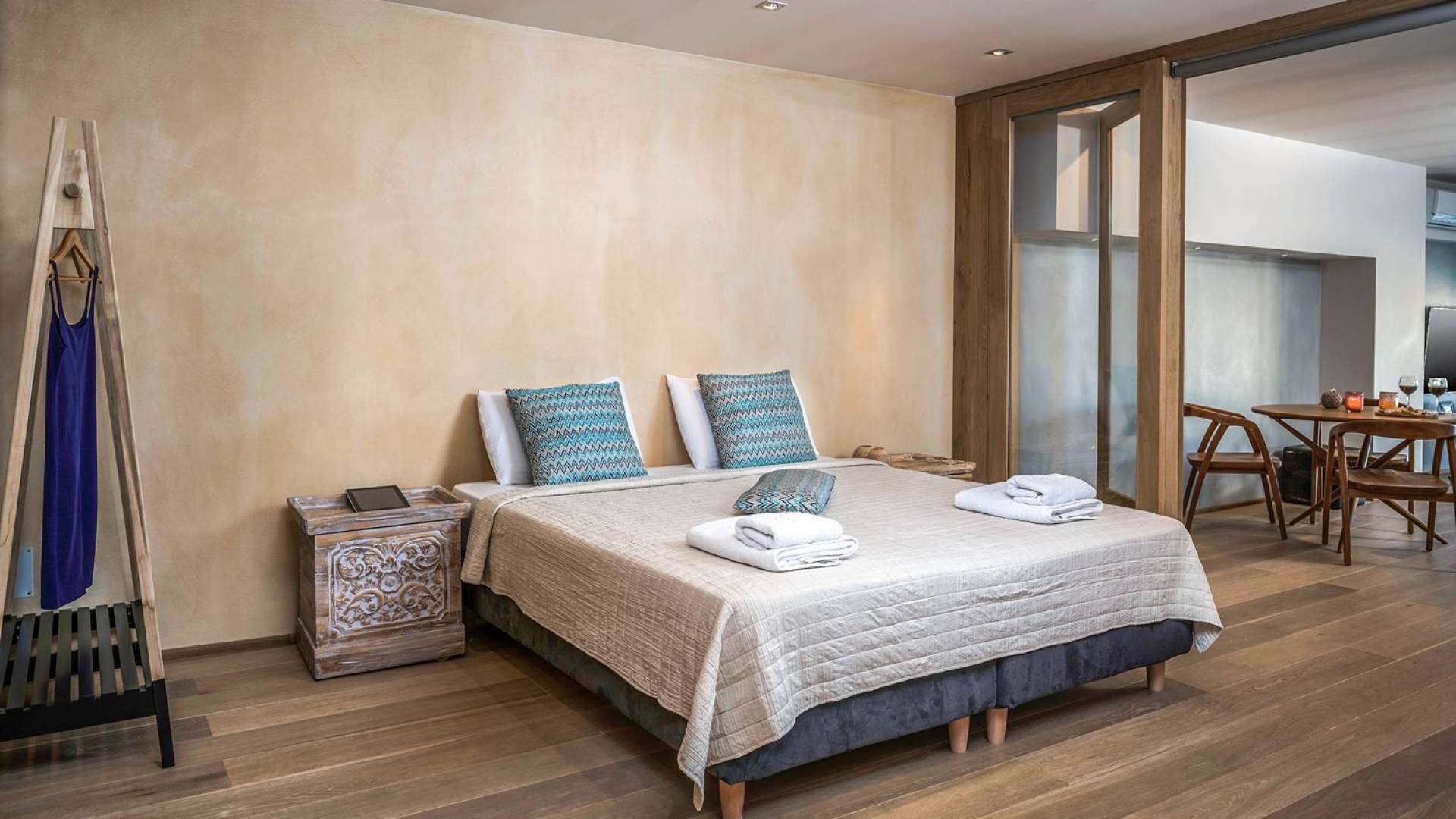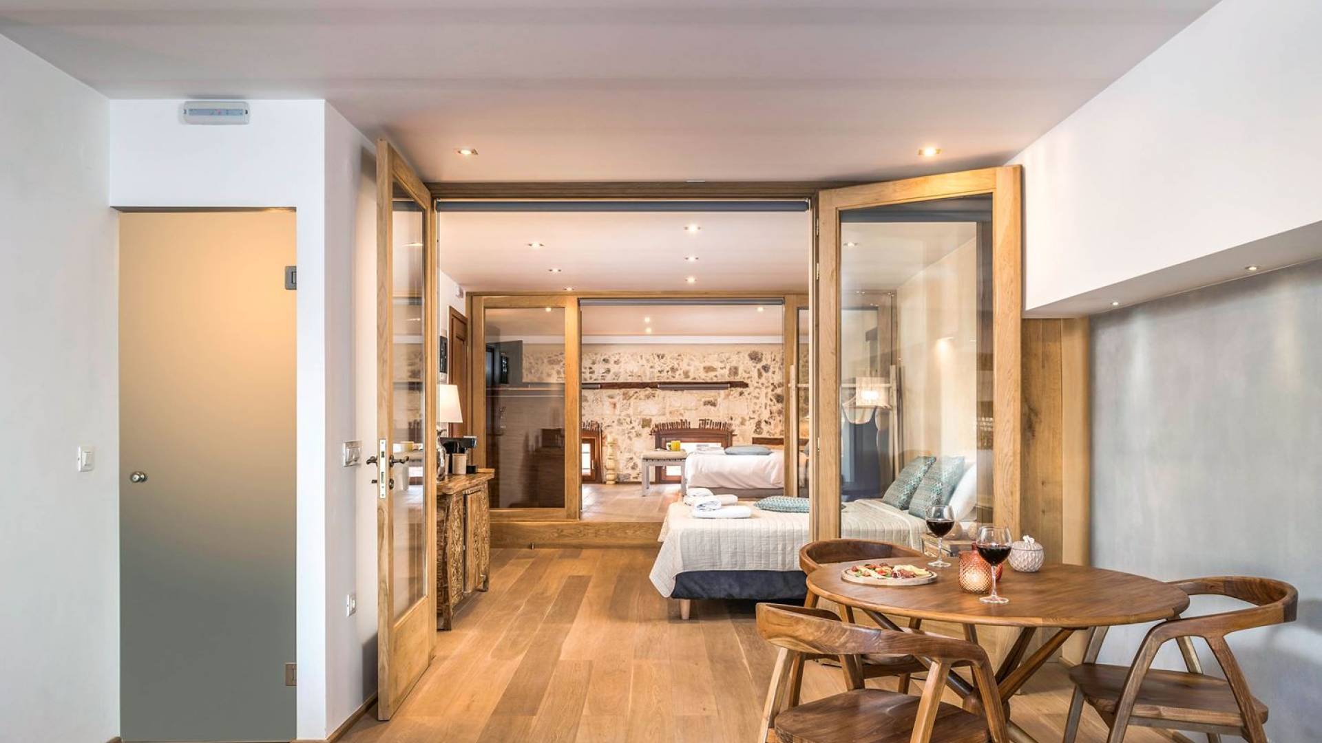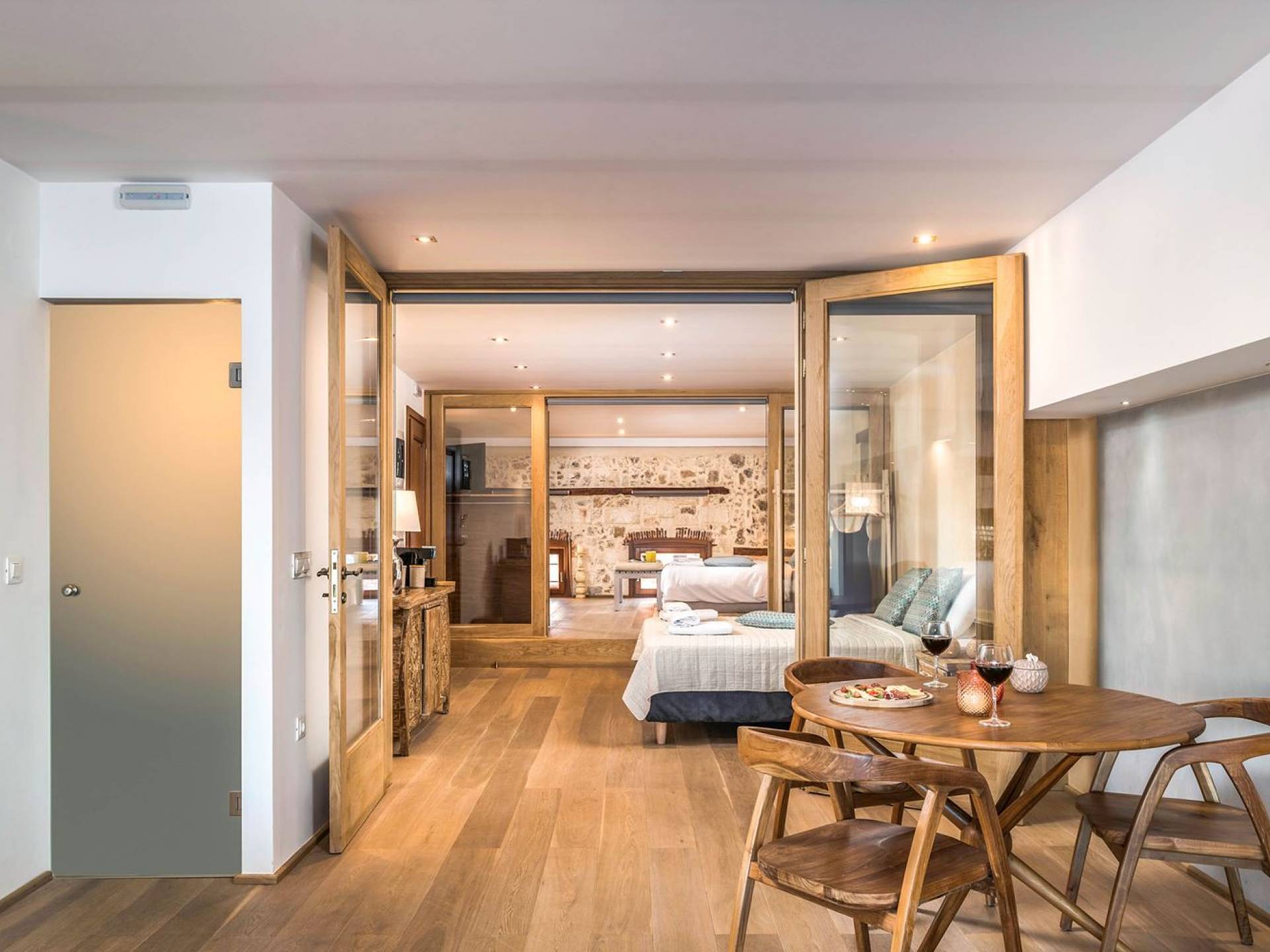 Consta de 4 elegantes y lujosas suites, todas con vistas espectaculares del faro egipcio y el antiguo puerto veneciano de Chania. Todas las suites están amuebladas con muebles especialmente diseñados y decoradas con artículos únicos. Ubicada en el tercer piso, esta suite de 90 m² consta de 2 habitaciones dobles, una amplia sala de estar y 2 baños. Las enormes ventanas ofrecen fantásticas vistas sobre el Puerto Viejo. Esta Suite puede acomodar hasta 4 personas.