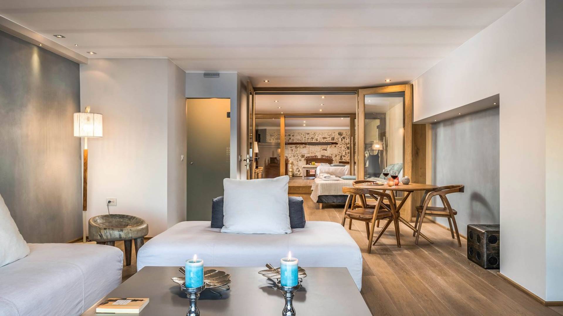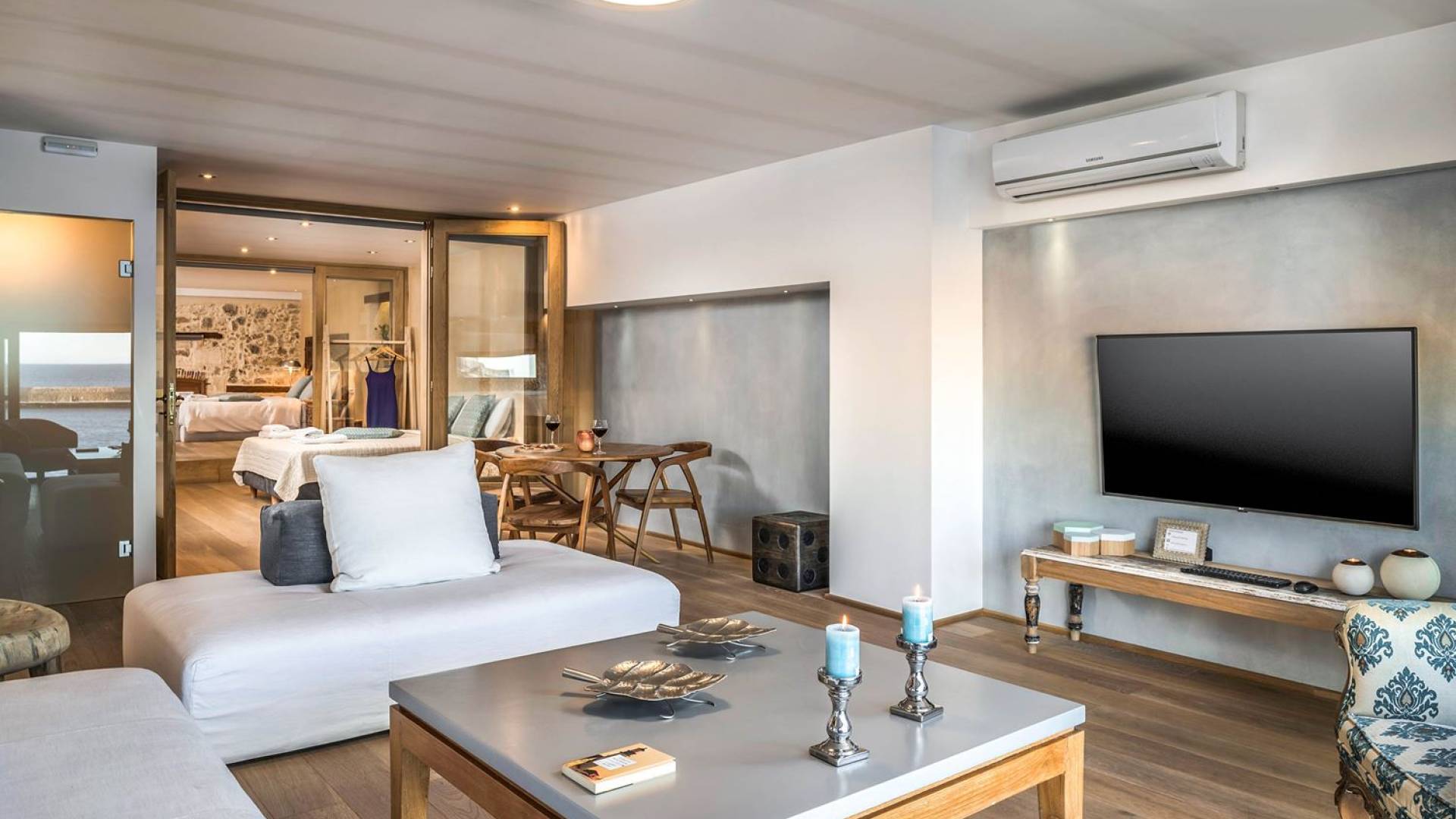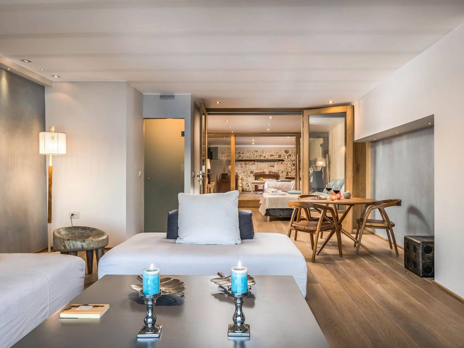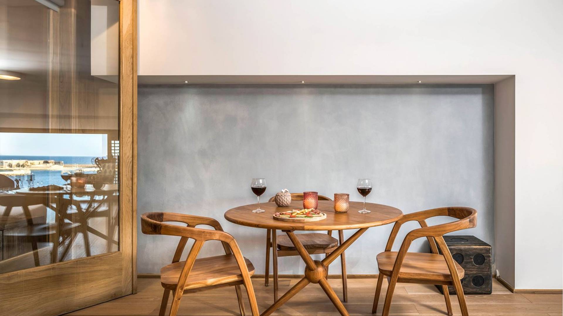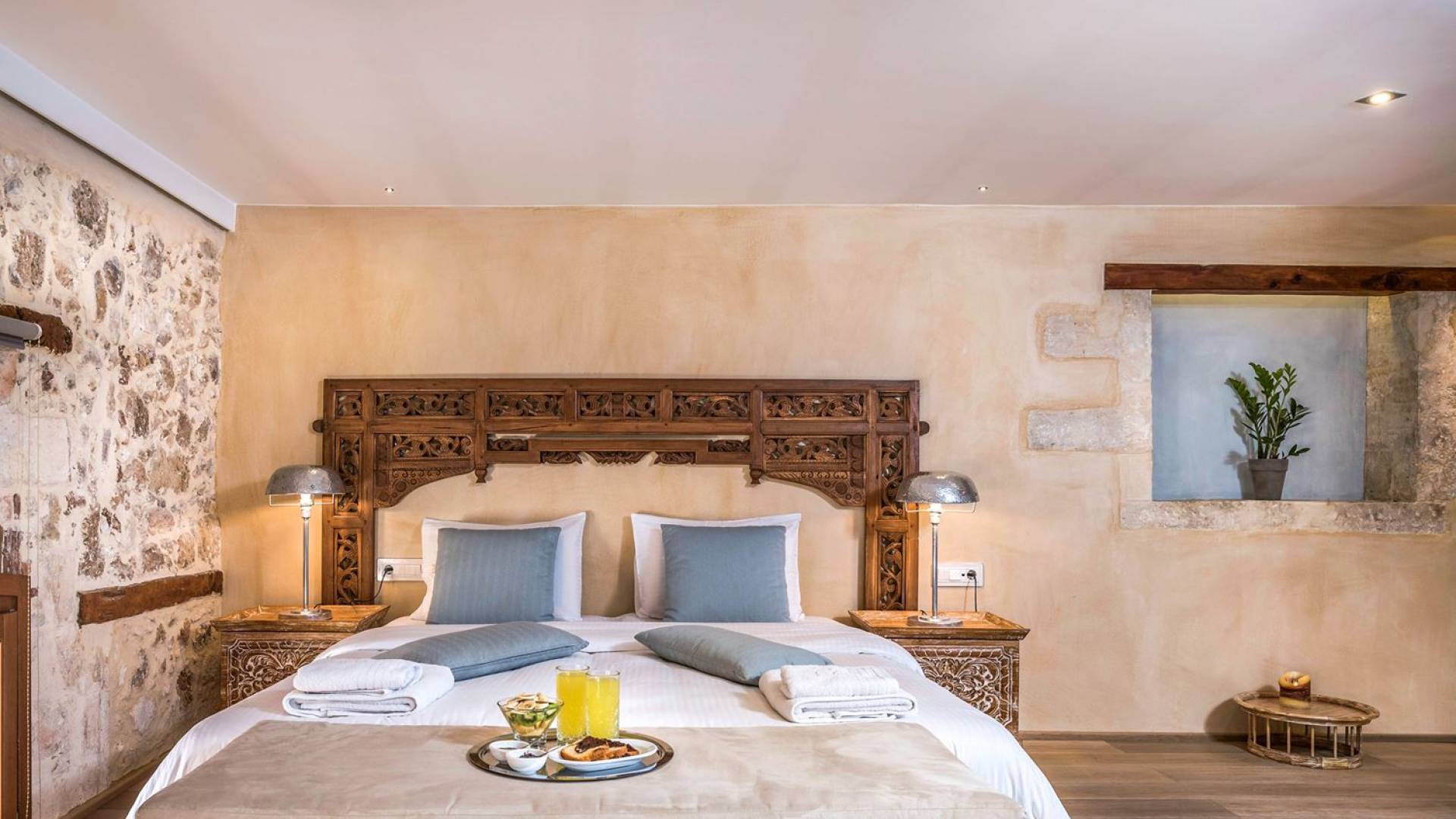 Consta de 4 elegantes y lujosas suites, todas con vistas espectaculares del faro egipcio y el antiguo puerto veneciano de Chania. Todas las suites están amuebladas con muebles especialmente diseñados y decoradas con artículos únicos. Ubicada en el tercer piso, esta suite de 90 m² consta de 2 habitaciones dobles, una amplia sala de estar y 2 baños. Las enormes ventanas ofrecen fantásticas vistas sobre el Puerto Viejo. Esta Suite puede acomodar hasta 4 personas.
