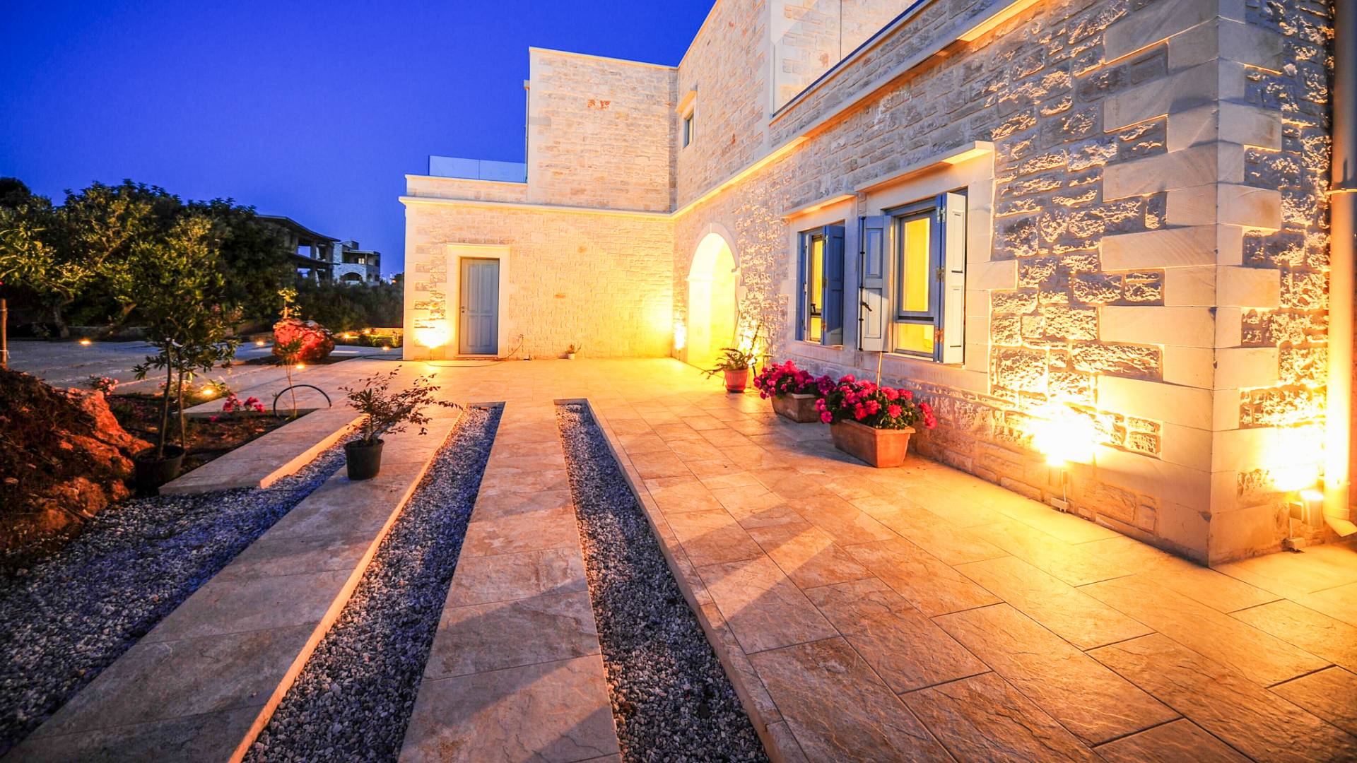 Ubicada elegantemente en el lado norte de la isla, en la península de Akrotiri, Aeras Villa Chania es una villa de piedra de 200 metros cuadrados, ubicada junto al salvaje paisaje mediterráneo, con vistas a la bahía de Souda. Los edificios están rodeados por 3.700 metros cuadrados de vegetación salvaje, hierbas cretenses, olivos, cítricos, plantas tropicales y un viñedo.