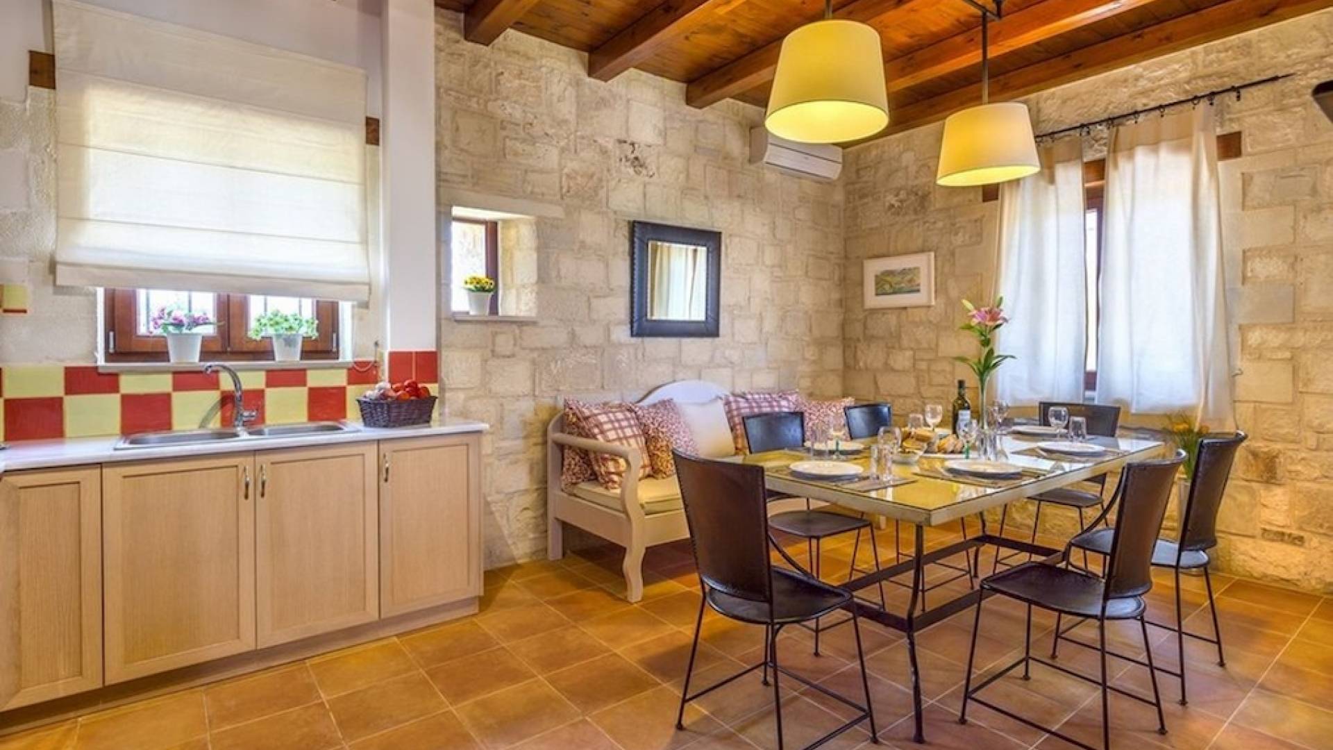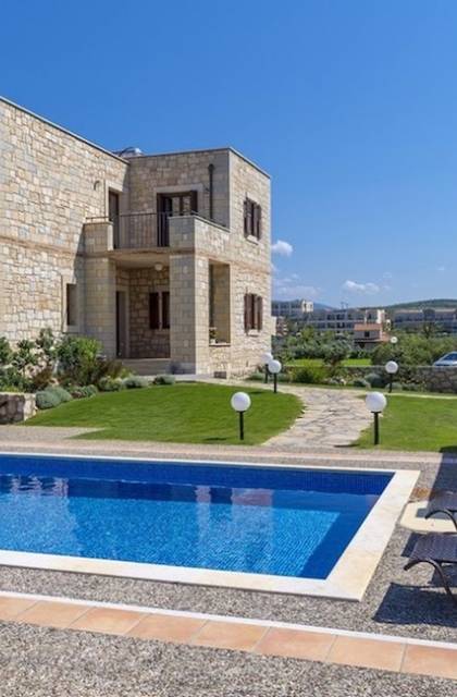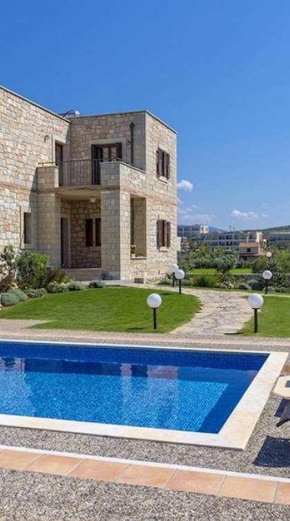 Aqua Beachfront Villas Chania, construido en piedra, está literalmente a la orilla del mar y tiene acceso directo a la playa. Cada villa tiene medio acre de jardín privado y está a unos 50 metros de la playa. Su estilo arquitectónico respeta la estética, las tradiciones y el medio ambiente de Creta y, al mismo tiempo, ofrece altos estándares de confort y lujo. Cada villa consta de tres plantas.