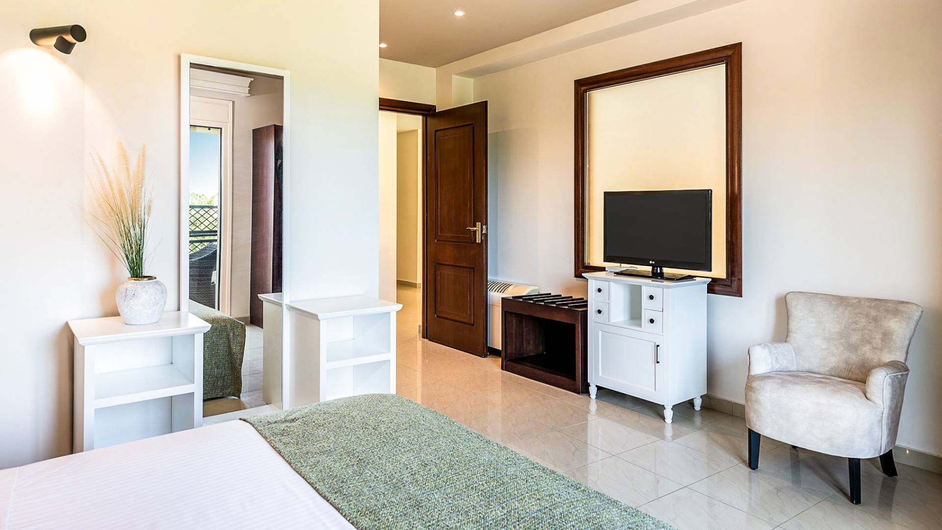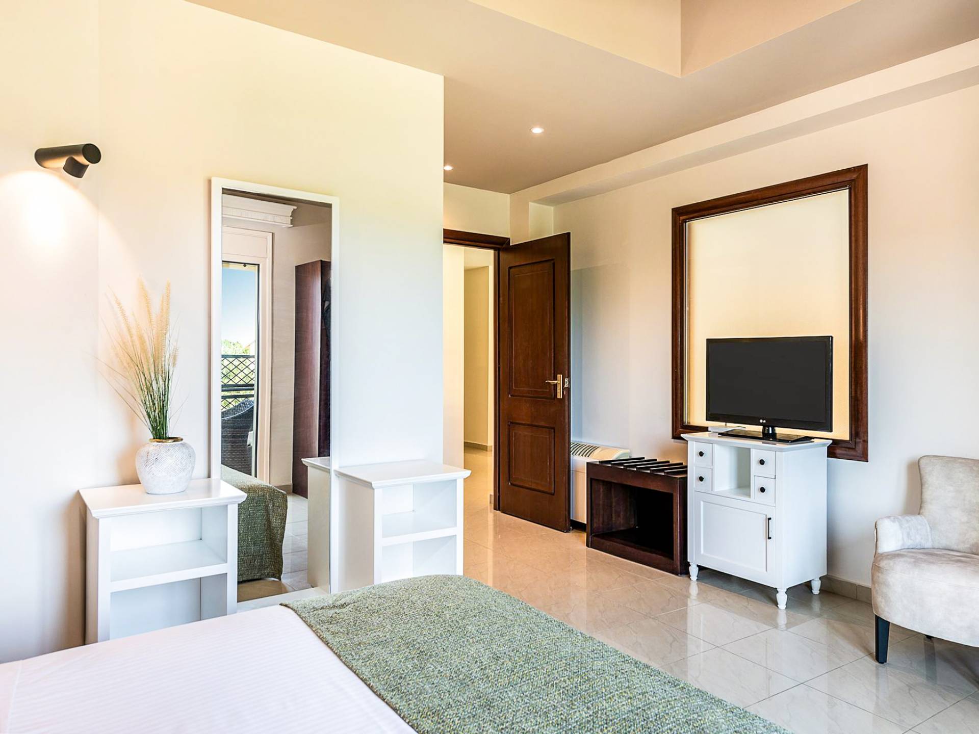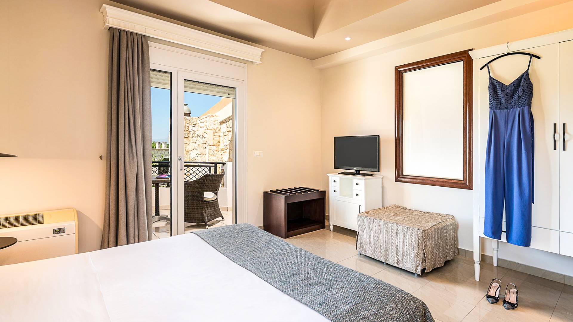 Quienes deseen explorar aún más pueden visitar el cercano casco antiguo de Chania, famoso por su arquitectura veneciana, sus restaurantes frente al puerto y sus callejuelas llenas de historia. También se puede hacer excursiones de un día a la famosa Garganta de Samaria, la playa rosada de Elafonissi, o disfrutar de un paseo en barco a Gramvousa y la Laguna de Balos.