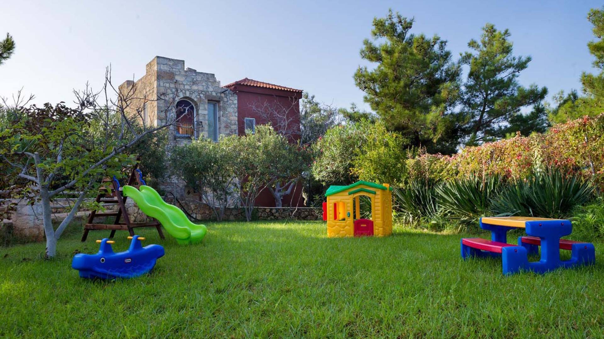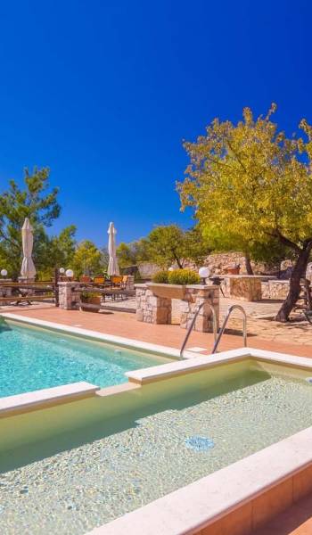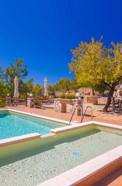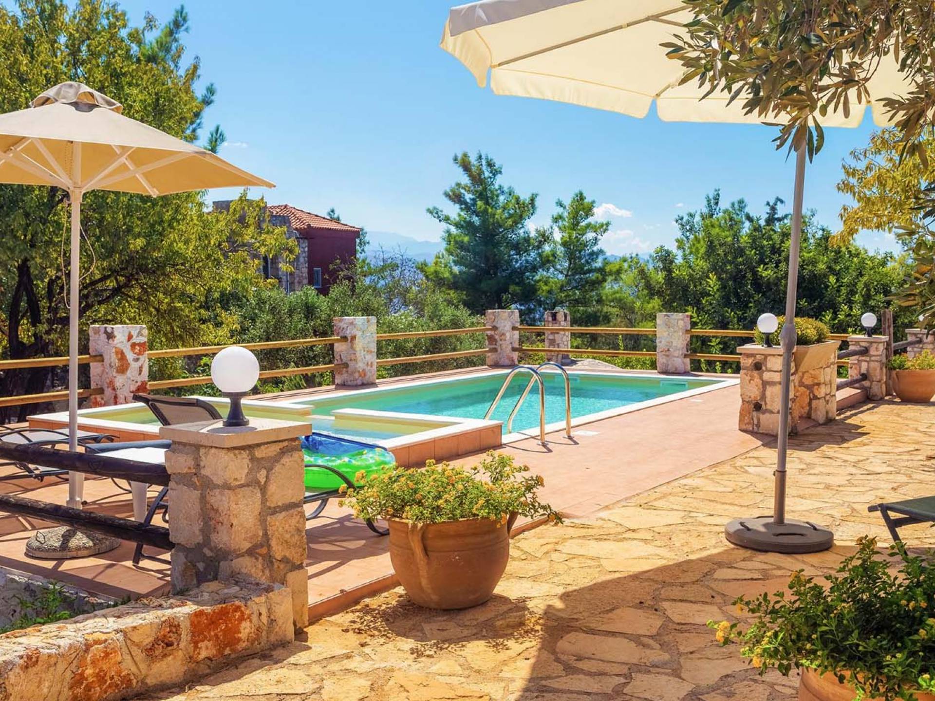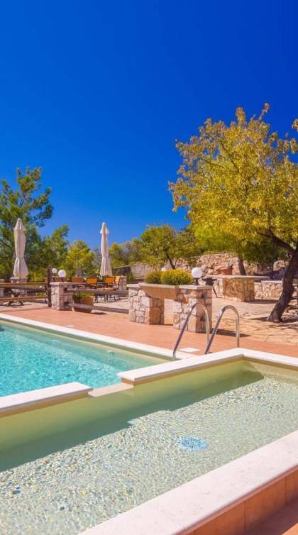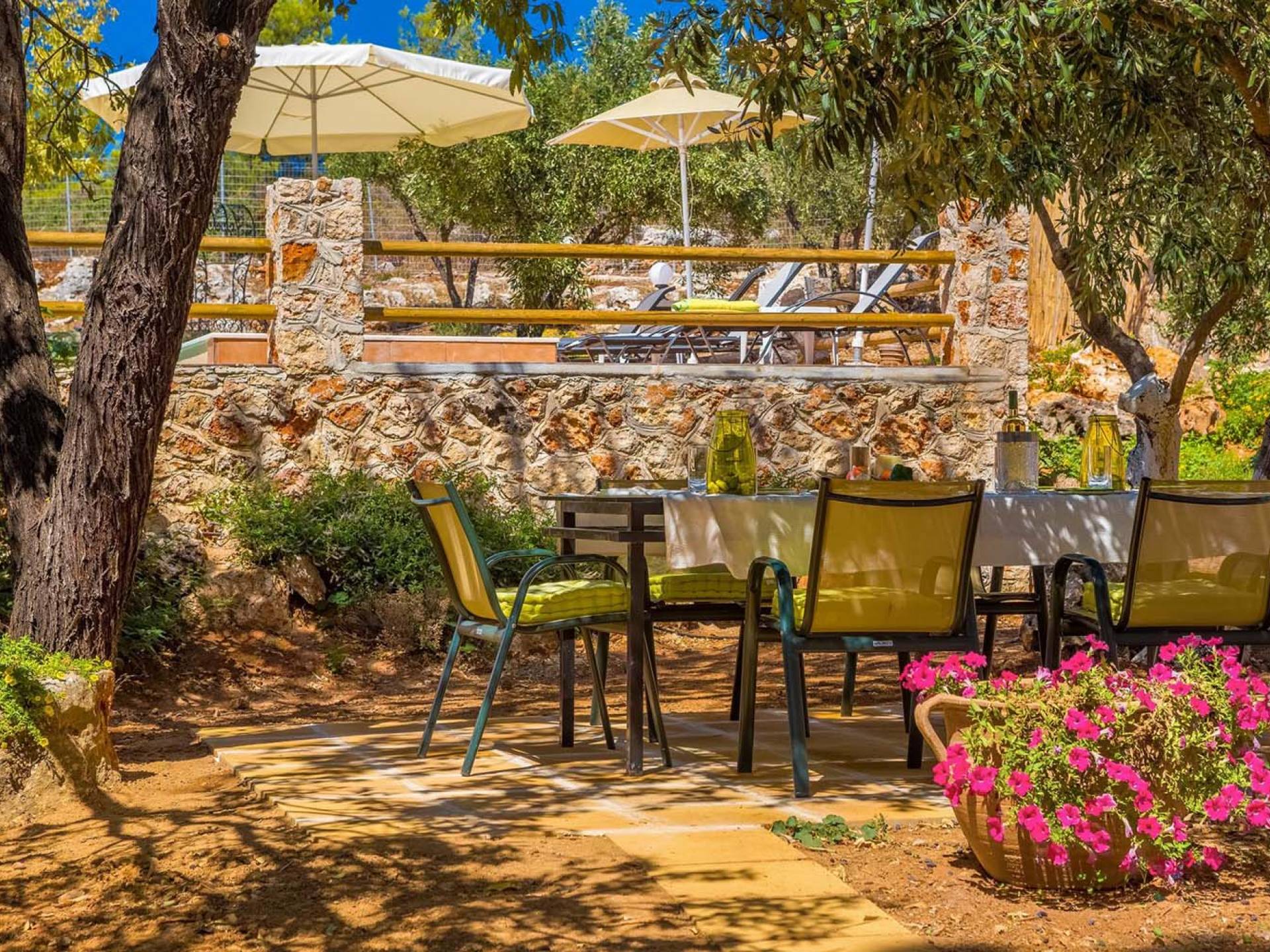 En los alrededores, hay una zona de barbacoa, un horno de leña, una superficie de 35 metros cuadrados. piscina, terraza para tomar el sol con hamacas y sombrillas. ¡Además, un huerto orgánico para que disfrutes! A solo 5 km del centro ya 10 km del aeropuerto Kastro estate es definitivamente la mejor opción para una estancia inolvidable.