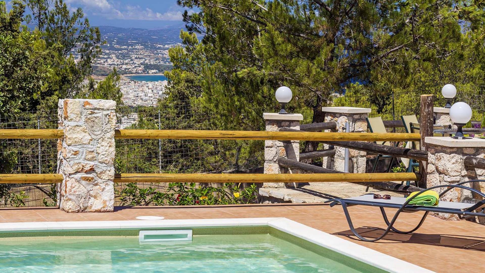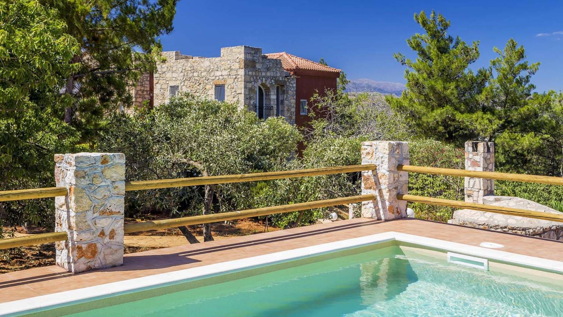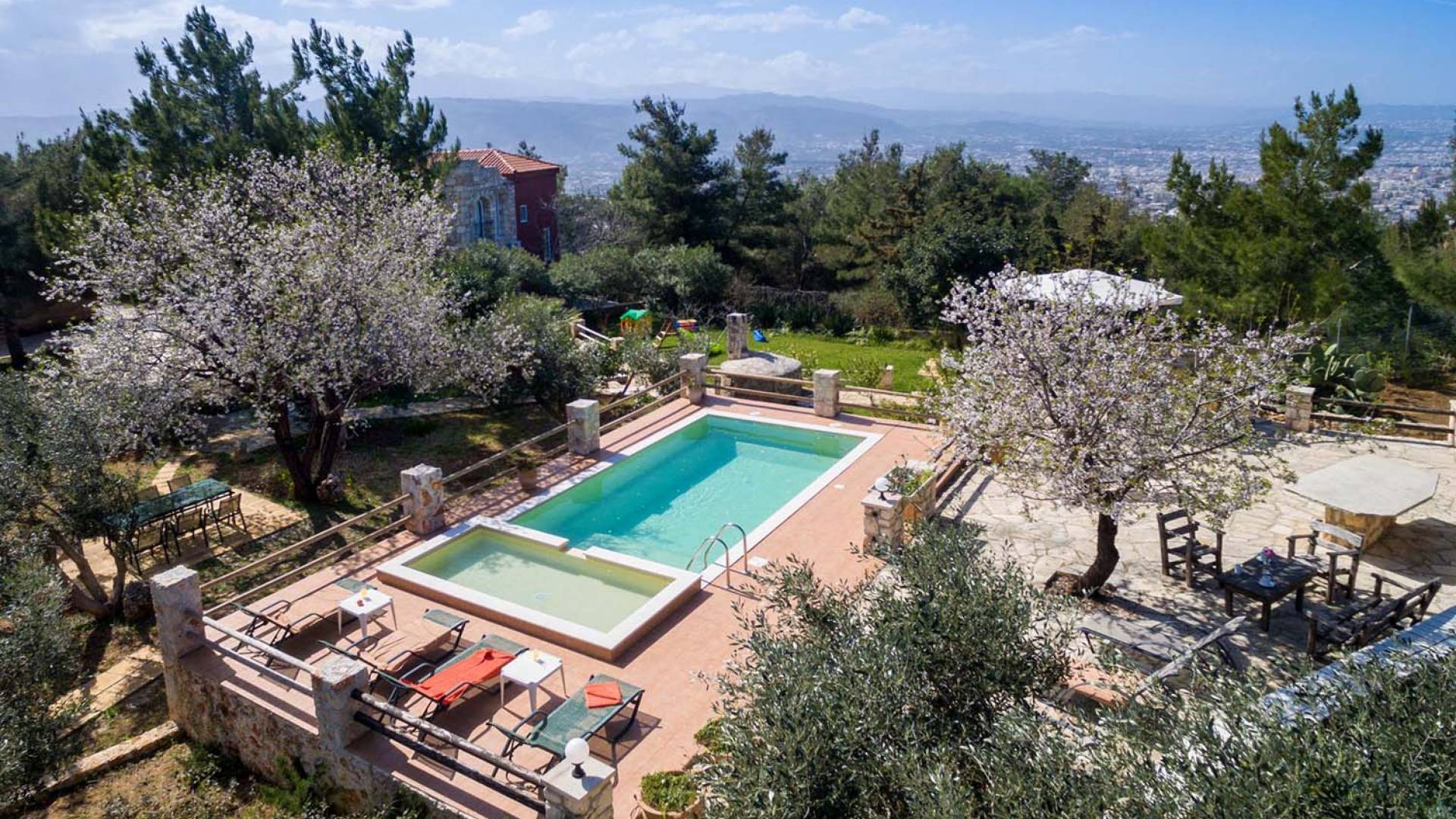Castle Villa Chania es una villa de piedra de 360 metros cuadrados ubicada en una finca de 6000 metros cuadrados. Tiene una piscina privada, ubicada en la parte superior de Agios Matheos con vista a la ciudad de Chania. Castle Villa Chania se parece arquitectónicamente a un castillo (de ahí que se le haya llamado así). Rodeado de pinos de hoja perenne, combina la tranquilidad de la naturaleza con el lujo. Además, está abierto todo el año y la finca tiene varios niveles.