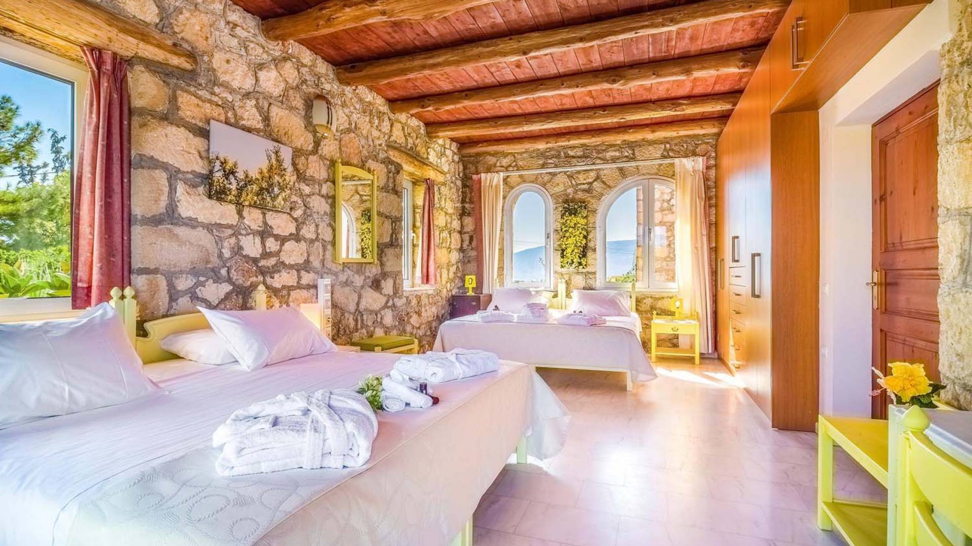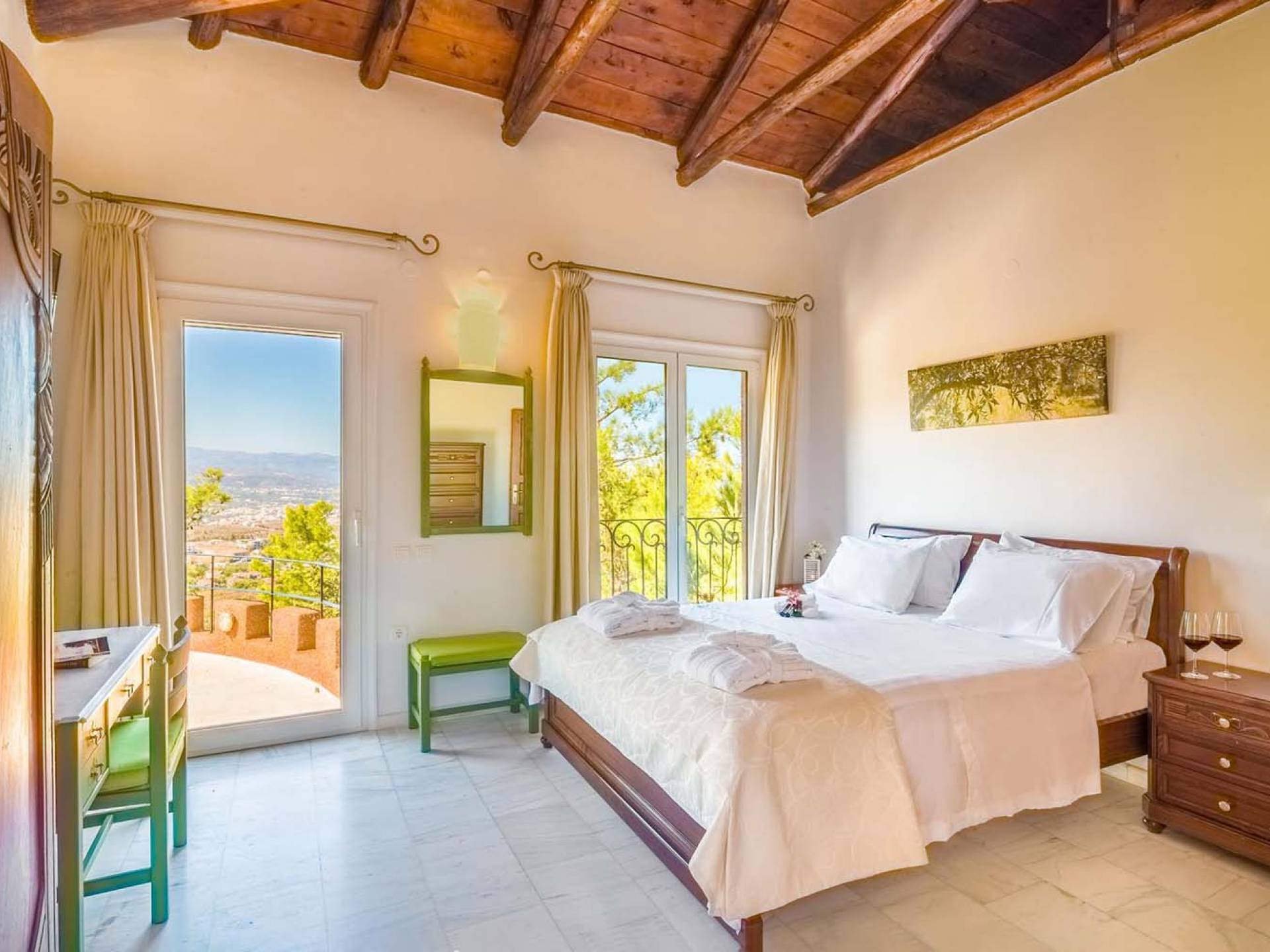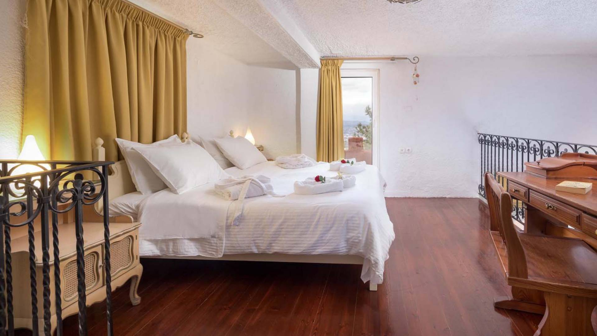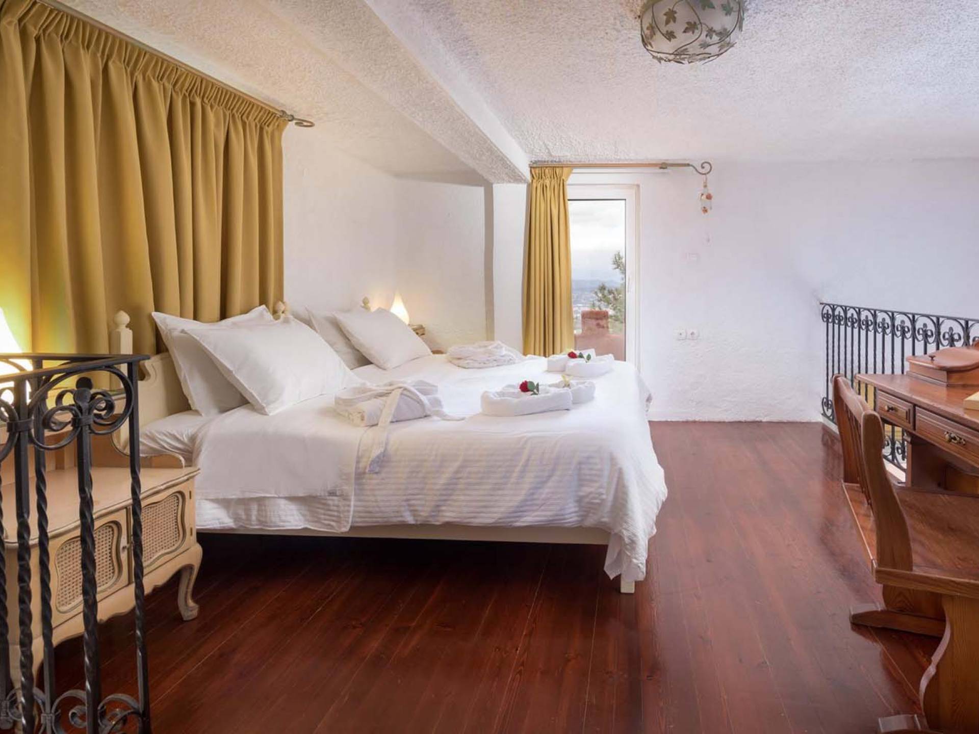 Castle Villa Chania se divide en 2 alas, con dos escaleras que conducen a los pisos superiores. A su derecha, encontrará dos dormitorios (uno con 2 camas tamaño king que se pueden convertir en 4 individuales) y un dormitorio principal con una cama tamaño queen que conduce a un hermoso balcón con vista al puerto veneciano de Chania. Estos dos dormitorios comparten un gran baño con bañera. En el otro ala a su izquierda, encontrará un dormitorio principal con baño en suite con cama de matrimonio. Esta habitación te lleva a la terraza principal, la vista desde allí es impresionante. En el tercer piso, hay una sala de galería que es una sala de espacio abierto, tiene un sofá cama y un pequeño balcón.
