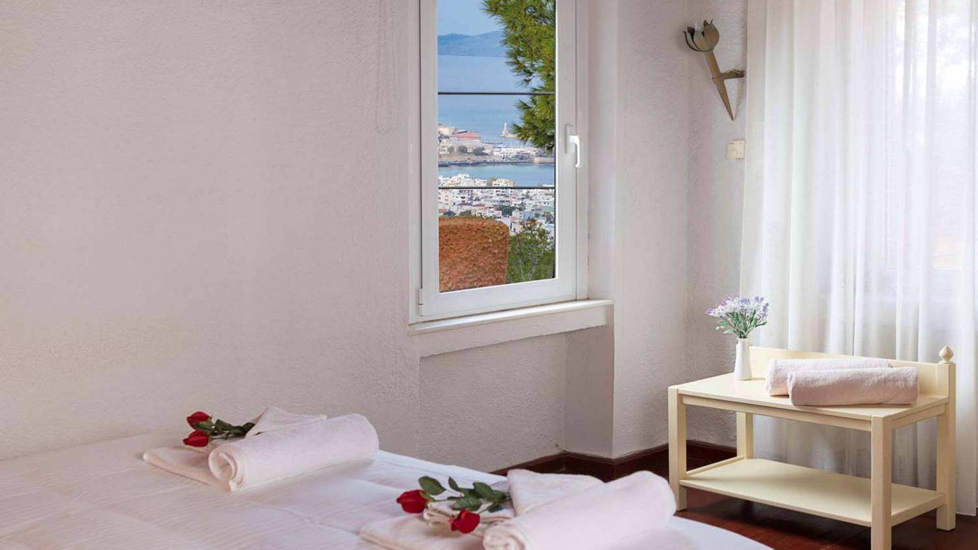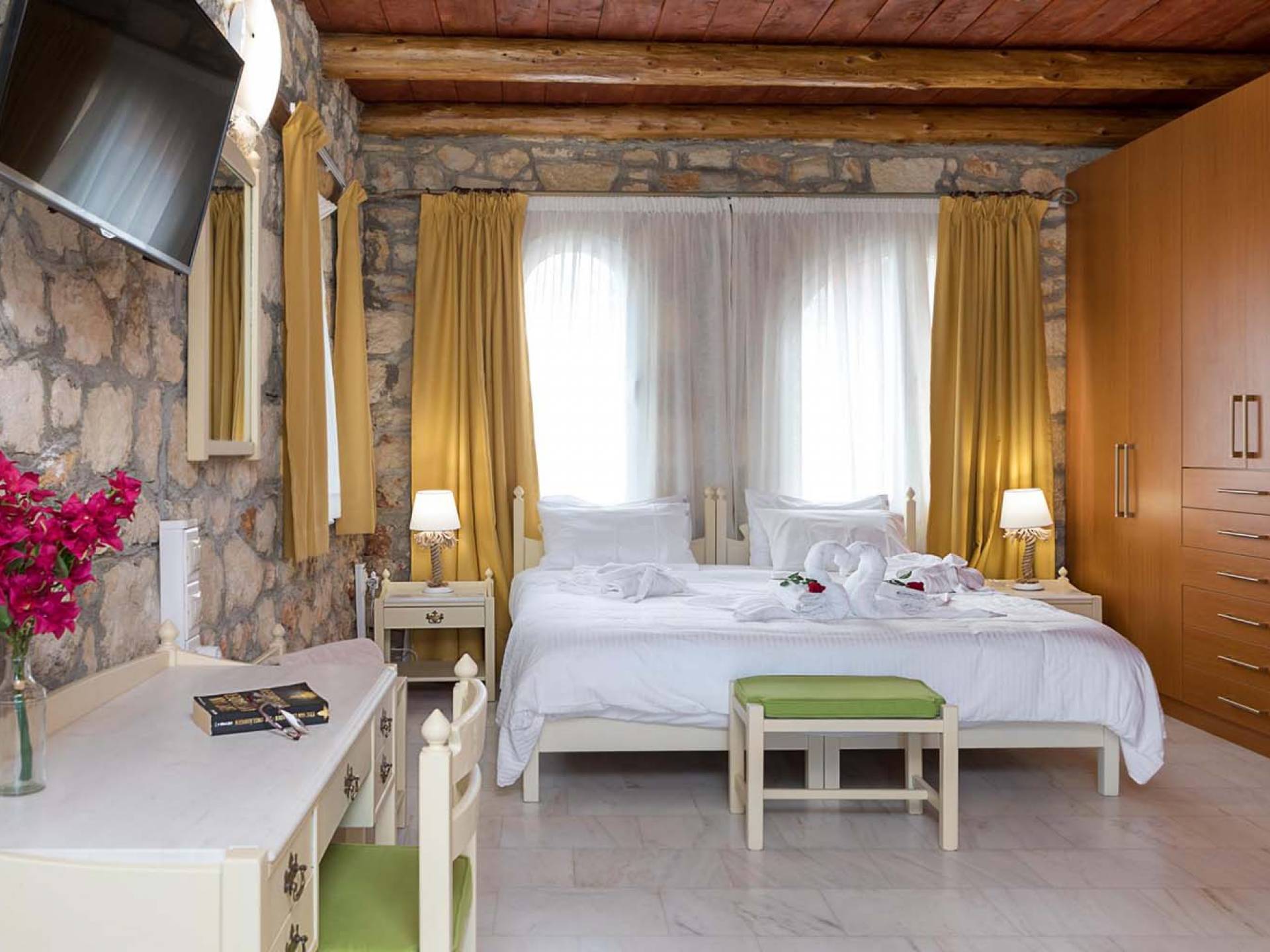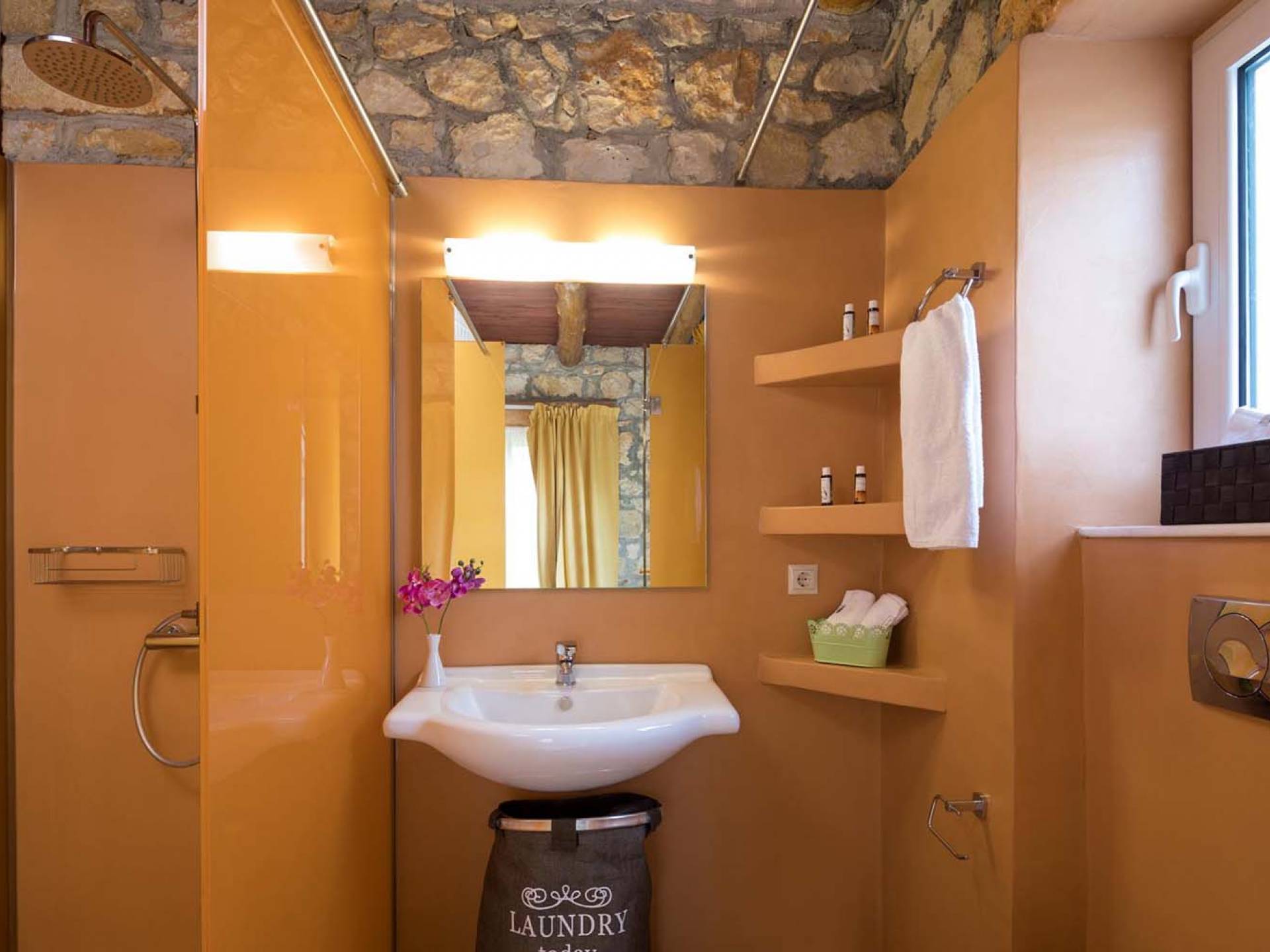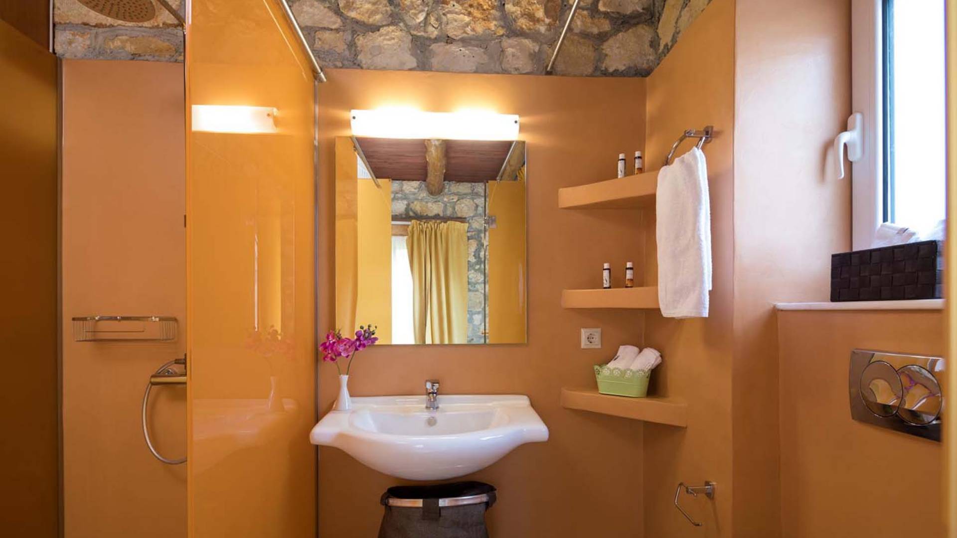 Castle Villa Chania se divide en 2 alas, con dos escaleras que conducen a los pisos superiores. A su derecha, encontrará dos dormitorios (uno con 2 camas tamaño king que se pueden convertir en 4 individuales) y un dormitorio principal con una cama tamaño queen que conduce a un hermoso balcón con vista al puerto veneciano de Chania. Estos dos dormitorios comparten un gran baño con bañera. En el otro ala a su izquierda, encontrará un dormitorio principal con baño en suite con cama de matrimonio. Esta habitación te lleva a la terraza principal, la vista desde allí es impresionante. En el tercer piso, hay una sala de galería que es una sala de espacio abierto, tiene un sofá cama y un pequeño balcón.