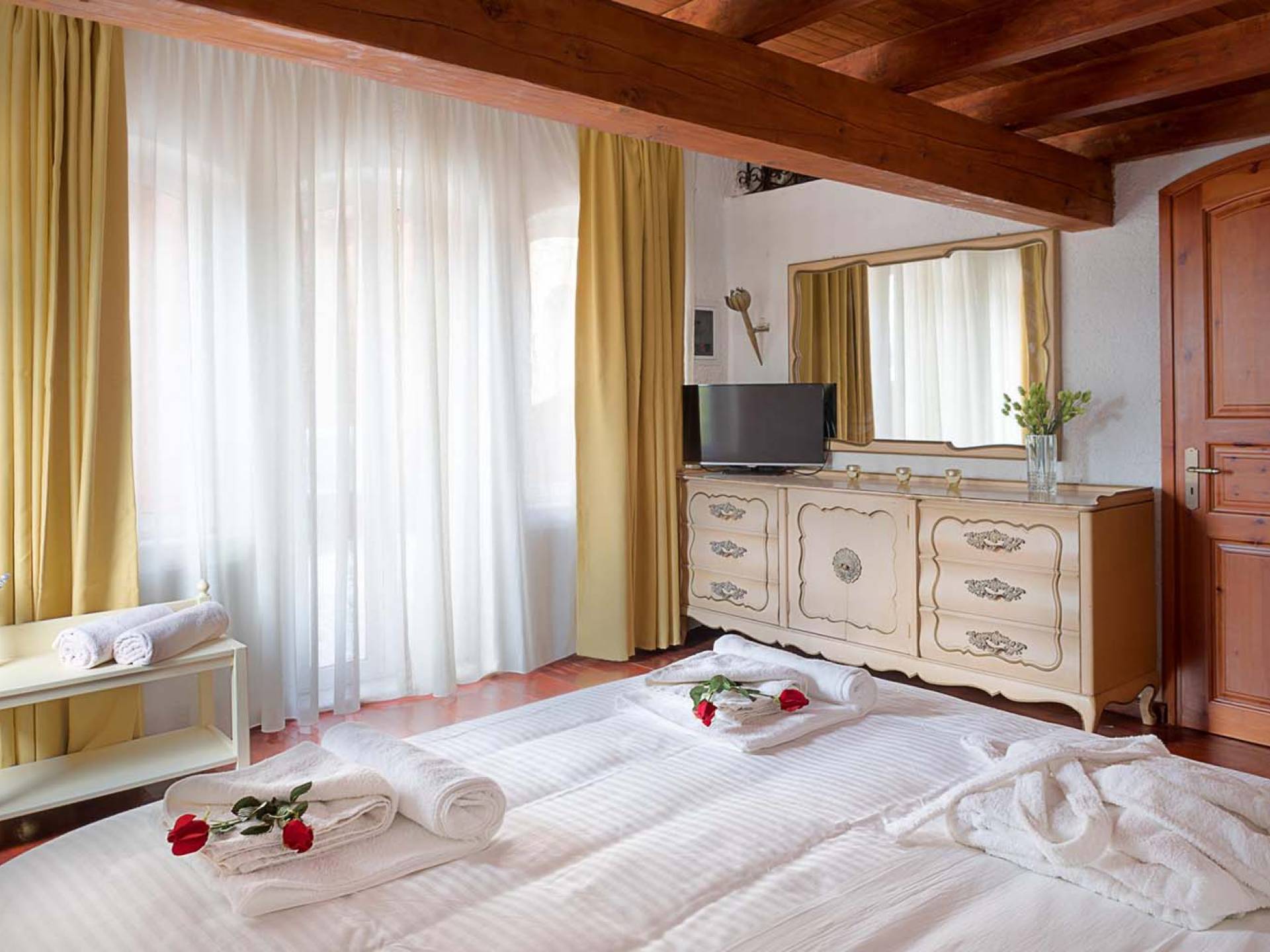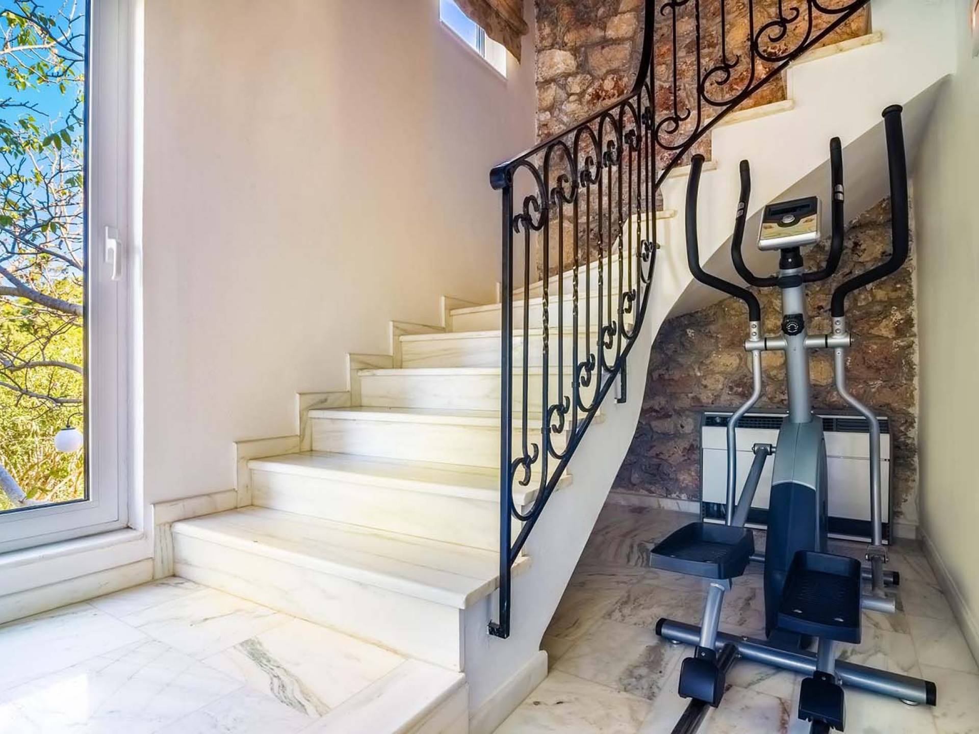La entrada principal en la planta baja se abre a una sala de estar de planta abierta con un comedor y una cocina totalmente equipada, un WC / ducha y una chimenea. A pocos pasos, encontrará una sala de masajes y un gran armario. Los techos de madera, los muebles antiguos y la chimenea ofrecen comodidad. En el mismo nivel, justo al lado de la entrada de la villa, encontrará un dormitorio con una cama de matrimonio y baño en suite. Este dormitorio es independiente de la villa principal y no tiene escaleras, se considera apto para personas mayores.