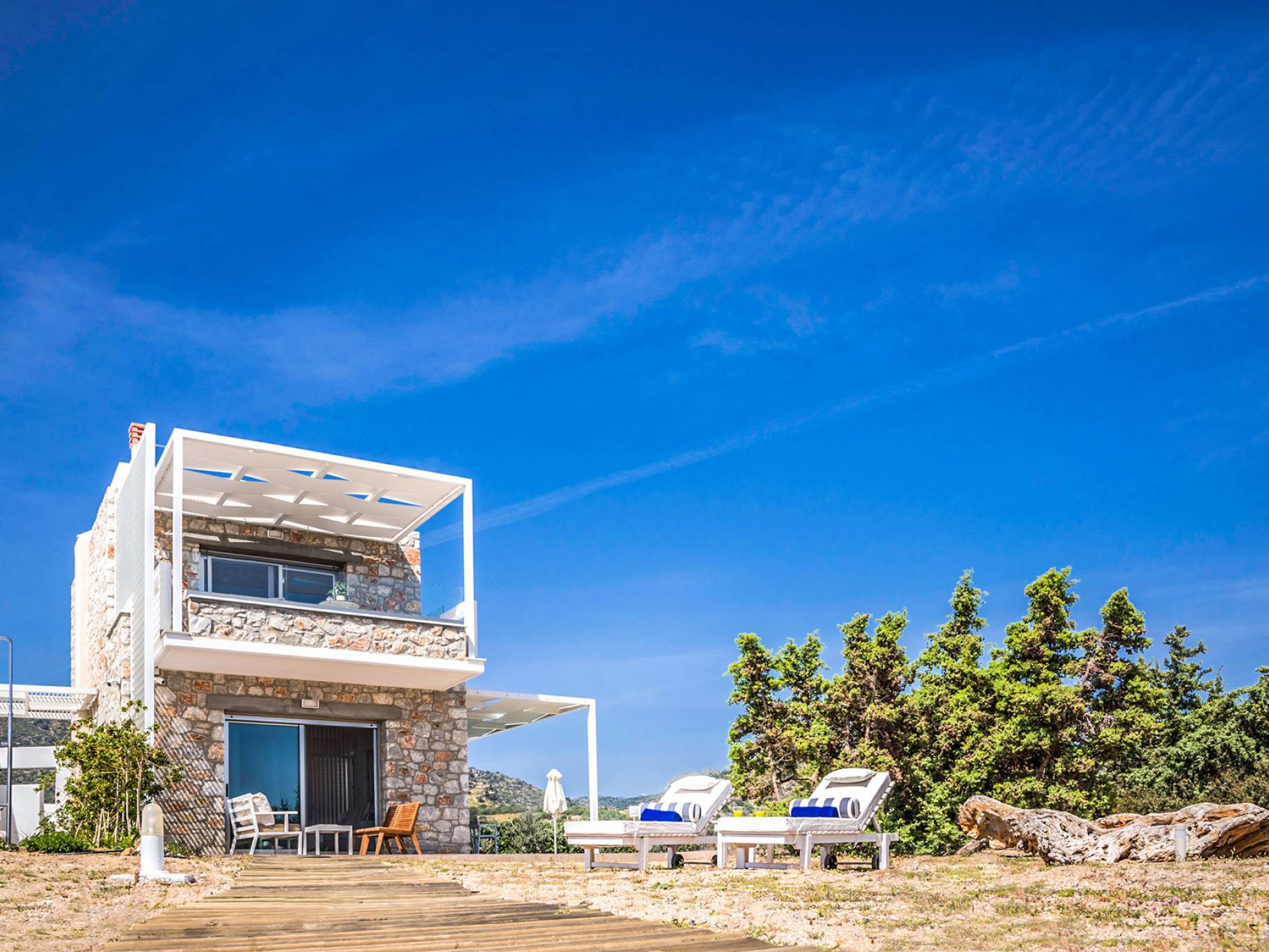 En la costa entre las Montañas Blancas y el Mar de Libia, entre dos playas vírgenes en la península de Grammeno, bajo los cielos más azules y entre raros cedros, se encuentran Cedar Bay Villas Crete, tres elegantes villas de dos pisos, esperando para llénate de recuerdos eternos de vacaciones.